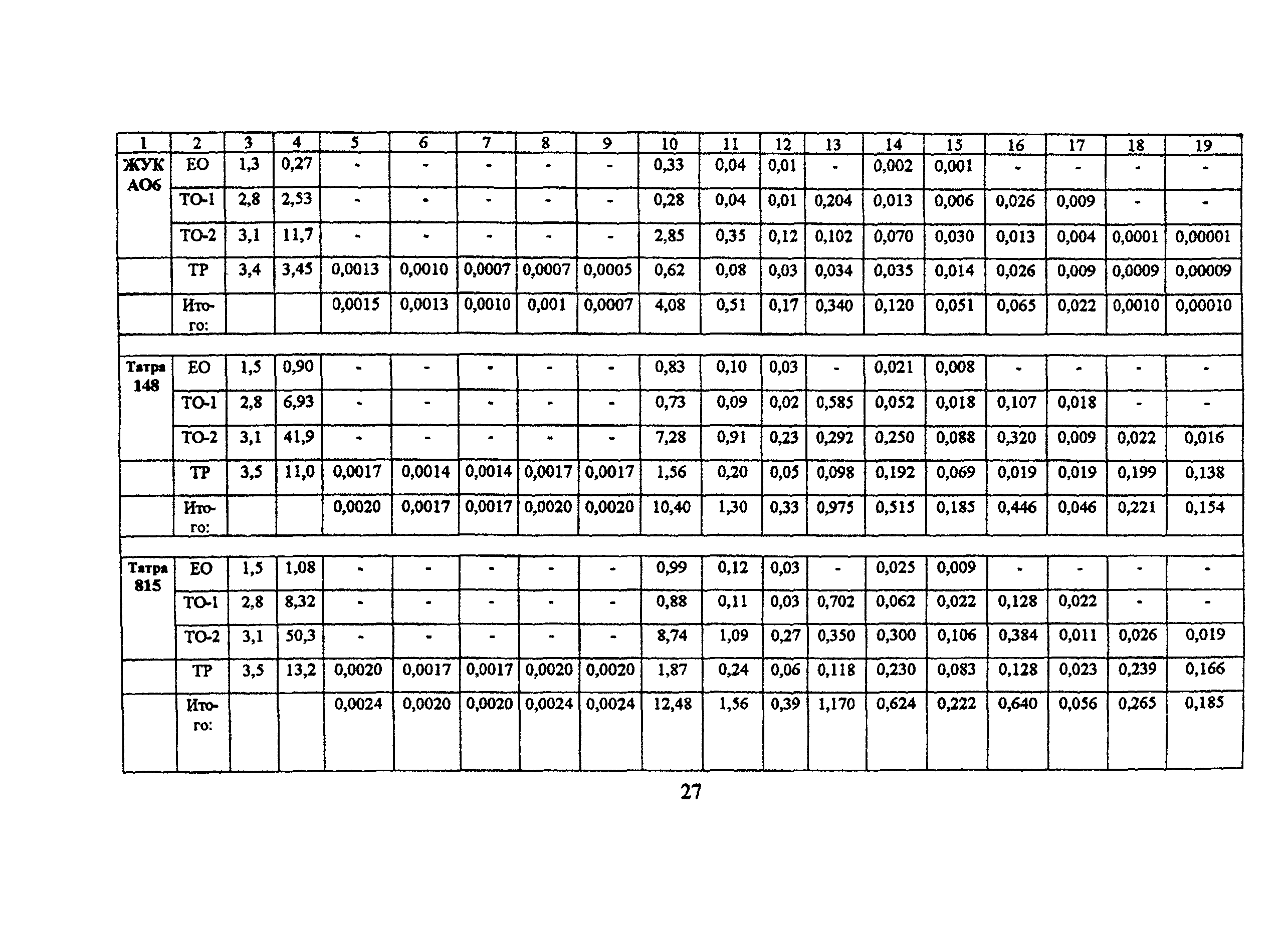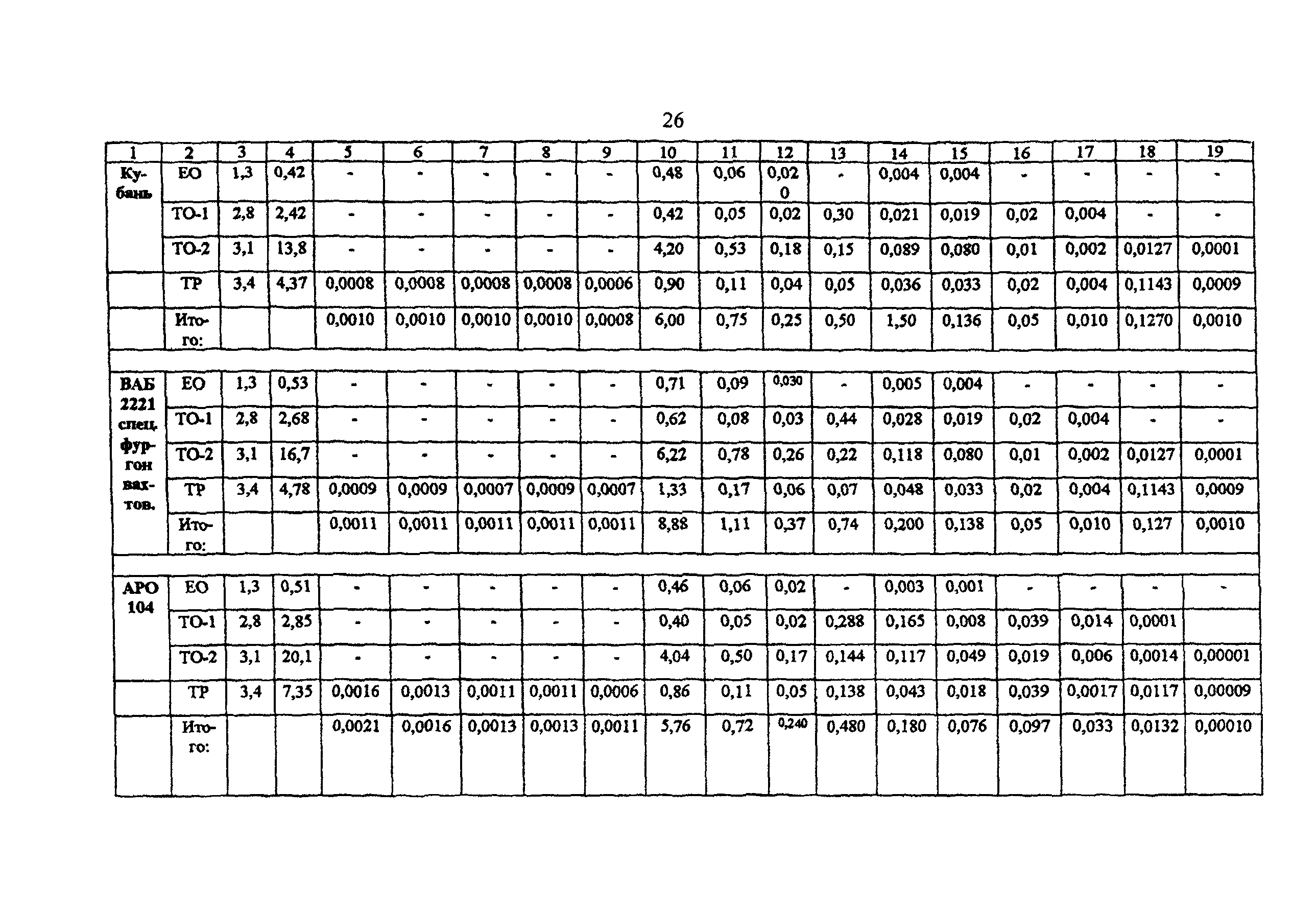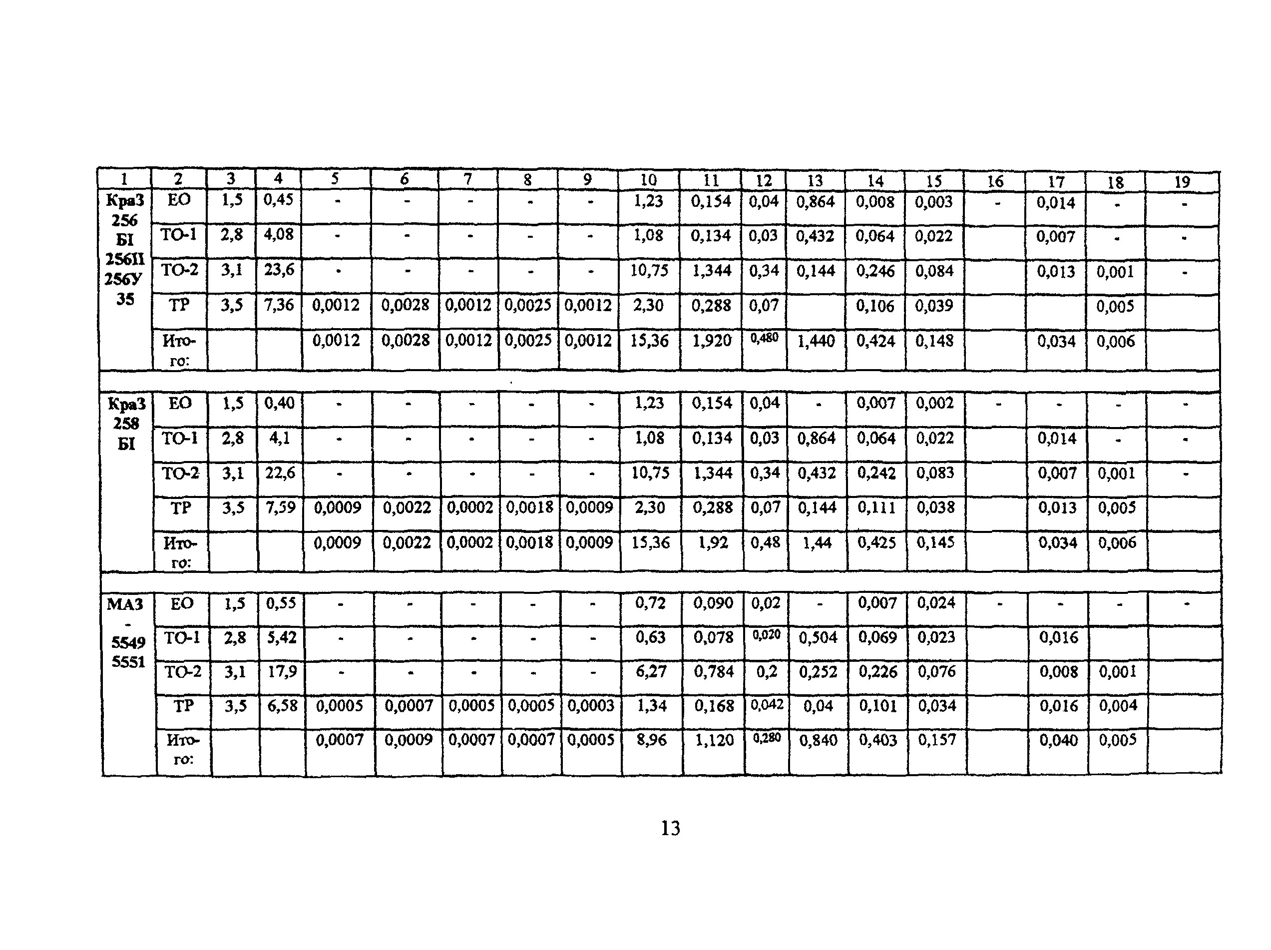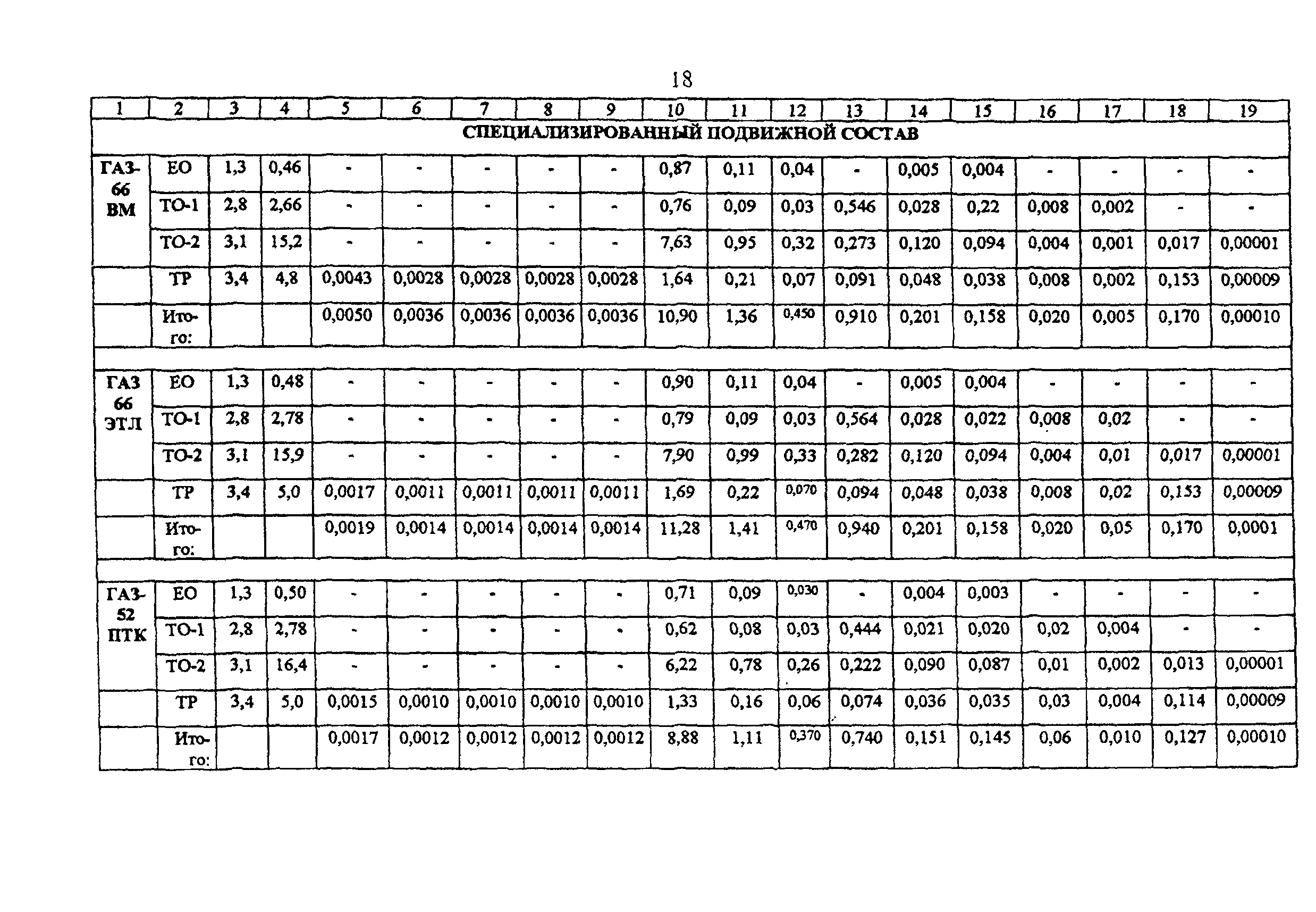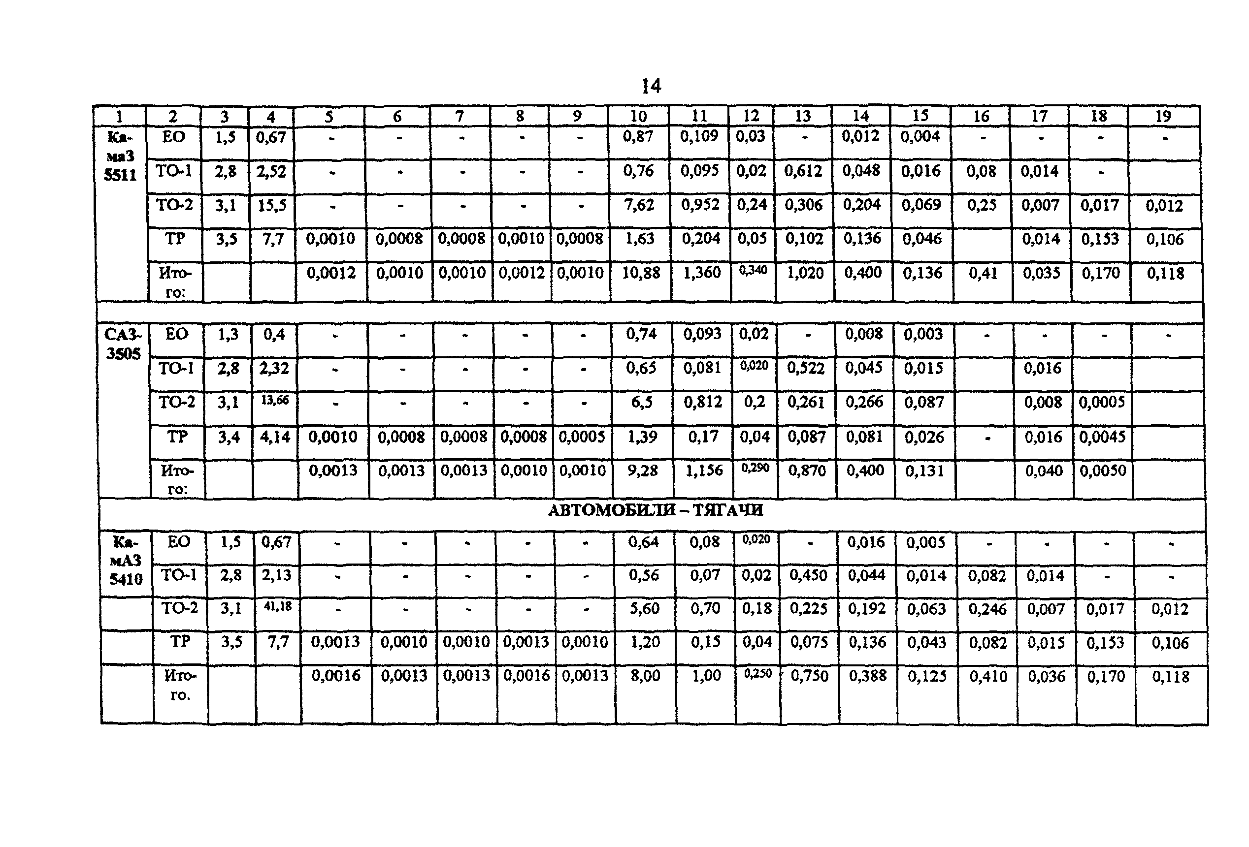 Нормы расхода материалов и запасных частей на техническое обслуживание и текущий ремонт автомобилей| Статус: | действует | | Название рус.: | Нормы расхода материалов и запасных частей на техническое обслуживание и текущий ремонт автомобилей | | Дата добавления в базу: | 01.09.2013 | | Дата актуализации: | 01.01.2021 | | Область применения: | Нормы расхода установлены в натуральном выражении на 1000 км пробега по видам технического воздействия (ЕО, ТО-1, ТО-2, ТР). | | Разработан: | Центроргтрудавтотранс