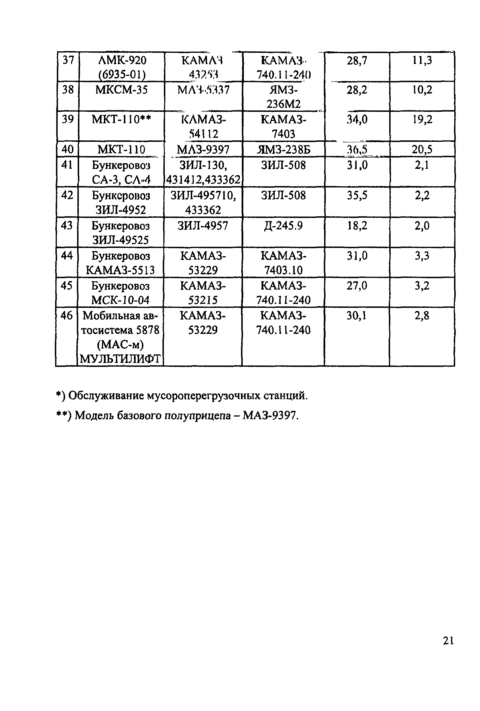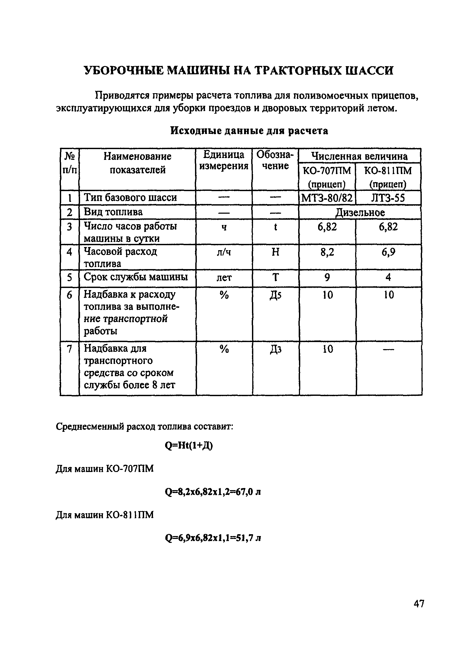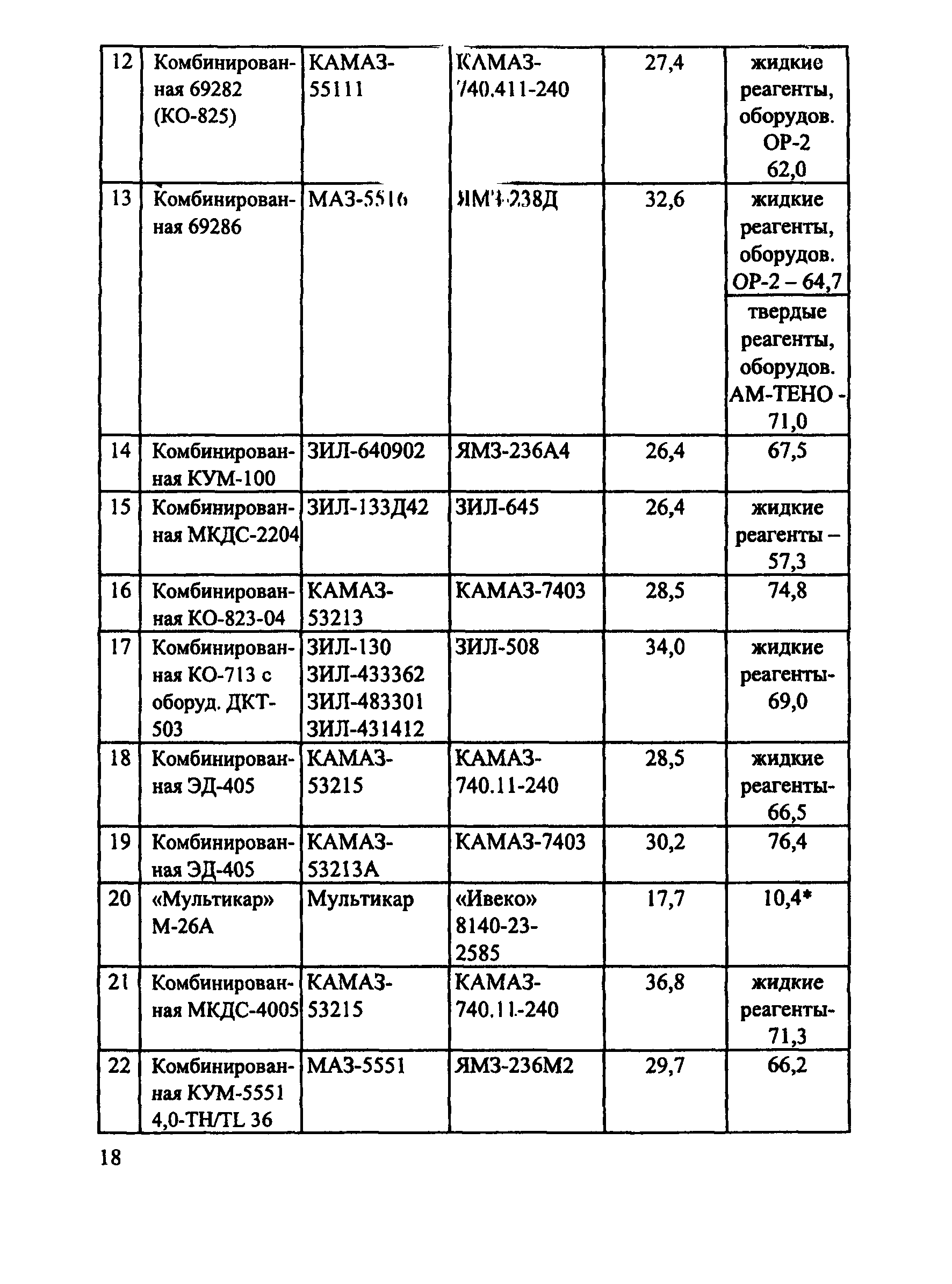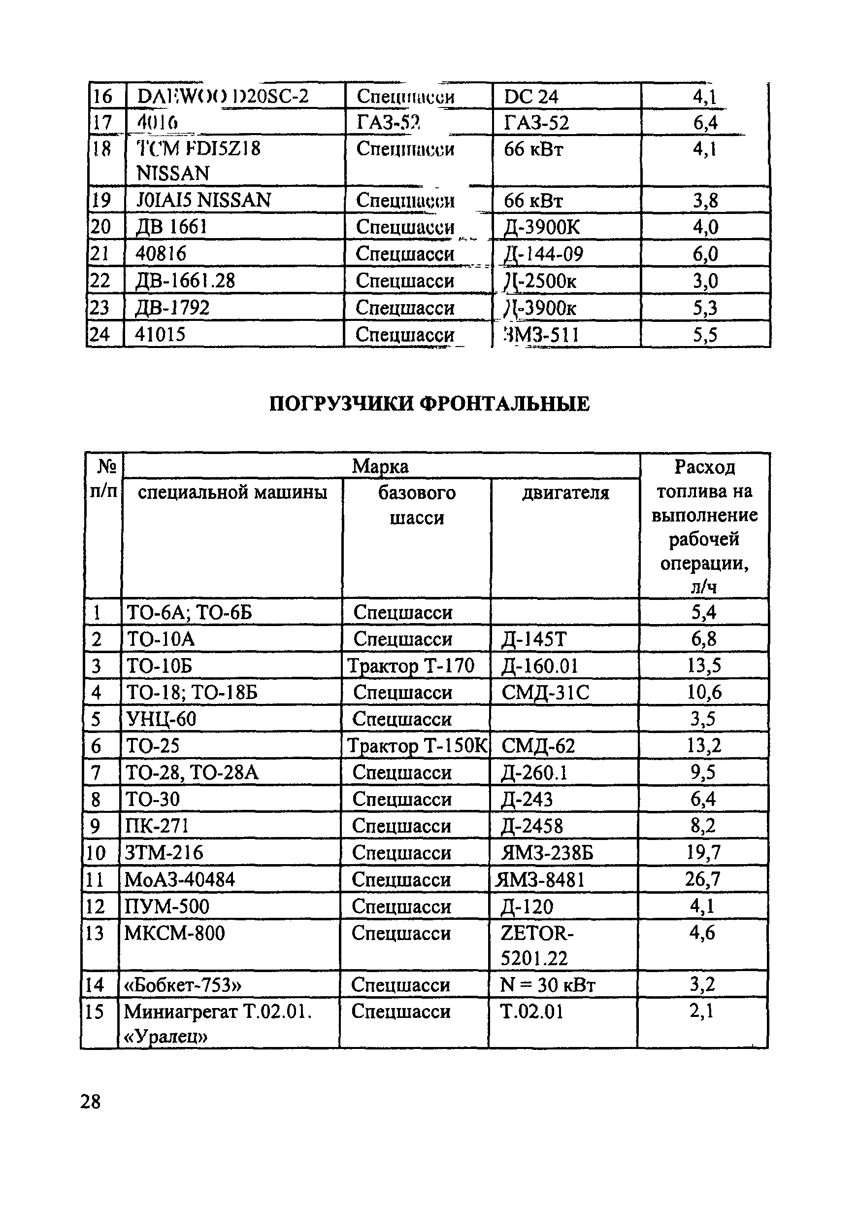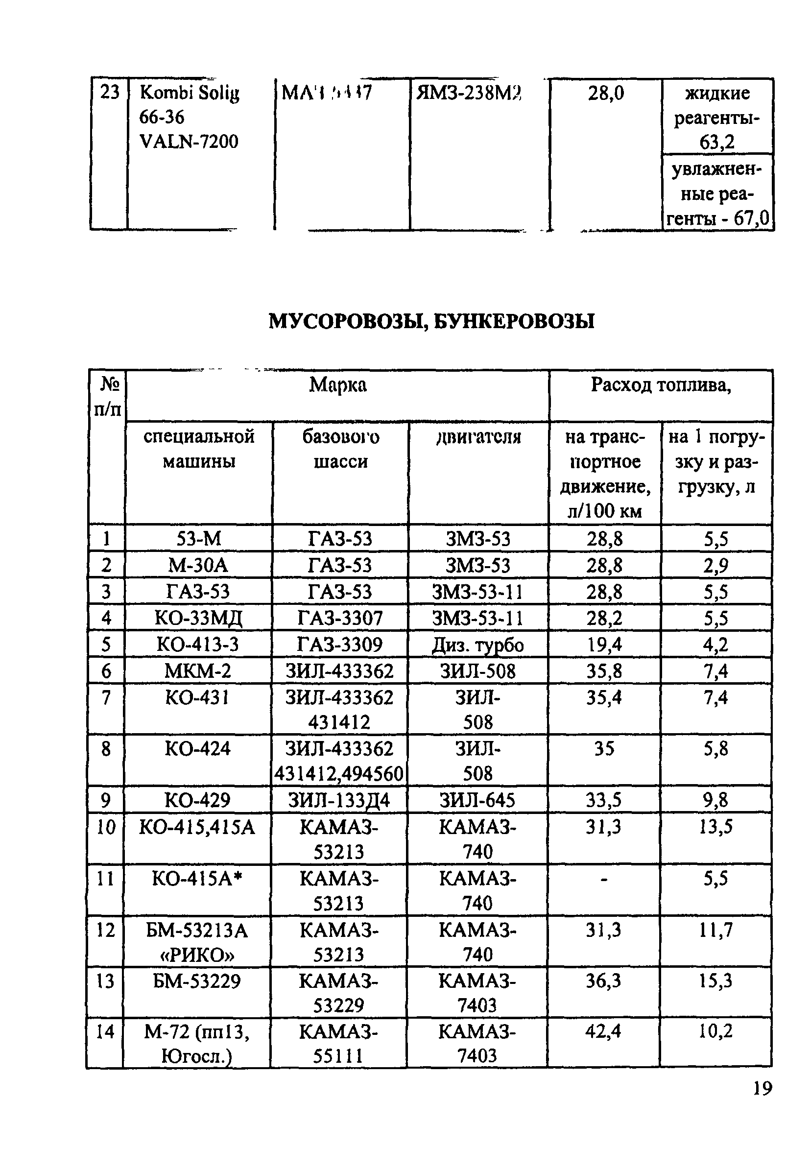 | Оглавление: | Общие положения 1 Расход жидкого топлива для спецмашин, используемых при механизированной уборке дорожных покрытий II Показатели расхода горюче-смазочных материалов для спецмашин, используемых при механизированной уборке дорожных покрытий III Расход жидкого топлива машин, применяемых для ремонтных работ в дорожном хозяйстве Приложение 1 Порядок увеличения линейного расхода топлива в зимнее время Приложение 2 Значение зимних надбавок к показателям расхода топлива в регионах России по климатическим районам Приложение 3 Примеры расчетов потребления топлива при работе оборудования спецмашин |