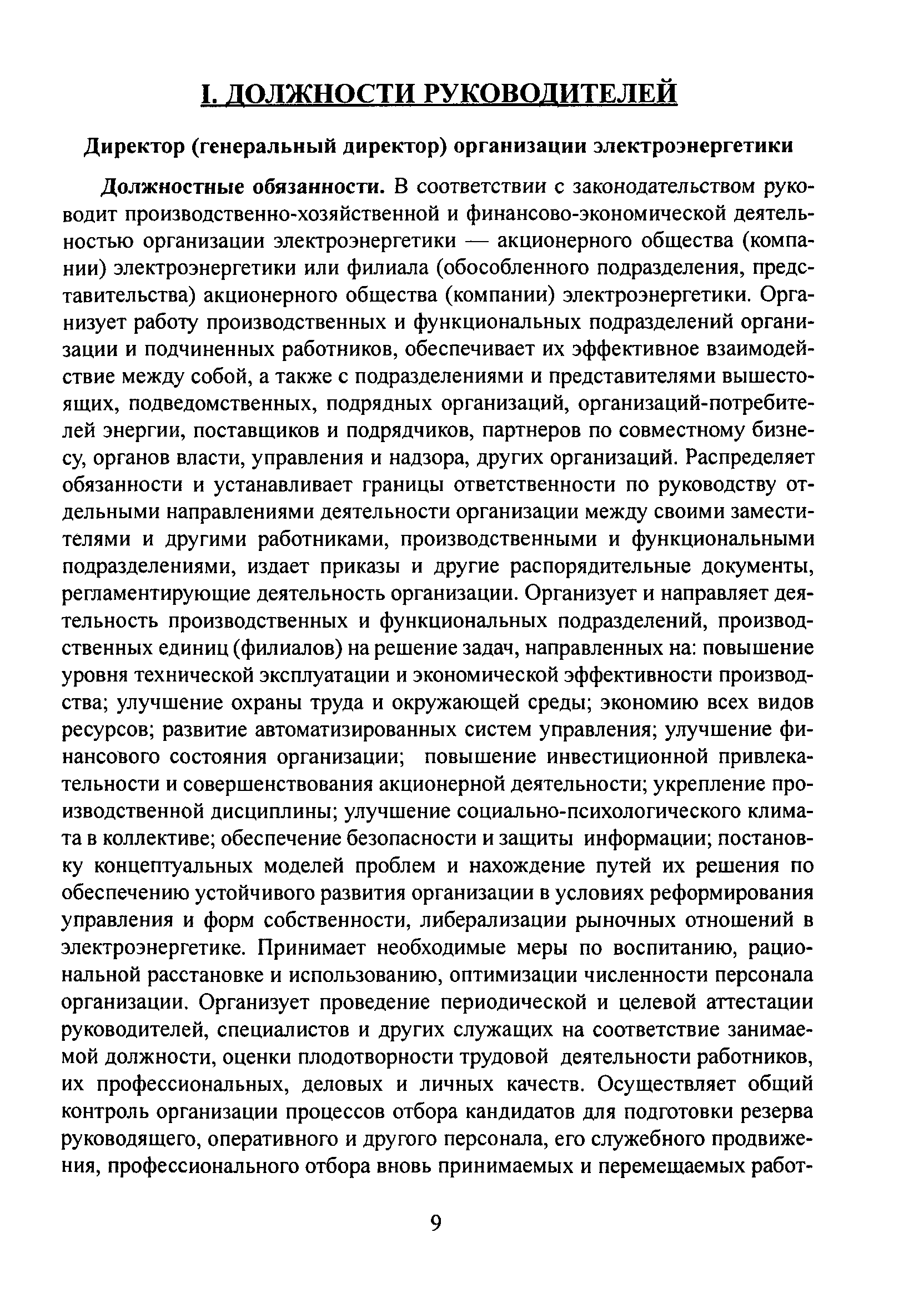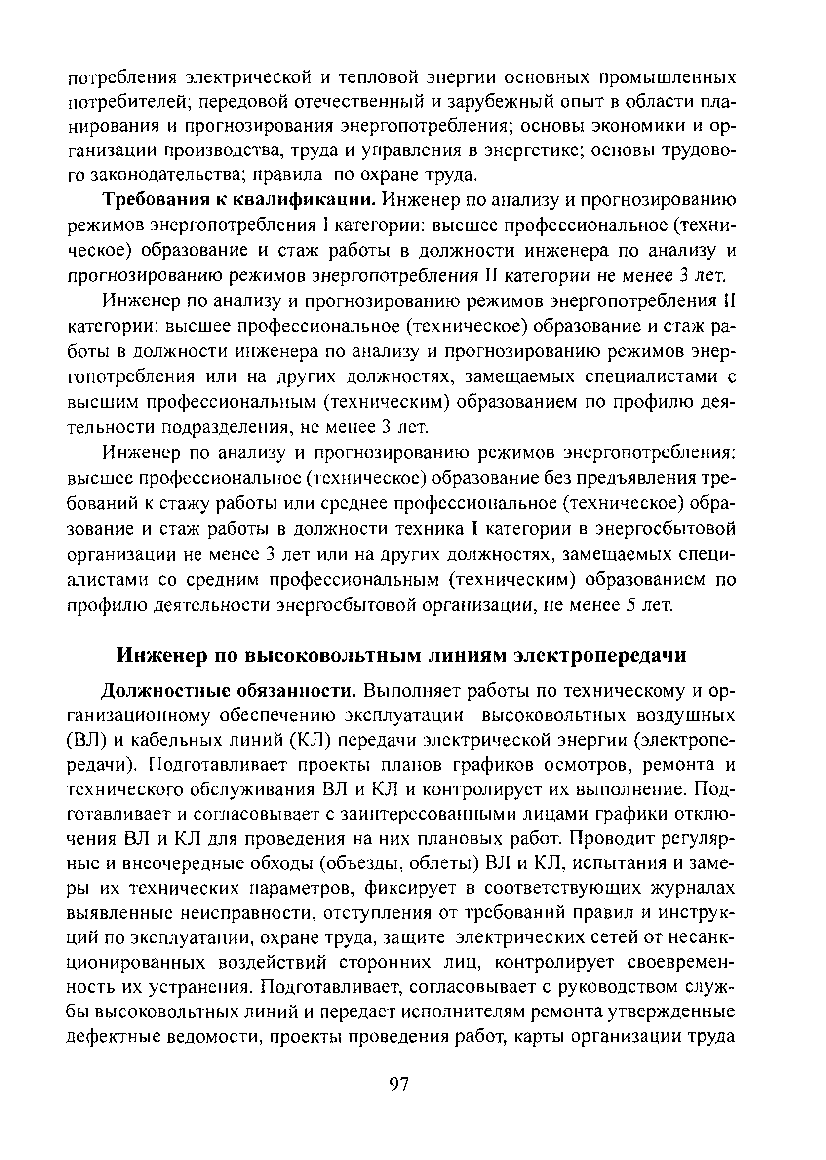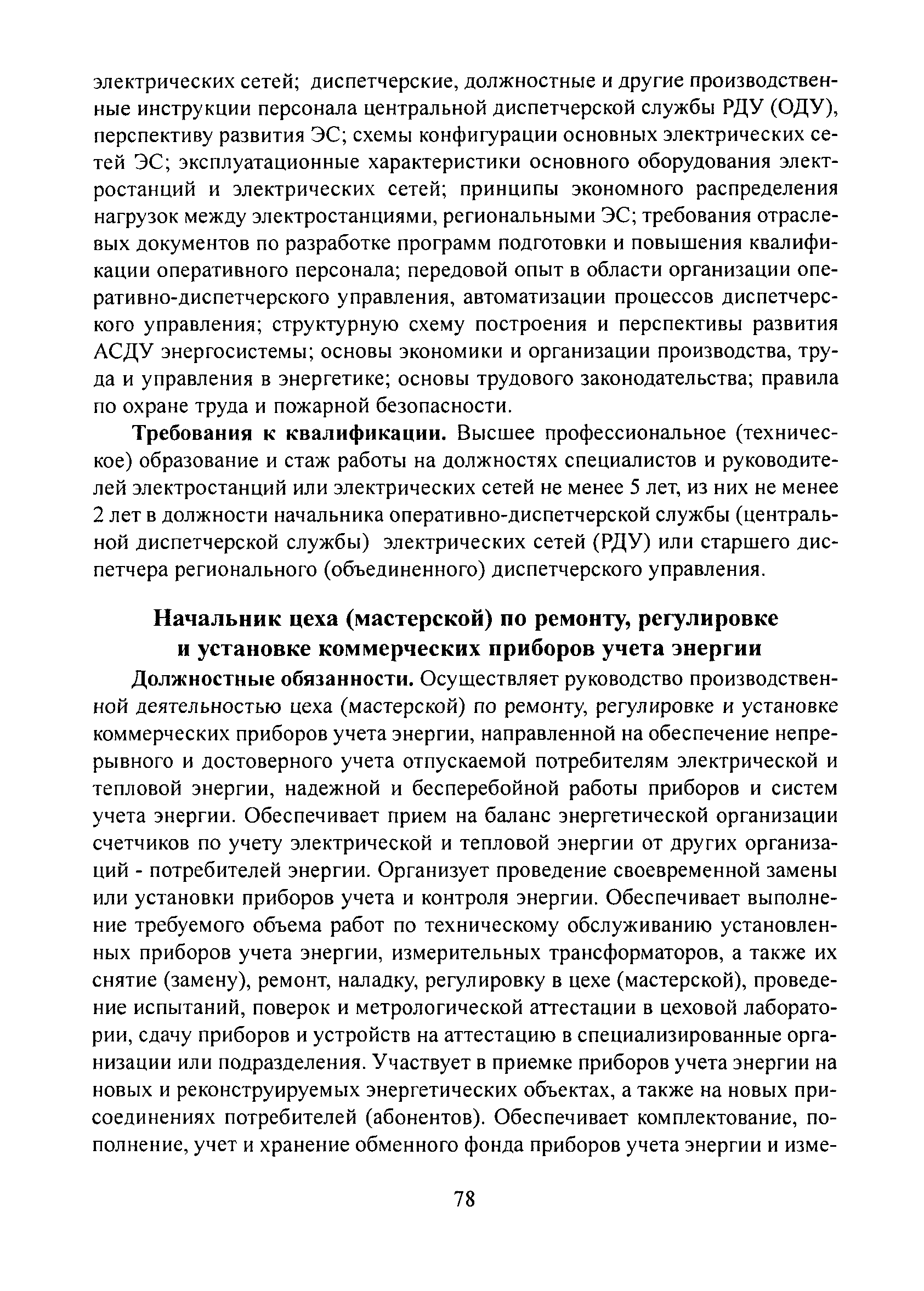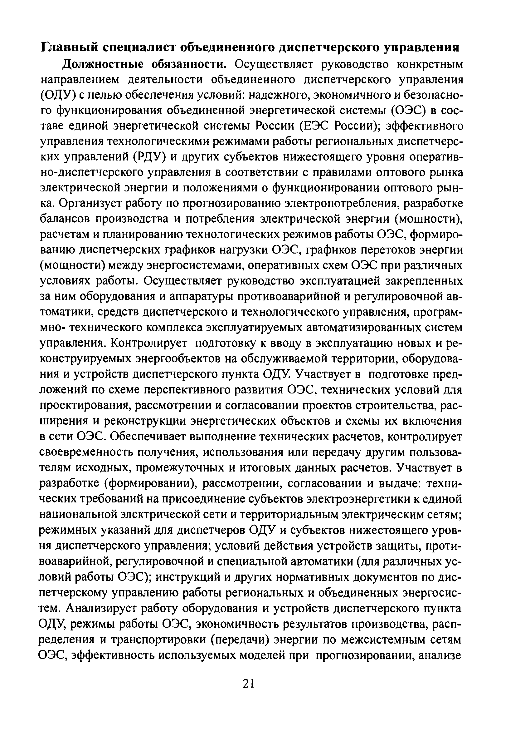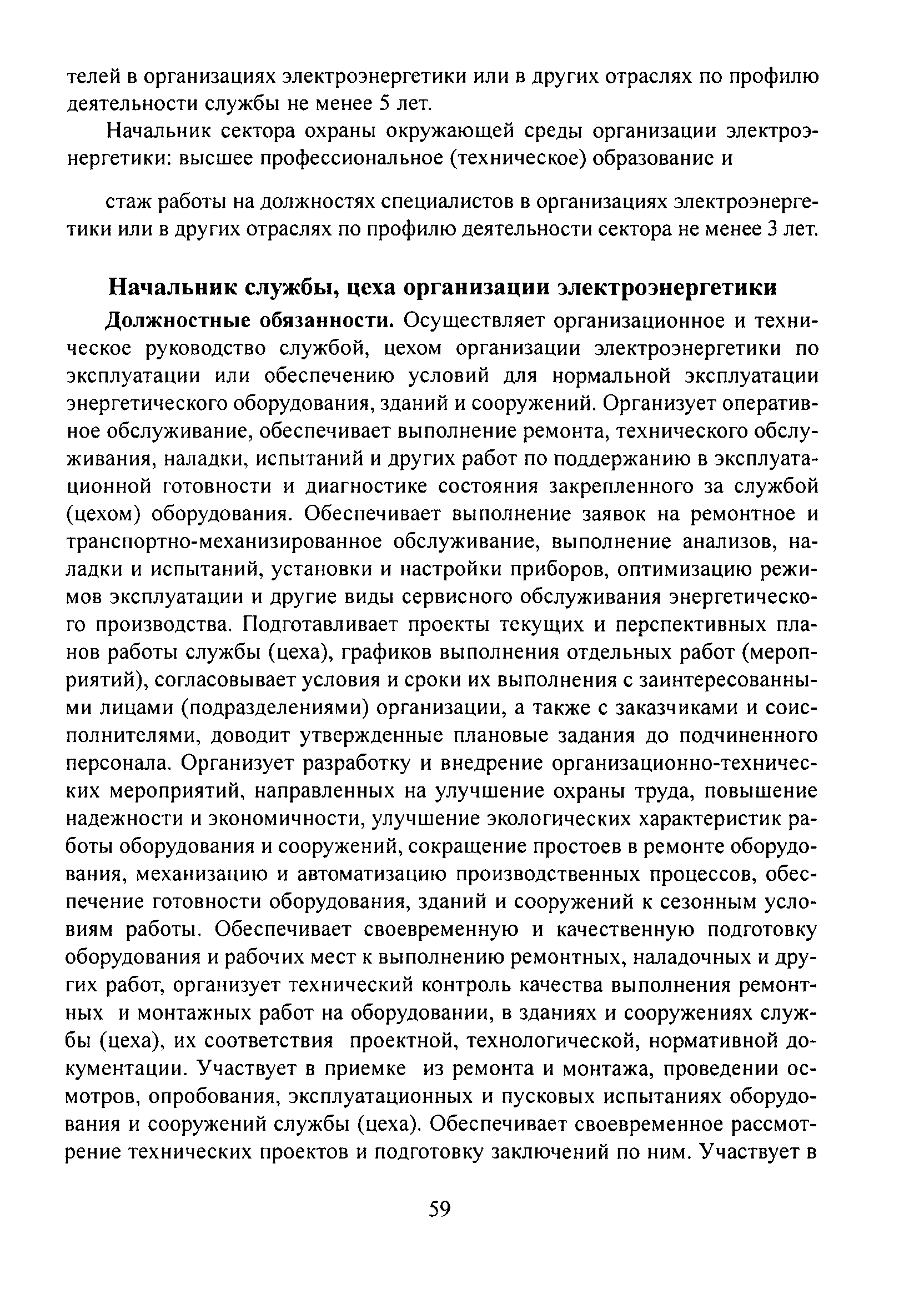 Квалификационный справочник должностей руководителей, специалистов и других служащих организаций электроэнергетики| Статус: | действует | | Название рус.: | Квалификационный справочник должностей руководителей, специалистов и других служащих организаций электроэнергетики | | Дата добавления в базу: | 01.09.2013 | | Дата актуализации: | 01.01.2021 | | Область применения: | Справочник включает квалификационные характеристики должностей руководителей, специалистов и других служащих, специфичных для электроэнергетики, он может применяться во всех организациях энергетического комплекса независимо от типов этих организаций, их организационно-правовых форм собственности в целях обеспечения правильного подбора, расстановки и использования кадров. | | Оглавление: | Общие положения I Должности руководителей II Должности специалистов III Должности других служащих (технических исполнителей) | | Разработан: | ОАО ЦОТэнерго