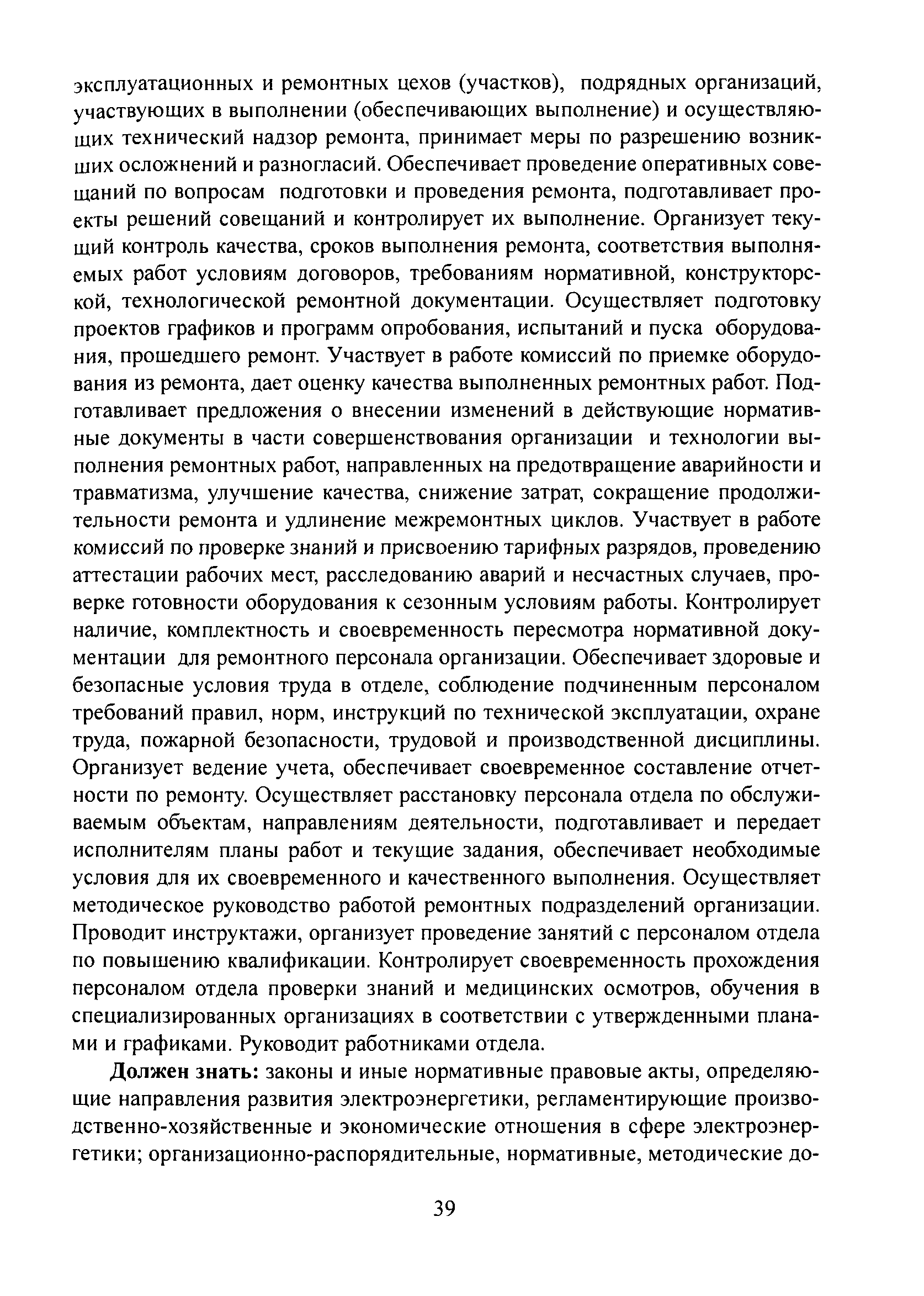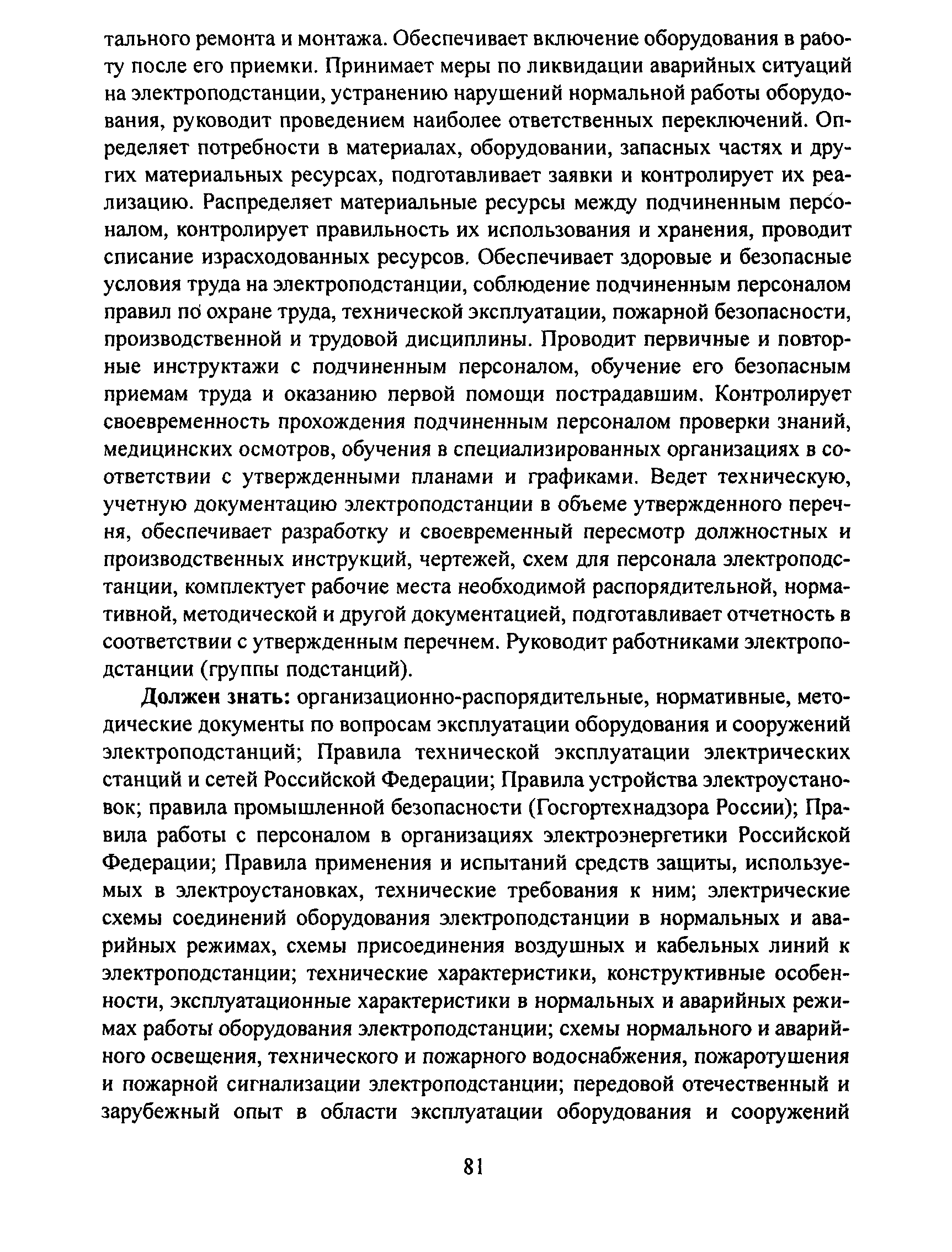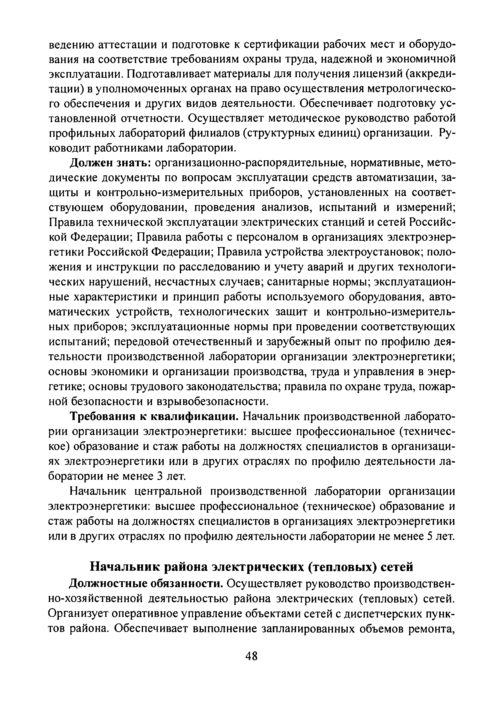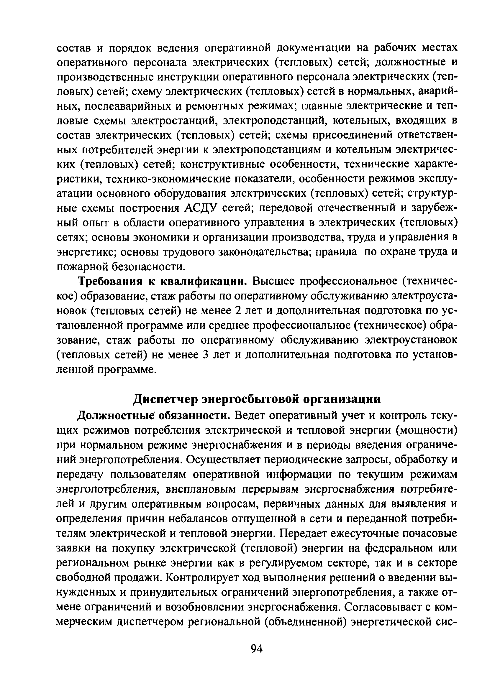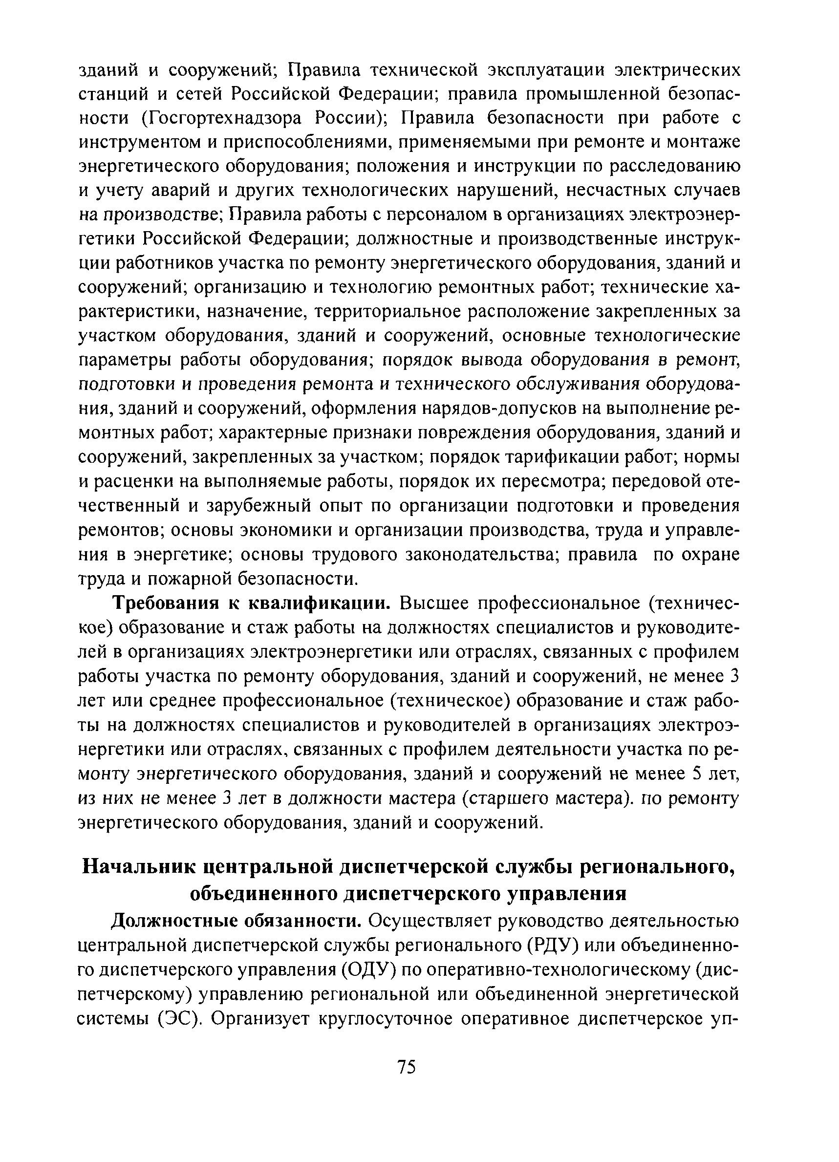 Квалификационный справочник должностей руководителей, специалистов и других служащих организаций электроэнергетики| Статус: | действует | | Название рус.: | Квалификационный справочник должностей руководителей, специалистов и других служащих организаций электроэнергетики | | Дата добавления в базу: | 01.09.2013 | | Дата актуализации: | 01.01.2021 | | Область применения: | Справочник включает квалификационные характеристики должностей руководителей, специалистов и других служащих, специфичных для электроэнергетики, он может применяться во всех организациях энергетического комплекса независимо от типов этих организаций, их организационно-правовых форм собственности в целях обеспечения правильного подбора, расстановки и использования кадров. | | Оглавление: | Общие положения I Должности руководителей II Должности специалистов III Должности других служащих (технических исполнителей) | | Разработан: | ОАО ЦОТэнерго