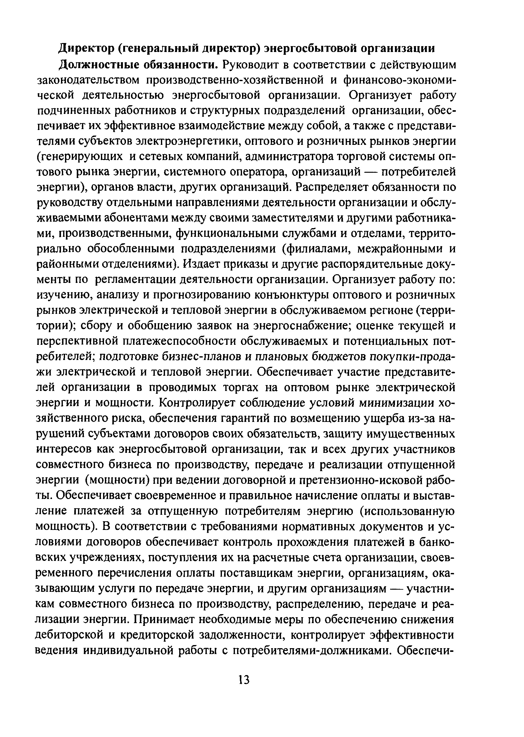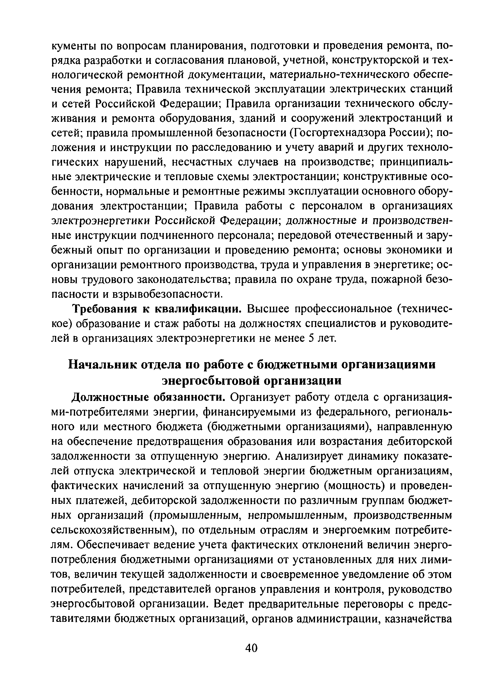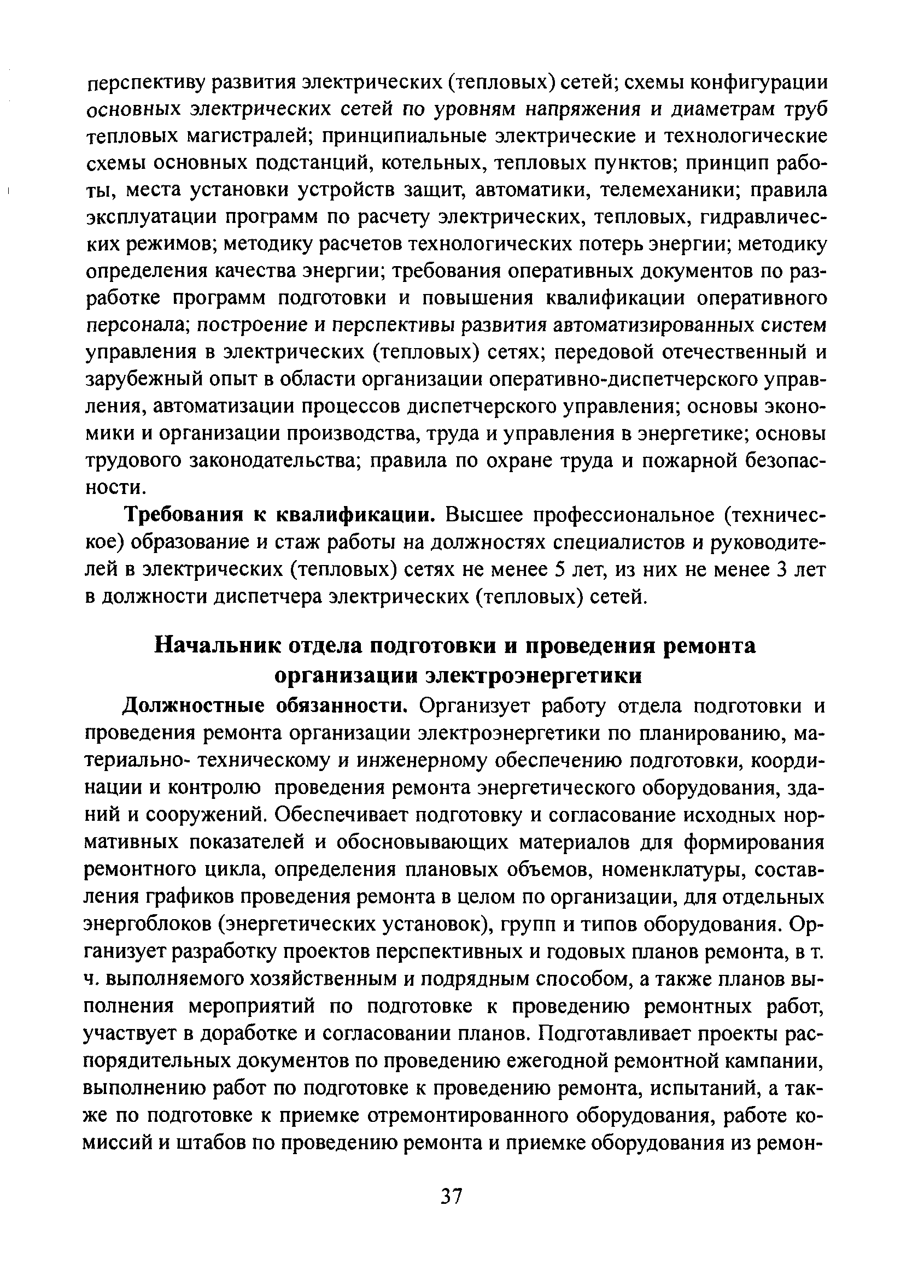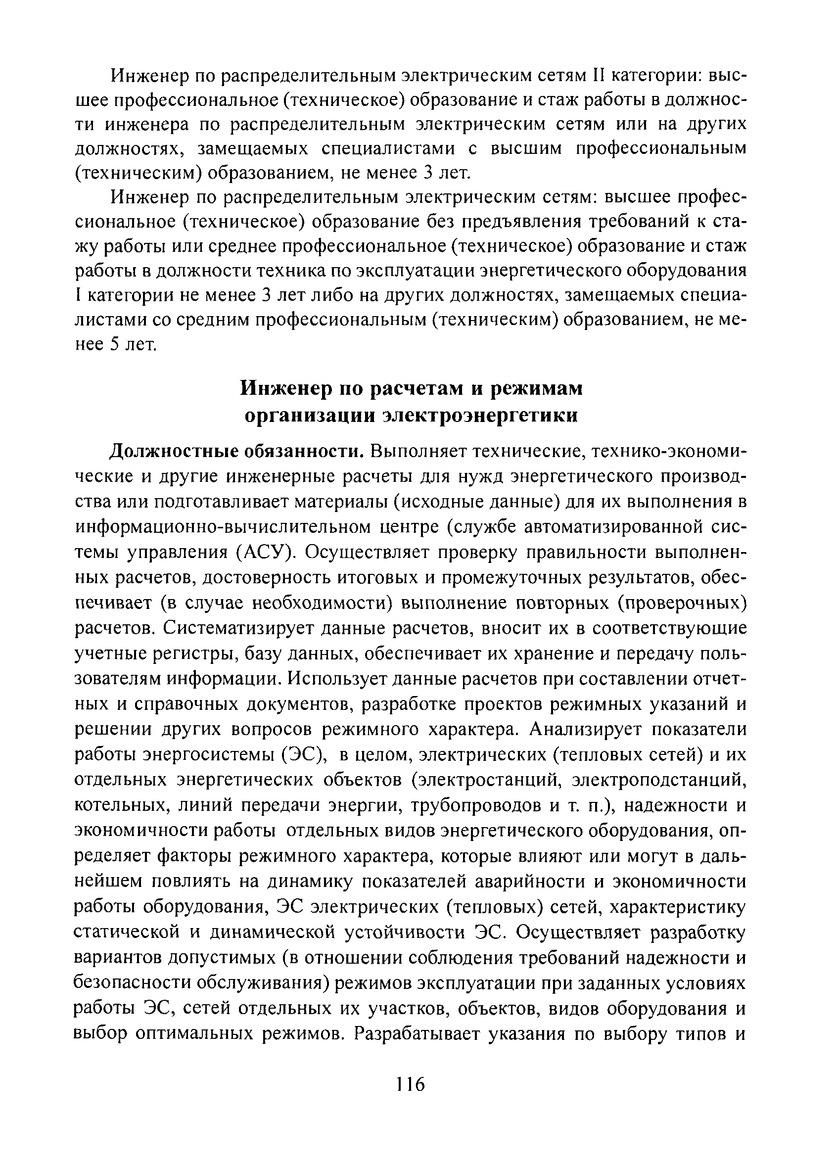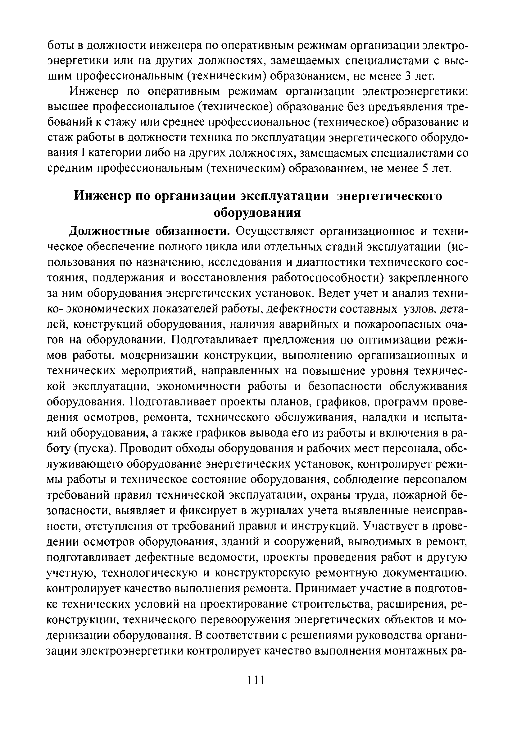 Квалификационный справочник должностей руководителей, специалистов и других служащих организаций электроэнергетики| Статус: | действует | | Название рус.: | Квалификационный справочник должностей руководителей, специалистов и других служащих организаций электроэнергетики | | Дата добавления в базу: | 01.09.2013 | | Дата актуализации: | 01.01.2021 | | Область применения: | Справочник включает квалификационные характеристики должностей руководителей, специалистов и других служащих, специфичных для электроэнергетики, он может применяться во всех организациях энергетического комплекса независимо от типов этих организаций, их организационно-правовых форм собственности в целях обеспечения правильного подбора, расстановки и использования кадров. | | Оглавление: | Общие положения I Должности руководителей II Должности специалистов III Должности других служащих (технических исполнителей) | | Разработан: | ОАО ЦОТэнерго