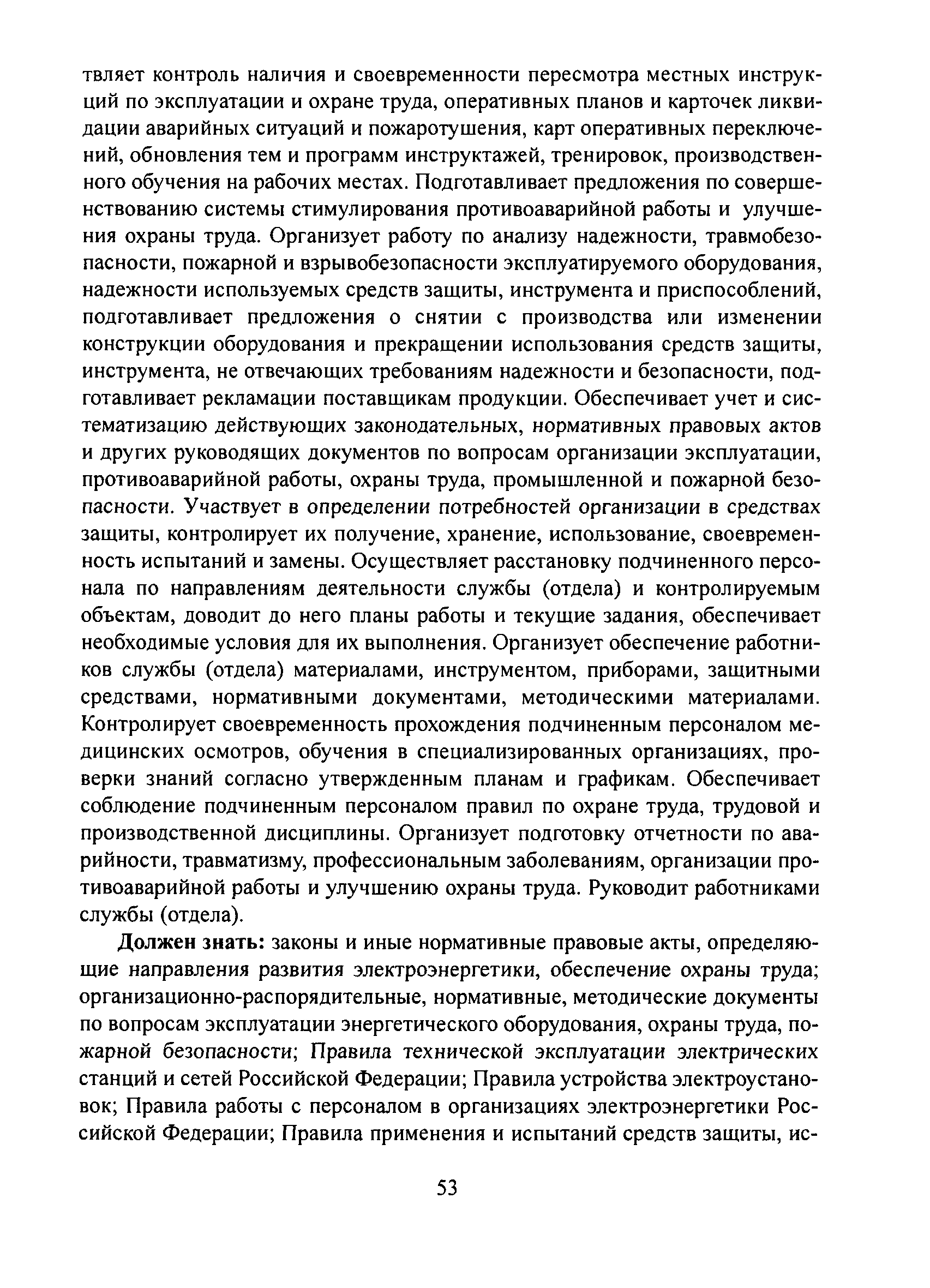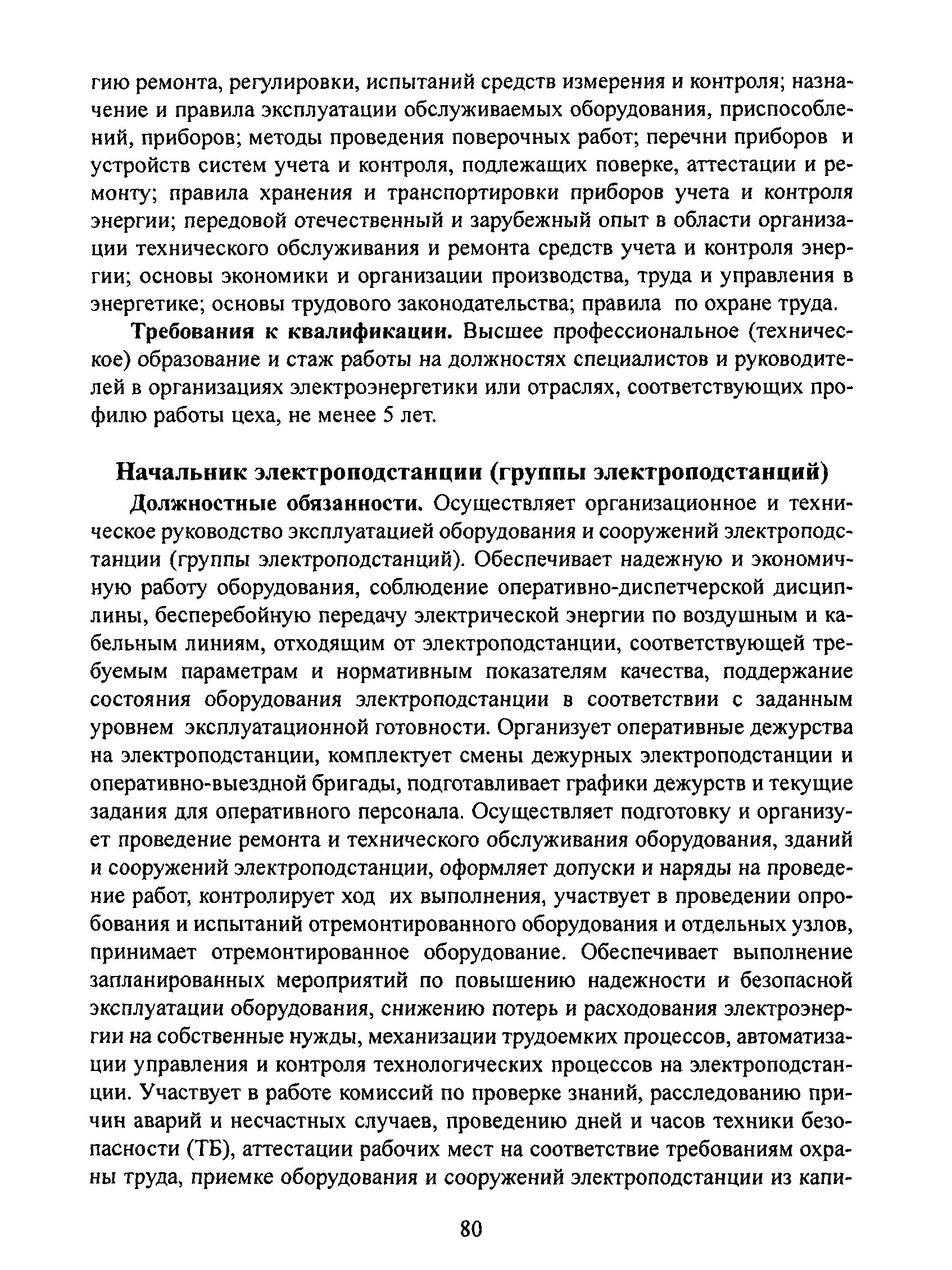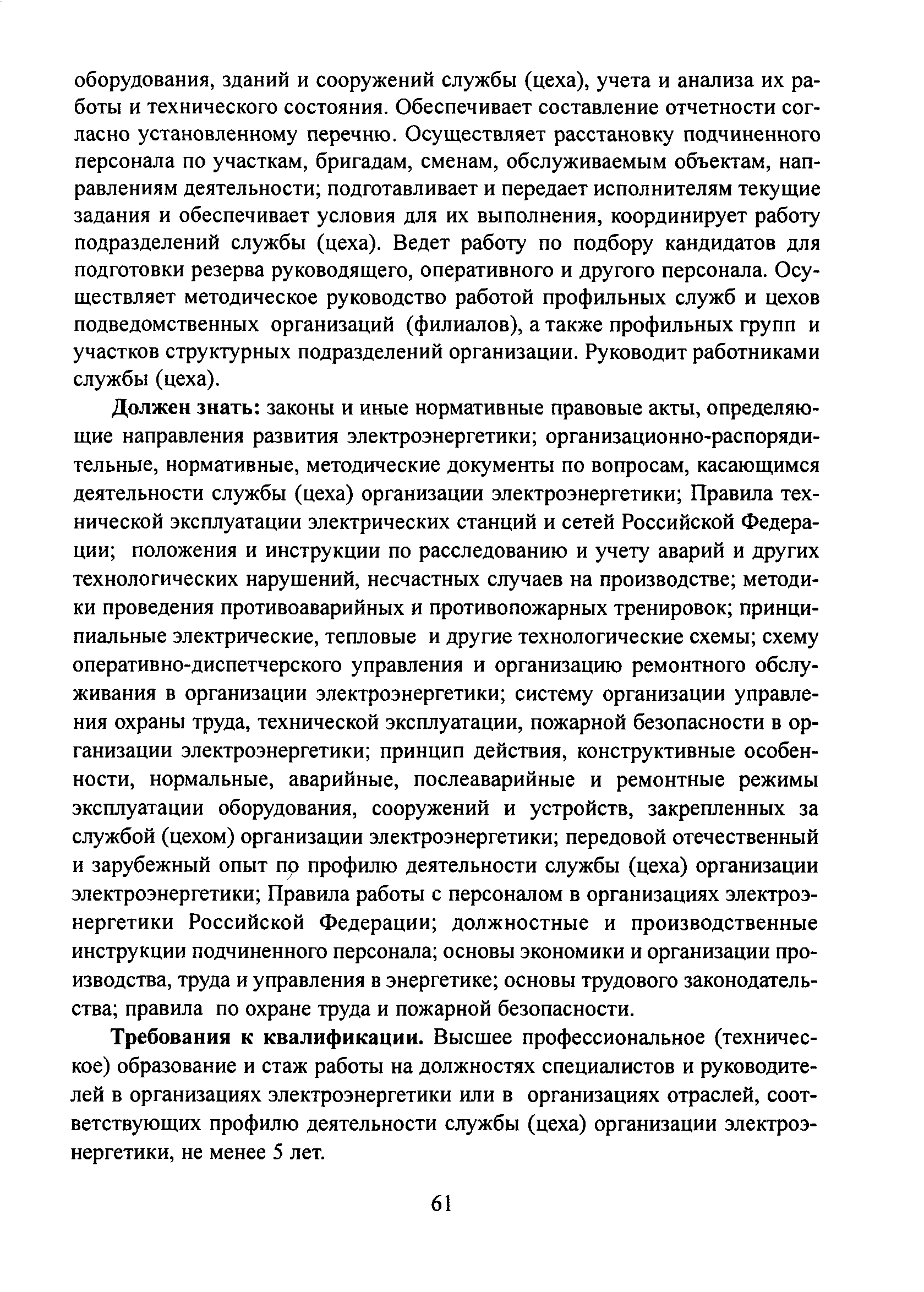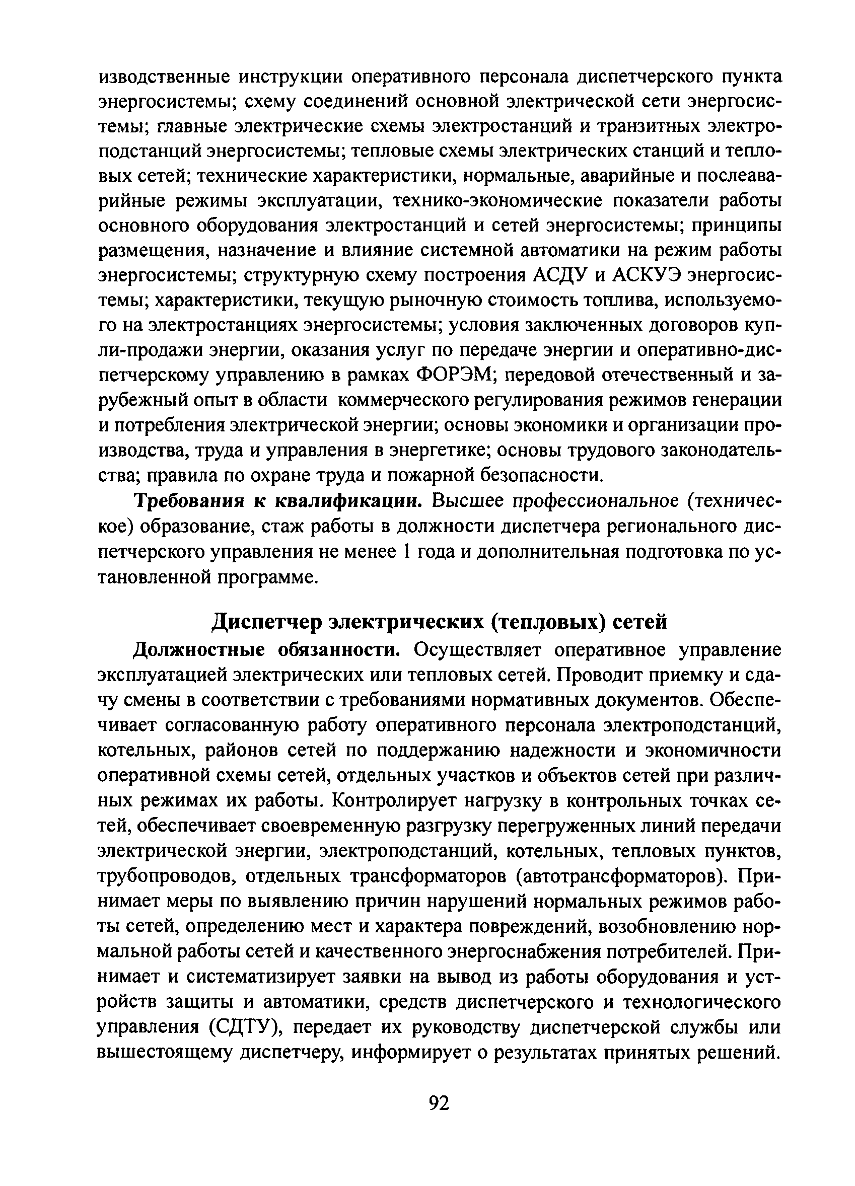 Квалификационный справочник должностей руководителей, специалистов и других служащих организаций электроэнергетики| Статус: | действует | | Название рус.: | Квалификационный справочник должностей руководителей, специалистов и других служащих организаций электроэнергетики | | Дата добавления в базу: | 01.09.2013 | | Дата актуализации: | 01.01.2021 | | Область применения: | Справочник включает квалификационные характеристики должностей руководителей, специалистов и других служащих, специфичных для электроэнергетики, он может применяться во всех организациях энергетического комплекса независимо от типов этих организаций, их организационно-правовых форм собственности в целях обеспечения правильного подбора, расстановки и использования кадров. | | Оглавление: | Общие положения I Должности руководителей II Должности специалистов III Должности других служащих (технических исполнителей) | | Разработан: | ОАО ЦОТэнерго