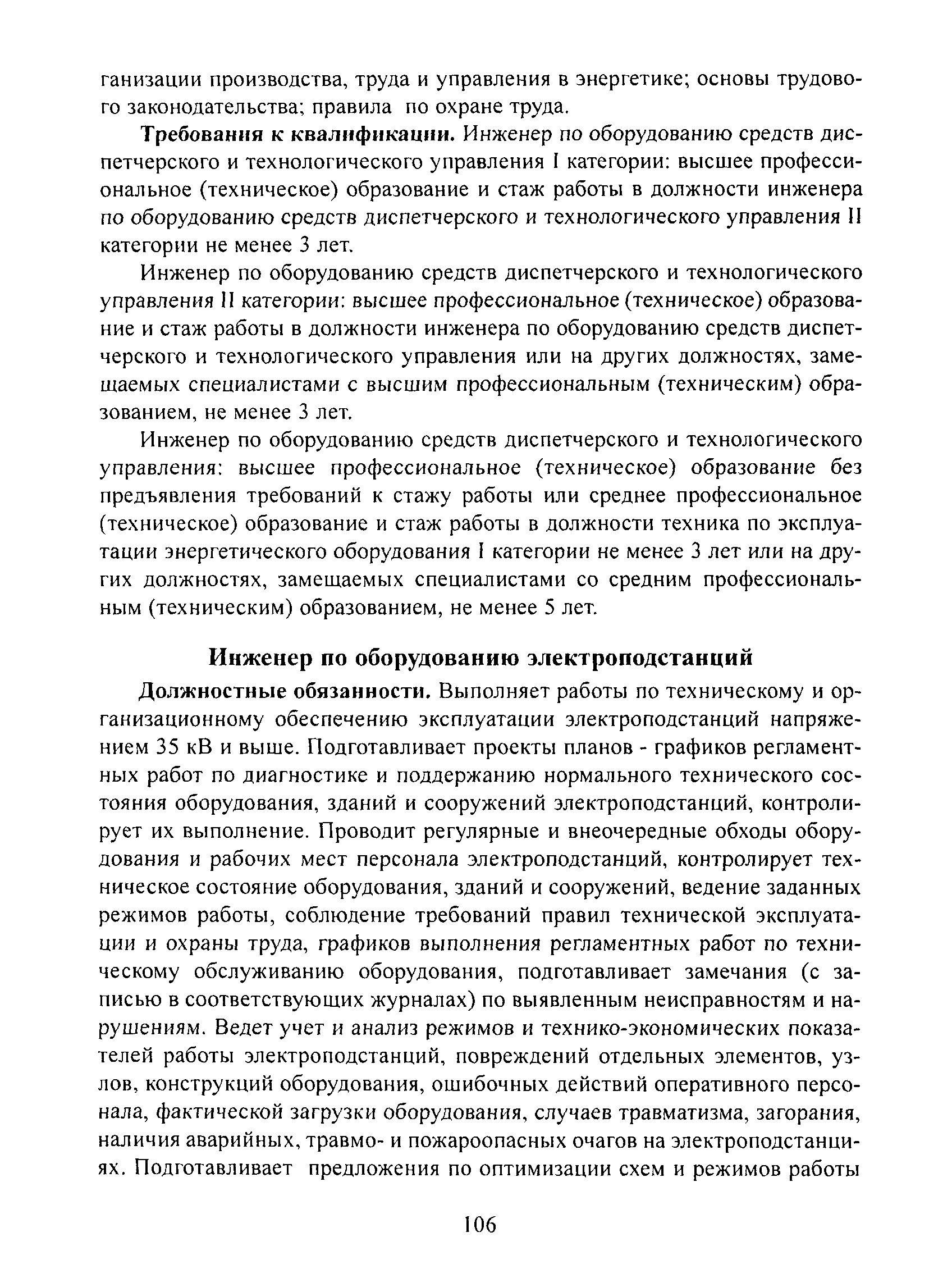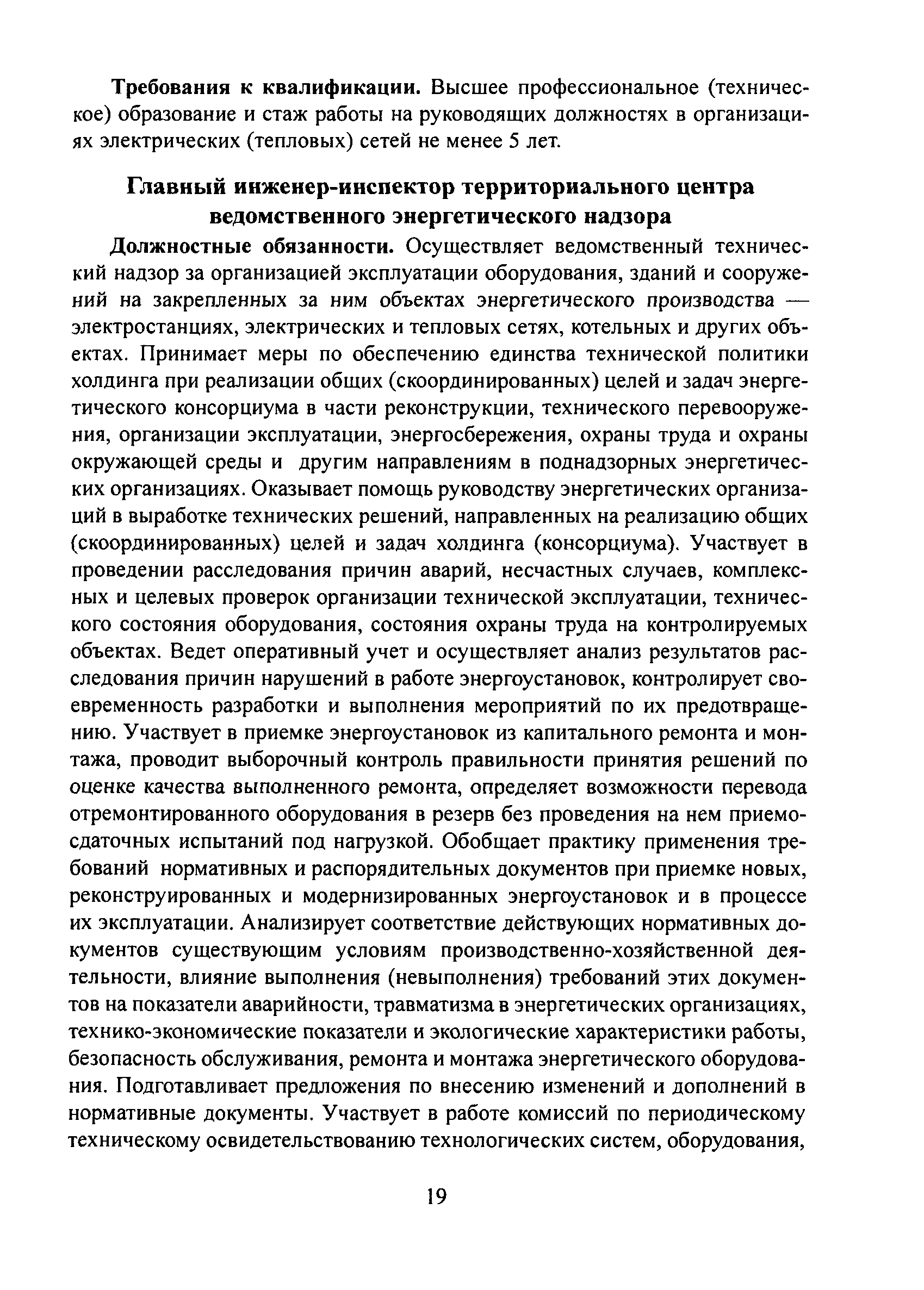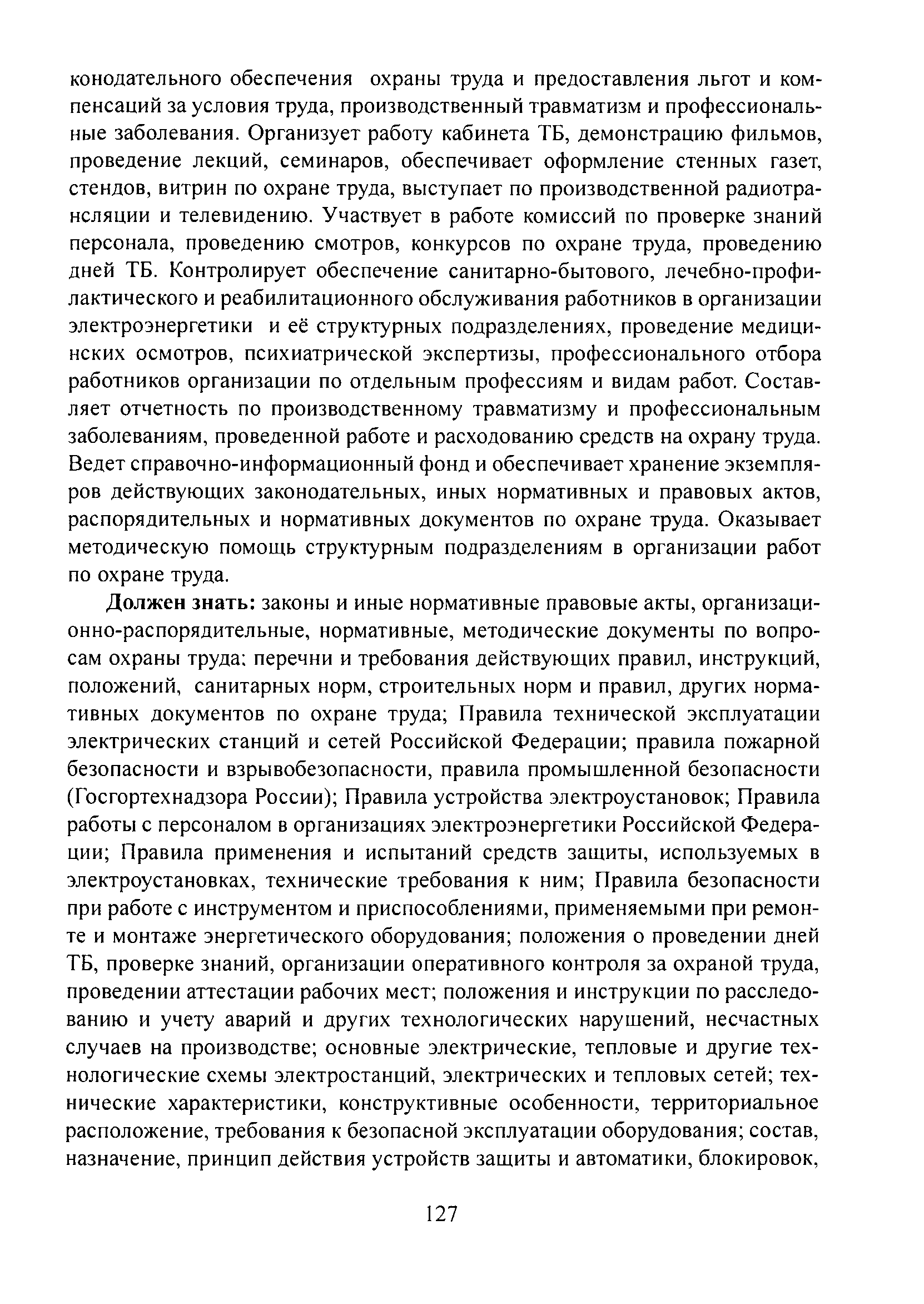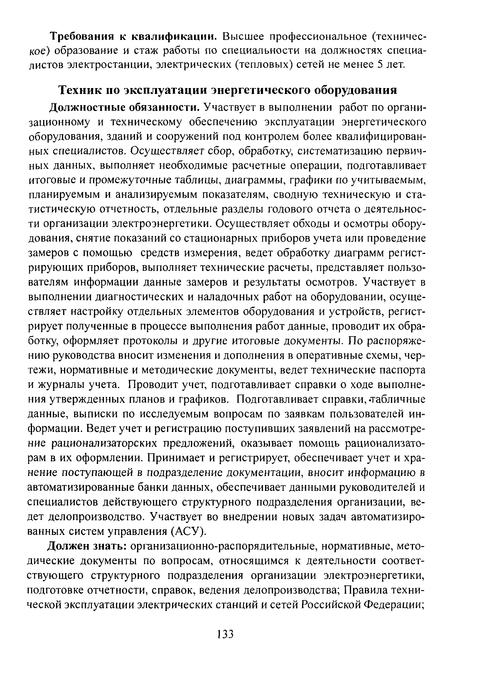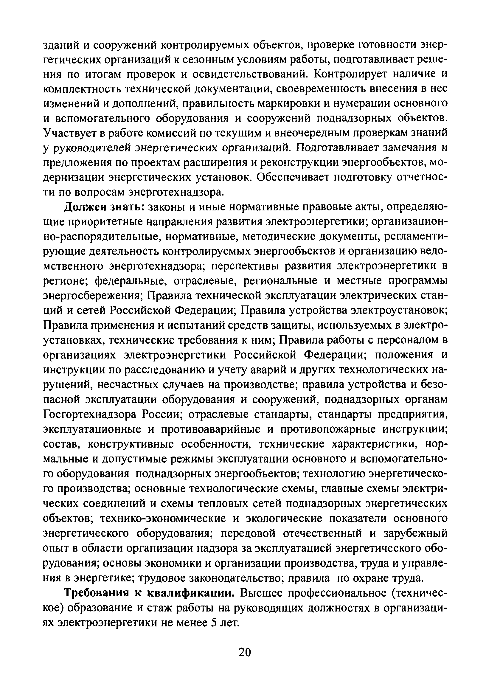 Квалификационный справочник должностей руководителей, специалистов и других служащих организаций электроэнергетики| Статус: | действует | | Название рус.: | Квалификационный справочник должностей руководителей, специалистов и других служащих организаций электроэнергетики | | Дата добавления в базу: | 01.09.2013 | | Дата актуализации: | 01.01.2021 | | Область применения: | Справочник включает квалификационные характеристики должностей руководителей, специалистов и других служащих, специфичных для электроэнергетики, он может применяться во всех организациях энергетического комплекса независимо от типов этих организаций, их организационно-правовых форм собственности в целях обеспечения правильного подбора, расстановки и использования кадров. | | Оглавление: | Общие положения I Должности руководителей II Должности специалистов III Должности других служащих (технических исполнителей) | | Разработан: | ОАО ЦОТэнерго