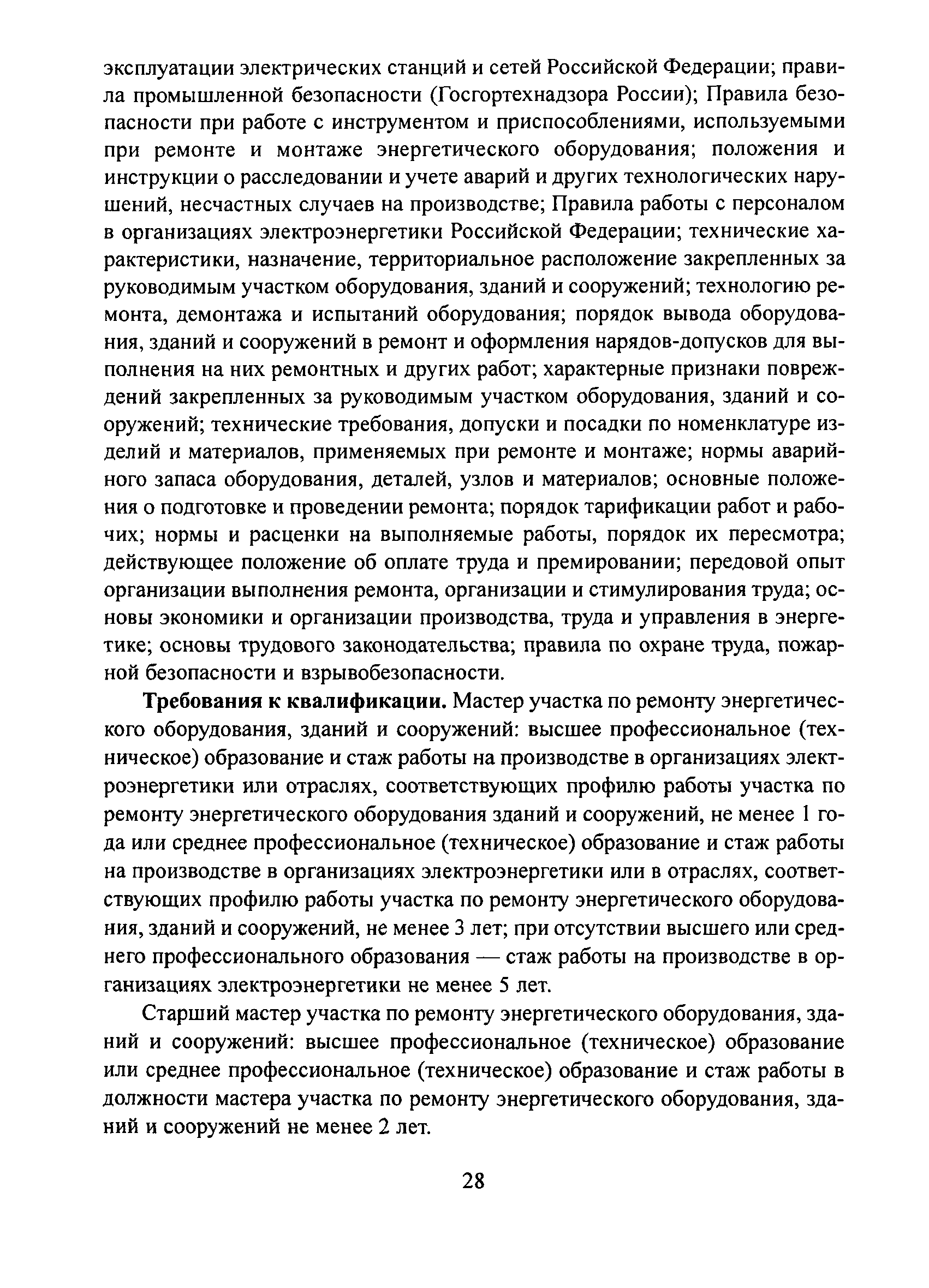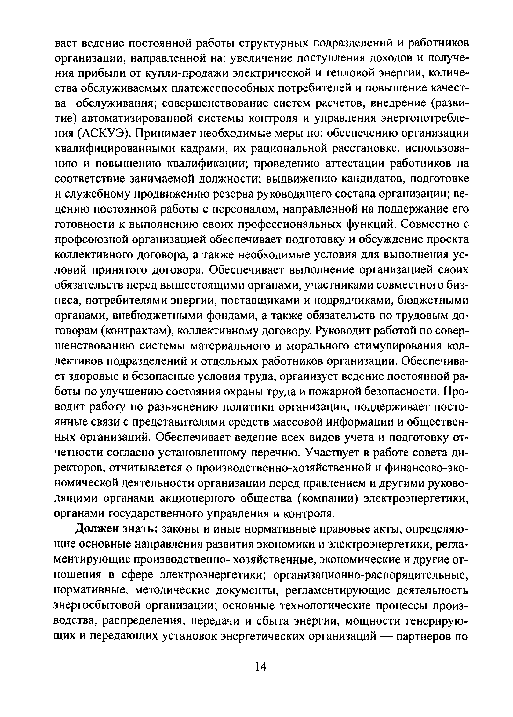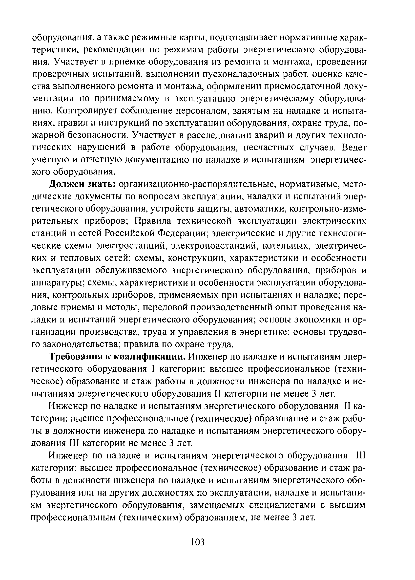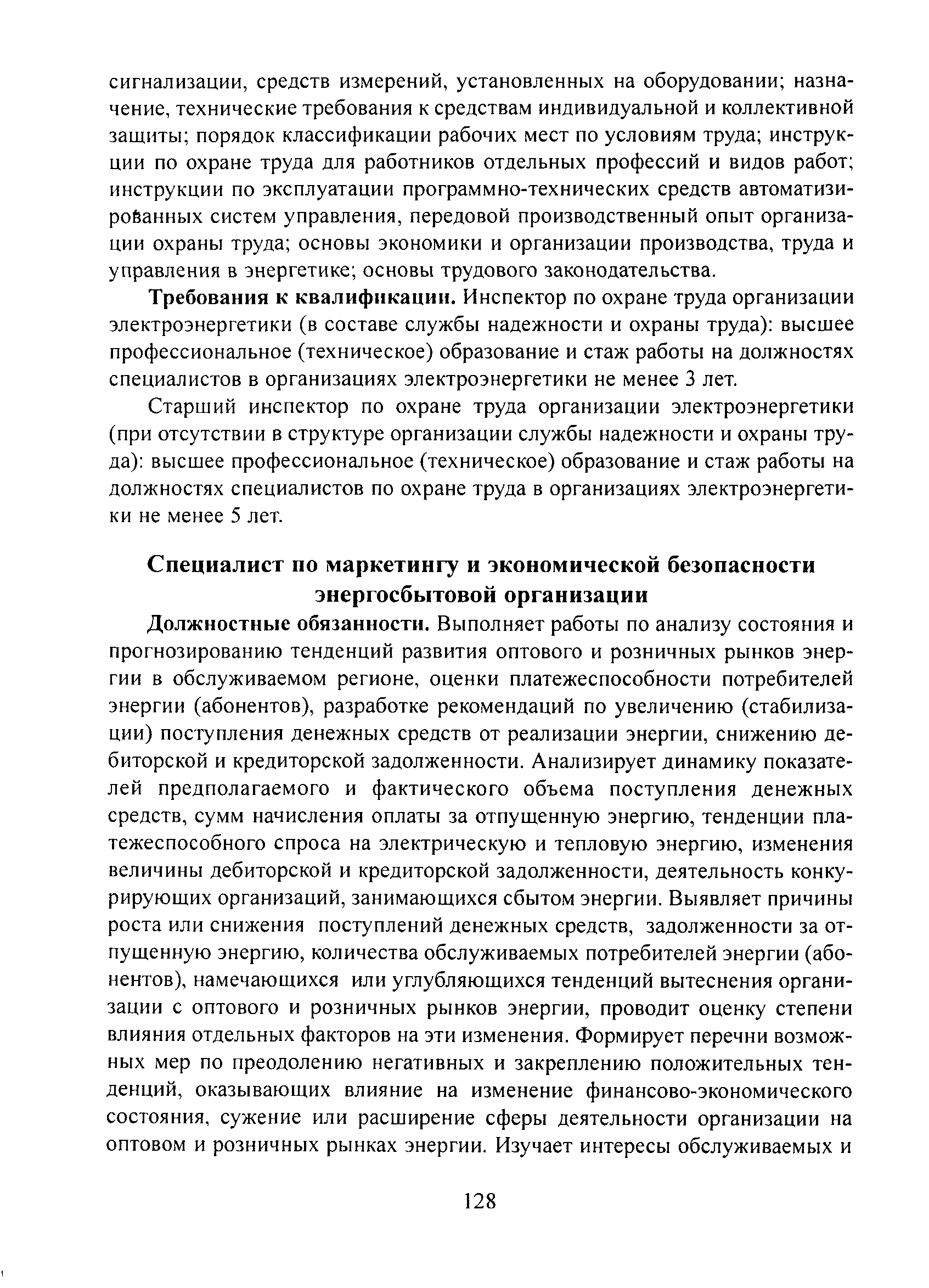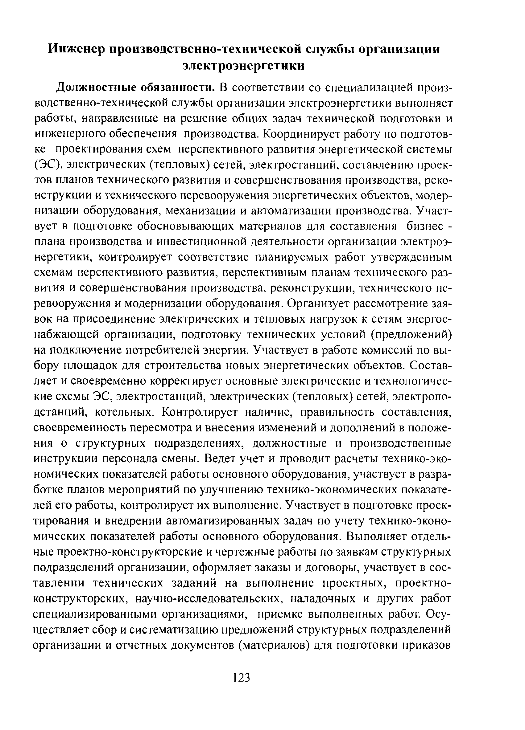 Квалификационный справочник должностей руководителей, специалистов и других служащих организаций электроэнергетики| Статус: | действует | | Название рус.: | Квалификационный справочник должностей руководителей, специалистов и других служащих организаций электроэнергетики | | Дата добавления в базу: | 01.09.2013 | | Дата актуализации: | 01.01.2021 | | Область применения: | Справочник включает квалификационные характеристики должностей руководителей, специалистов и других служащих, специфичных для электроэнергетики, он может применяться во всех организациях энергетического комплекса независимо от типов этих организаций, их организационно-правовых форм собственности в целях обеспечения правильного подбора, расстановки и использования кадров. | | Оглавление: | Общие положения I Должности руководителей II Должности специалистов III Должности других служащих (технических исполнителей) | | Разработан: | ОАО ЦОТэнерго