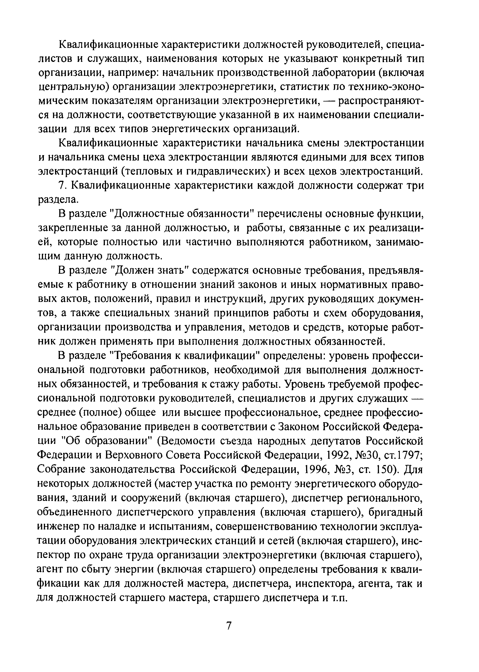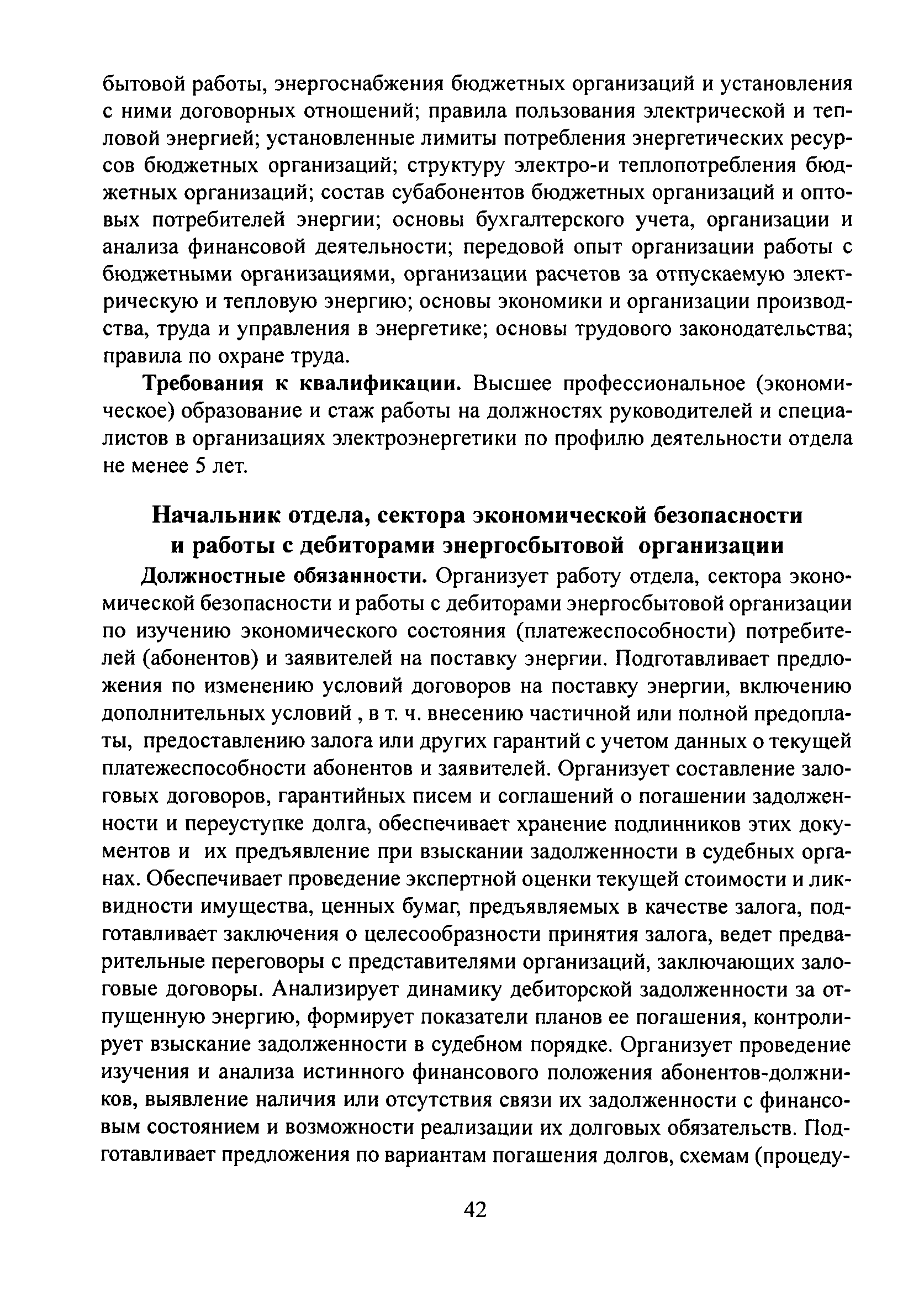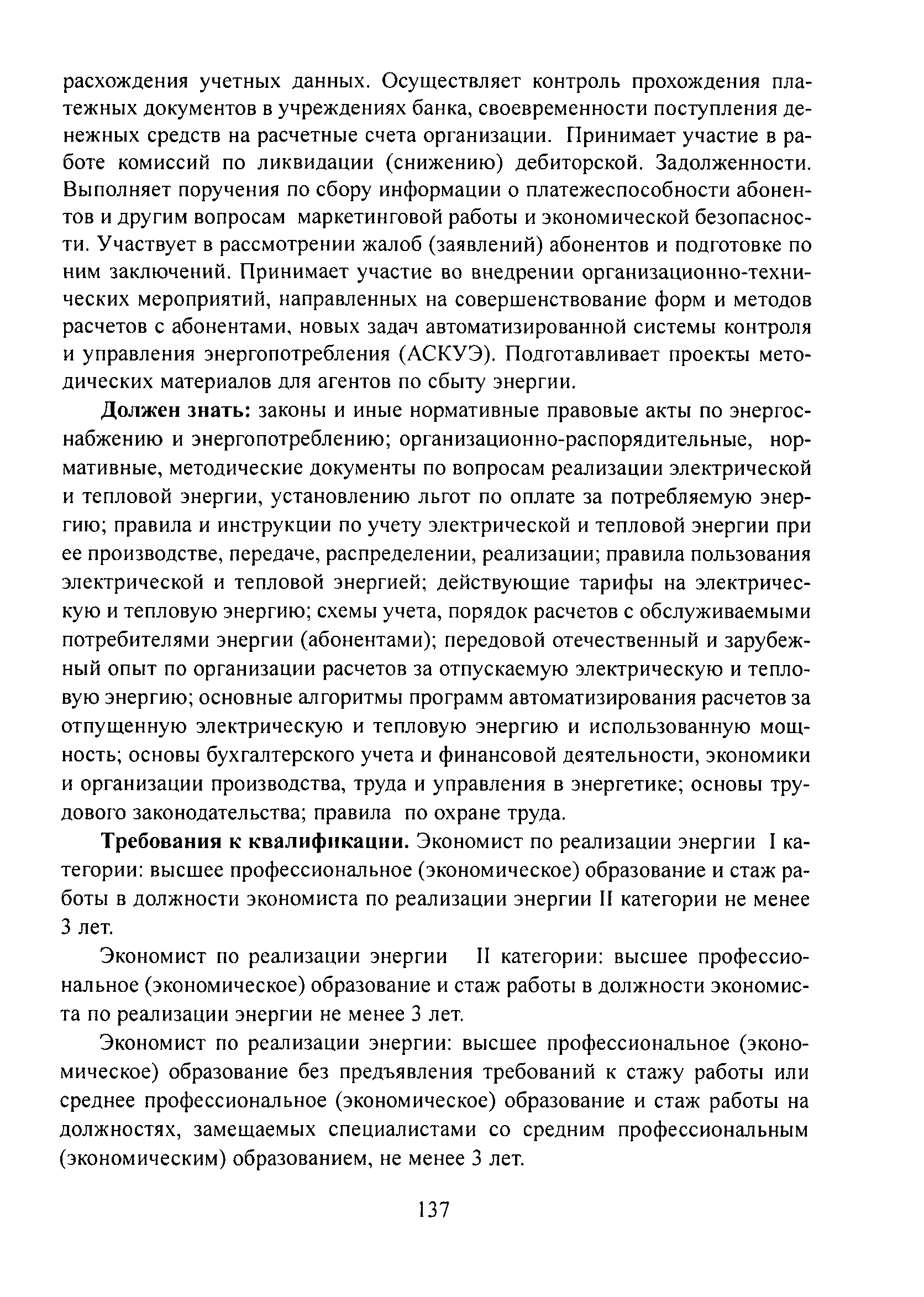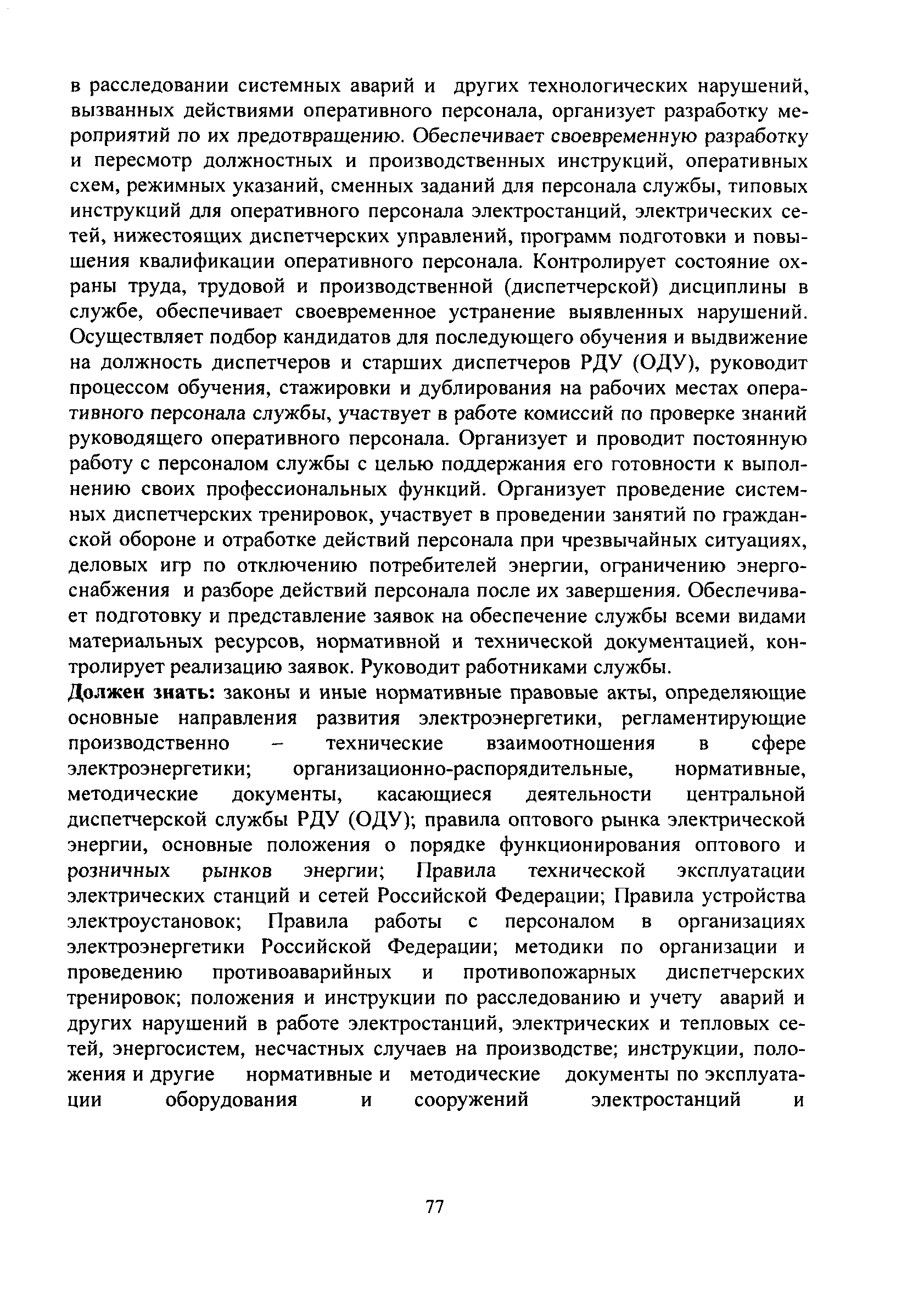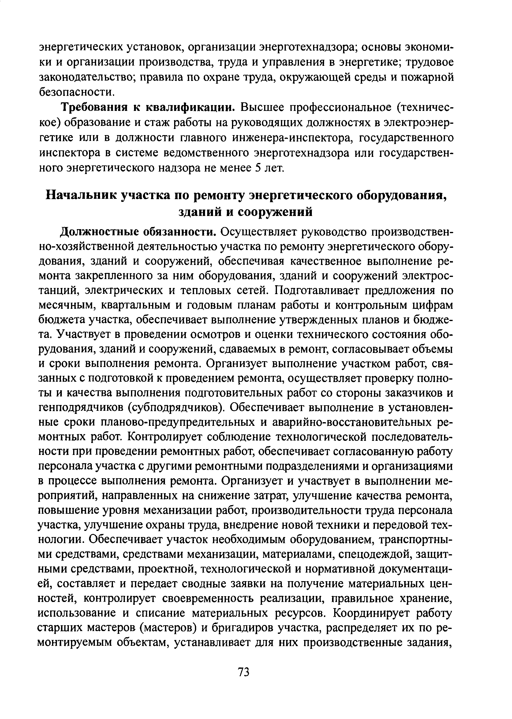 Квалификационный справочник должностей руководителей, специалистов и других служащих организаций электроэнергетики| Статус: | действует | | Название рус.: | Квалификационный справочник должностей руководителей, специалистов и других служащих организаций электроэнергетики | | Дата добавления в базу: | 01.09.2013 | | Дата актуализации: | 01.01.2021 | | Область применения: | Справочник включает квалификационные характеристики должностей руководителей, специалистов и других служащих, специфичных для электроэнергетики, он может применяться во всех организациях энергетического комплекса независимо от типов этих организаций, их организационно-правовых форм собственности в целях обеспечения правильного подбора, расстановки и использования кадров. | | Оглавление: | Общие положения I Должности руководителей II Должности специалистов III Должности других служащих (технических исполнителей) | | Разработан: | ОАО ЦОТэнерго