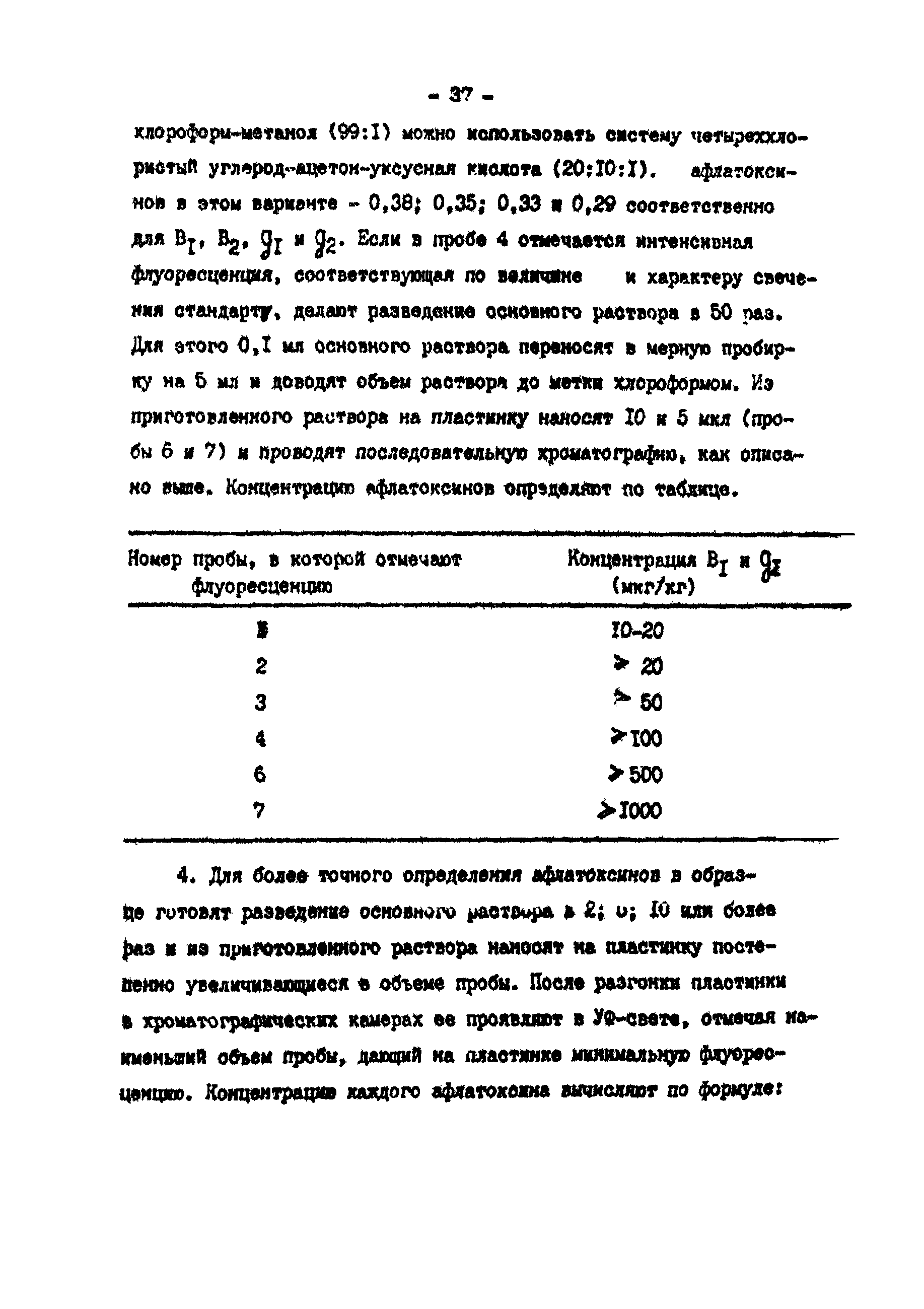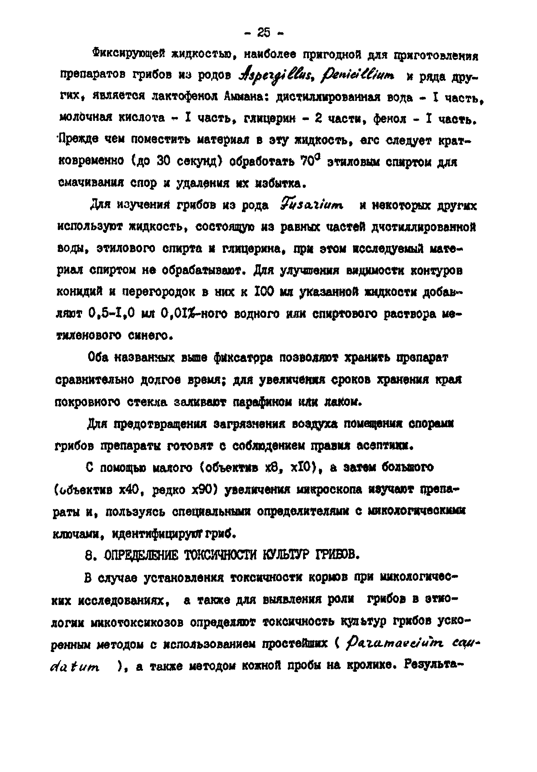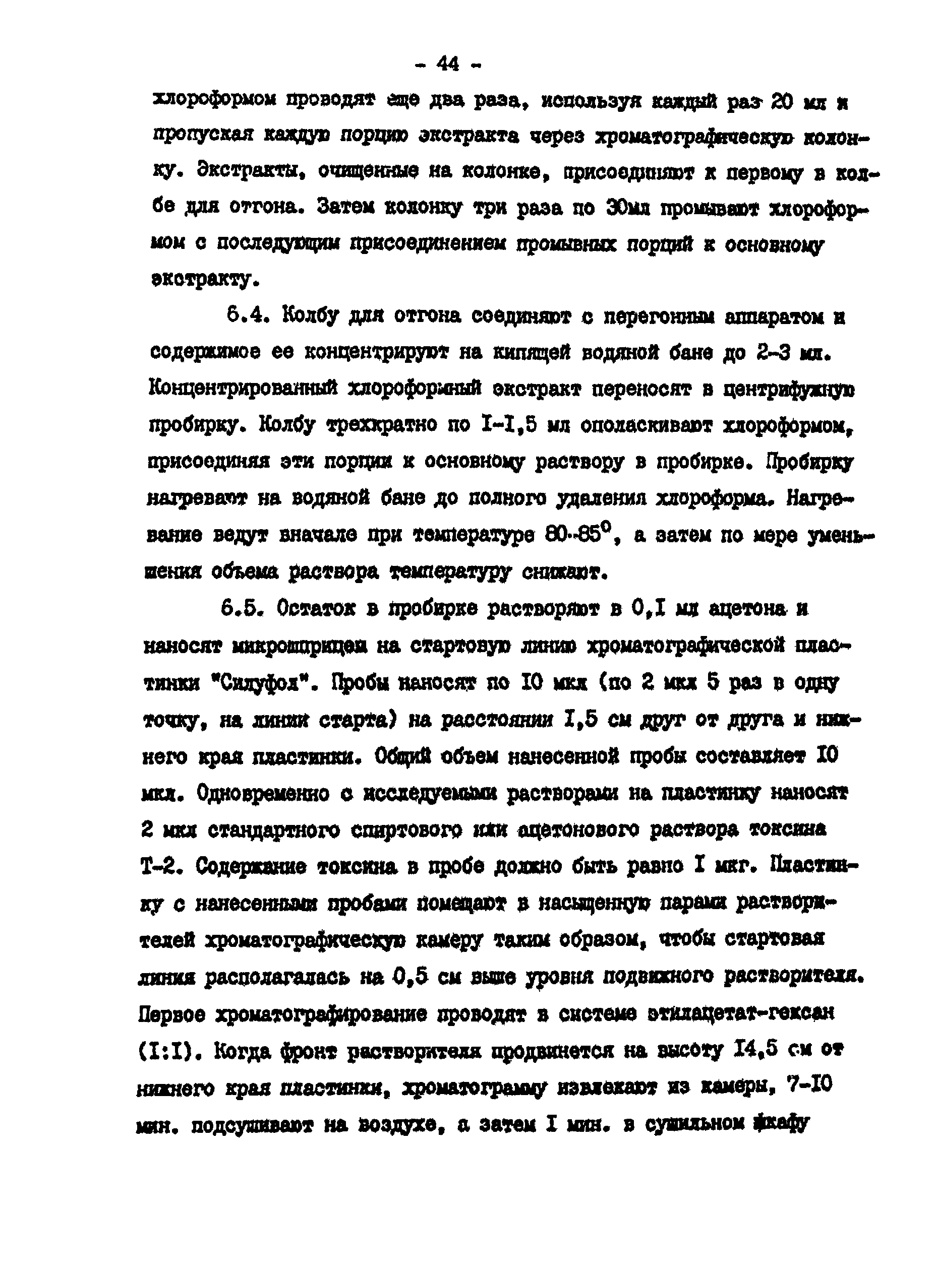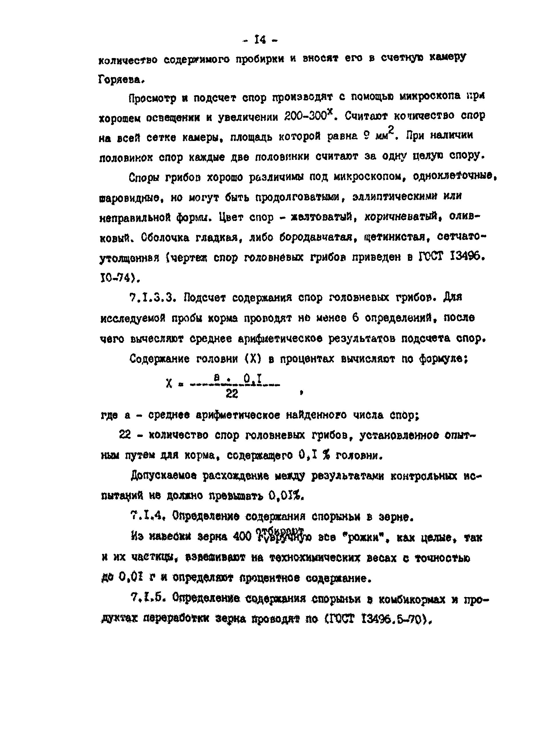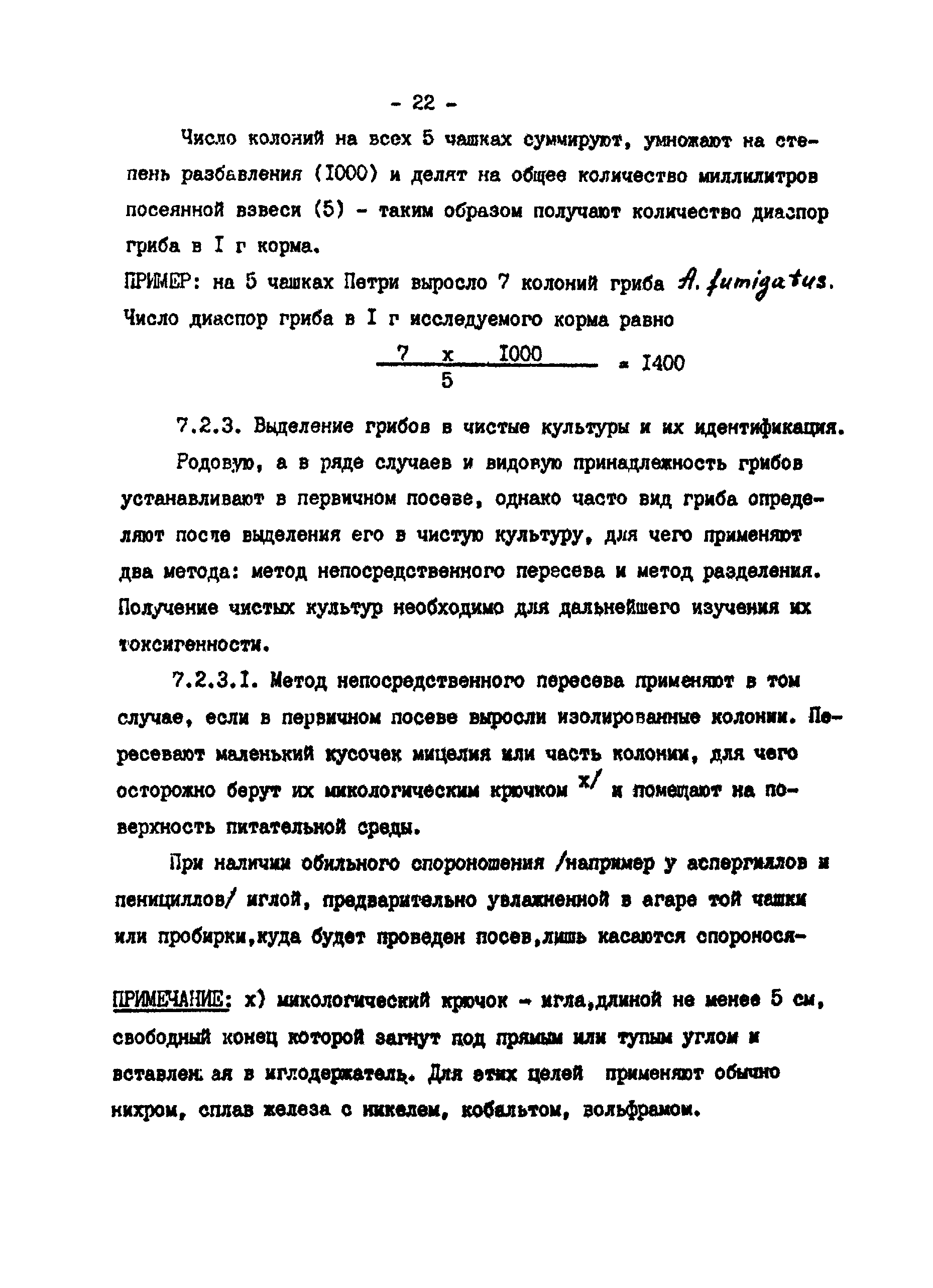 Указания не распространяются на пищевые отходы, премиксы, БВД, травяную муку, новые кормовые средства, находящиеся в стадии производственной апробации или кормовые средства, не имеющие показателей санитарной оценки. | | Оглавление: | 1. Общее положение 2. Исследование кормов 3. Продолжительность исследования проб кормов 4. Порядок отбора проб, оформление и хранение образцов кормовых средств, направляемых на исследование 5. Органолептический анализ 6. Токсико-биологический анализ 7. Микологический анализ 8. Определение токсичности культур грибов 8.1. Определение токсичности культур грибов на простейших Раrаmаеium саudаtum 8.2. Определение токсичности культур грибов методом кожной пробы на кролике 9. Физико-химический анализ 10. Порядок использования некондиционных кормов 10.1. Грубые корма (сено, солома, полова) 10.2. Комбинированные корма 10.3. Концентрированные корма Приложение 1 Методика количественного определения афлатоксинов В1 и С1 в кормах Приложение 2 Методика качественного определения микотоксина Т-2 в зернофураже Приложение 3 Методика определения мекотоксина зеараленона (Ф-2) в фуражном зерне и комбикормах Приложение 4 Обработка некондиционных кормов Приложение 5 Методика определения токсичности фуражного зерна, продуктов его переработки и комбикормов Приложение 6 Методика определения токсичности шротов, жмыхов и кормовых дрожжей Приложение 7 Питательные среды для культивирования грибов Приложение 8 Среды для культивирования парамеций | | Утверждён: | 25.02.1985 Минсельхоз СССР (USSR Minselkhoz )