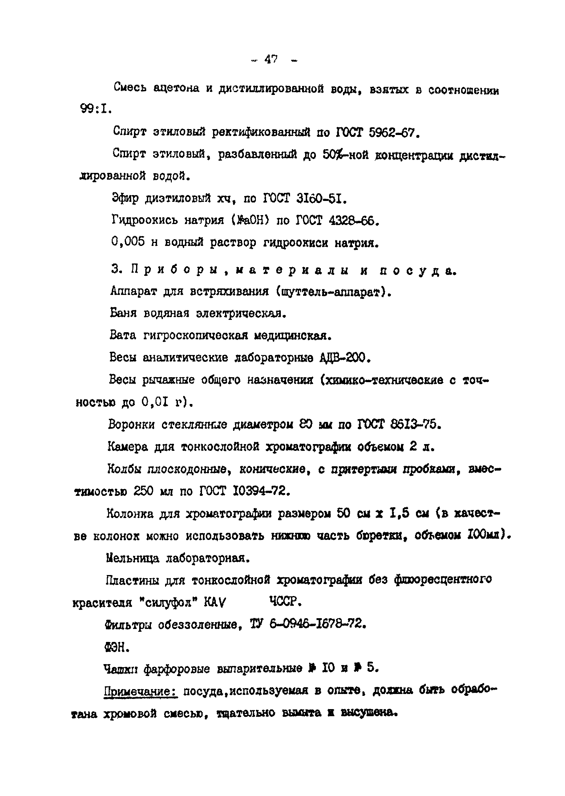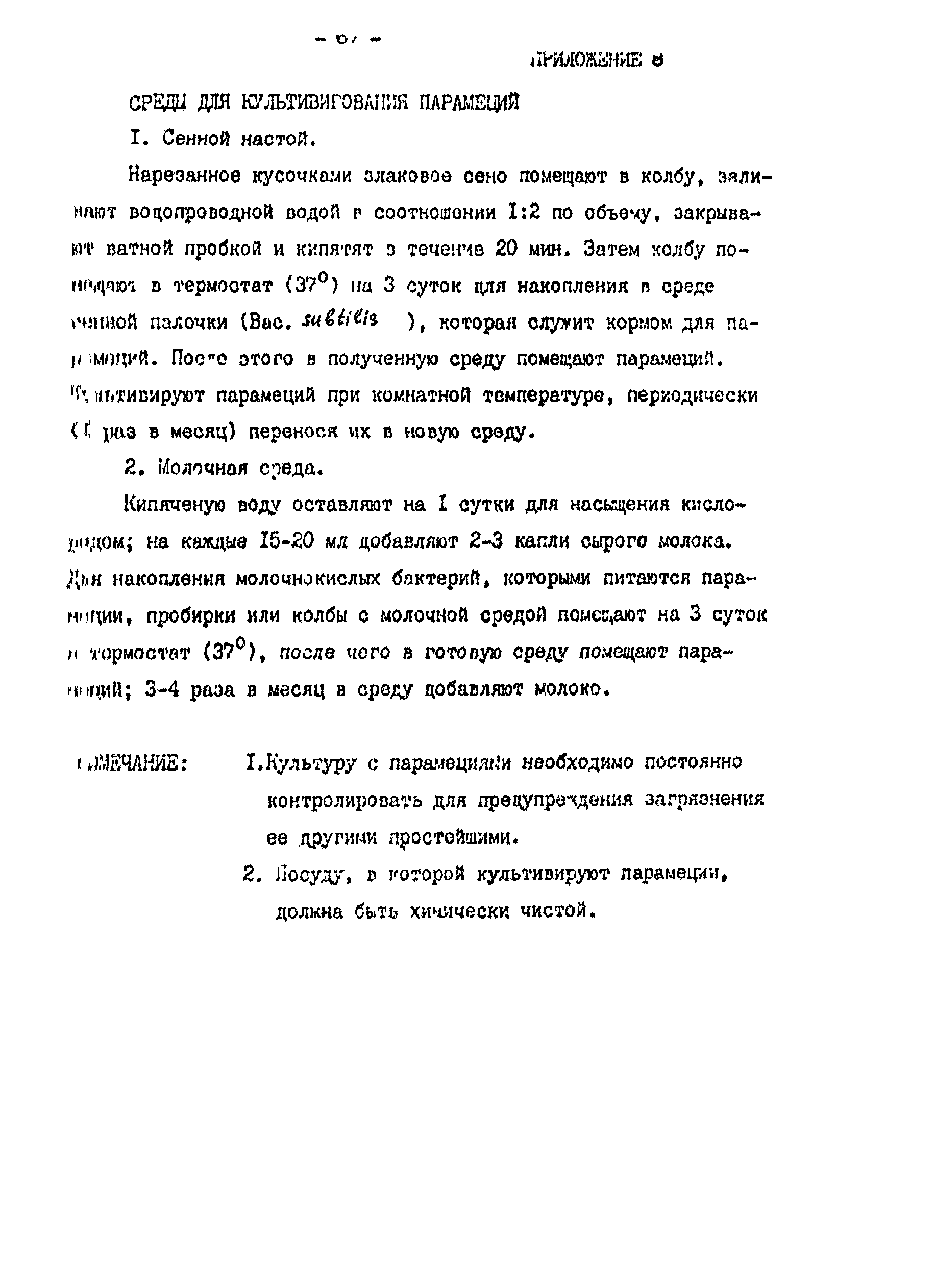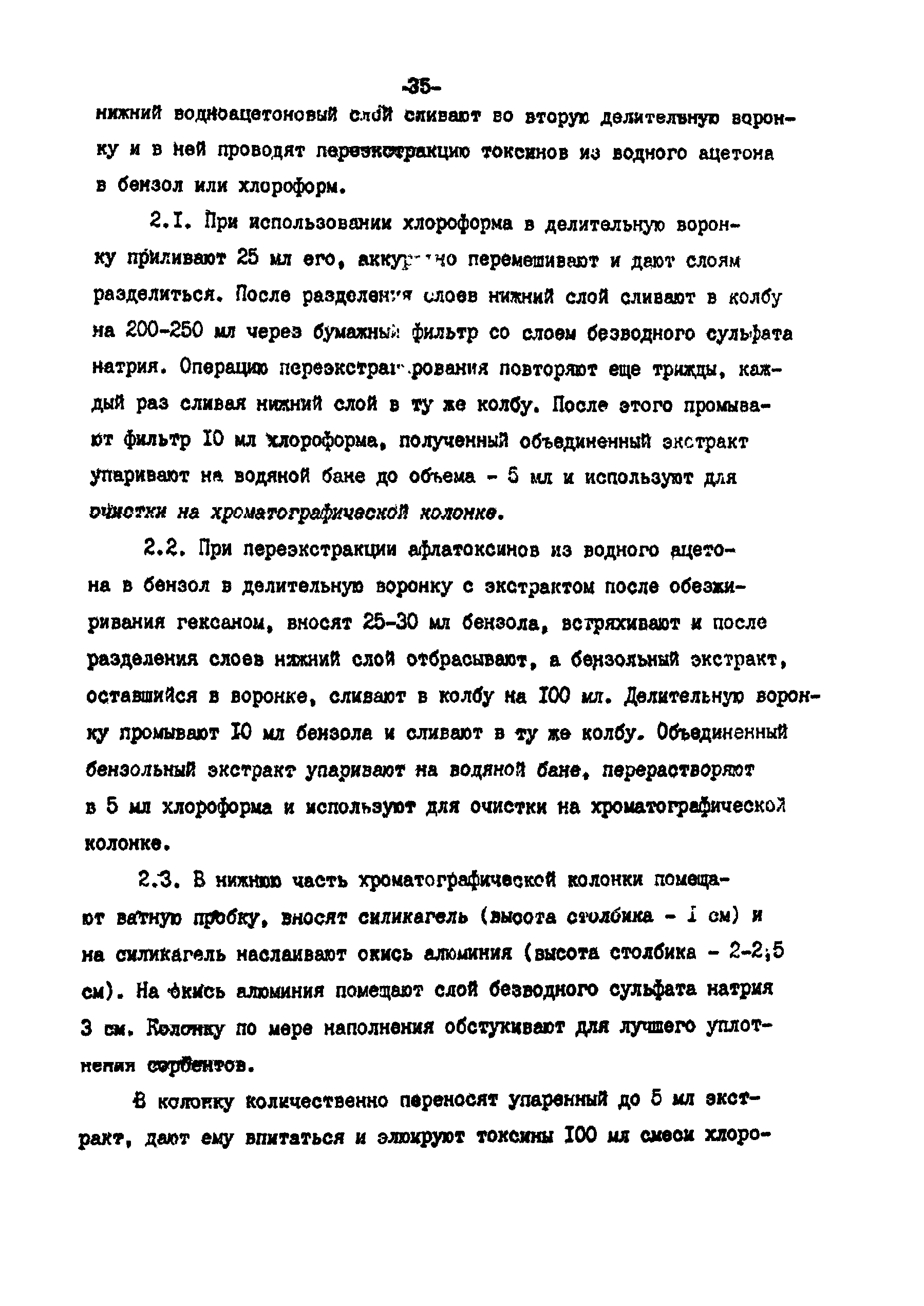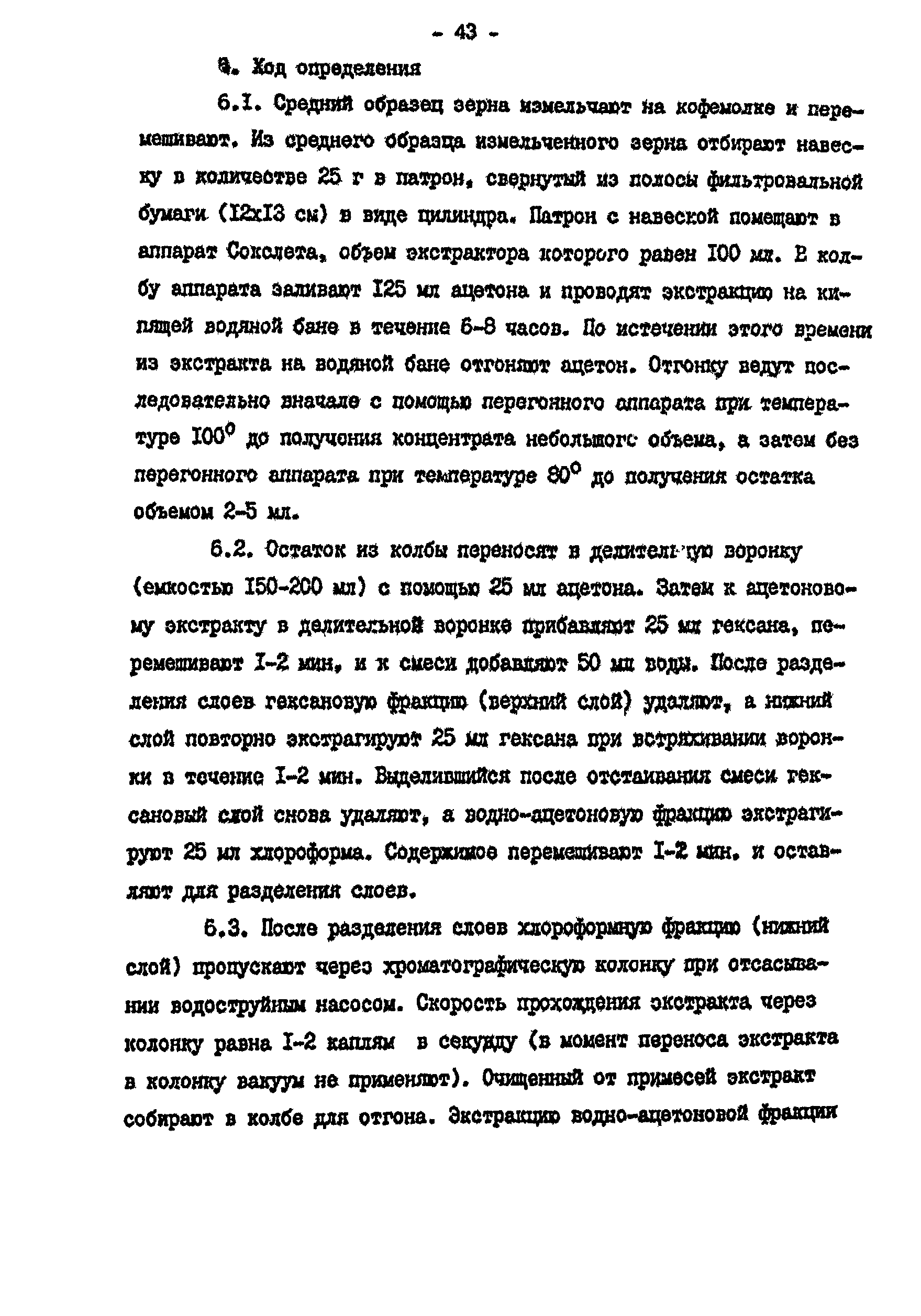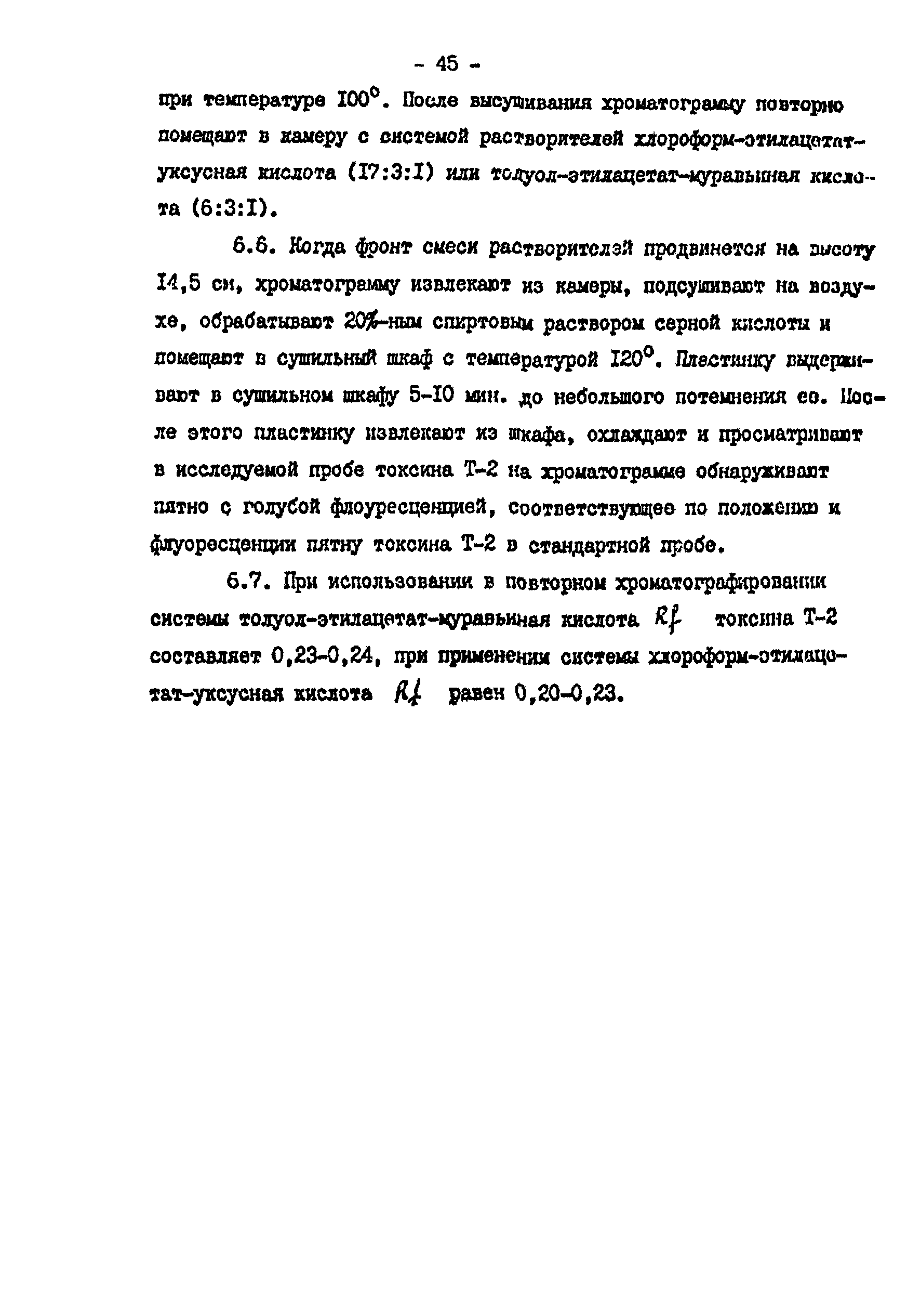 Указания не распространяются на пищевые отходы, премиксы, БВД, травяную муку, новые кормовые средства, находящиеся в стадии производственной апробации или кормовые средства, не имеющие показателей санитарной оценки. | | Оглавление: | 1. Общее положение 2. Исследование кормов 3. Продолжительность исследования проб кормов 4. Порядок отбора проб, оформление и хранение образцов кормовых средств, направляемых на исследование 5. Органолептический анализ 6. Токсико-биологический анализ 7. Микологический анализ 8. Определение токсичности культур грибов 8.1. Определение токсичности культур грибов на простейших Раrаmаеium саudаtum 8.2. Определение токсичности культур грибов методом кожной пробы на кролике 9. Физико-химический анализ 10. Порядок использования некондиционных кормов 10.1. Грубые корма (сено, солома, полова) 10.2. Комбинированные корма 10.3. Концентрированные корма Приложение 1 Методика количественного определения афлатоксинов В1 и С1 в кормах Приложение 2 Методика качественного определения микотоксина Т-2 в зернофураже Приложение 3 Методика определения мекотоксина зеараленона (Ф-2) в фуражном зерне и комбикормах Приложение 4 Обработка некондиционных кормов Приложение 5 Методика определения токсичности фуражного зерна, продуктов его переработки и комбикормов Приложение 6 Методика определения токсичности шротов, жмыхов и кормовых дрожжей Приложение 7 Питательные среды для культивирования грибов Приложение 8 Среды для культивирования парамеций | | Утверждён: | 25.02.1985 Минсельхоз СССР (USSR Minselkhoz )