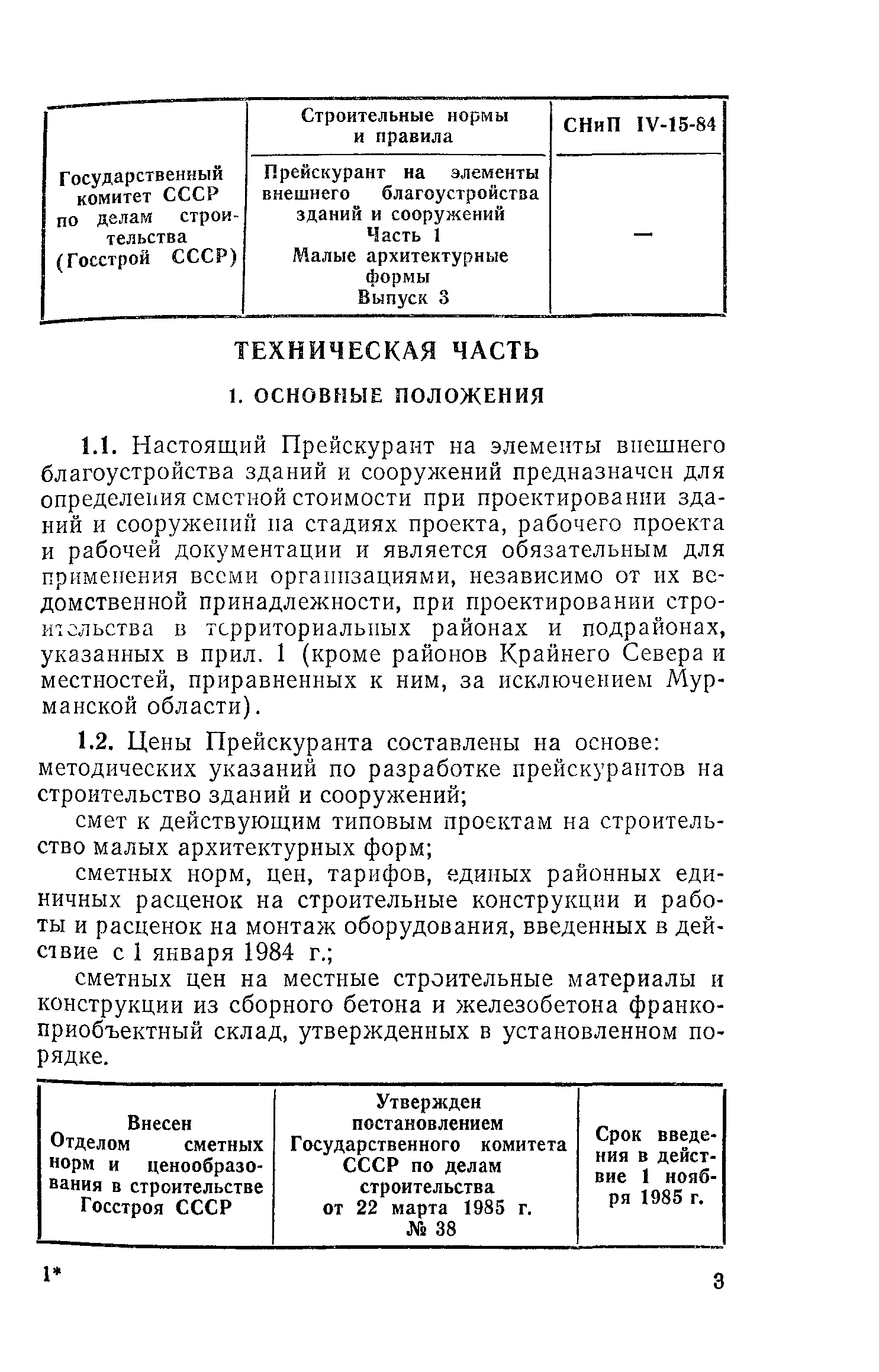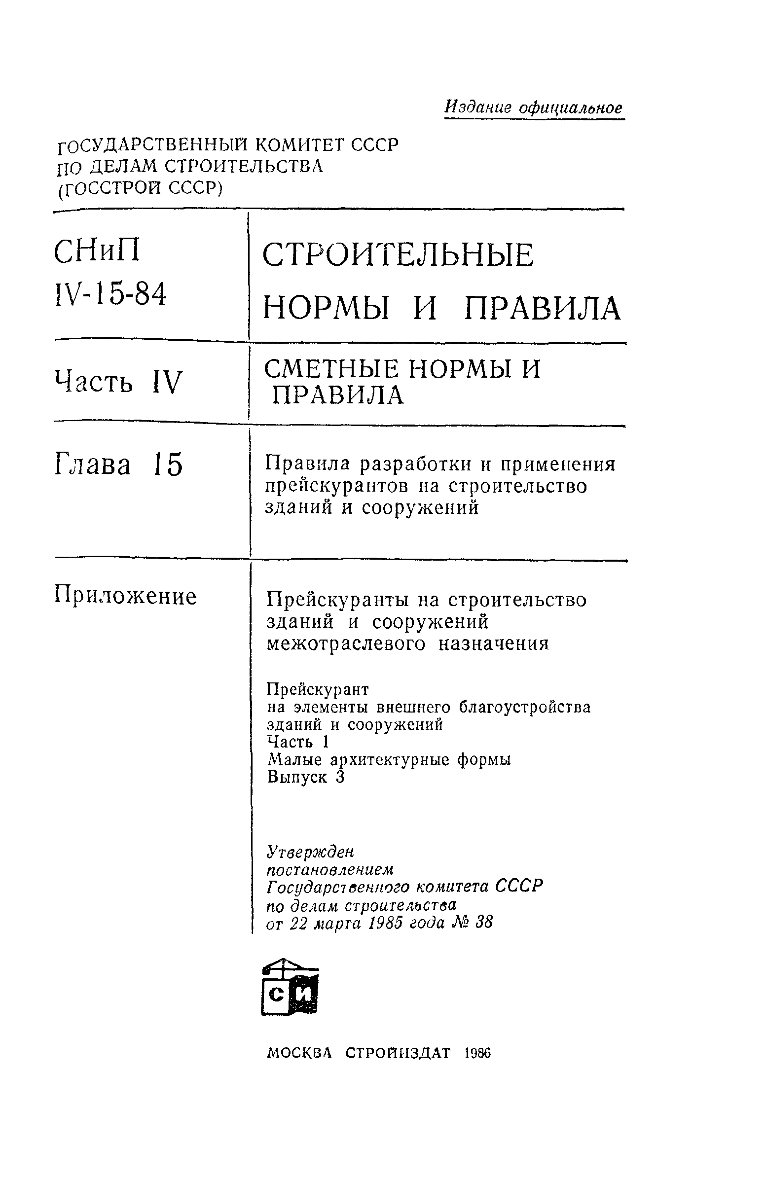 | | Утверждён: | 22.03.1985 Госстрой СССР (Государственный комитет Совета Министров СССР по делам строительства) (USSR Gosstroy 38)