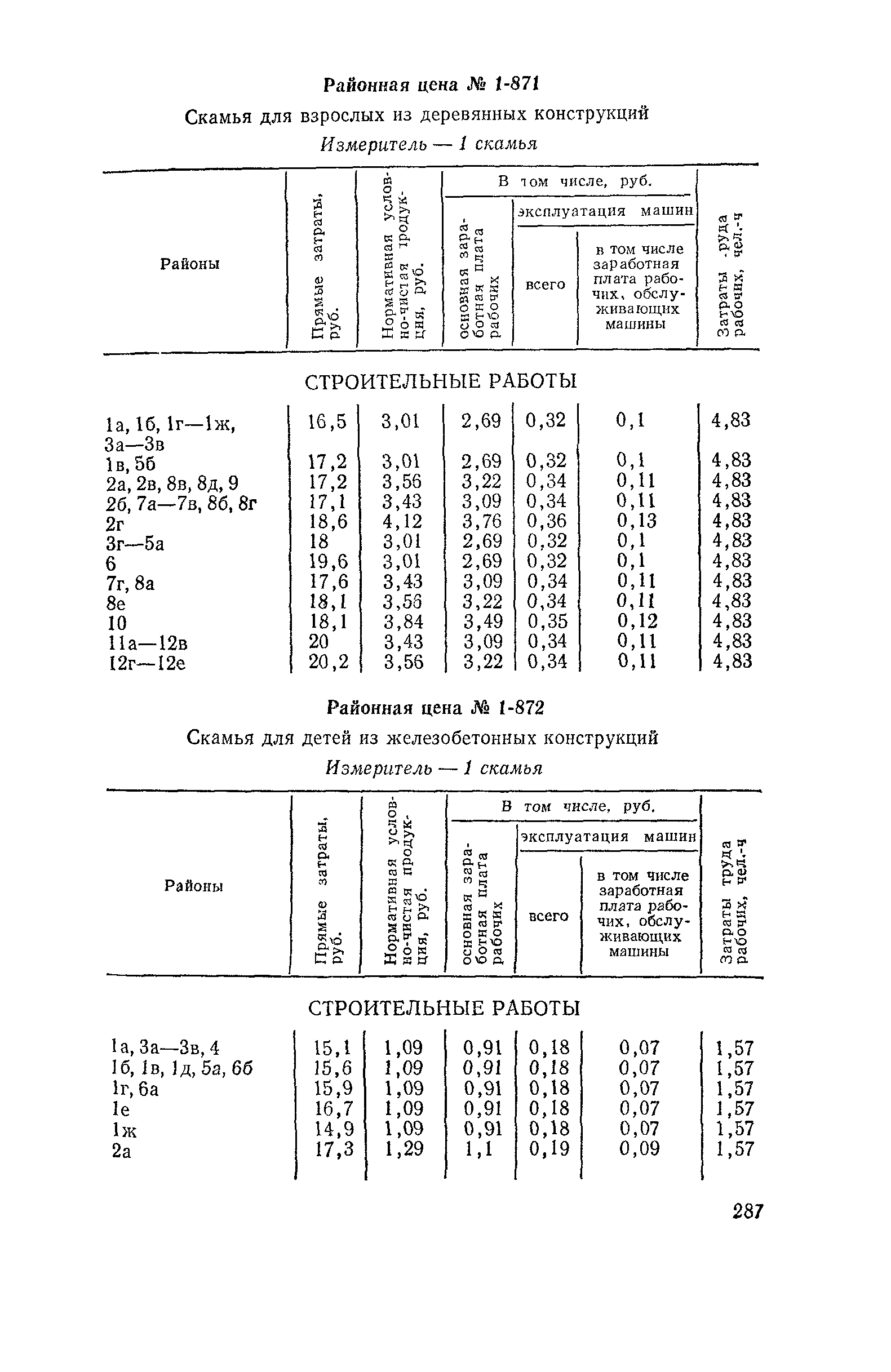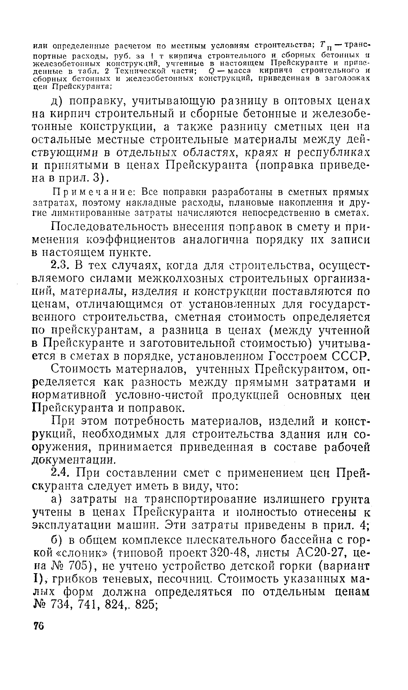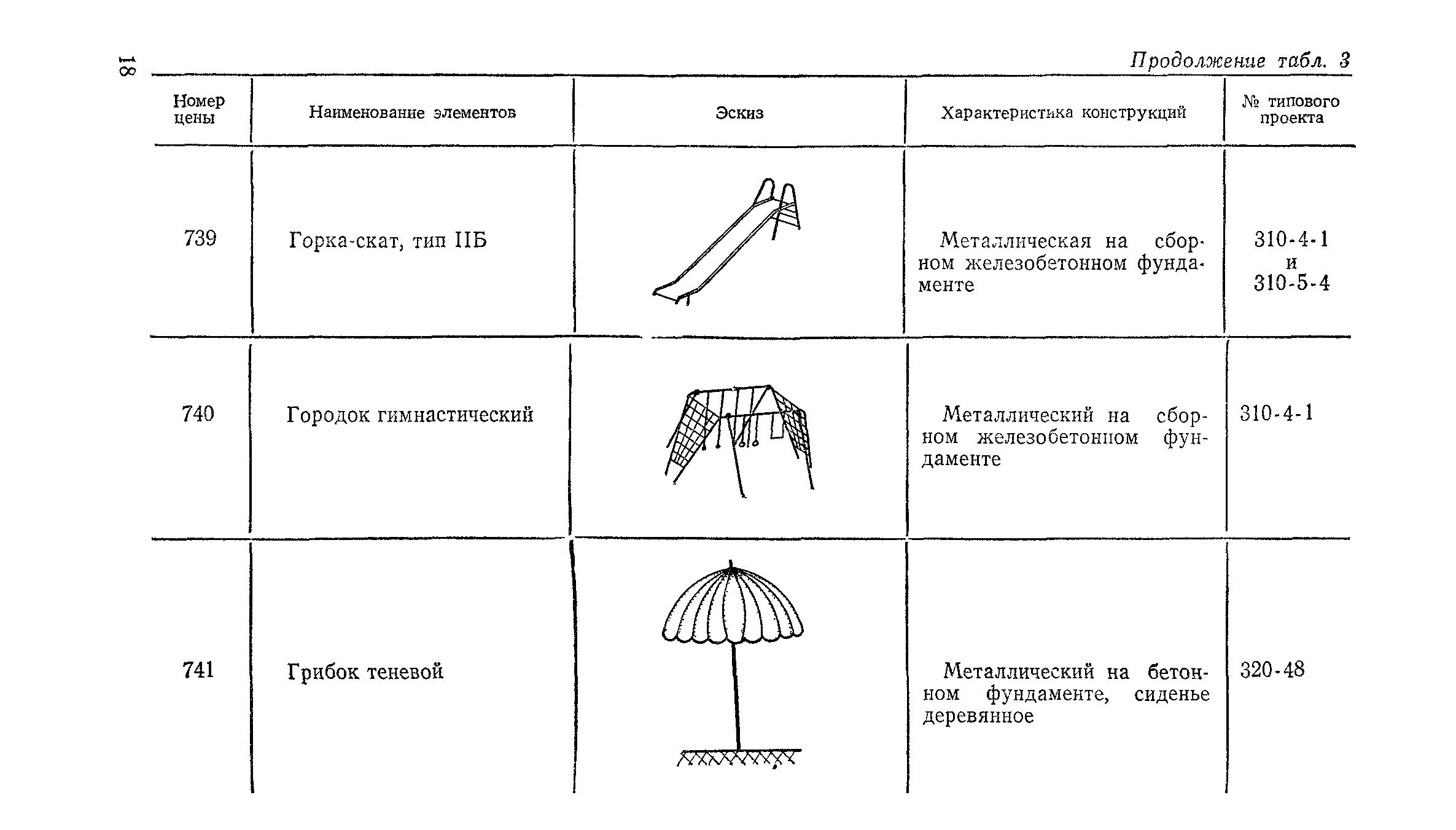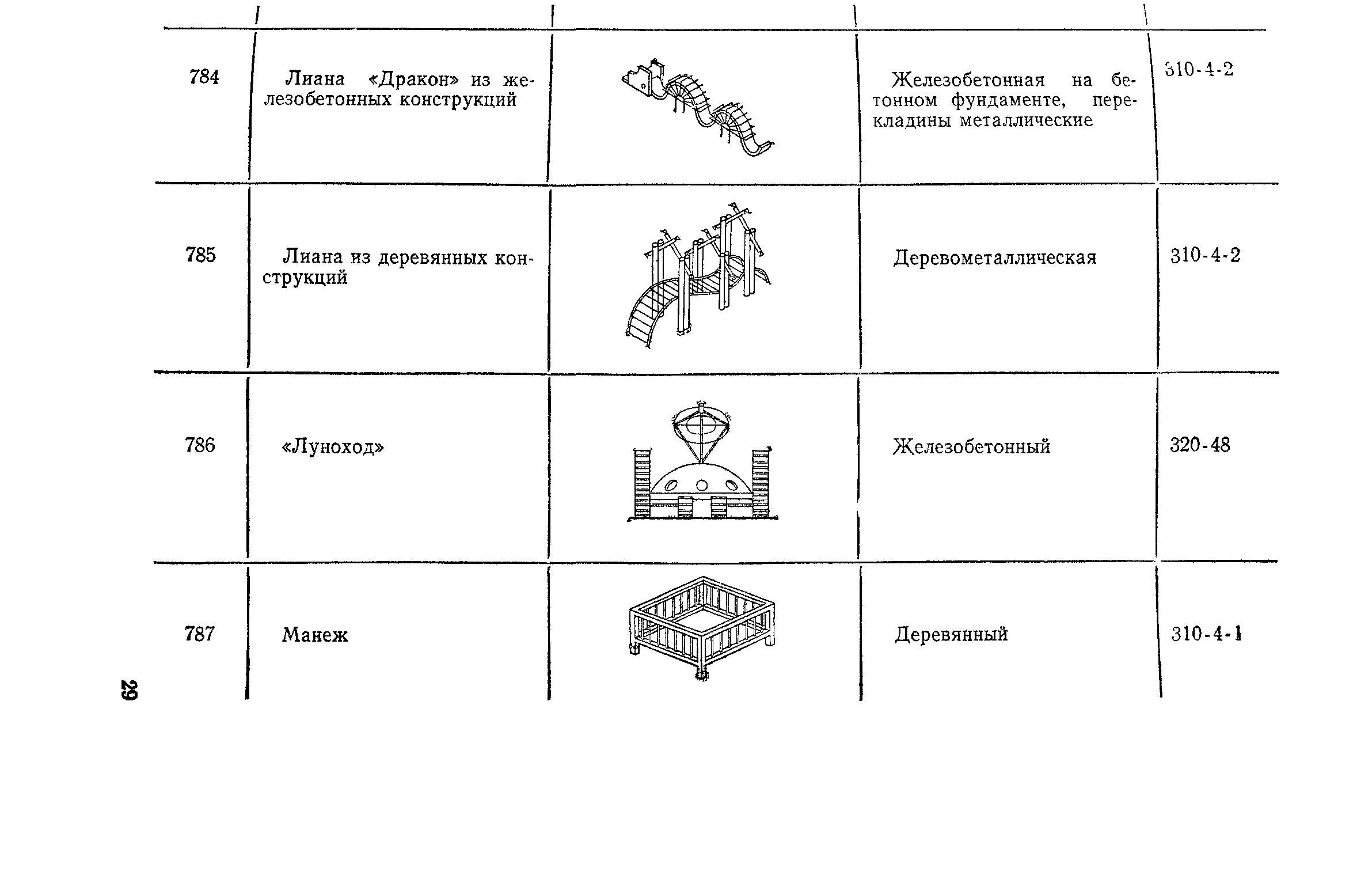Выпуск 3. Прейскурант на элементы внешнего благоустройства зданий и сооружений. Часть 1. Малые архитектурные формы. Прейскуранты на строительство зданий и сооружений межотраслевого назначения| Статус: | действует | | Название рус.: | Выпуск 3. Прейскурант на элементы внешнего благоустройства зданий и сооружений. Часть 1. Малые архитектурные формы. Прейскуранты на строительство зданий и сооружений межотраслевого назначения | | Дата добавления в базу: | 01.09.2013 | | Дата актуализации: | 01.01.2021 | | Дата введения: | 01.11.1985 | | Оглавление: | Техническая часть 1. Арки 2. Балансиры 3. Барьер 4. Бассейны 5. Бревно качающееся 6. Брусья параллельные и разновысокие 7. Брусья-лабиринты 8. Бумы-балансиры 9. Ворота детские для игр 10. Горки 11. Городок гимнастический 12. Грибок теневой 13. Дворики песочные 14. Знак-указатель автобусных остановок 15. Зонт теневой 16. Карусель 17. Качалки балансиры 18. Качели 19. Киоски торговые 20. Комплексы гимнастические 21. Кострище 22. «Крокодил» для детских игровых площадок и плескательных бассейнов 23. Лабиринты 24. Лежак детский 25. Лесенки перекладины и лесенки-ступеньки 26. Лестницы разные 27. Лианы 28. «Луноход» 29. Манежи 30. Мачта для лазания 31. Мостики 32. Навесы 33. Ограды, ворота и калитки 34. Ограждения проезжей части 35. Ограждение хоккейного поля 36. Остановки автобусные 37. Павильоны на автобусных остановках 38. Песочницы 39. Пирамиды 40. Покрытия внутриплощадочных проездов, тротуаров, площадок, дорожек 41. Рекламы отдельностоящие для кинотеатров 42. Рукоходы 43. Сетки для лазания 44. Скамьи разные 45. Скульптуры игровые 46. Спираль 47. Стенды 48. Стенки игровые и гимнастические 49. Стойка баскетбольная 50. Стойки волейбольные 51. Столы для игр, разные 52. Столб рекламный 53. Туннели 54. Турник 55. Указатели 56. Урны 57. Установки архитектурно-декоративные у въездов в сельские населенные пункты, совхозы и колхозы 58. Устройства для вертикального озеленения 59. Устройства солнцезащитные 60. Устройства игровые 61. Флагштоки 62. Фонтанчик питьевой 63. Цветочницы 64. Чаша-галечница 65. Яма для мусора Приложение 1. Распределение отдельных частей территории СССР по территориальным районам, для которых разработаны цены Прейскуранта Приложение 2. Поправки к ценам Прейскуранта № 838-843, 845 при изменении толщины песчаного основания на каждые ±10 мм Приложение 3 Поправки к прямым затратам цен Прейскуранта, учитывающие разницу в оптовых ценах на кирпич строительный и сборные бетонные и железобетонные конструкции, а также разницу сметных цен на остальные местные строительные материалы, между действующими в отдельных областях, краях и республиках и принятыми в ценах настоящего Прейскуранта Приложение 4. Таблица прямых затрат на транспортирование излишнего грунта, учтенного в ценах Прейскуранта Приложение 5. Ведомость объемов излишнего грунта, подлежащего учету при составлении баланса земляных работ в целом по строительной площадке Приложение 6. Пример составления локальных смет на устройство комплекса элементов малых форм с применением цен настоящего Прейскуранта | | Разработан: | Гипропромтрансстрой Главтранспроекта