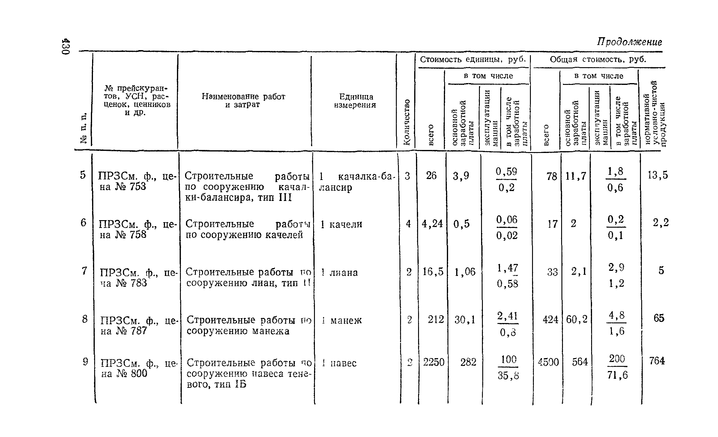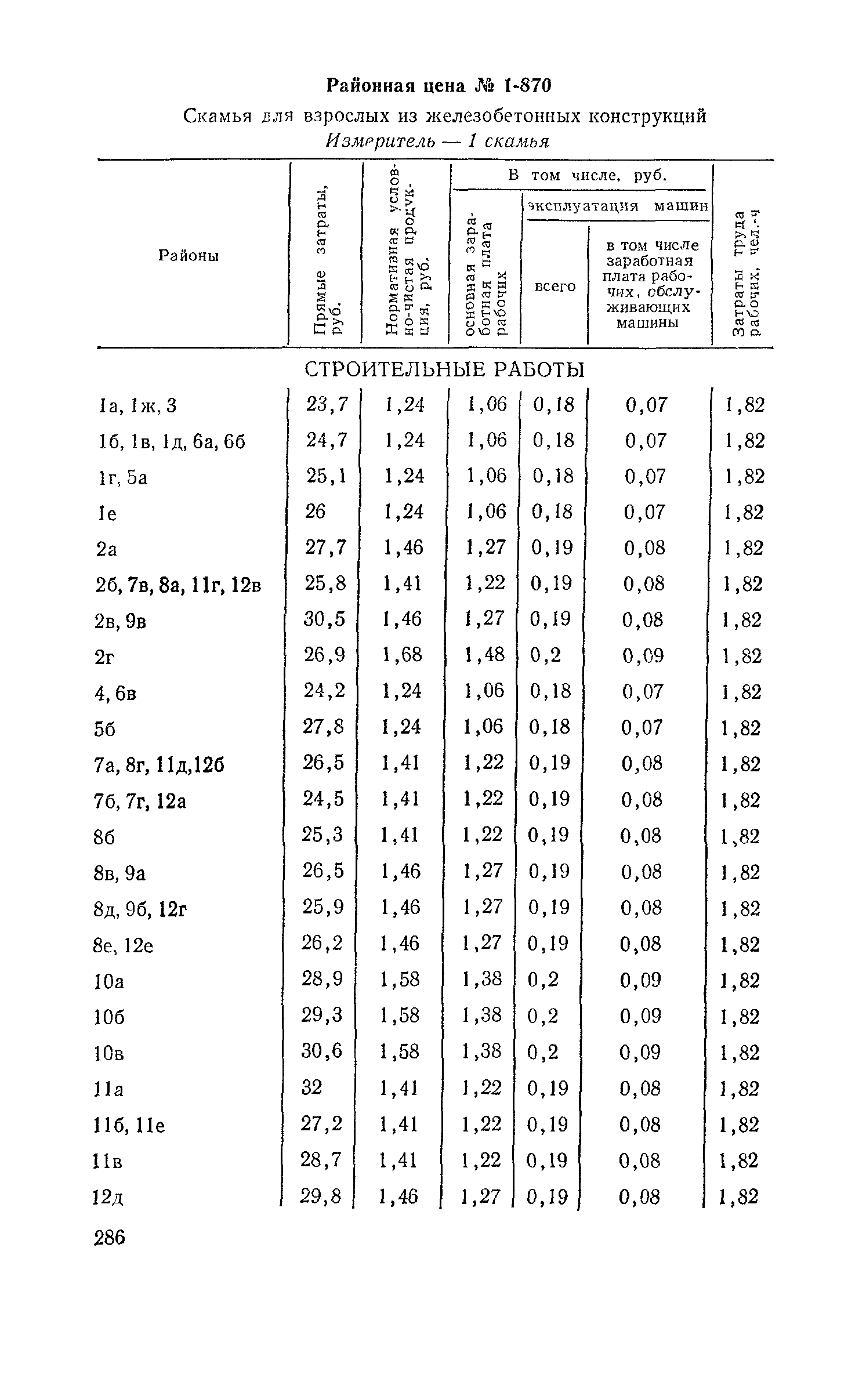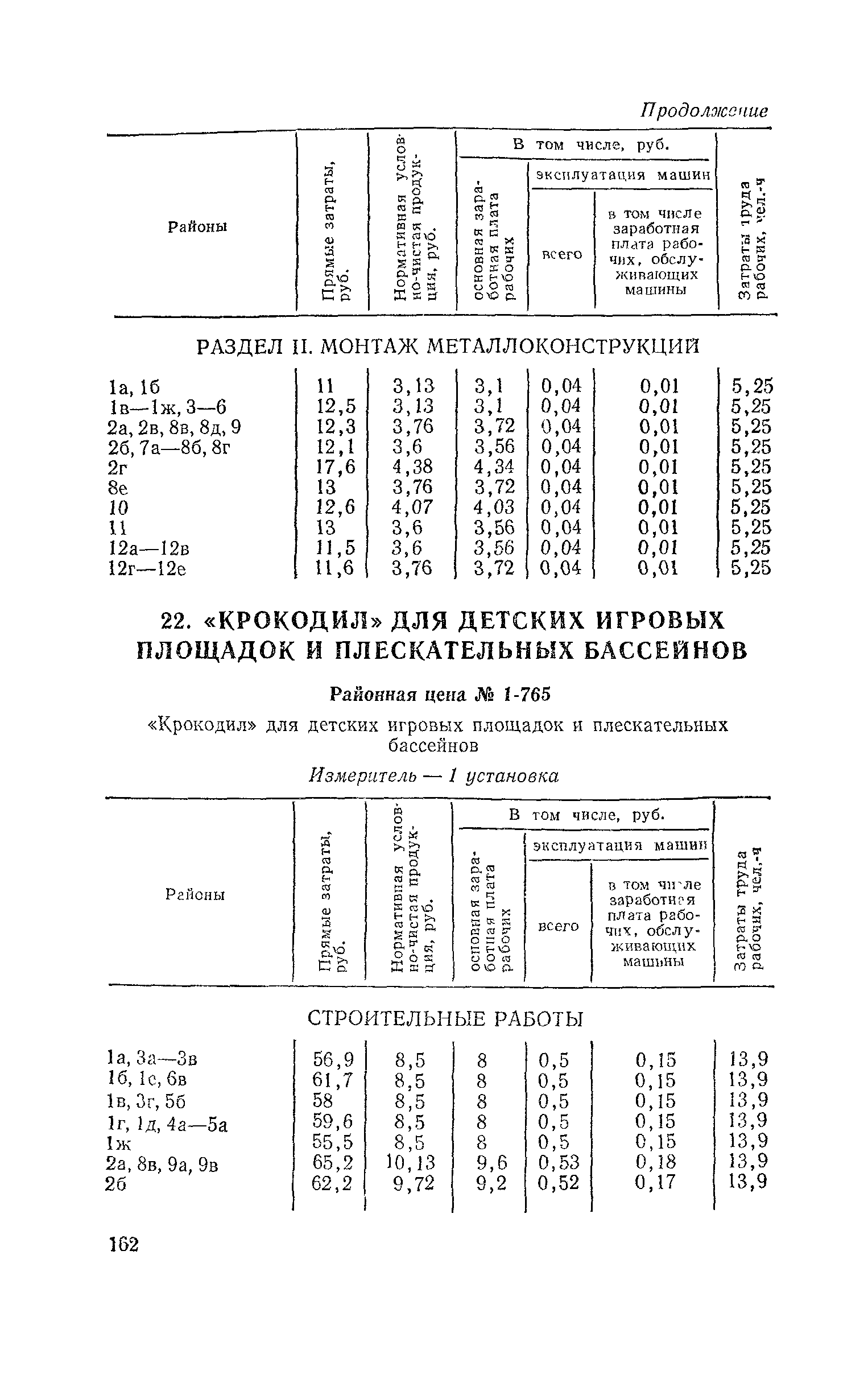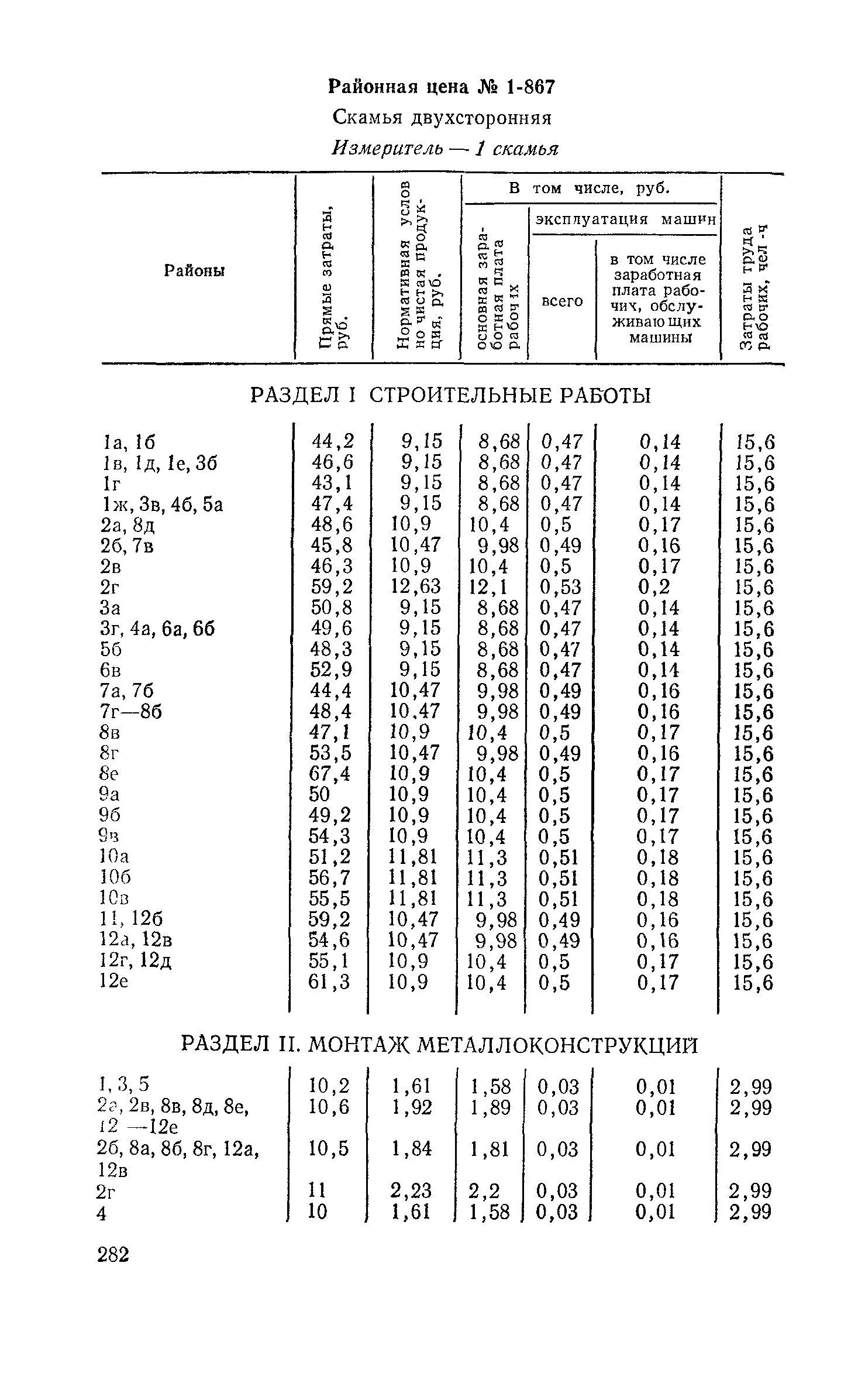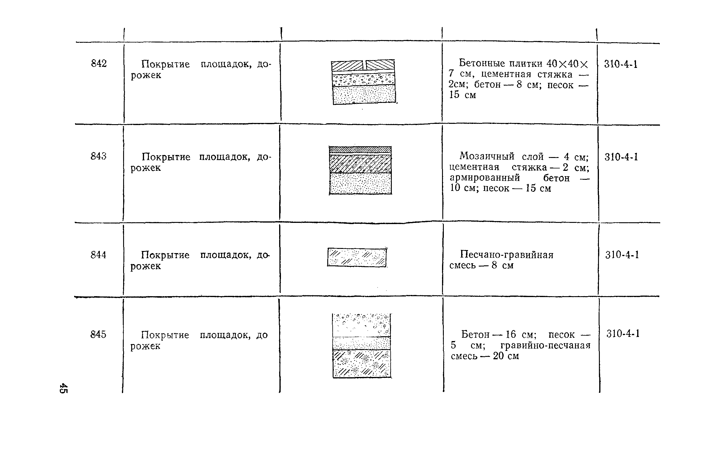 Выпуск 3. Прейскурант на элементы внешнего благоустройства зданий и сооружений. Часть 1. Малые архитектурные формы. Прейскуранты на строительство зданий и сооружений межотраслевого назначения| Статус: | действует | | Название рус.: | Выпуск 3. Прейскурант на элементы внешнего благоустройства зданий и сооружений. Часть 1. Малые архитектурные формы. Прейскуранты на строительство зданий и сооружений межотраслевого назначения | | Дата добавления в базу: | 01.09.2013 | | Дата актуализации: | 01.01.2021 | | Дата введения: | 01.11.1985 | | Оглавление: | Техническая часть 1. Арки 2. Балансиры 3. Барьер 4. Бассейны 5. Бревно качающееся 6. Брусья параллельные и разновысокие 7. Брусья-лабиринты 8. Бумы-балансиры 9. Ворота детские для игр 10. Горки 11. Городок гимнастический 12. Грибок теневой 13. Дворики песочные 14. Знак-указатель автобусных остановок 15. Зонт теневой 16. Карусель 17. Качалки балансиры 18. Качели 19. Киоски торговые 20. Комплексы гимнастические 21. Кострище 22. «Крокодил» для детских игровых площадок и плескательных бассейнов 23. Лабиринты 24. Лежак детский 25. Лесенки перекладины и лесенки-ступеньки 26. Лестницы разные 27. Лианы 28. «Луноход» 29. Манежи 30. Мачта для лазания 31. Мостики 32. Навесы 33. Ограды, ворота и калитки 34. Ограждения проезжей части 35. Ограждение хоккейного поля 36. Остановки автобусные 37. Павильоны на автобусных остановках 38. Песочницы 39. Пирамиды 40. Покрытия внутриплощадочных проездов, тротуаров, площадок, дорожек 41. Рекламы отдельностоящие для кинотеатров 42. Рукоходы 43. Сетки для лазания 44. Скамьи разные 45. Скульптуры игровые 46. Спираль 47. Стенды 48. Стенки игровые и гимнастические 49. Стойка баскетбольная 50. Стойки волейбольные 51. Столы для игр, разные 52. Столб рекламный 53. Туннели 54. Турник 55. Указатели 56. Урны 57. Установки архитектурно-декоративные у въездов в сельские населенные пункты, совхозы и колхозы 58. Устройства для вертикального озеленения 59. Устройства солнцезащитные 60. Устройства игровые 61. Флагштоки 62. Фонтанчик питьевой 63. Цветочницы 64. Чаша-галечница 65. Яма для мусора Приложение 1. Распределение отдельных частей территории СССР по территориальным районам, для которых разработаны цены Прейскуранта Приложение 2. Поправки к ценам Прейскуранта № 838-843, 845 при изменении толщины песчаного основания на каждые ±10 мм Приложение 3 Поправки к прямым затратам цен Прейскуранта, учитывающие разницу в оптовых ценах на кирпич строительный и сборные бетонные и железобетонные конструкции, а также разницу сметных цен на остальные местные строительные материалы, между действующими в отдельных областях, краях и республиках и принятыми в ценах настоящего Прейскуранта Приложение 4. Таблица прямых затрат на транспортирование излишнего грунта, учтенного в ценах Прейскуранта Приложение 5. Ведомость объемов излишнего грунта, подлежащего учету при составлении баланса земляных работ в целом по строительной площадке Приложение 6. Пример составления локальных смет на устройство комплекса элементов малых форм с применением цен настоящего Прейскуранта | | Разработан: | Гипропромтрансстрой Главтранспроекта