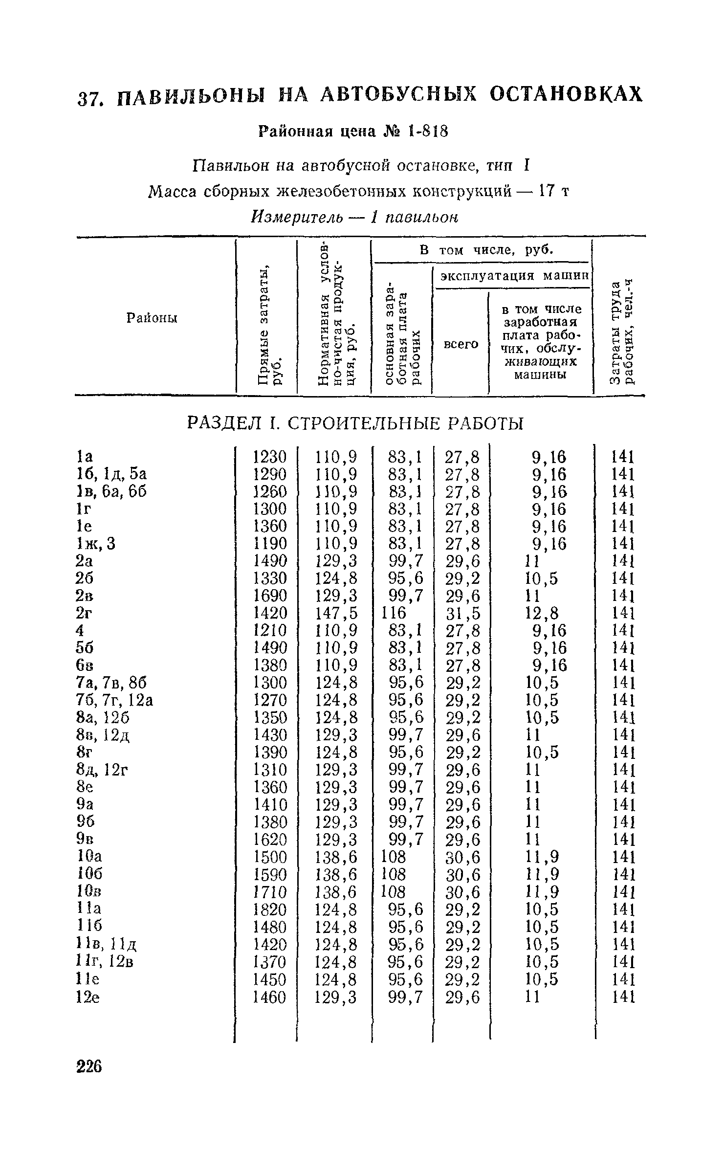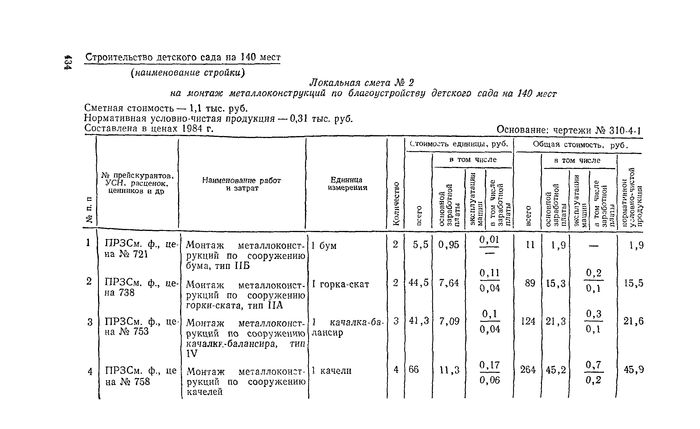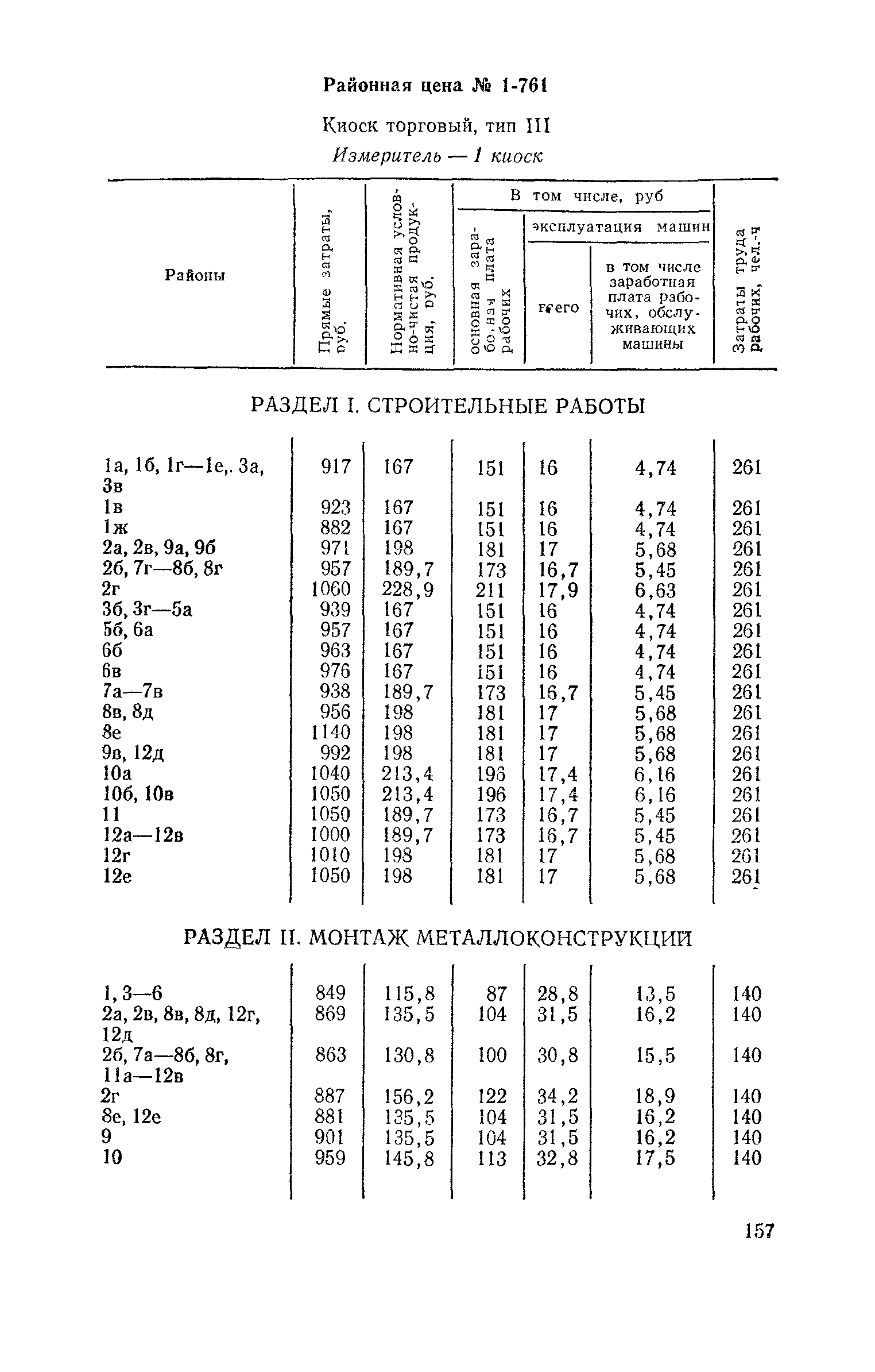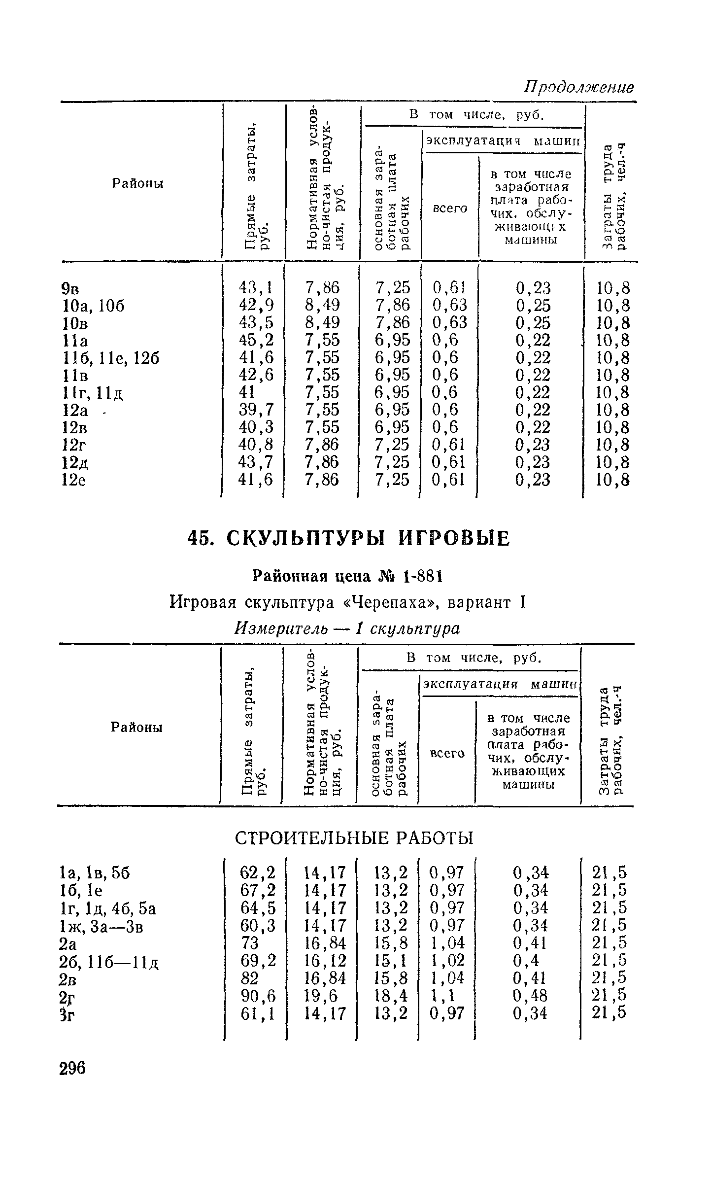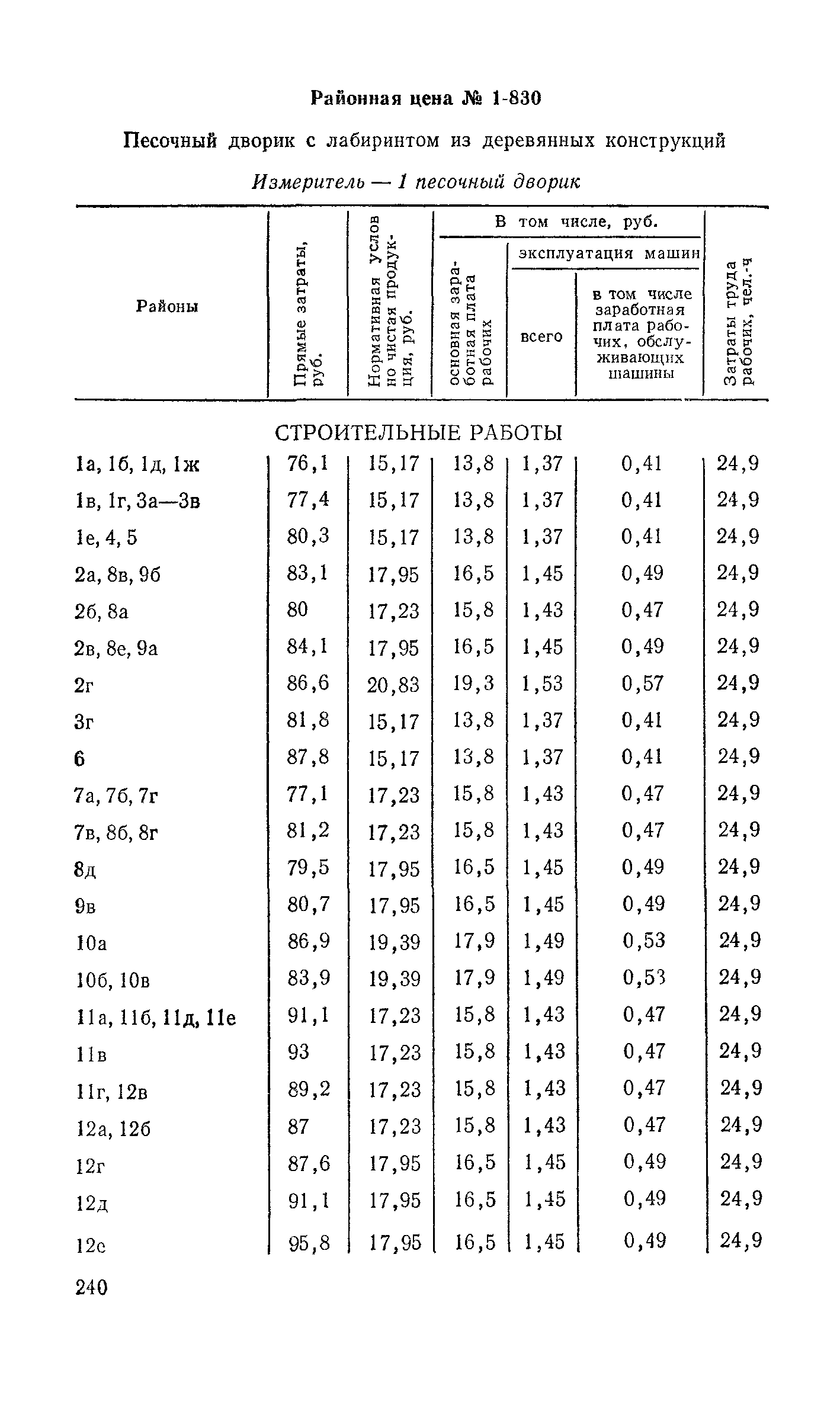 Выпуск 3. Прейскурант на элементы внешнего благоустройства зданий и сооружений. Часть 1. Малые архитектурные формы. Прейскуранты на строительство зданий и сооружений межотраслевого назначения| Статус: | действует | | Название рус.: | Выпуск 3. Прейскурант на элементы внешнего благоустройства зданий и сооружений. Часть 1. Малые архитектурные формы. Прейскуранты на строительство зданий и сооружений межотраслевого назначения | | Дата добавления в базу: | 01.09.2013 | | Дата актуализации: | 01.01.2021 | | Дата введения: | 01.11.1985 | | Оглавление: | Техническая часть 1. Арки 2. Балансиры 3. Барьер 4. Бассейны 5. Бревно качающееся 6. Брусья параллельные и разновысокие 7. Брусья-лабиринты 8. Бумы-балансиры 9. Ворота детские для игр 10. Горки 11. Городок гимнастический 12. Грибок теневой 13. Дворики песочные 14. Знак-указатель автобусных остановок 15. Зонт теневой 16. Карусель 17. Качалки балансиры 18. Качели 19. Киоски торговые 20. Комплексы гимнастические 21. Кострище 22. «Крокодил» для детских игровых площадок и плескательных бассейнов 23. Лабиринты 24. Лежак детский 25. Лесенки перекладины и лесенки-ступеньки 26. Лестницы разные 27. Лианы 28. «Луноход» 29. Манежи 30. Мачта для лазания 31. Мостики 32. Навесы 33. Ограды, ворота и калитки 34. Ограждения проезжей части 35. Ограждение хоккейного поля 36. Остановки автобусные 37. Павильоны на автобусных остановках 38. Песочницы 39. Пирамиды 40. Покрытия внутриплощадочных проездов, тротуаров, площадок, дорожек 41. Рекламы отдельностоящие для кинотеатров 42. Рукоходы 43. Сетки для лазания 44. Скамьи разные 45. Скульптуры игровые 46. Спираль 47. Стенды 48. Стенки игровые и гимнастические 49. Стойка баскетбольная 50. Стойки волейбольные 51. Столы для игр, разные 52. Столб рекламный 53. Туннели 54. Турник 55. Указатели 56. Урны 57. Установки архитектурно-декоративные у въездов в сельские населенные пункты, совхозы и колхозы 58. Устройства для вертикального озеленения 59. Устройства солнцезащитные 60. Устройства игровые 61. Флагштоки 62. Фонтанчик питьевой 63. Цветочницы 64. Чаша-галечница 65. Яма для мусора Приложение 1. Распределение отдельных частей территории СССР по территориальным районам, для которых разработаны цены Прейскуранта Приложение 2. Поправки к ценам Прейскуранта № 838-843, 845 при изменении толщины песчаного основания на каждые ±10 мм Приложение 3 Поправки к прямым затратам цен Прейскуранта, учитывающие разницу в оптовых ценах на кирпич строительный и сборные бетонные и железобетонные конструкции, а также разницу сметных цен на остальные местные строительные материалы, между действующими в отдельных областях, краях и республиках и принятыми в ценах настоящего Прейскуранта Приложение 4. Таблица прямых затрат на транспортирование излишнего грунта, учтенного в ценах Прейскуранта Приложение 5. Ведомость объемов излишнего грунта, подлежащего учету при составлении баланса земляных работ в целом по строительной площадке Приложение 6. Пример составления локальных смет на устройство комплекса элементов малых форм с применением цен настоящего Прейскуранта | | Разработан: | Гипропромтрансстрой Главтранспроекта