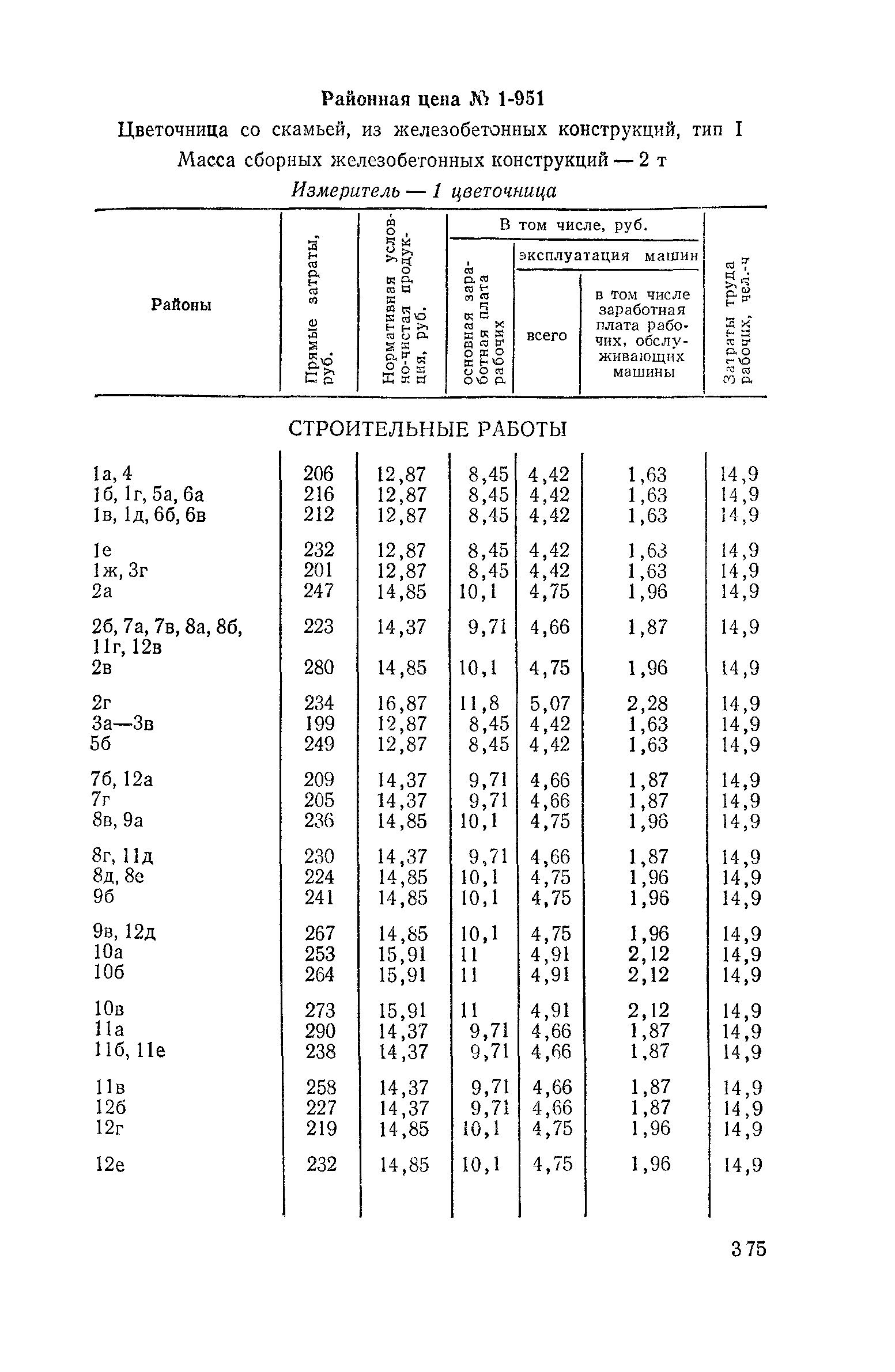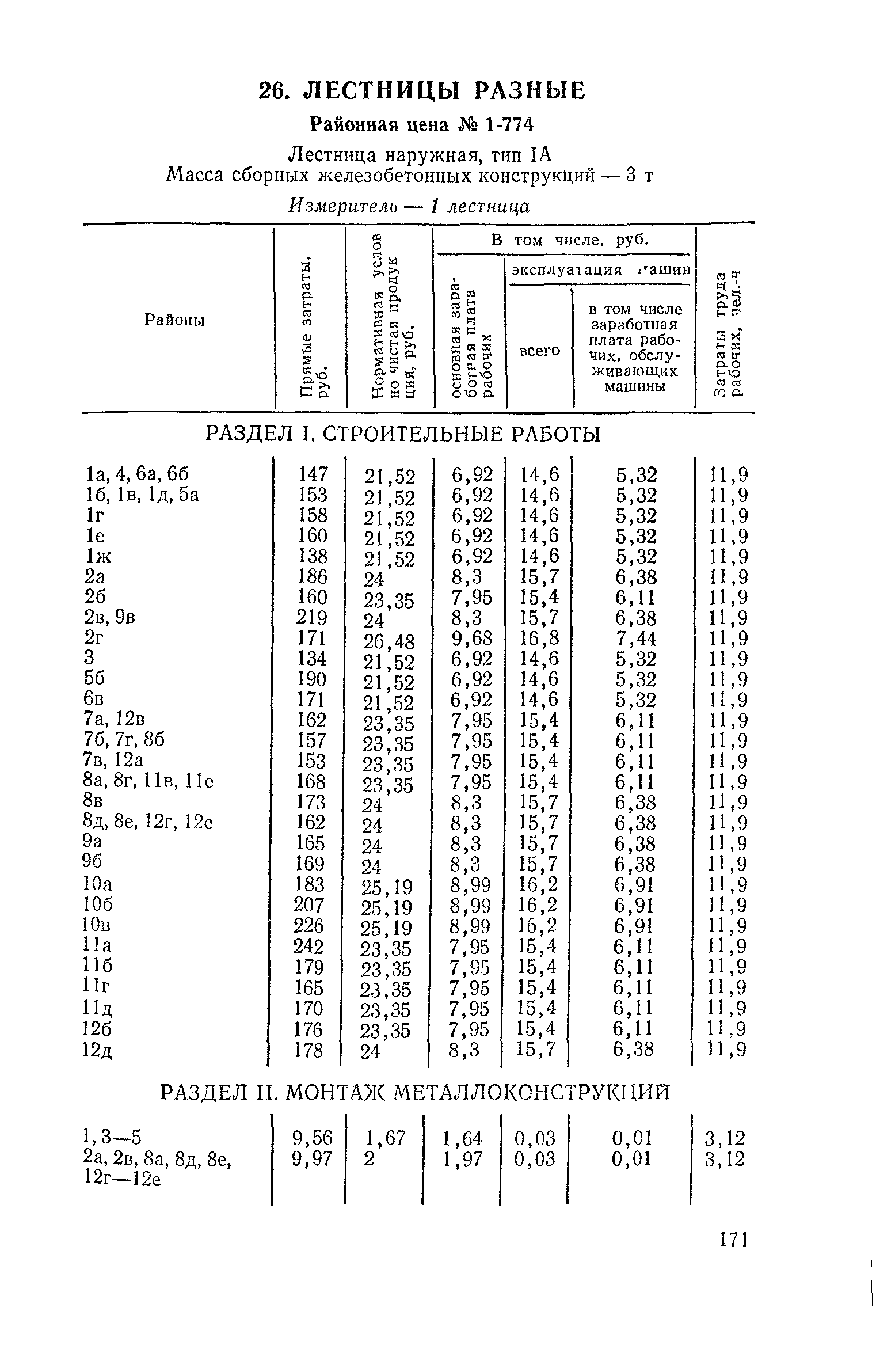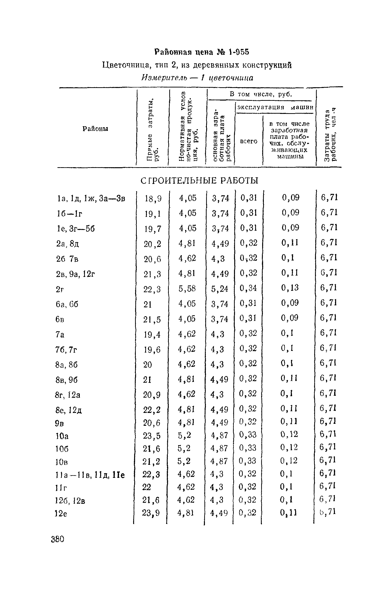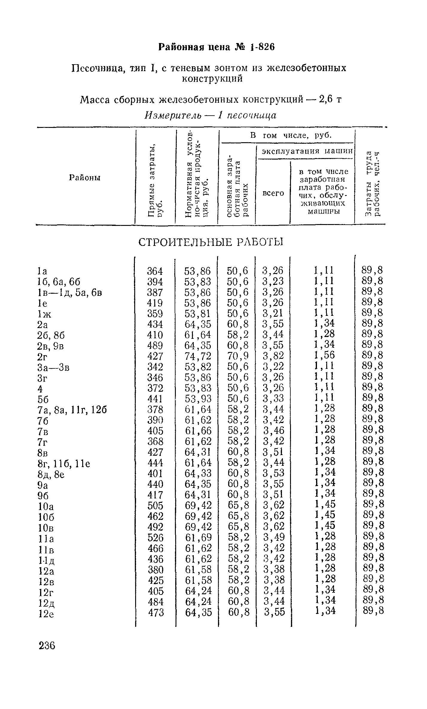 Выпуск 3. Прейскурант на элементы внешнего благоустройства зданий и сооружений. Часть 1. Малые архитектурные формы. Прейскуранты на строительство зданий и сооружений межотраслевого назначения| Статус: | действует | | Название рус.: | Выпуск 3. Прейскурант на элементы внешнего благоустройства зданий и сооружений. Часть 1. Малые архитектурные формы. Прейскуранты на строительство зданий и сооружений межотраслевого назначения | | Дата добавления в базу: | 01.09.2013 | | Дата актуализации: | 01.01.2021 | | Дата введения: | 01.11.1985 | | Оглавление: | Техническая часть 1. Арки 2. Балансиры 3. Барьер 4. Бассейны 5. Бревно качающееся 6. Брусья параллельные и разновысокие 7. Брусья-лабиринты 8. Бумы-балансиры 9. Ворота детские для игр 10. Горки 11. Городок гимнастический 12. Грибок теневой 13. Дворики песочные 14. Знак-указатель автобусных остановок 15. Зонт теневой 16. Карусель 17. Качалки балансиры 18. Качели 19. Киоски торговые 20. Комплексы гимнастические 21. Кострище 22. «Крокодил» для детских игровых площадок и плескательных бассейнов 23. Лабиринты 24. Лежак детский 25. Лесенки перекладины и лесенки-ступеньки 26. Лестницы разные 27. Лианы 28. «Луноход» 29. Манежи 30. Мачта для лазания 31. Мостики 32. Навесы 33. Ограды, ворота и калитки 34. Ограждения проезжей части 35. Ограждение хоккейного поля 36. Остановки автобусные 37. Павильоны на автобусных остановках 38. Песочницы 39. Пирамиды 40. Покрытия внутриплощадочных проездов, тротуаров, площадок, дорожек 41. Рекламы отдельностоящие для кинотеатров 42. Рукоходы 43. Сетки для лазания 44. Скамьи разные 45. Скульптуры игровые 46. Спираль 47. Стенды 48. Стенки игровые и гимнастические 49. Стойка баскетбольная 50. Стойки волейбольные 51. Столы для игр, разные 52. Столб рекламный 53. Туннели 54. Турник 55. Указатели 56. Урны 57. Установки архитектурно-декоративные у въездов в сельские населенные пункты, совхозы и колхозы 58. Устройства для вертикального озеленения 59. Устройства солнцезащитные 60. Устройства игровые 61. Флагштоки 62. Фонтанчик питьевой 63. Цветочницы 64. Чаша-галечница 65. Яма для мусора Приложение 1. Распределение отдельных частей территории СССР по территориальным районам, для которых разработаны цены Прейскуранта Приложение 2. Поправки к ценам Прейскуранта № 838-843, 845 при изменении толщины песчаного основания на каждые ±10 мм Приложение 3 Поправки к прямым затратам цен Прейскуранта, учитывающие разницу в оптовых ценах на кирпич строительный и сборные бетонные и железобетонные конструкции, а также разницу сметных цен на остальные местные строительные материалы, между действующими в отдельных областях, краях и республиках и принятыми в ценах настоящего Прейскуранта Приложение 4. Таблица прямых затрат на транспортирование излишнего грунта, учтенного в ценах Прейскуранта Приложение 5. Ведомость объемов излишнего грунта, подлежащего учету при составлении баланса земляных работ в целом по строительной площадке Приложение 6. Пример составления локальных смет на устройство комплекса элементов малых форм с применением цен настоящего Прейскуранта | | Разработан: | Гипропромтрансстрой Главтранспроекта