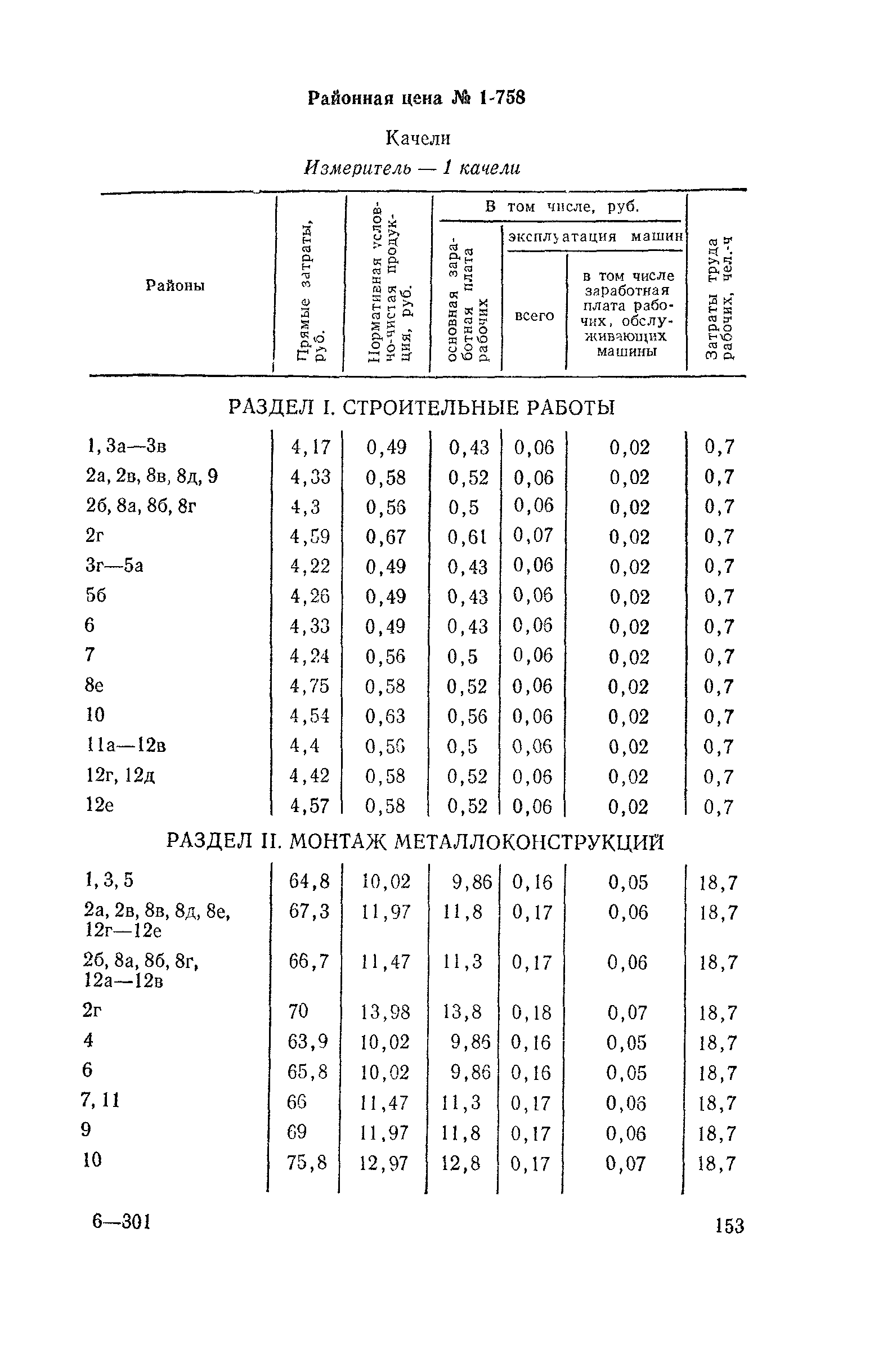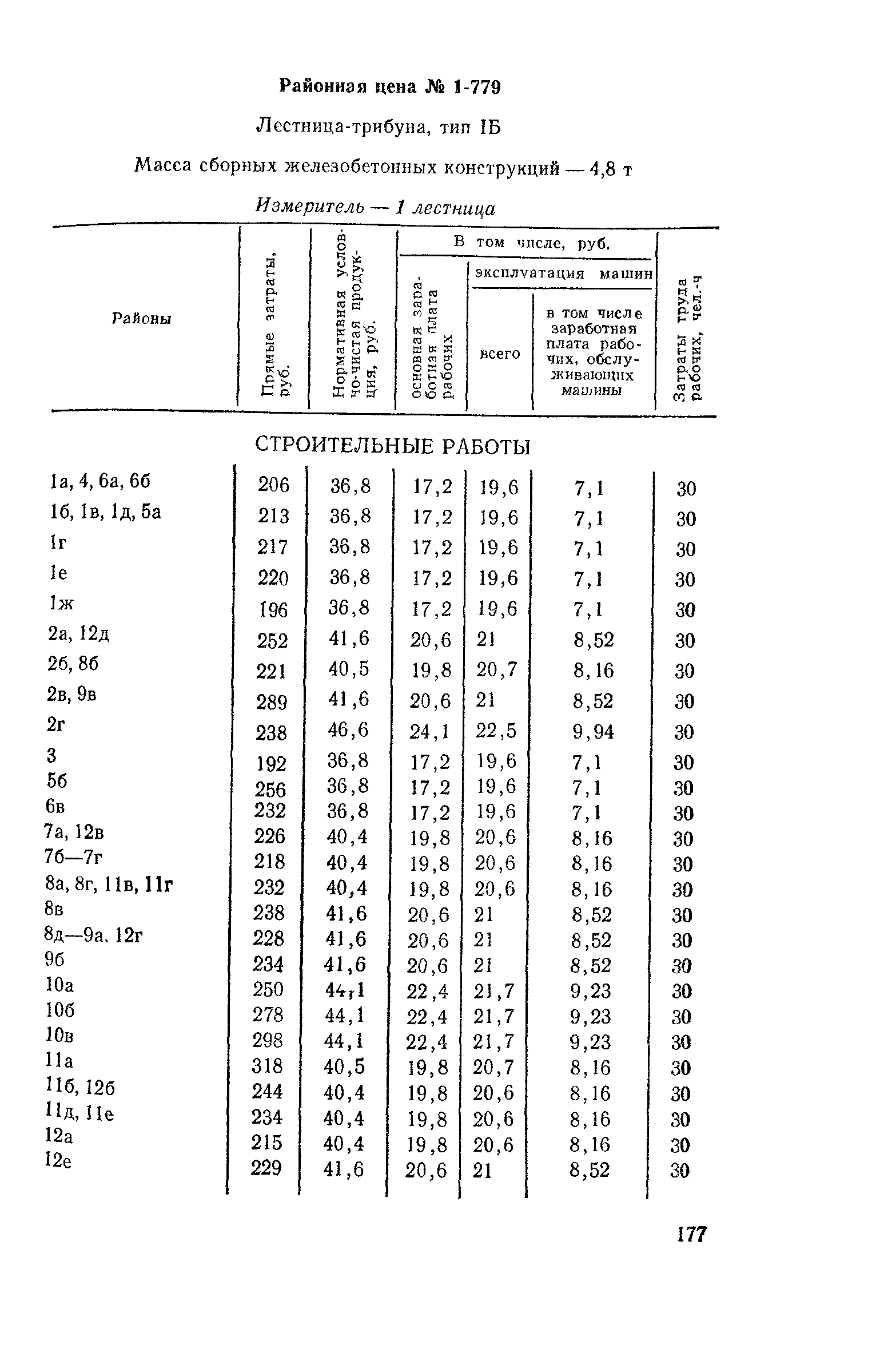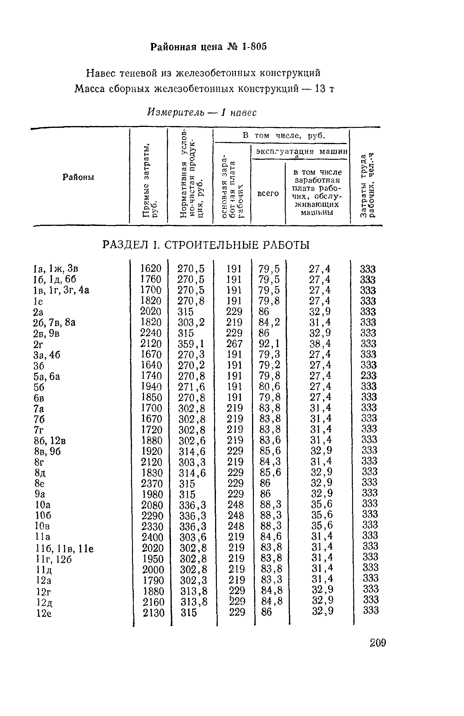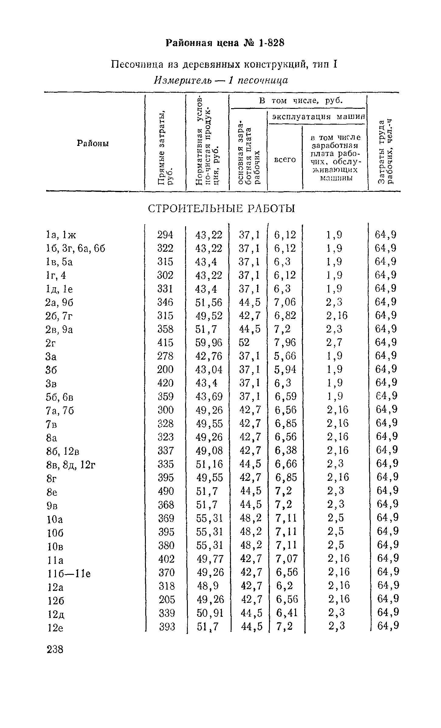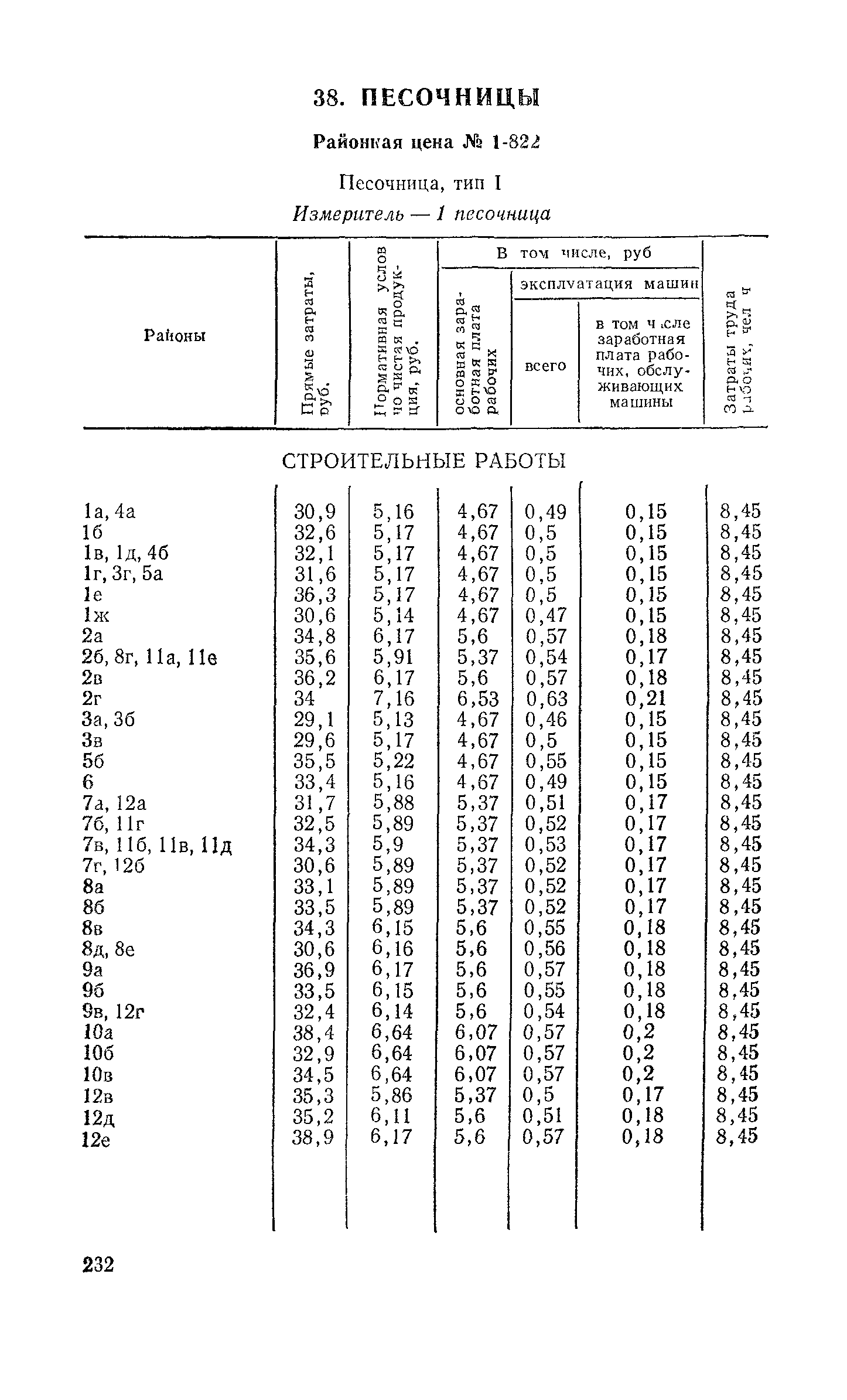 Выпуск 3. Прейскурант на элементы внешнего благоустройства зданий и сооружений. Часть 1. Малые архитектурные формы. Прейскуранты на строительство зданий и сооружений межотраслевого назначения| Статус: | действует | | Название рус.: | Выпуск 3. Прейскурант на элементы внешнего благоустройства зданий и сооружений. Часть 1. Малые архитектурные формы. Прейскуранты на строительство зданий и сооружений межотраслевого назначения | | Дата добавления в базу: | 01.09.2013 | | Дата актуализации: | 01.01.2021 | | Дата введения: | 01.11.1985 | | Оглавление: | Техническая часть 1. Арки 2. Балансиры 3. Барьер 4. Бассейны 5. Бревно качающееся 6. Брусья параллельные и разновысокие 7. Брусья-лабиринты 8. Бумы-балансиры 9. Ворота детские для игр 10. Горки 11. Городок гимнастический 12. Грибок теневой 13. Дворики песочные 14. Знак-указатель автобусных остановок 15. Зонт теневой 16. Карусель 17. Качалки балансиры 18. Качели 19. Киоски торговые 20. Комплексы гимнастические 21. Кострище 22. «Крокодил» для детских игровых площадок и плескательных бассейнов 23. Лабиринты 24. Лежак детский 25. Лесенки перекладины и лесенки-ступеньки 26. Лестницы разные 27. Лианы 28. «Луноход» 29. Манежи 30. Мачта для лазания 31. Мостики 32. Навесы 33. Ограды, ворота и калитки 34. Ограждения проезжей части 35. Ограждение хоккейного поля 36. Остановки автобусные 37. Павильоны на автобусных остановках 38. Песочницы 39. Пирамиды 40. Покрытия внутриплощадочных проездов, тротуаров, площадок, дорожек 41. Рекламы отдельностоящие для кинотеатров 42. Рукоходы 43. Сетки для лазания 44. Скамьи разные 45. Скульптуры игровые 46. Спираль 47. Стенды 48. Стенки игровые и гимнастические 49. Стойка баскетбольная 50. Стойки волейбольные 51. Столы для игр, разные 52. Столб рекламный 53. Туннели 54. Турник 55. Указатели 56. Урны 57. Установки архитектурно-декоративные у въездов в сельские населенные пункты, совхозы и колхозы 58. Устройства для вертикального озеленения 59. Устройства солнцезащитные 60. Устройства игровые 61. Флагштоки 62. Фонтанчик питьевой 63. Цветочницы 64. Чаша-галечница 65. Яма для мусора Приложение 1. Распределение отдельных частей территории СССР по территориальным районам, для которых разработаны цены Прейскуранта Приложение 2. Поправки к ценам Прейскуранта № 838-843, 845 при изменении толщины песчаного основания на каждые ±10 мм Приложение 3 Поправки к прямым затратам цен Прейскуранта, учитывающие разницу в оптовых ценах на кирпич строительный и сборные бетонные и железобетонные конструкции, а также разницу сметных цен на остальные местные строительные материалы, между действующими в отдельных областях, краях и республиках и принятыми в ценах настоящего Прейскуранта Приложение 4. Таблица прямых затрат на транспортирование излишнего грунта, учтенного в ценах Прейскуранта Приложение 5. Ведомость объемов излишнего грунта, подлежащего учету при составлении баланса земляных работ в целом по строительной площадке Приложение 6. Пример составления локальных смет на устройство комплекса элементов малых форм с применением цен настоящего Прейскуранта | | Разработан: | Гипропромтрансстрой Главтранспроекта