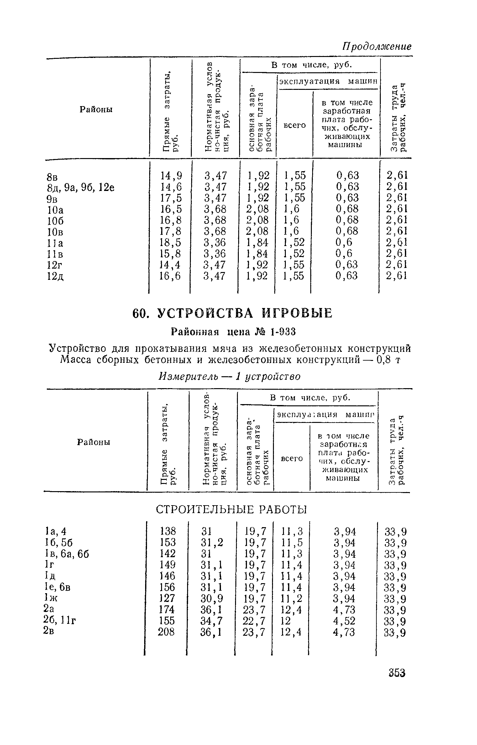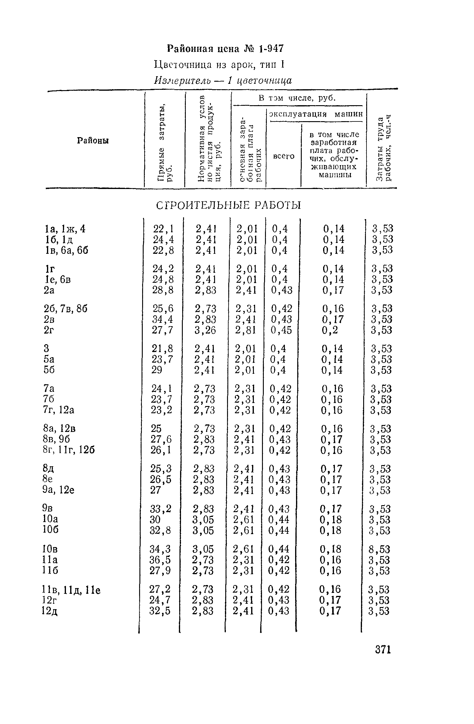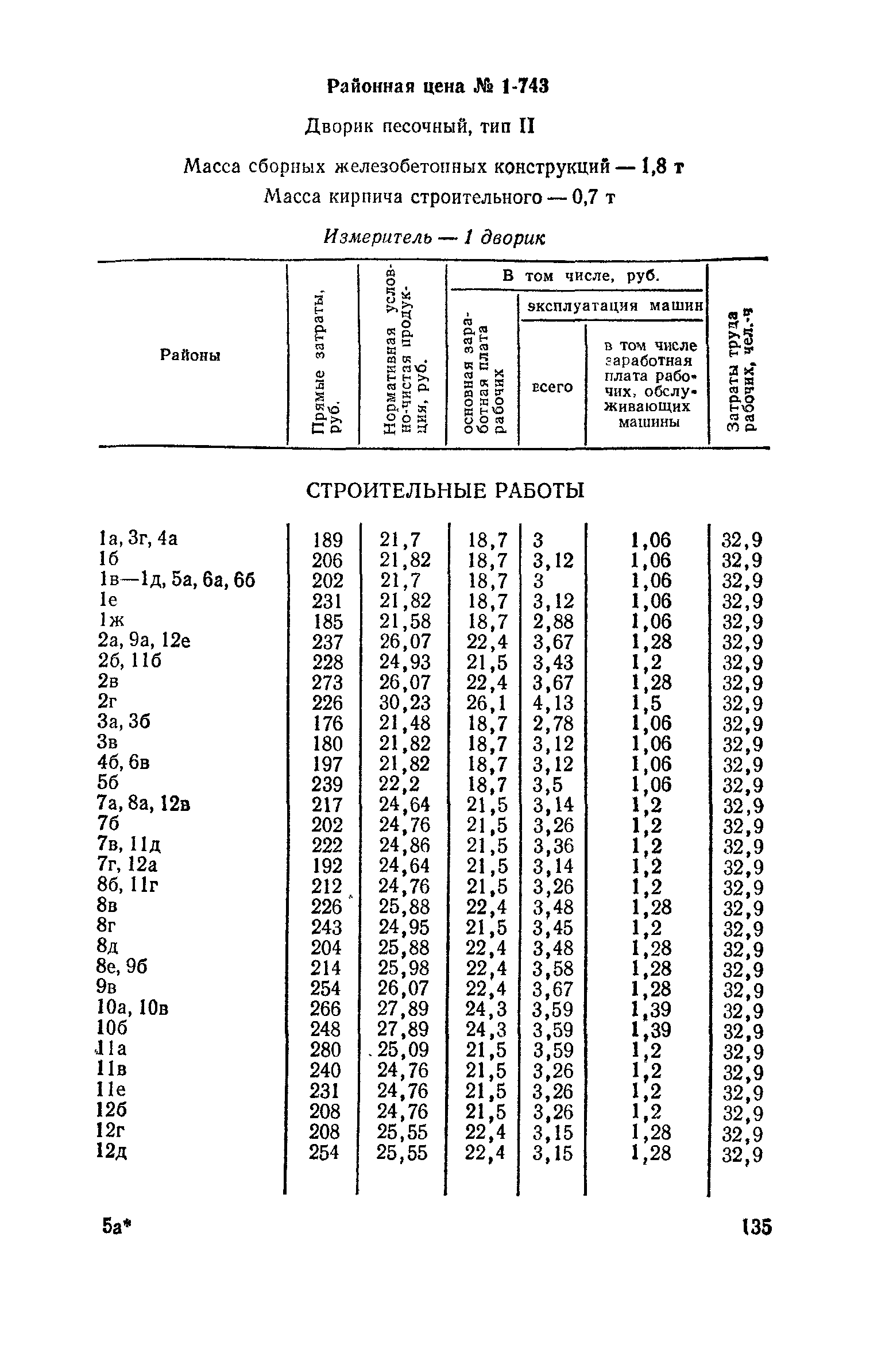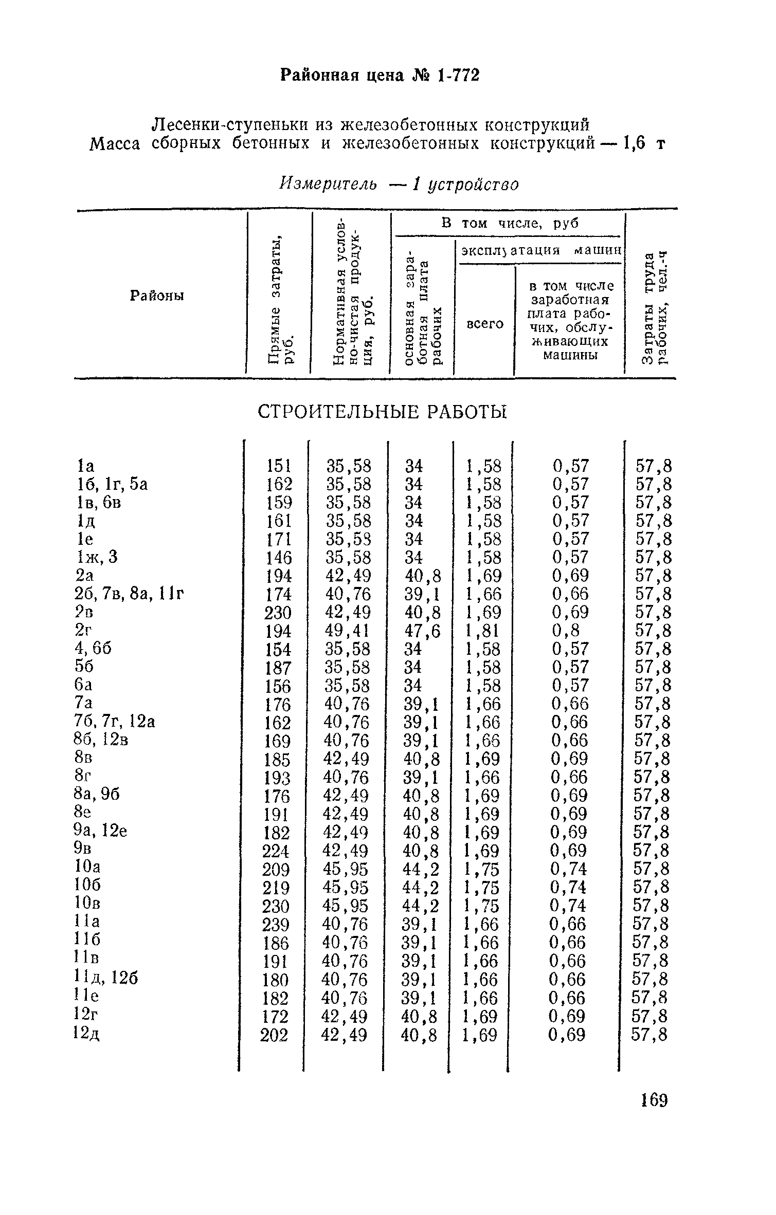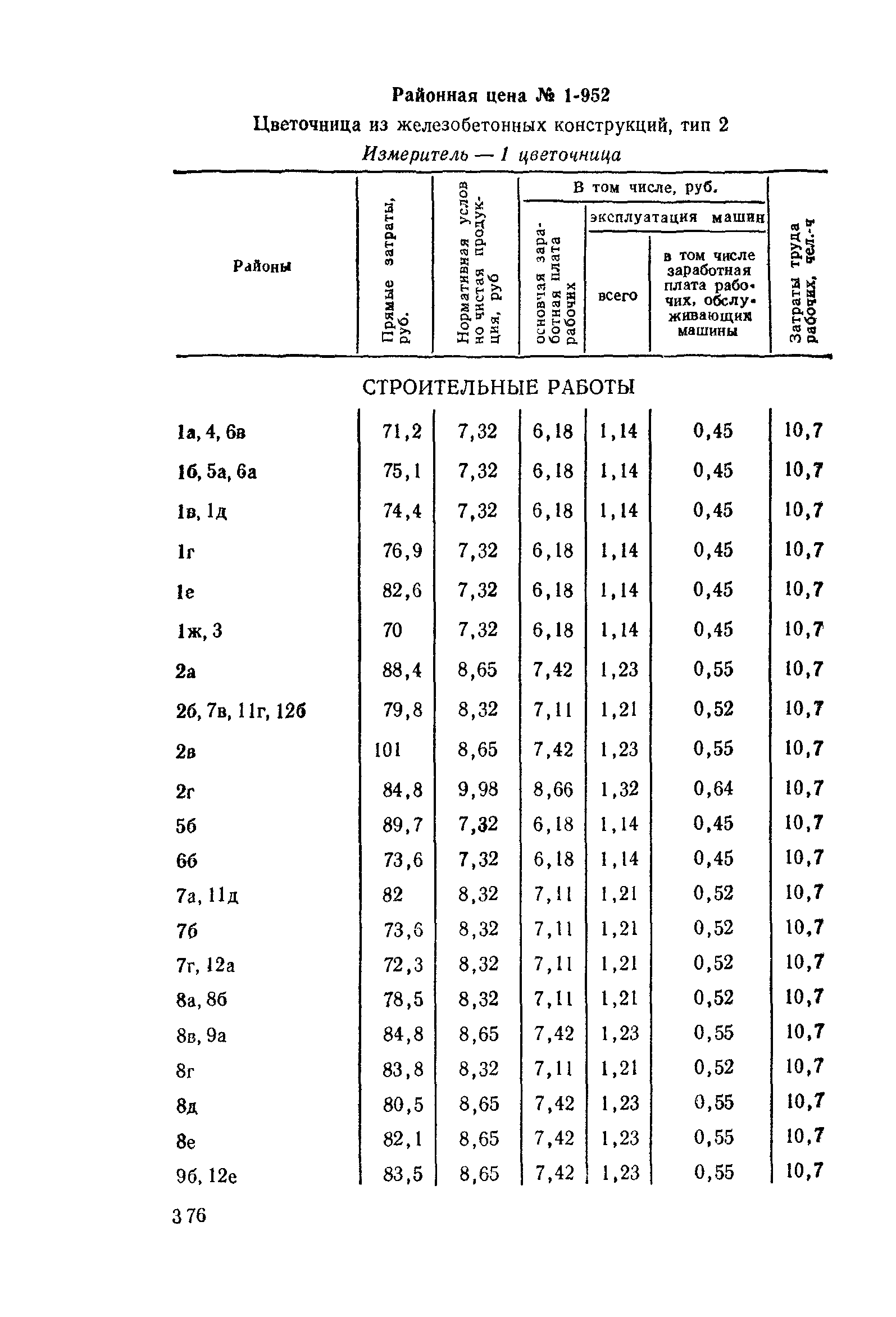 Выпуск 3. Прейскурант на элементы внешнего благоустройства зданий и сооружений. Часть 1. Малые архитектурные формы. Прейскуранты на строительство зданий и сооружений межотраслевого назначения| Статус: | действует | | Название рус.: | Выпуск 3. Прейскурант на элементы внешнего благоустройства зданий и сооружений. Часть 1. Малые архитектурные формы. Прейскуранты на строительство зданий и сооружений межотраслевого назначения | | Дата добавления в базу: | 01.09.2013 | | Дата актуализации: | 01.01.2021 | | Дата введения: | 01.11.1985 | | Оглавление: | Техническая часть 1. Арки 2. Балансиры 3. Барьер 4. Бассейны 5. Бревно качающееся 6. Брусья параллельные и разновысокие 7. Брусья-лабиринты 8. Бумы-балансиры 9. Ворота детские для игр 10. Горки 11. Городок гимнастический 12. Грибок теневой 13. Дворики песочные 14. Знак-указатель автобусных остановок 15. Зонт теневой 16. Карусель 17. Качалки балансиры 18. Качели 19. Киоски торговые 20. Комплексы гимнастические 21. Кострище 22. «Крокодил» для детских игровых площадок и плескательных бассейнов 23. Лабиринты 24. Лежак детский 25. Лесенки перекладины и лесенки-ступеньки 26. Лестницы разные 27. Лианы 28. «Луноход» 29. Манежи 30. Мачта для лазания 31. Мостики 32. Навесы 33. Ограды, ворота и калитки 34. Ограждения проезжей части 35. Ограждение хоккейного поля 36. Остановки автобусные 37. Павильоны на автобусных остановках 38. Песочницы 39. Пирамиды 40. Покрытия внутриплощадочных проездов, тротуаров, площадок, дорожек 41. Рекламы отдельностоящие для кинотеатров 42. Рукоходы 43. Сетки для лазания 44. Скамьи разные 45. Скульптуры игровые 46. Спираль 47. Стенды 48. Стенки игровые и гимнастические 49. Стойка баскетбольная 50. Стойки волейбольные 51. Столы для игр, разные 52. Столб рекламный 53. Туннели 54. Турник 55. Указатели 56. Урны 57. Установки архитектурно-декоративные у въездов в сельские населенные пункты, совхозы и колхозы 58. Устройства для вертикального озеленения 59. Устройства солнцезащитные 60. Устройства игровые 61. Флагштоки 62. Фонтанчик питьевой 63. Цветочницы 64. Чаша-галечница 65. Яма для мусора Приложение 1. Распределение отдельных частей территории СССР по территориальным районам, для которых разработаны цены Прейскуранта Приложение 2. Поправки к ценам Прейскуранта № 838-843, 845 при изменении толщины песчаного основания на каждые ±10 мм Приложение 3 Поправки к прямым затратам цен Прейскуранта, учитывающие разницу в оптовых ценах на кирпич строительный и сборные бетонные и железобетонные конструкции, а также разницу сметных цен на остальные местные строительные материалы, между действующими в отдельных областях, краях и республиках и принятыми в ценах настоящего Прейскуранта Приложение 4. Таблица прямых затрат на транспортирование излишнего грунта, учтенного в ценах Прейскуранта Приложение 5. Ведомость объемов излишнего грунта, подлежащего учету при составлении баланса земляных работ в целом по строительной площадке Приложение 6. Пример составления локальных смет на устройство комплекса элементов малых форм с применением цен настоящего Прейскуранта | | Разработан: | Гипропромтрансстрой Главтранспроекта