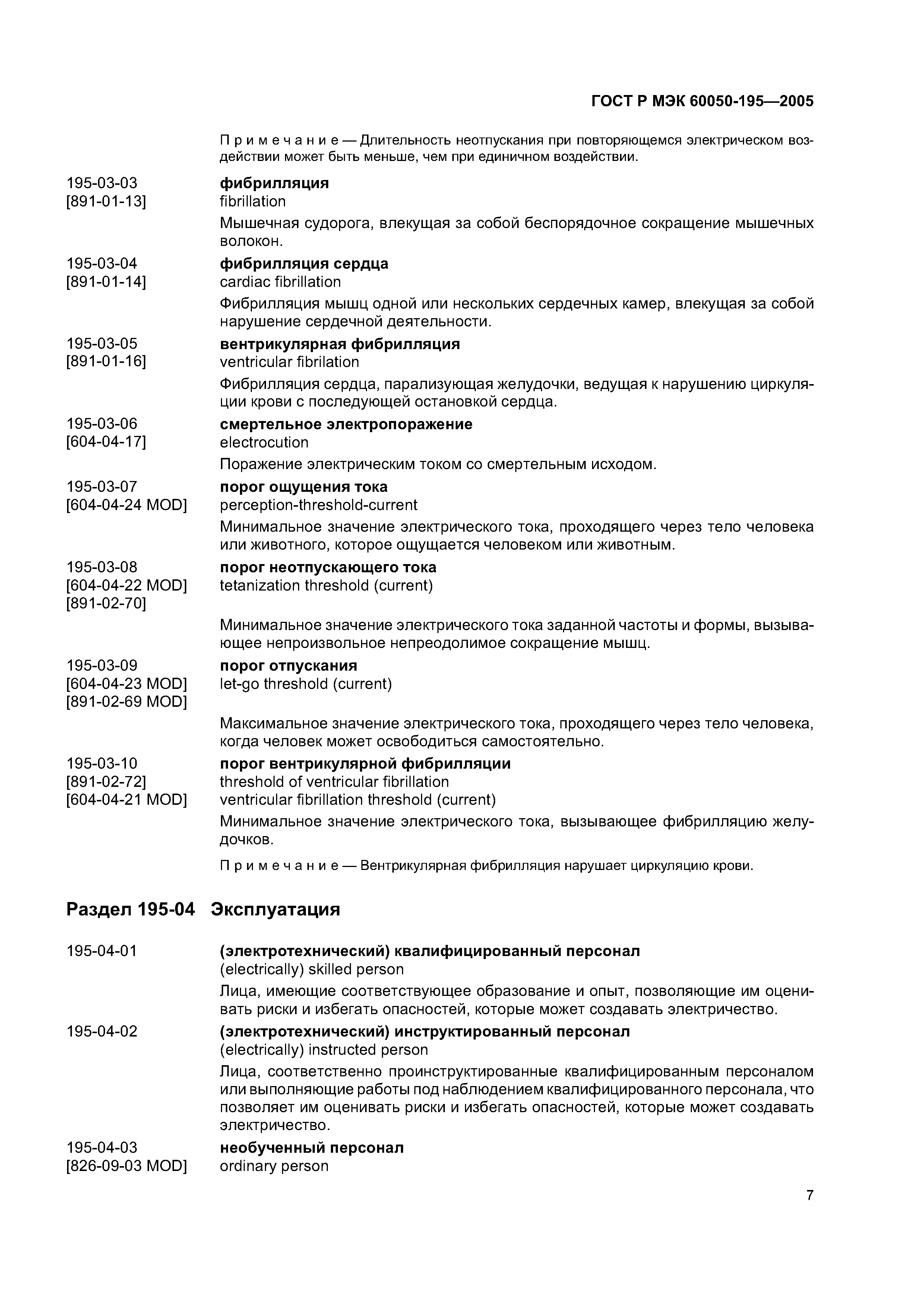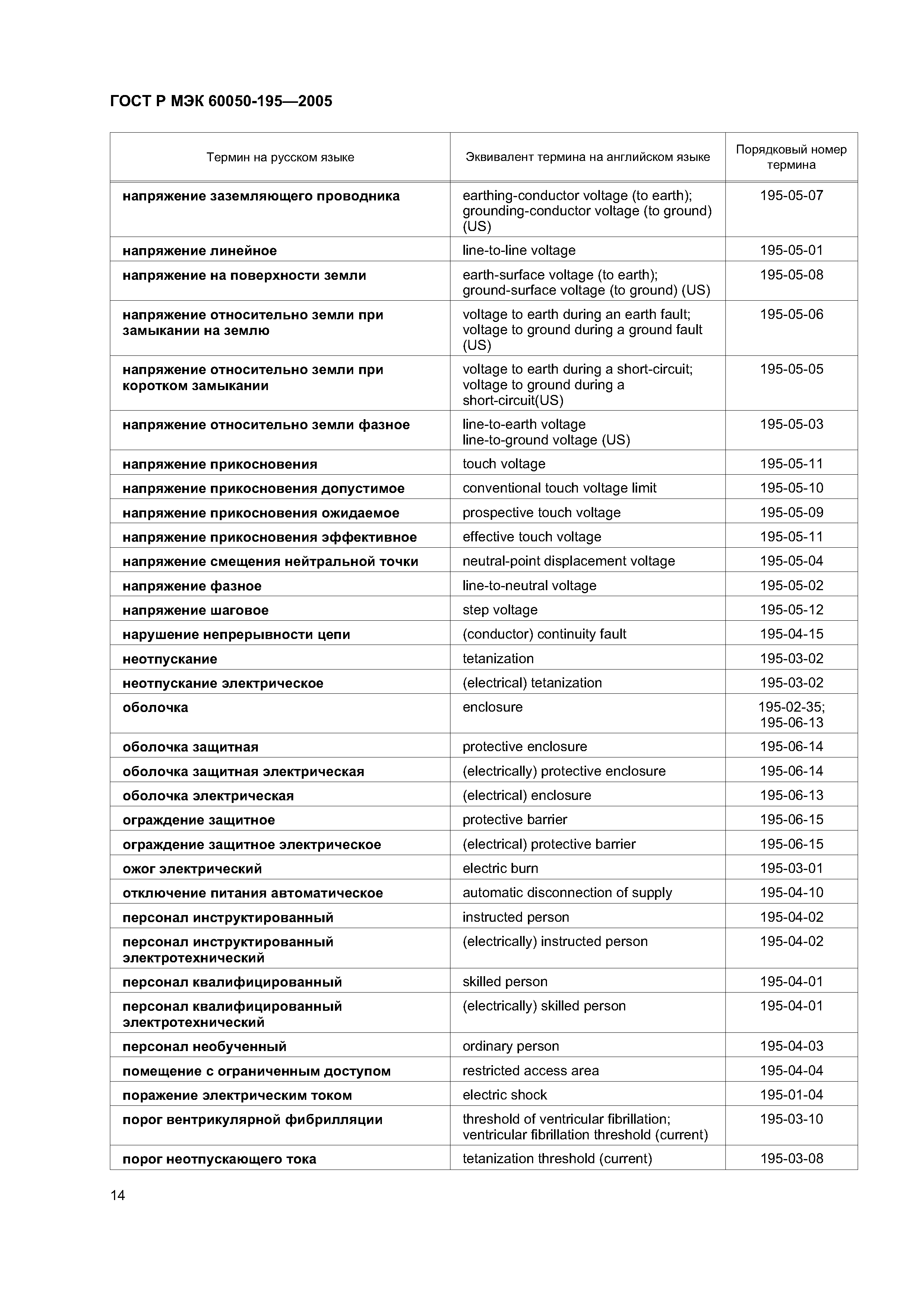 | Оглавление: | Раздел 195-01 Основные положения Раздел 195-02 Электрические установки и электрооборудование Раздел 195-03 Поражение электрическим током и пороговые токи Раздел 195-04 Эксплуатация Раздел 195-05 Напряжение и токи Раздел 195-06 Защитные меры электробезопасности Алфавитный указатель терминов Приложение А Перечень международных стандартов МЭК, устанавливающих термины с соответствующими определениями, воспроизведенными в настоящем стандарте |