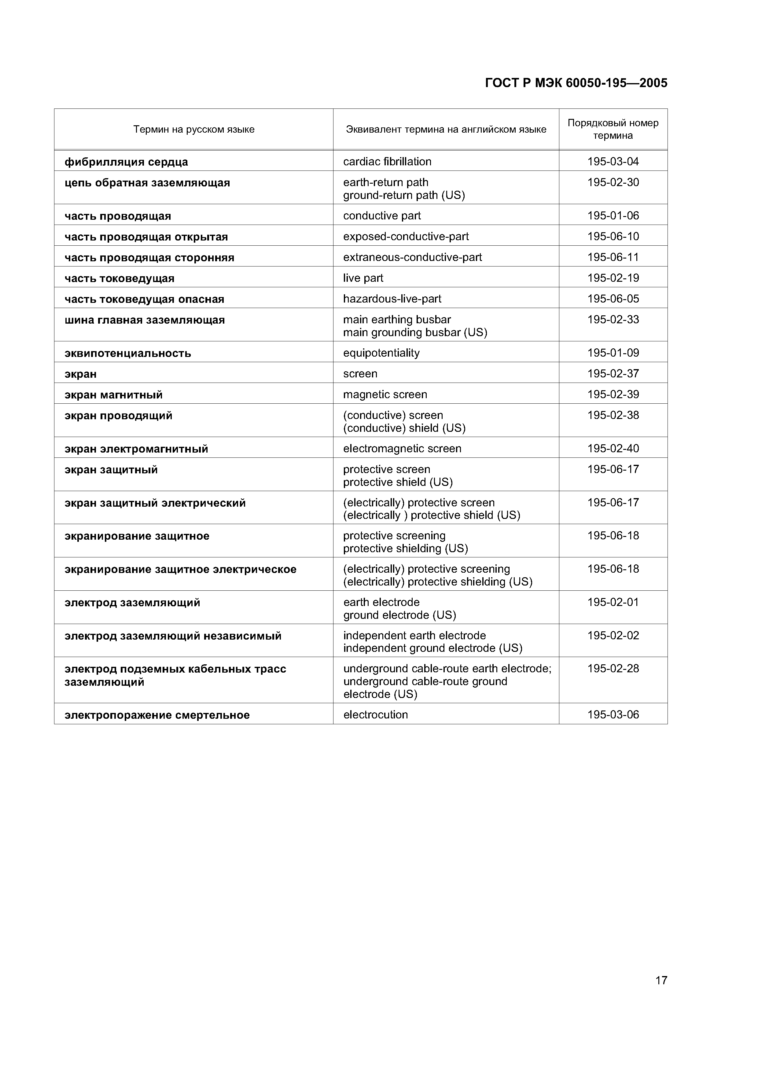 | Название англ.: | Earthing and protection against electric shock. Terms and definitions |