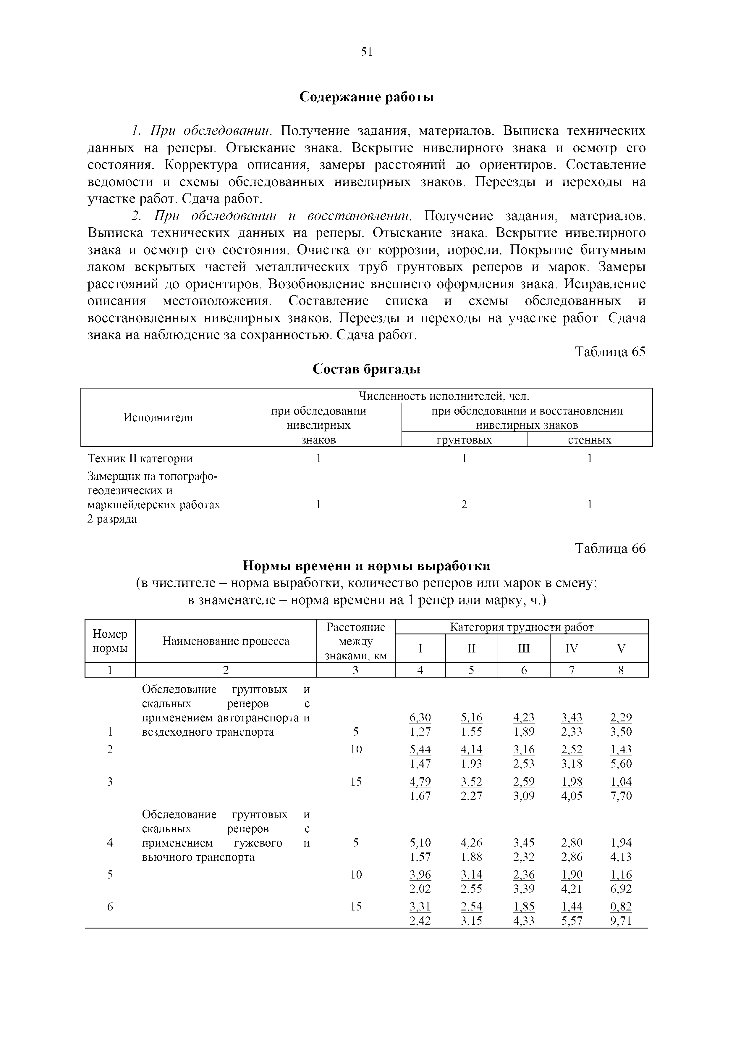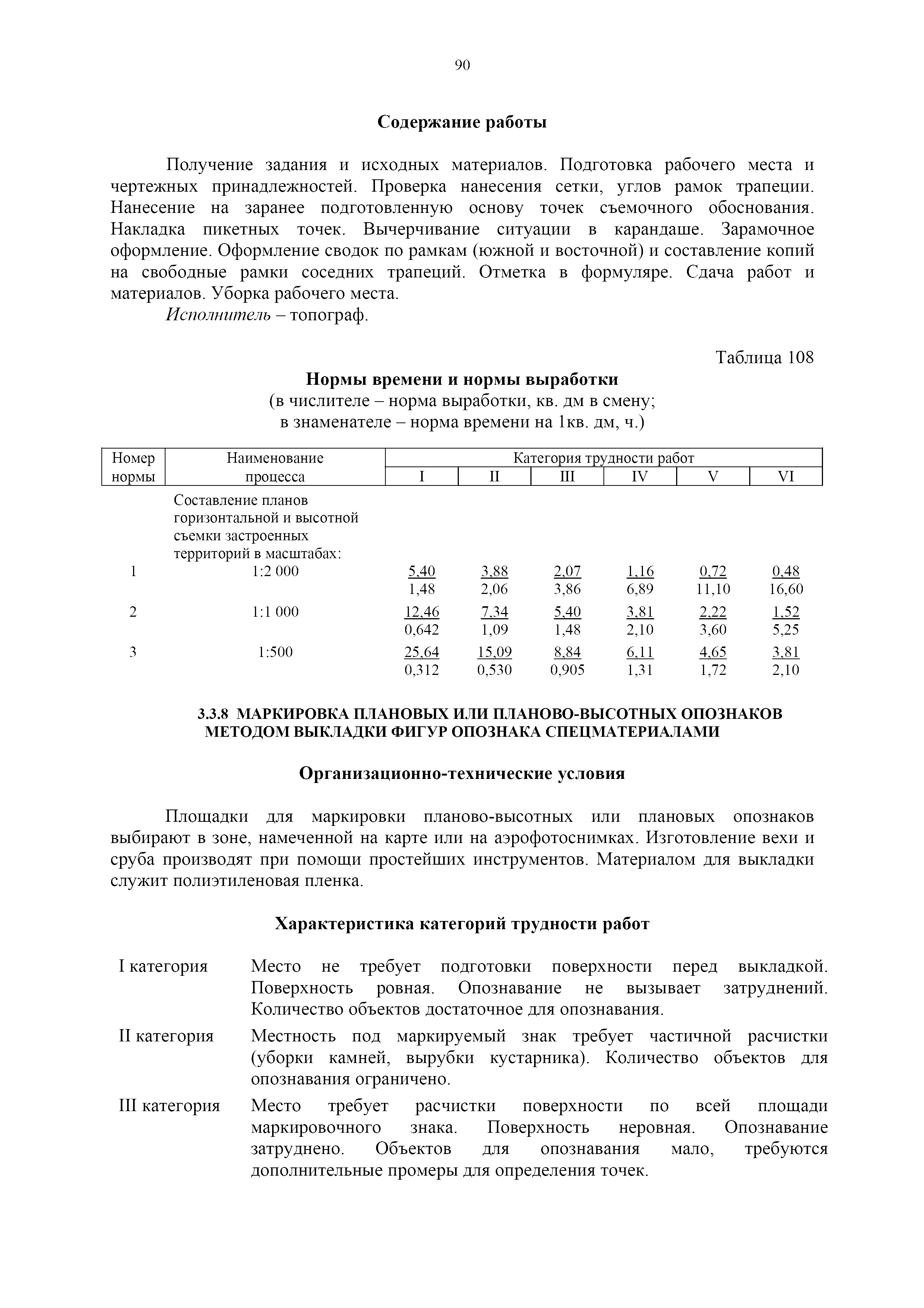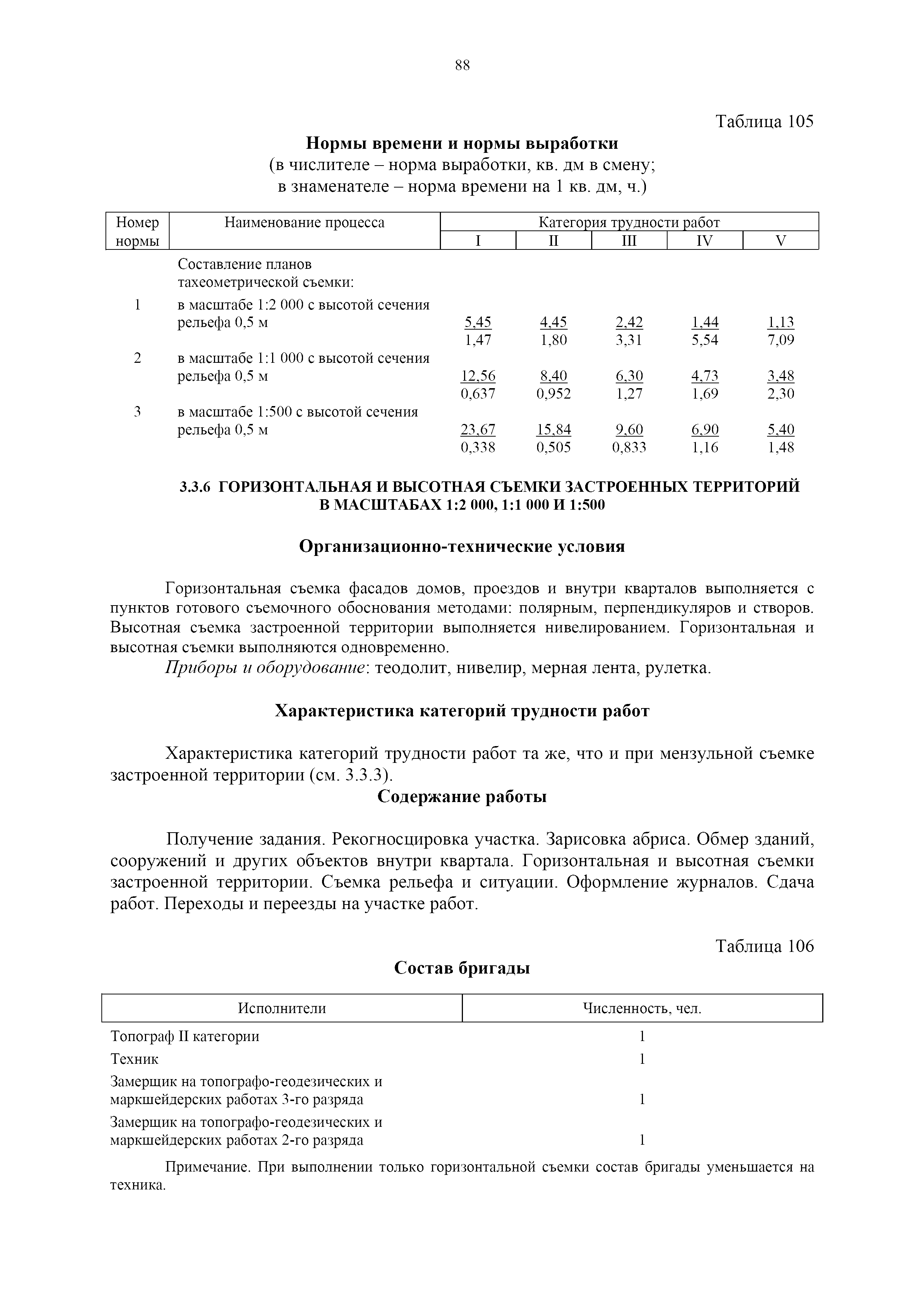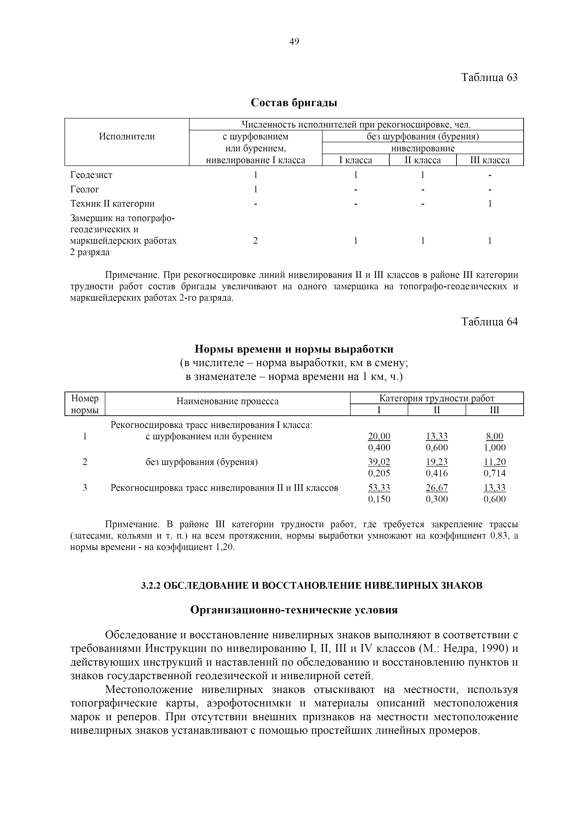 | Оглавление: | 1. Общая часть 2. Характеристика применяемых приборов, оборудования и технология работ 3. Организация труда 3.1. Создание и развитие государственных геодезических сетей и съемочного обоснования 3.1.1. Построение государственных геодезических сетей с применением глобальных навигационных спутниковых систем 3.1.2. Определение геодезических координат и высот пунктов съемочного обоснования с применением глобальных навигационных спутниковых систем 3.1.3. Гравиметрические работы 3.1.4. Измерение сторон по программе 1-го класса на геодинамических полигонах светодальномером "Гранат-М" 3.1.5. Рекогносцировка пунктов полигонометрии 4-го класса, 1-го и 2-го разрядов 3.1.6. Обследование и восстановление знаков полигонометрии 4-го класса, 1-го и 2-го разрядов на территории городов, поселков и промышленных площадках 3.1.7. Централизованное изготовление бетонных монолитов для центров, закладываемых на пунктах полигонометрии в городах, поселках и на промышленных площадках 3.1.8 Закладка центров на пунктах полигонометрии 4-го класса, 1-го и 2-го разрядов в городах, поселках и на промышленных площадках 3.1.9. Установка предохранительного чугунного колпака над центрами пунктов полигонометрии 4-го класса, 1-го и 2-го разрядов в городах, поселках и на промышленных площадках 3.1.10. Закладка стенных знаков полигонометрии в городах, поселках и на промышленных площадках 3.1.11. Измерение углов в полигонометрических ходах 4-го класса 3.1.12. Определение элементов редукции на пунктах полигонометрии 3.1.13. Проложение полигонометрических ходов 4-го класса, 1-го и 2-го разрядов с измерением длин сторон топографическими светодальномерами 3.1.14. Проложение теодолитных ходов 3.2. Нивелирование 3.2.1. Рекогносцировка линий нивелирования I, II, III классов 3.2.2. Обследование и восстановление нивелирных знаков 3.2.3. Обследование и восстановление знаков нивелирования II, III и IV классов в городах, поселках и на застроенных территориях 3.2.4. Закладка вековых реперов геодезической сети 3.2.5. Закладка фундаментальных реперов геодезической сети 3.2.6. Закладка центров (реперов) геодезической сети 3.2.7. Закладка грунтовых реперов геодезической сети, изготовленных на месте закладки 3.2.8. Централизованное изготовление железобетонных пилонов и опознавательных знаков для грунтовых реперов, закладываемых в зонах сезонного промерзания грунтов 3.2.9. Закладка грунтовых реперов, изготовленных централизованным путем 3.2.10. Закладка скальных марок 3.2.11. Закладка стенных марок и реперов 3.2.12. Нивелирование I класса 3.2.13. Нивелирование II, III и IV классов 3.2.14. Нивелирование II, III, IV классов в городах, поселках и на промышленных площадках 3.2.15. Нивелирование IV класса с одновременным опаздыванием, передачей высот на опознаки и их закреплением 3.2.16. Техническое нивелирование 3.3. Топографические съемки 3.3.1. Мензульная съемка в масштабе 1:10000 3.3.2. Мензульные съемки в масштабах 1:5000, 1:2000, 1:1000 и 1:500 3.3.3. Мензульная съемка застроенных территорий в масштабах 1:5000, 1:2000, 1:1000 и 1:500 3.3.4. Тахеометрическая съемка в масштабах 1:2000, 1:1000 и 1:500 3.3.5. Составление планов тахеометрической съемки в масштабах 1:2000, 1:1000 и 1:500 3.3.6. Горизонтальная и высотная съемки застроенных территорий в масштабах 1:2000, 1:1000 и 1:500 3.3.7. Составление планов горизонтальной и высотной съемки застроенных территорий в масштабах 1:2000, 1:1000 и 1:500 3.3.8. Маркировка плановых или планово-высо