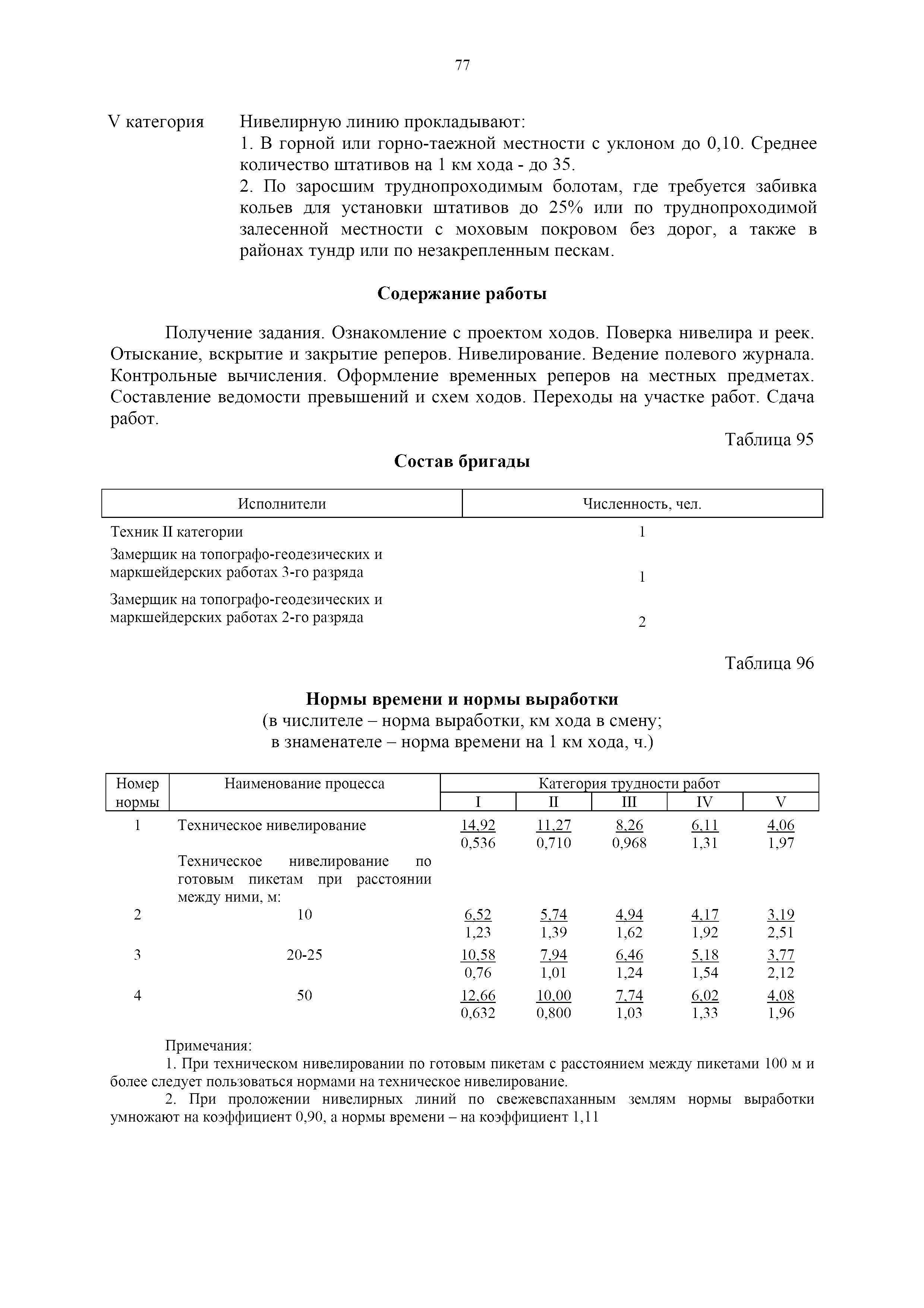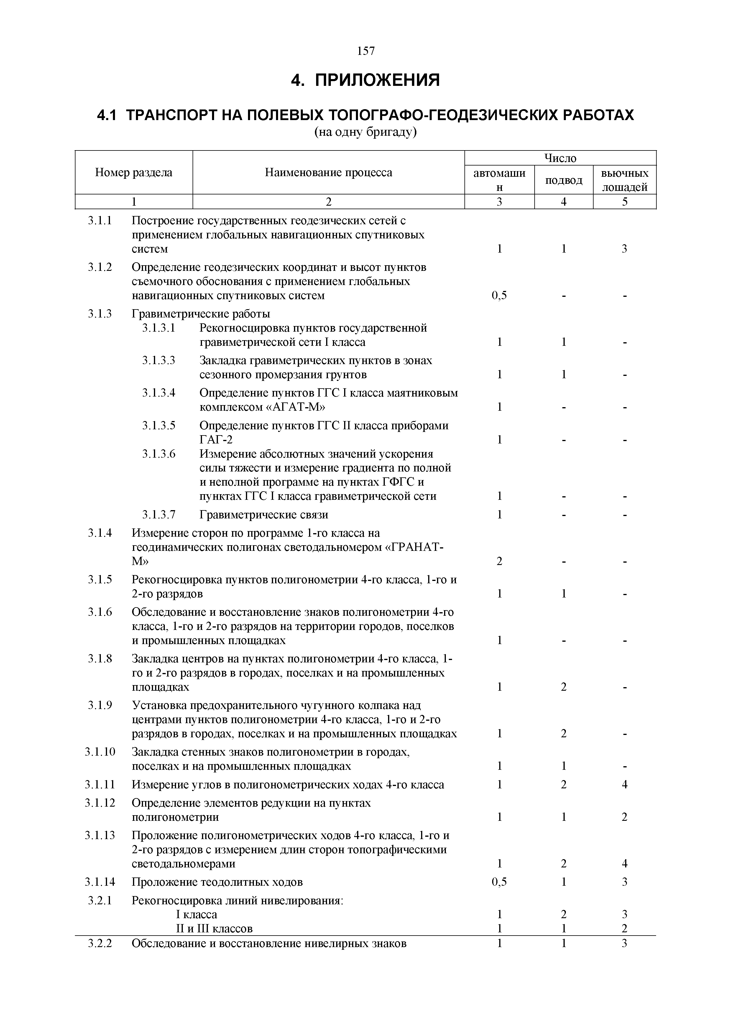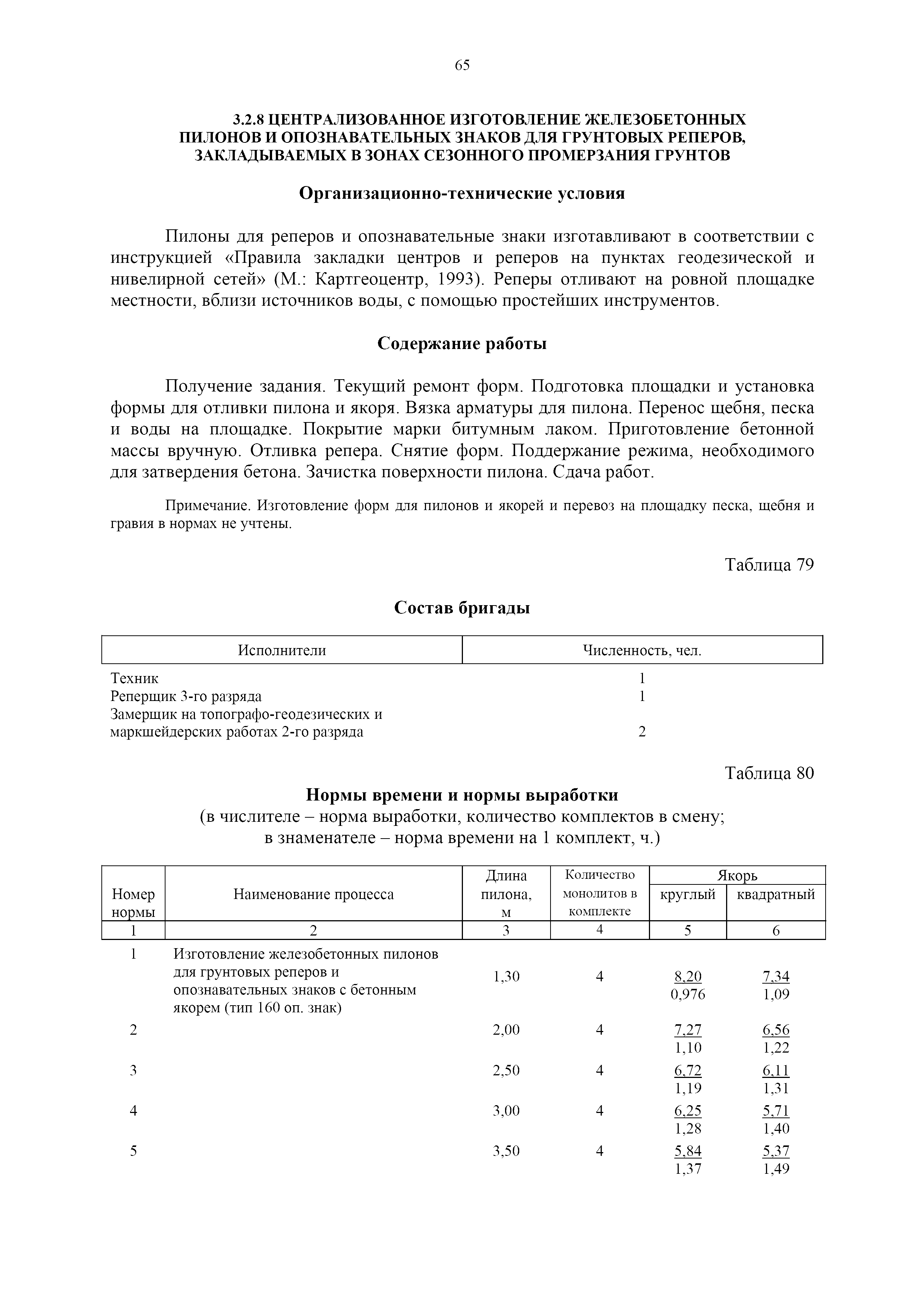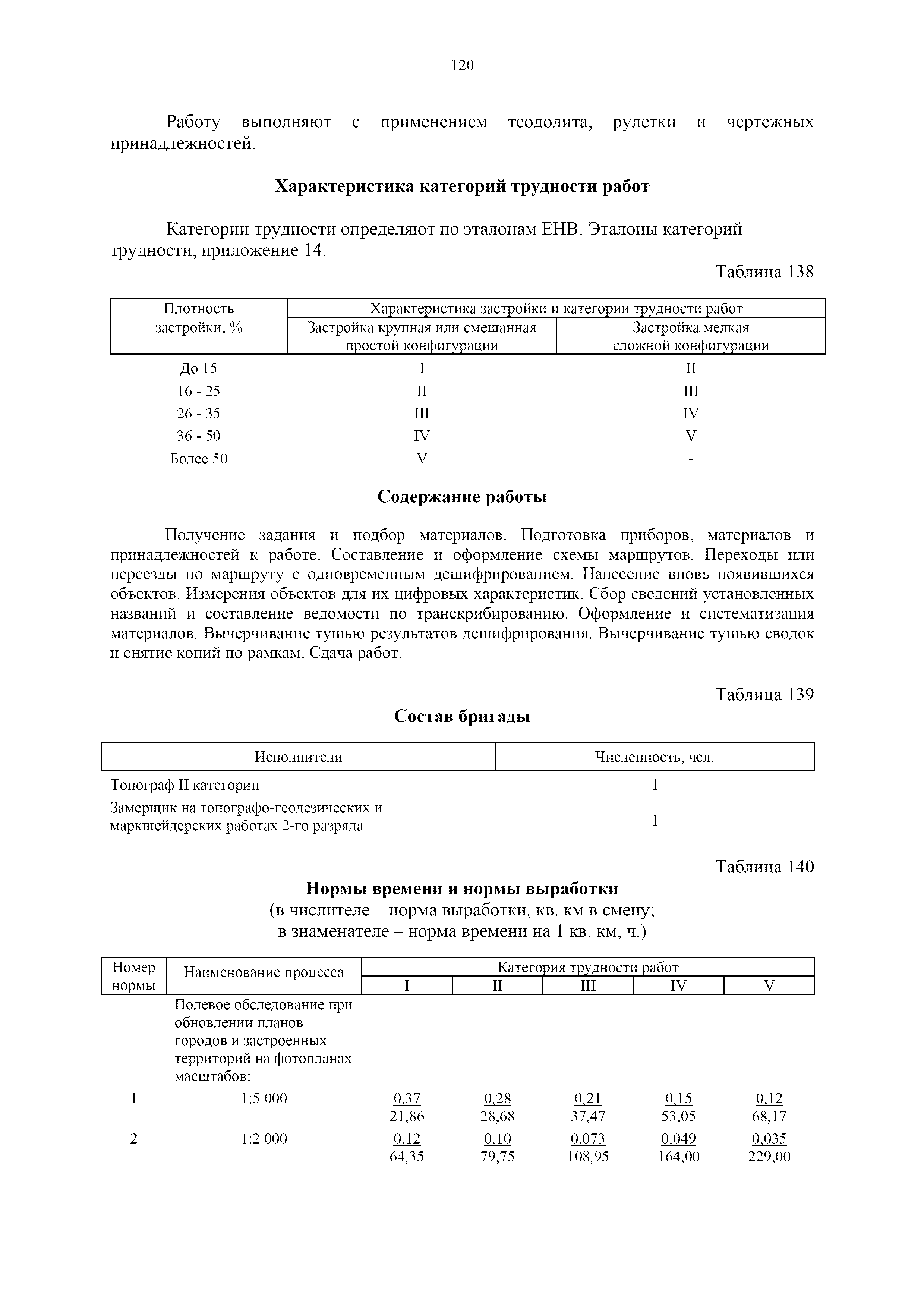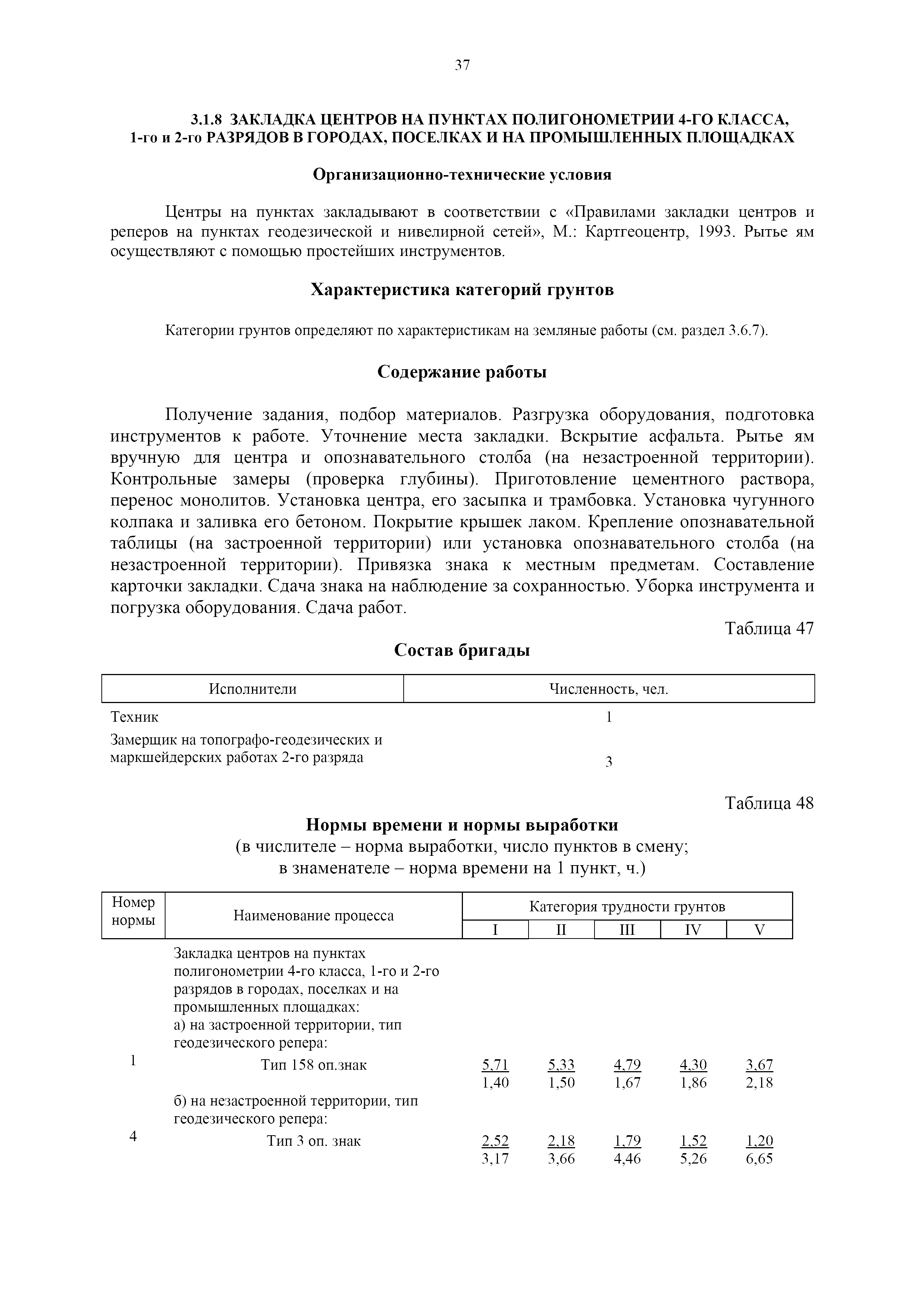 | Оглавление: | 1. Общая часть 2. Характеристика применяемых приборов, оборудования и технология работ 3. Организация труда 3.1. Создание и развитие государственных геодезических сетей и съемочного обоснования 3.1.1. Построение государственных геодезических сетей с применением глобальных навигационных спутниковых систем 3.1.2. Определение геодезических координат и высот пунктов съемочного обоснования с применением глобальных навигационных спутниковых систем 3.1.3. Гравиметрические работы 3.1.4. Измерение сторон по программе 1-го класса на геодинамических полигонах светодальномером "Гранат-М" 3.1.5. Рекогносцировка пунктов полигонометрии 4-го класса, 1-го и 2-го разрядов 3.1.6. Обследование и восстановление знаков полигонометрии 4-го класса, 1-го и 2-го разрядов на территории городов, поселков и промышленных площадках 3.1.7. Централизованное изготовление бетонных монолитов для центров, закладываемых на пунктах полигонометрии в городах, поселках и на промышленных площадках 3.1.8 Закладка центров на пунктах полигонометрии 4-го класса, 1-го и 2-го разрядов в городах, поселках и на промышленных площадках 3.1.9. Установка предохранительного чугунного колпака над центрами пунктов полигонометрии 4-го класса, 1-го и 2-го разрядов в городах, поселках и на промышленных площадках 3.1.10. Закладка стенных знаков полигонометрии в городах, поселках и на промышленных площадках 3.1.11. Измерение углов в полигонометрических ходах 4-го класса 3.1.12. Определение элементов редукции на пунктах полигонометрии 3.1.13. Проложение полигонометрических ходов 4-го класса, 1-го и 2-го разрядов с измерением длин сторон топографическими светодальномерами 3.1.14. Проложение теодолитных ходов 3.2. Нивелирование 3.2.1. Рекогносцировка линий нивелирования I, II, III классов 3.2.2. Обследование и восстановление нивелирных знаков 3.2.3. Обследование и восстановление знаков нивелирования II, III и IV классов в городах, поселках и на застроенных территориях 3.2.4. Закладка вековых реперов геодезической сети 3.2.5. Закладка фундаментальных реперов геодезической сети 3.2.6. Закладка центров (реперов) геодезической сети 3.2.7. Закладка грунтовых реперов геодезической сети, изготовленных на месте закладки 3.2.8. Централизованное изготовление железобетонных пилонов и опознавательных знаков для грунтовых реперов, закладываемых в зонах сезонного промерзания грунтов 3.2.9. Закладка грунтовых реперов, изготовленных централизованным путем 3.2.10. Закладка скальных марок 3.2.11. Закладка стенных марок и реперов 3.2.12. Нивелирование I класса 3.2.13. Нивелирование II, III и IV классов 3.2.14. Нивелирование II, III, IV классов в городах, поселках и на промышленных площадках 3.2.15. Нивелирование IV класса с одновременным опаздыванием, передачей высот на опознаки и их закреплением 3.2.16. Техническое нивелирование 3.3. Топографические съемки 3.3.1. Мензульная съемка в масштабе 1:10000 3.3.2. Мензульные съемки в масштабах 1:5000, 1:2000, 1:1000 и 1:500 3.3.3. Мензульная съемка застроенных территорий в масштабах 1:5000, 1:2000, 1:1000 и 1:500 3.3.4. Тахеометрическая съемка в масштабах 1:2000, 1:1000 и 1:500 3.3.5. Составление планов тахеометрической съемки в масштабах 1:2000, 1:1000 и 1:500 3.3.6. Горизонтальная и высотная съемки застроенных территорий в масштабах 1:2000, 1:1000 и 1:500 3.3.7. Составление планов горизонтальной и высотной съемки застроенных территорий в масштабах 1:2000, 1:1000 и 1:500 3.3.8. Маркировка плановых или планово-высо