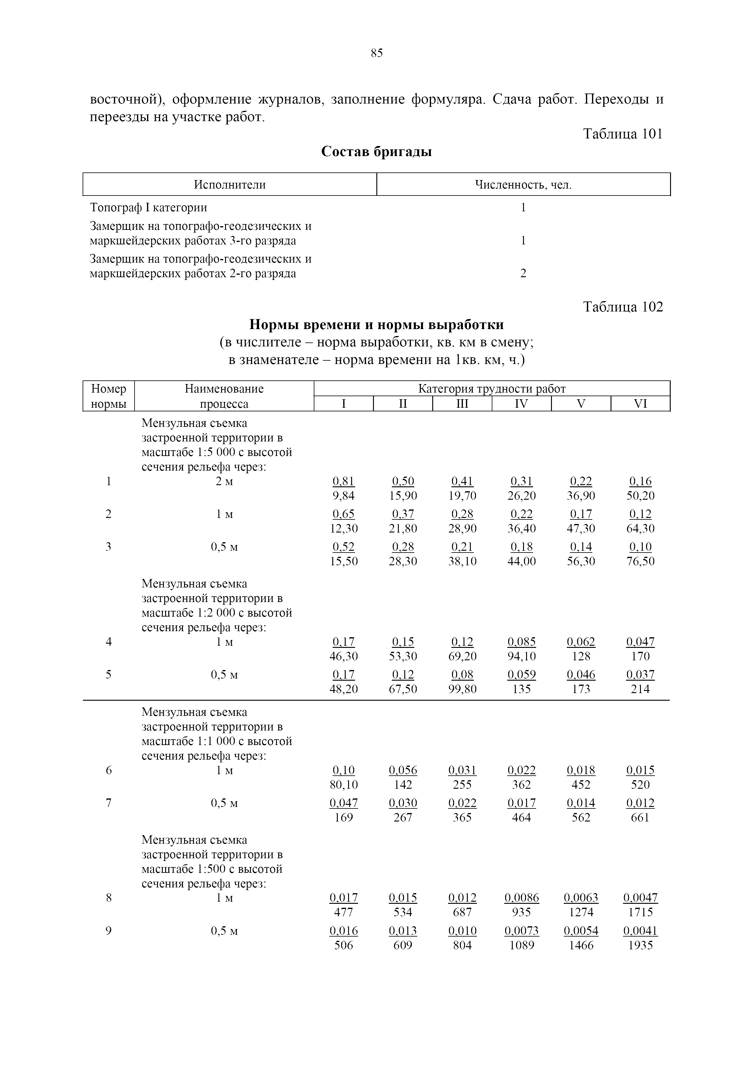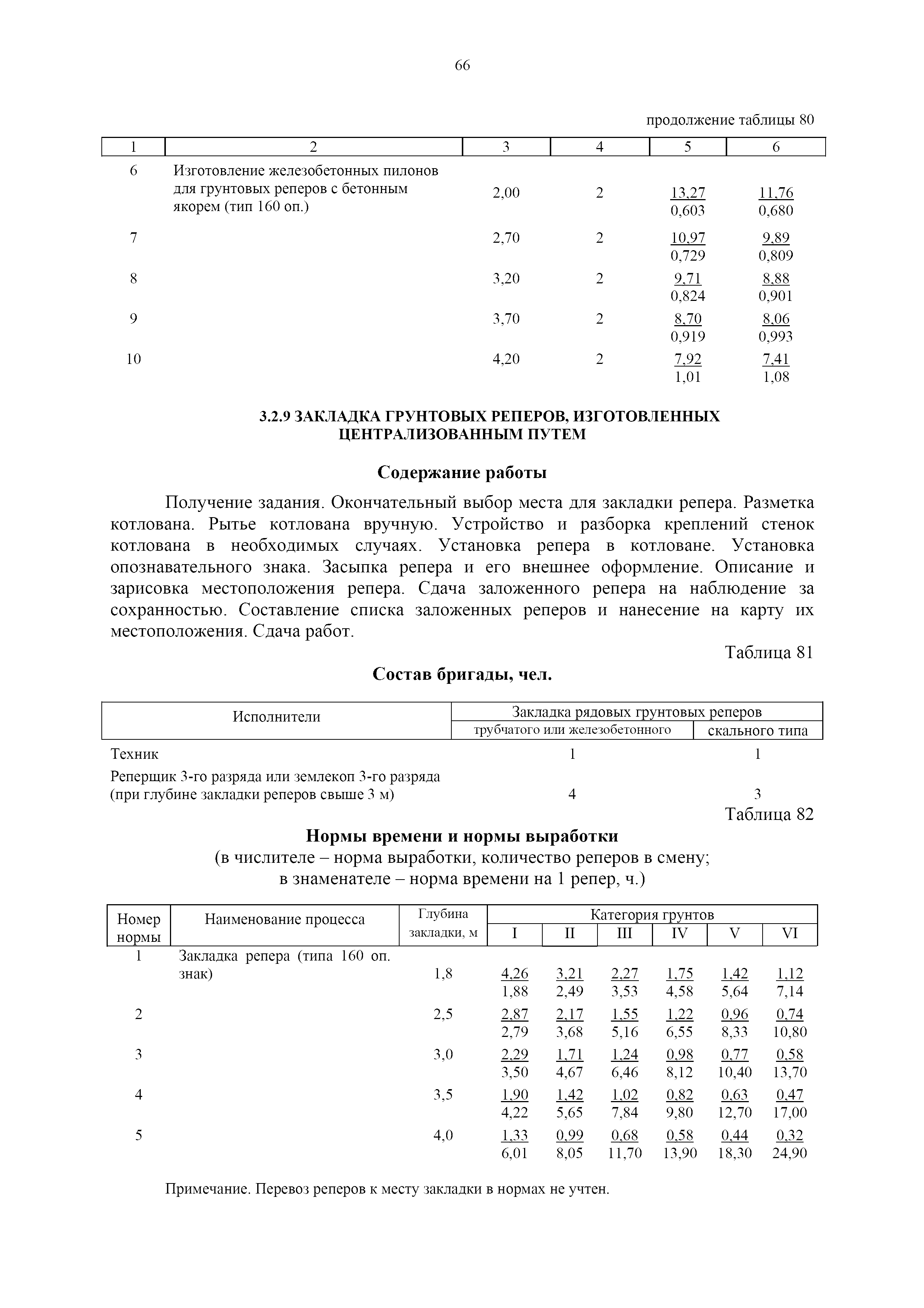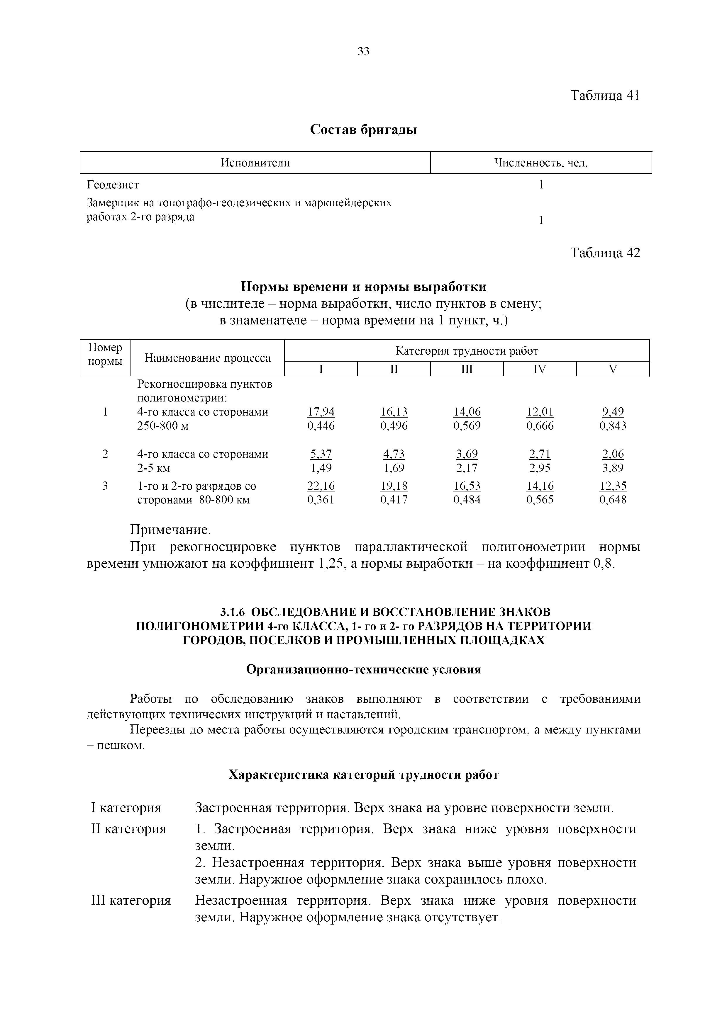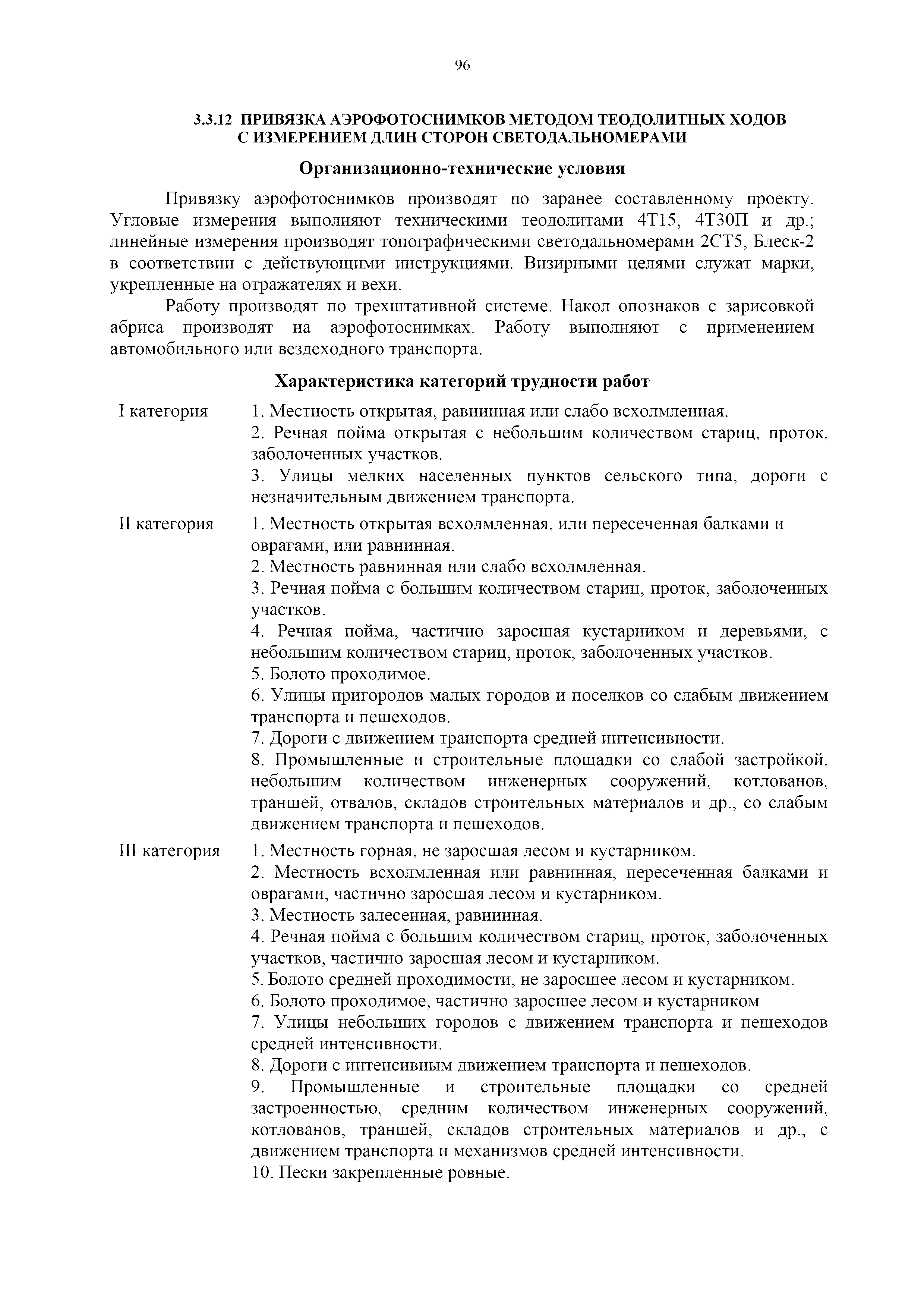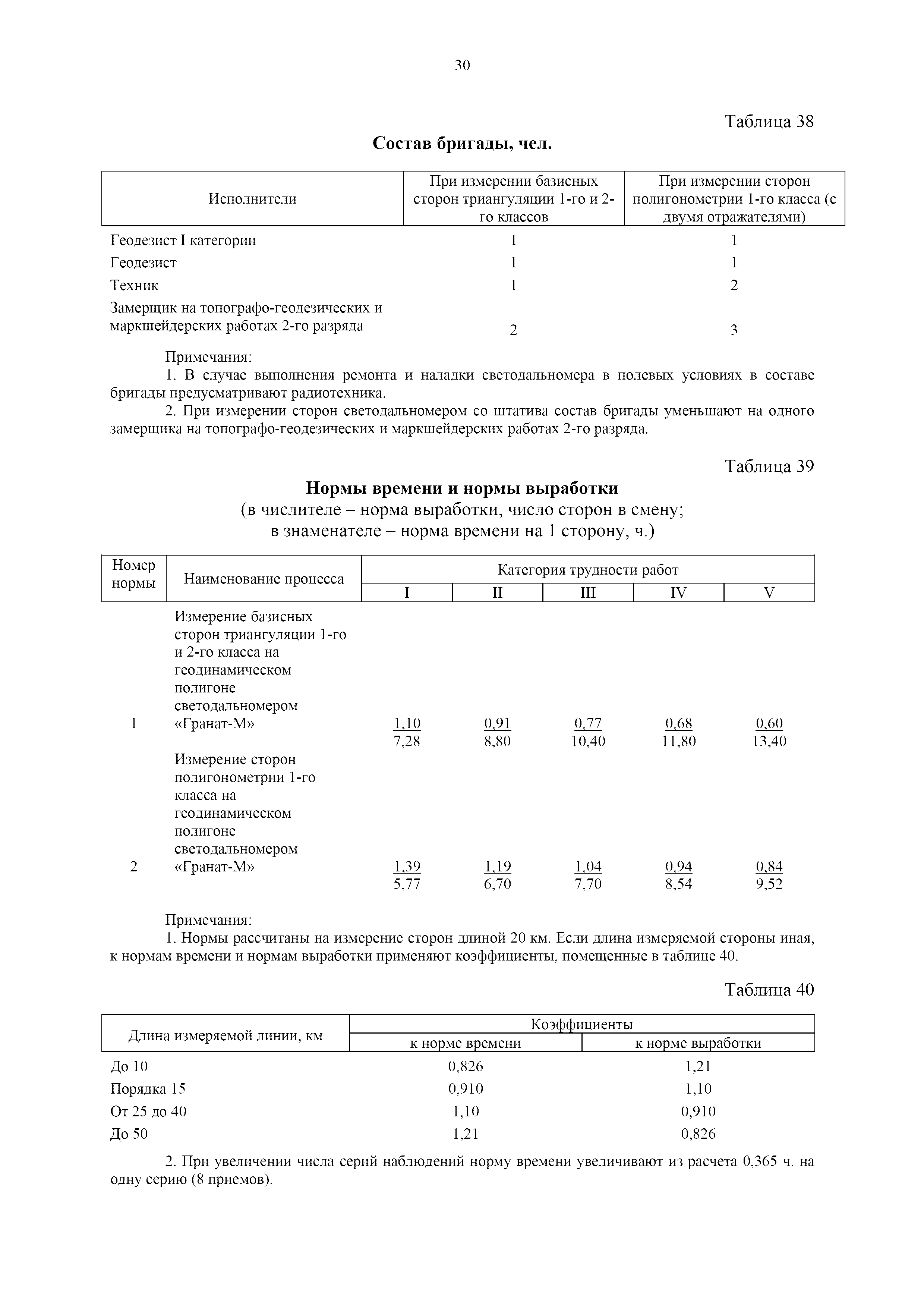 | Оглавление: | 1. Общая часть 2. Характеристика применяемых приборов, оборудования и технология работ 3. Организация труда 3.1. Создание и развитие государственных геодезических сетей и съемочного обоснования 3.1.1. Построение государственных геодезических сетей с применением глобальных навигационных спутниковых систем 3.1.2. Определение геодезических координат и высот пунктов съемочного обоснования с применением глобальных навигационных спутниковых систем 3.1.3. Гравиметрические работы 3.1.4. Измерение сторон по программе 1-го класса на геодинамических полигонах светодальномером "Гранат-М" 3.1.5. Рекогносцировка пунктов полигонометрии 4-го класса, 1-го и 2-го разрядов 3.1.6. Обследование и восстановление знаков полигонометрии 4-го класса, 1-го и 2-го разрядов на территории городов, поселков и промышленных площадках 3.1.7. Централизованное изготовление бетонных монолитов для центров, закладываемых на пунктах полигонометрии в городах, поселках и на промышленных площадках 3.1.8 Закладка центров на пунктах полигонометрии 4-го класса, 1-го и 2-го разрядов в городах, поселках и на промышленных площадках 3.1.9. Установка предохранительного чугунного колпака над центрами пунктов полигонометрии 4-го класса, 1-го и 2-го разрядов в городах, поселках и на промышленных площадках 3.1.10. Закладка стенных знаков полигонометрии в городах, поселках и на промышленных площадках 3.1.11. Измерение углов в полигонометрических ходах 4-го класса 3.1.12. Определение элементов редукции на пунктах полигонометрии 3.1.13. Проложение полигонометрических ходов 4-го класса, 1-го и 2-го разрядов с измерением длин сторон топографическими светодальномерами 3.1.14. Проложение теодолитных ходов 3.2. Нивелирование 3.2.1. Рекогносцировка линий нивелирования I, II, III классов 3.2.2. Обследование и восстановление нивелирных знаков 3.2.3. Обследование и восстановление знаков нивелирования II, III и IV классов в городах, поселках и на застроенных территориях 3.2.4. Закладка вековых реперов геодезической сети 3.2.5. Закладка фундаментальных реперов геодезической сети 3.2.6. Закладка центров (реперов) геодезической сети 3.2.7. Закладка грунтовых реперов геодезической сети, изготовленных на месте закладки 3.2.8. Централизованное изготовление железобетонных пилонов и опознавательных знаков для грунтовых реперов, закладываемых в зонах сезонного промерзания грунтов 3.2.9. Закладка грунтовых реперов, изготовленных централизованным путем 3.2.10. Закладка скальных марок 3.2.11. Закладка стенных марок и реперов 3.2.12. Нивелирование I класса 3.2.13. Нивелирование II, III и IV классов 3.2.14. Нивелирование II, III, IV классов в городах, поселках и на промышленных площадках 3.2.15. Нивелирование IV класса с одновременным опаздыванием, передачей высот на опознаки и их закреплением 3.2.16. Техническое нивелирование 3.3. Топографические съемки 3.3.1. Мензульная съемка в масштабе 1:10000 3.3.2. Мензульные съемки в масштабах 1:5000, 1:2000, 1:1000 и 1:500 3.3.3. Мензульная съемка застроенных территорий в масштабах 1:5000, 1:2000, 1:1000 и 1:500 3.3.4. Тахеометрическая съемка в масштабах 1:2000, 1:1000 и 1:500 3.3.5. Составление планов тахеометрической съемки в масштабах 1:2000, 1:1000 и 1:500 3.3.6. Горизонтальная и высотная съемки застроенных территорий в масштабах 1:2000, 1:1000 и 1:500 3.3.7. Составление планов горизонтальной и высотной съемки застроенных территорий в масштабах 1:2000, 1:1000 и 1:500 3.3.8. Маркировка плановых или планово-высо