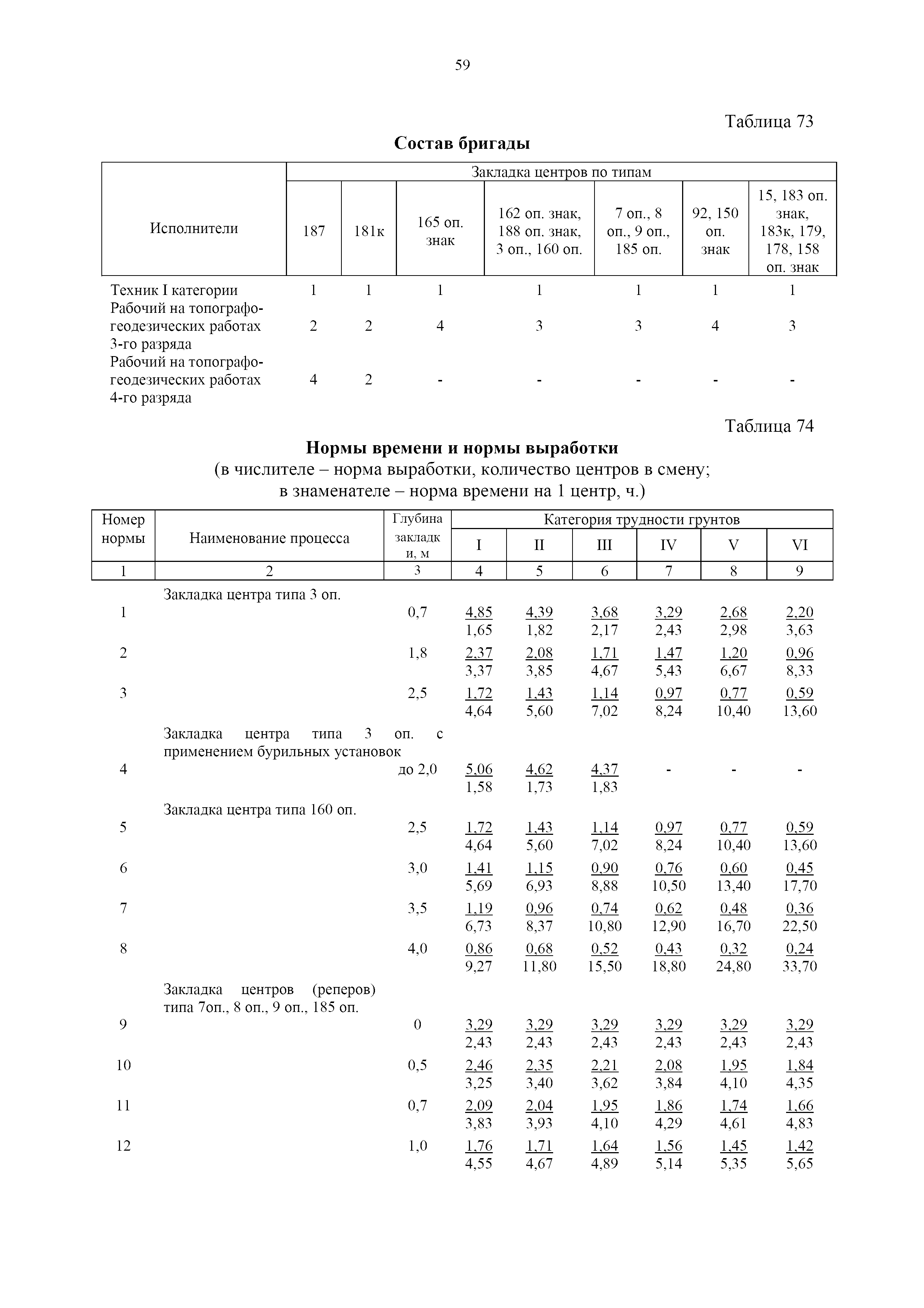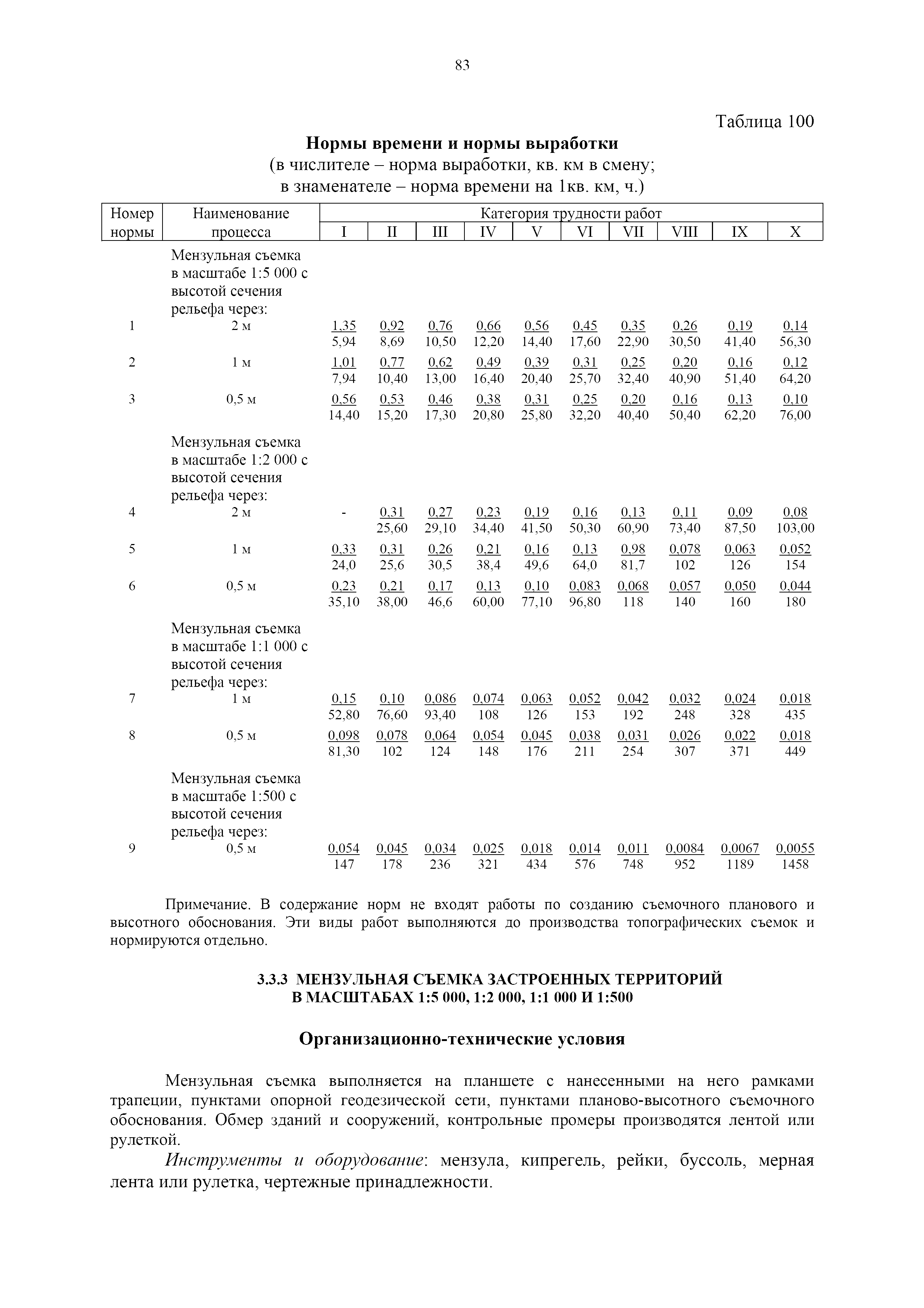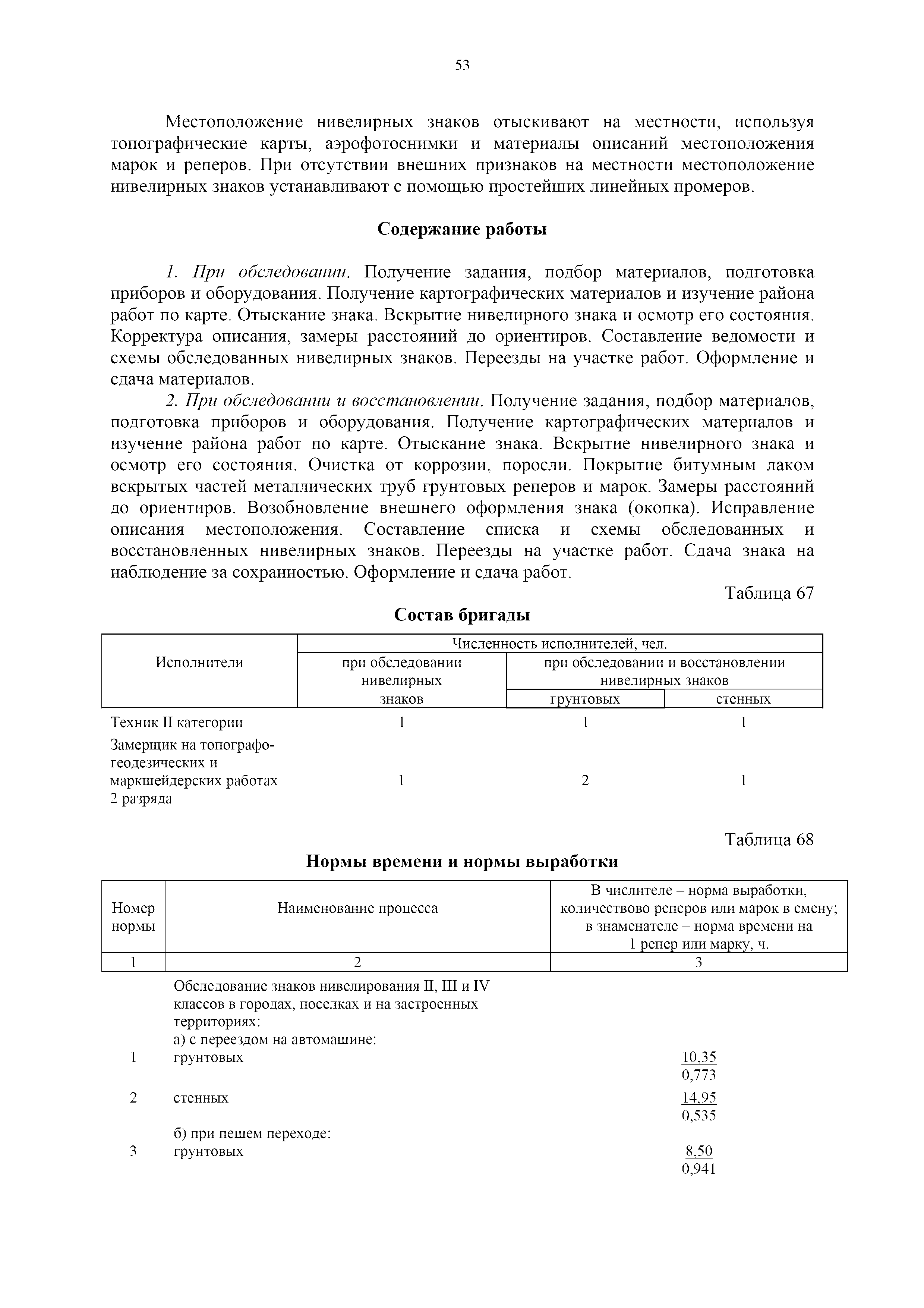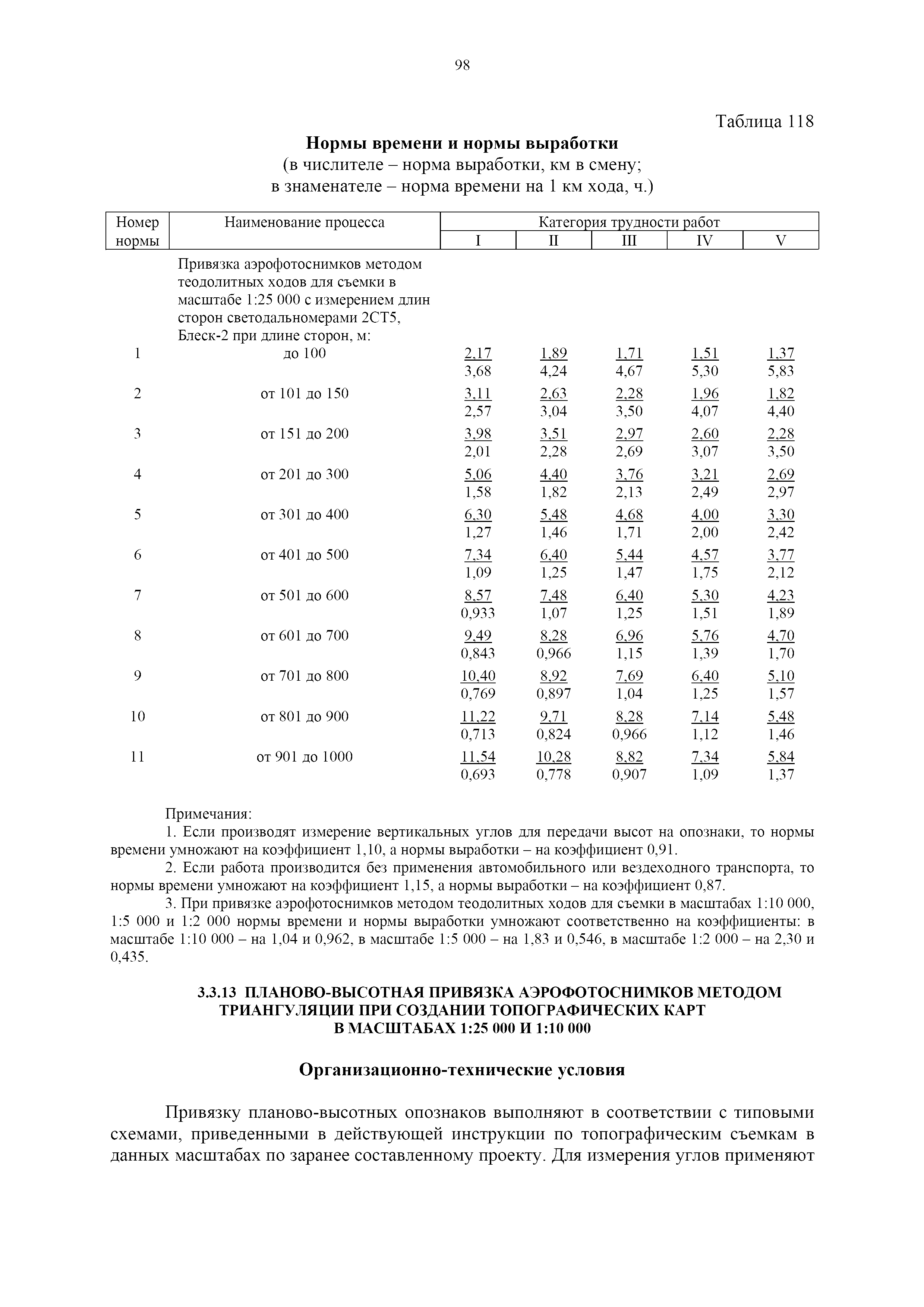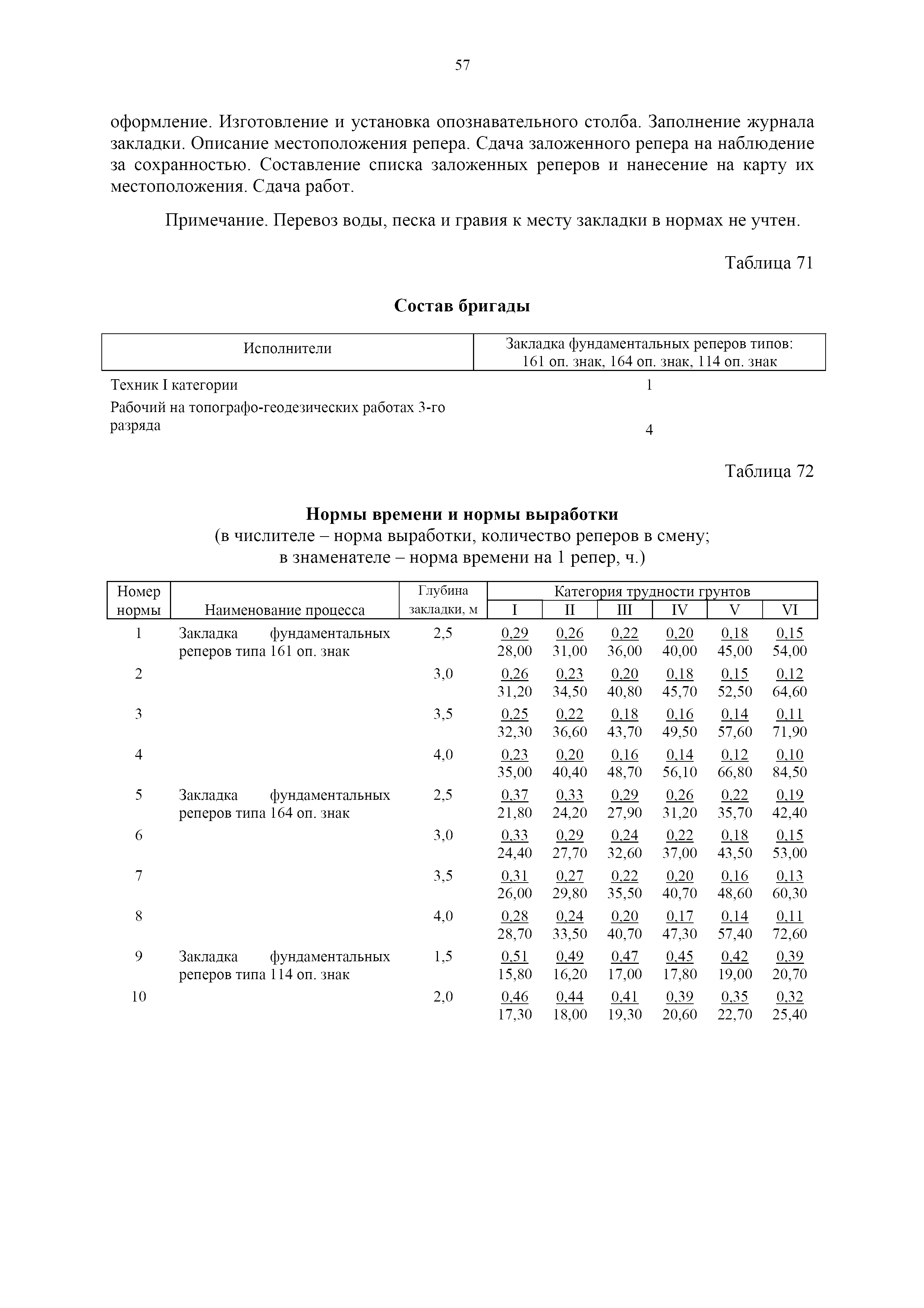 | Оглавление: | 1. Общая часть 2. Характеристика применяемых приборов, оборудования и технология работ 3. Организация труда 3.1. Создание и развитие государственных геодезических сетей и съемочного обоснования 3.1.1. Построение государственных геодезических сетей с применением глобальных навигационных спутниковых систем 3.1.2. Определение геодезических координат и высот пунктов съемочного обоснования с применением глобальных навигационных спутниковых систем 3.1.3. Гравиметрические работы 3.1.4. Измерение сторон по программе 1-го класса на геодинамических полигонах светодальномером "Гранат-М" 3.1.5. Рекогносцировка пунктов полигонометрии 4-го класса, 1-го и 2-го разрядов 3.1.6. Обследование и восстановление знаков полигонометрии 4-го класса, 1-го и 2-го разрядов на территории городов, поселков и промышленных площадках 3.1.7. Централизованное изготовление бетонных монолитов для центров, закладываемых на пунктах полигонометрии в городах, поселках и на промышленных площадках 3.1.8 Закладка центров на пунктах полигонометрии 4-го класса, 1-го и 2-го разрядов в городах, поселках и на промышленных площадках 3.1.9. Установка предохранительного чугунного колпака над центрами пунктов полигонометрии 4-го класса, 1-го и 2-го разрядов в городах, поселках и на промышленных площадках 3.1.10. Закладка стенных знаков полигонометрии в городах, поселках и на промышленных площадках 3.1.11. Измерение углов в полигонометрических ходах 4-го класса 3.1.12. Определение элементов редукции на пунктах полигонометрии 3.1.13. Проложение полигонометрических ходов 4-го класса, 1-го и 2-го разрядов с измерением длин сторон топографическими светодальномерами 3.1.14. Проложение теодолитных ходов 3.2. Нивелирование 3.2.1. Рекогносцировка линий нивелирования I, II, III классов 3.2.2. Обследование и восстановление нивелирных знаков 3.2.3. Обследование и восстановление знаков нивелирования II, III и IV классов в городах, поселках и на застроенных территориях 3.2.4. Закладка вековых реперов геодезической сети 3.2.5. Закладка фундаментальных реперов геодезической сети 3.2.6. Закладка центров (реперов) геодезической сети 3.2.7. Закладка грунтовых реперов геодезической сети, изготовленных на месте закладки 3.2.8. Централизованное изготовление железобетонных пилонов и опознавательных знаков для грунтовых реперов, закладываемых в зонах сезонного промерзания грунтов 3.2.9. Закладка грунтовых реперов, изготовленных централизованным путем 3.2.10. Закладка скальных марок 3.2.11. Закладка стенных марок и реперов 3.2.12. Нивелирование I класса 3.2.13. Нивелирование II, III и IV классов 3.2.14. Нивелирование II, III, IV классов в городах, поселках и на промышленных площадках 3.2.15. Нивелирование IV класса с одновременным опаздыванием, передачей высот на опознаки и их закреплением 3.2.16. Техническое нивелирование 3.3. Топографические съемки 3.3.1. Мензульная съемка в масштабе 1:10000 3.3.2. Мензульные съемки в масштабах 1:5000, 1:2000, 1:1000 и 1:500 3.3.3. Мензульная съемка застроенных территорий в масштабах 1:5000, 1:2000, 1:1000 и 1:500 3.3.4. Тахеометрическая съемка в масштабах 1:2000, 1:1000 и 1:500 3.3.5. Составление планов тахеометрической съемки в масштабах 1:2000, 1:1000 и 1:500 3.3.6. Горизонтальная и высотная съемки застроенных территорий в масштабах 1:2000, 1:1000 и 1:500 3.3.7. Составление планов горизонтальной и высотной съемки застроенных территорий в масштабах 1:2000, 1:1000 и 1:500 3.3.8. Маркировка плановых или планово-высо