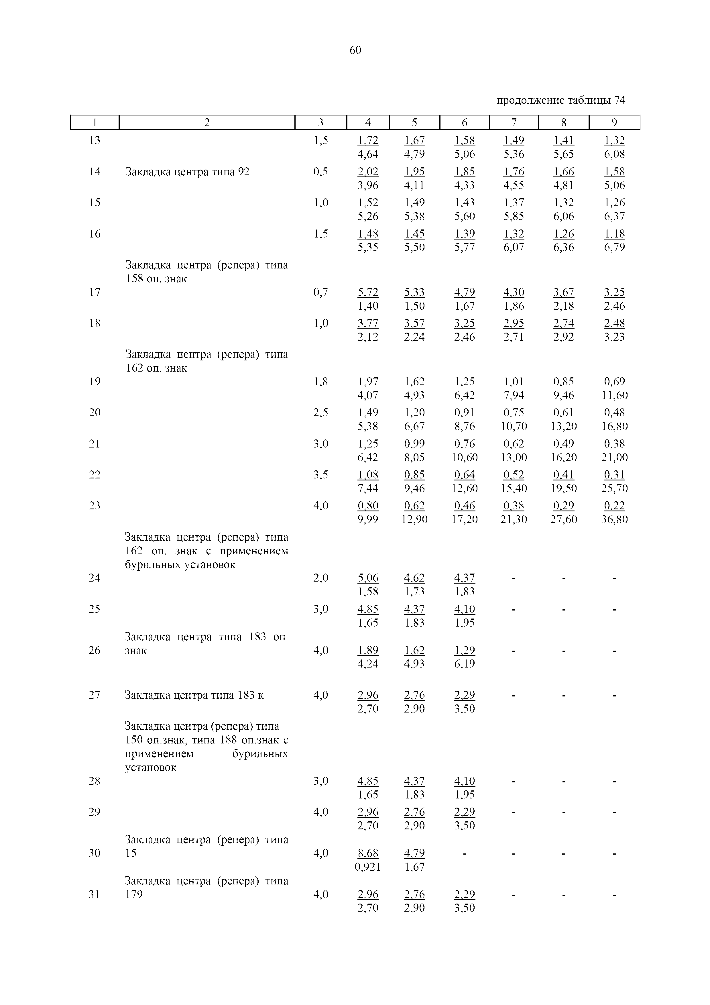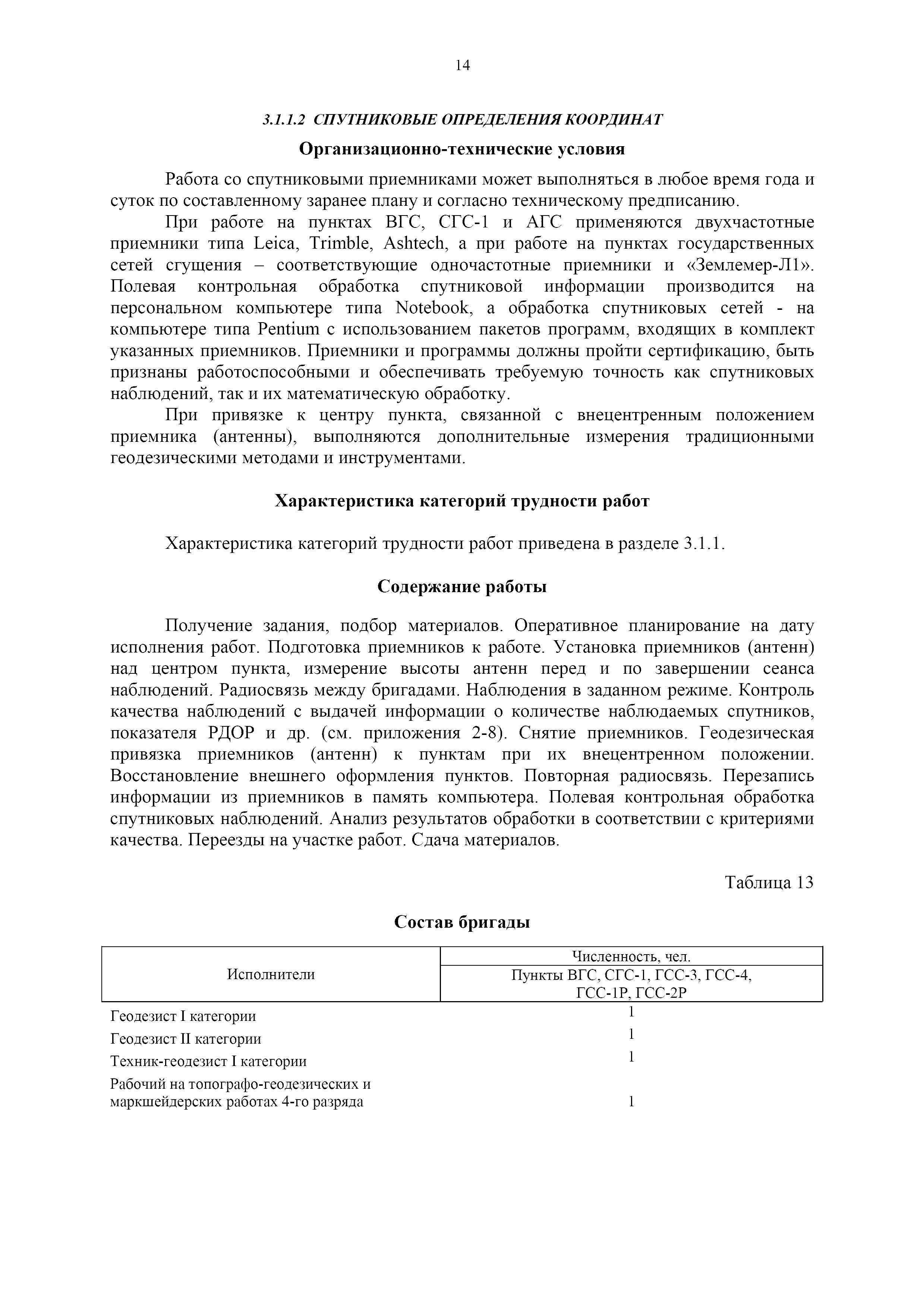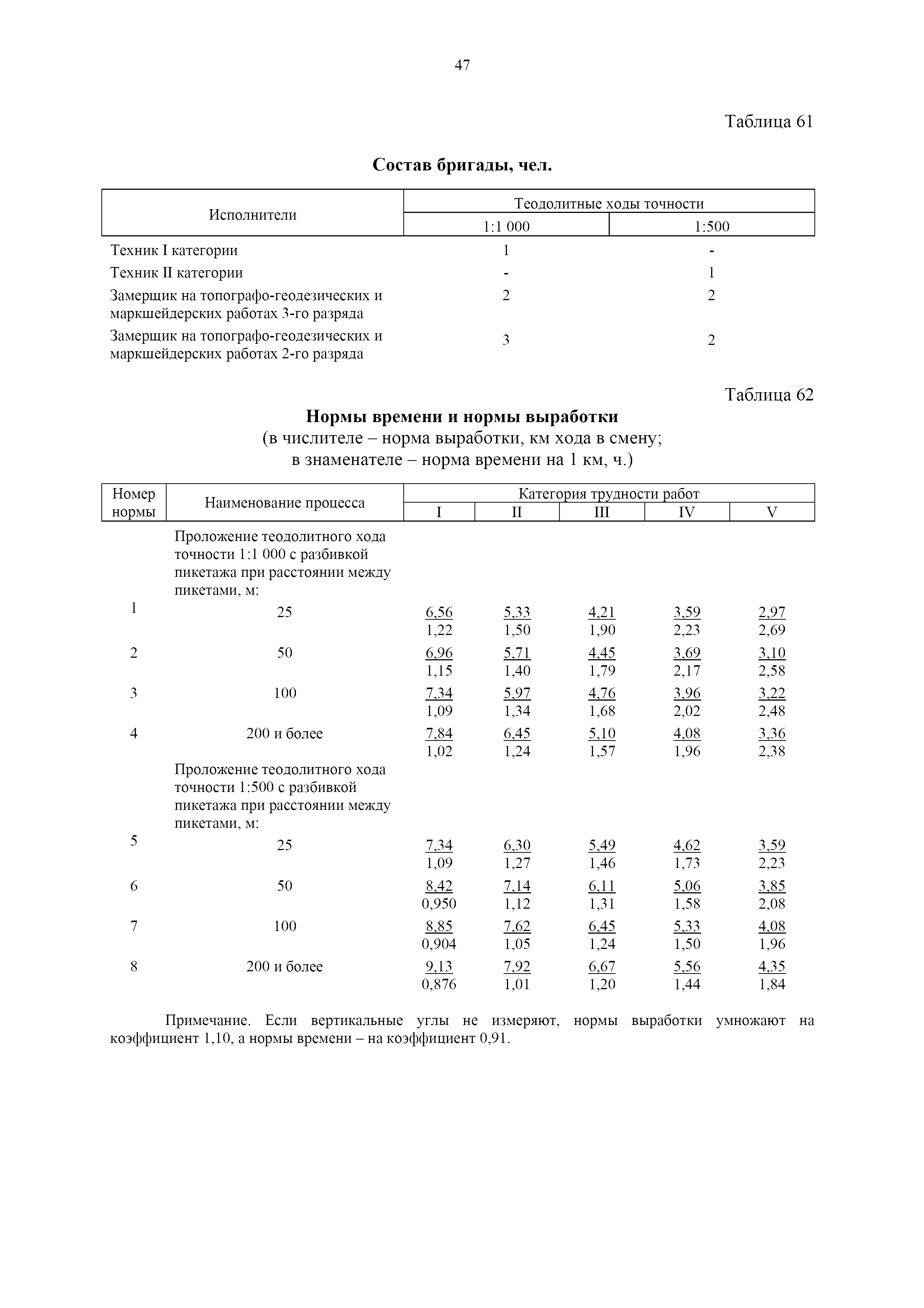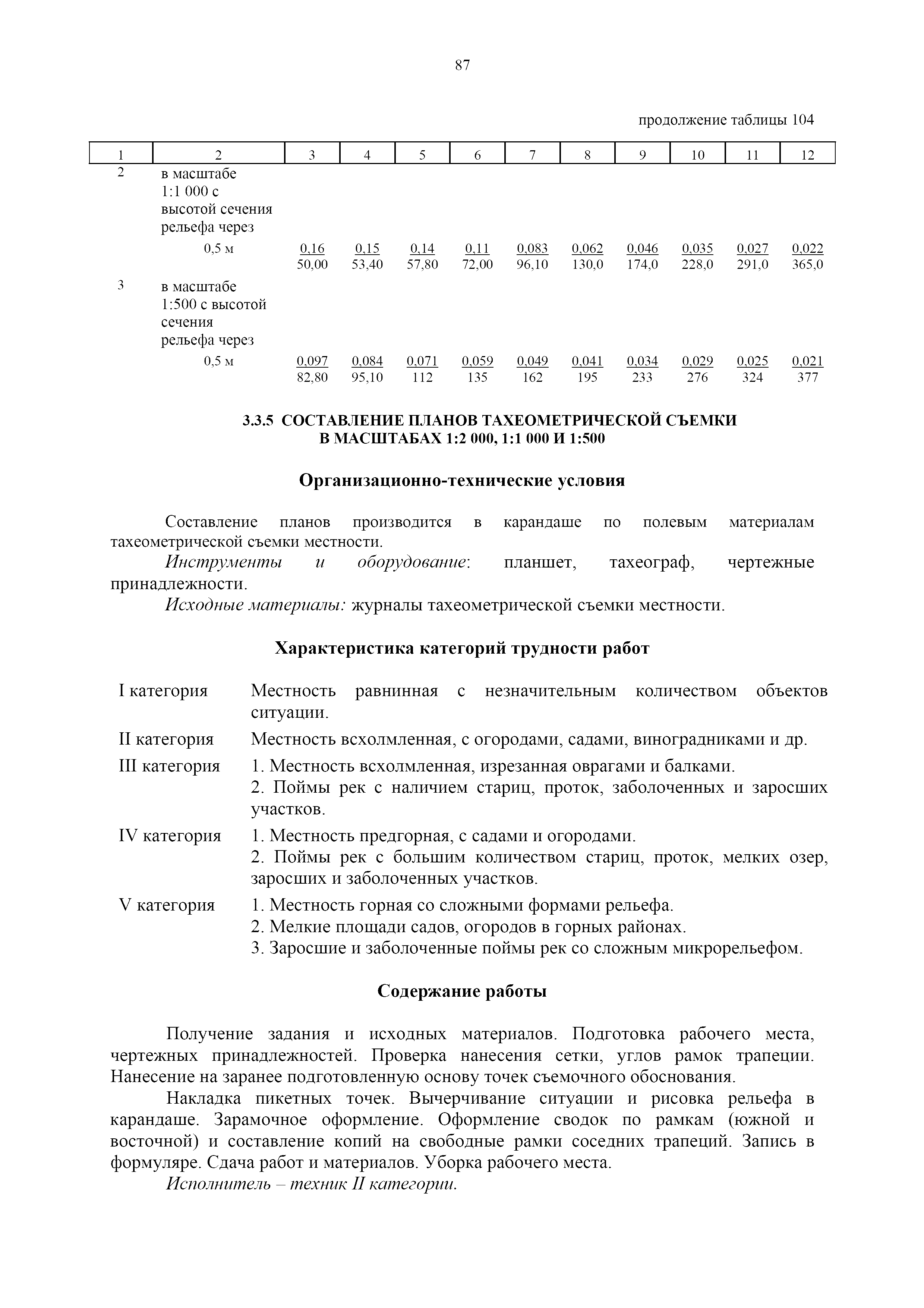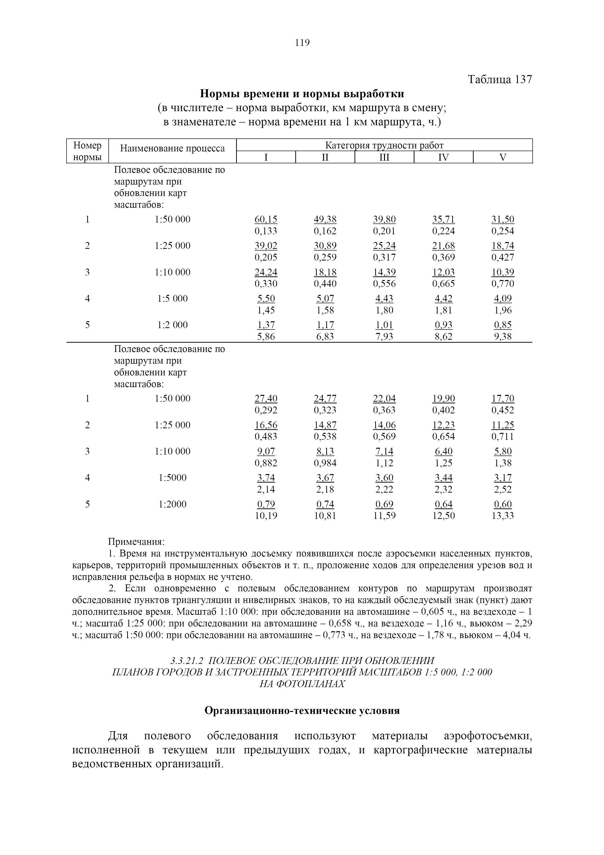 | Оглавление: | 1. Общая часть 2. Характеристика применяемых приборов, оборудования и технология работ 3. Организация труда 3.1. Создание и развитие государственных геодезических сетей и съемочного обоснования 3.1.1. Построение государственных геодезических сетей с применением глобальных навигационных спутниковых систем 3.1.2. Определение геодезических координат и высот пунктов съемочного обоснования с применением глобальных навигационных спутниковых систем 3.1.3. Гравиметрические работы 3.1.4. Измерение сторон по программе 1-го класса на геодинамических полигонах светодальномером "Гранат-М" 3.1.5. Рекогносцировка пунктов полигонометрии 4-го класса, 1-го и 2-го разрядов 3.1.6. Обследование и восстановление знаков полигонометрии 4-го класса, 1-го и 2-го разрядов на территории городов, поселков и промышленных площадках 3.1.7. Централизованное изготовление бетонных монолитов для центров, закладываемых на пунктах полигонометрии в городах, поселках и на промышленных площадках 3.1.8 Закладка центров на пунктах полигонометрии 4-го класса, 1-го и 2-го разрядов в городах, поселках и на промышленных площадках 3.1.9. Установка предохранительного чугунного колпака над центрами пунктов полигонометрии 4-го класса, 1-го и 2-го разрядов в городах, поселках и на промышленных площадках 3.1.10. Закладка стенных знаков полигонометрии в городах, поселках и на промышленных площадках 3.1.11. Измерение углов в полигонометрических ходах 4-го класса 3.1.12. Определение элементов редукции на пунктах полигонометрии 3.1.13. Проложение полигонометрических ходов 4-го класса, 1-го и 2-го разрядов с измерением длин сторон топографическими светодальномерами 3.1.14. Проложение теодолитных ходов 3.2. Нивелирование 3.2.1. Рекогносцировка линий нивелирования I, II, III классов 3.2.2. Обследование и восстановление нивелирных знаков 3.2.3. Обследование и восстановление знаков нивелирования II, III и IV классов в городах, поселках и на застроенных территориях 3.2.4. Закладка вековых реперов геодезической сети 3.2.5. Закладка фундаментальных реперов геодезической сети 3.2.6. Закладка центров (реперов) геодезической сети 3.2.7. Закладка грунтовых реперов геодезической сети, изготовленных на месте закладки 3.2.8. Централизованное изготовление железобетонных пилонов и опознавательных знаков для грунтовых реперов, закладываемых в зонах сезонного промерзания грунтов 3.2.9. Закладка грунтовых реперов, изготовленных централизованным путем 3.2.10. Закладка скальных марок 3.2.11. Закладка стенных марок и реперов 3.2.12. Нивелирование I класса 3.2.13. Нивелирование II, III и IV классов 3.2.14. Нивелирование II, III, IV классов в городах, поселках и на промышленных площадках 3.2.15. Нивелирование IV класса с одновременным опаздыванием, передачей высот на опознаки и их закреплением 3.2.16. Техническое нивелирование 3.3. Топографические съемки 3.3.1. Мензульная съемка в масштабе 1:10000 3.3.2. Мензульные съемки в масштабах 1:5000, 1:2000, 1:1000 и 1:500 3.3.3. Мензульная съемка застроенных территорий в масштабах 1:5000, 1:2000, 1:1000 и 1:500 3.3.4. Тахеометрическая съемка в масштабах 1:2000, 1:1000 и 1:500 3.3.5. Составление планов тахеометрической съемки в масштабах 1:2000, 1:1000 и 1:500 3.3.6. Горизонтальная и высотная съемки застроенных территорий в масштабах 1:2000, 1:1000 и 1:500 3.3.7. Составление планов горизонтальной и высотной съемки застроенных территорий в масштабах 1:2000, 1:1000 и 1:500 3.3.8. Маркировка плановых или планово-высо