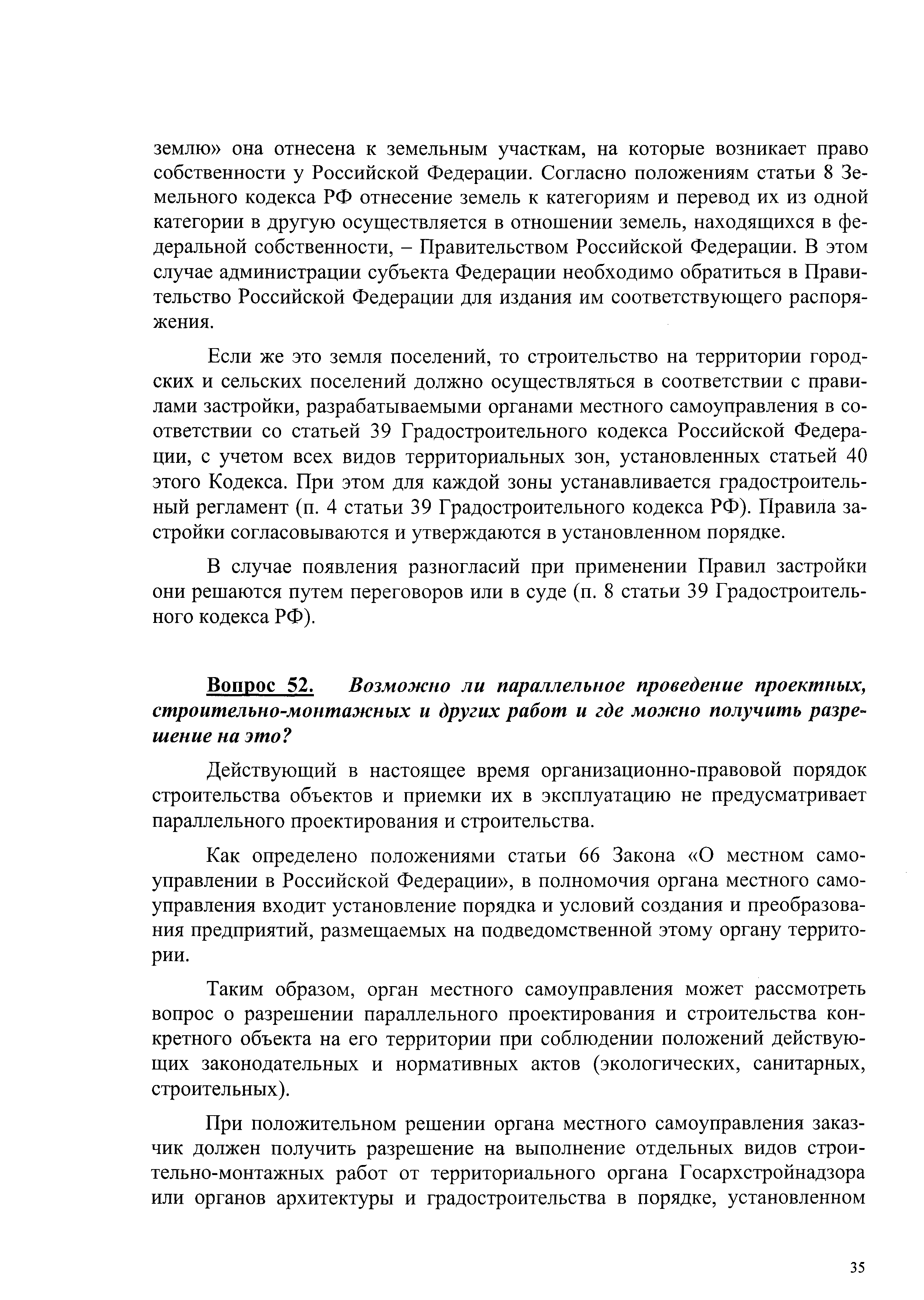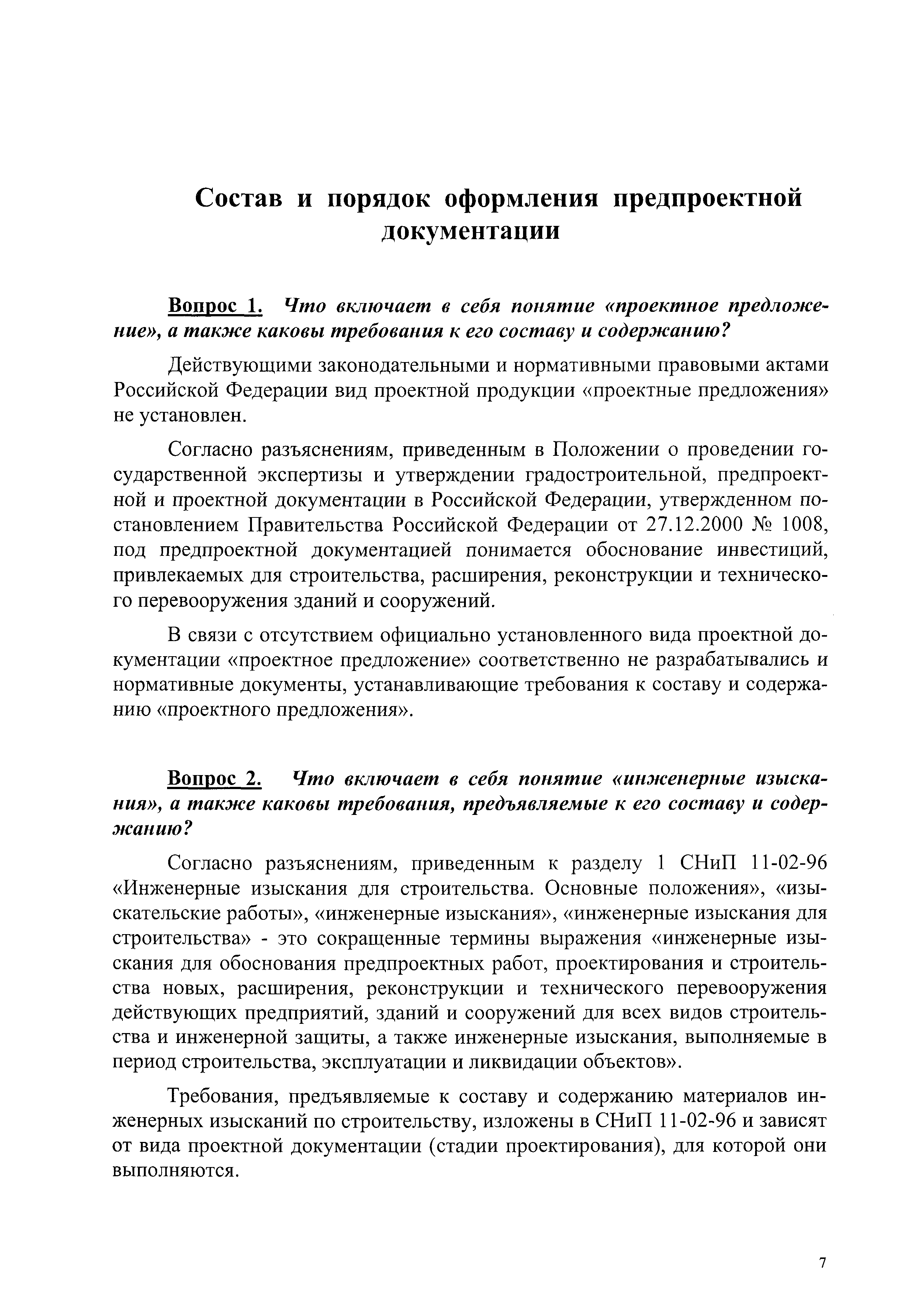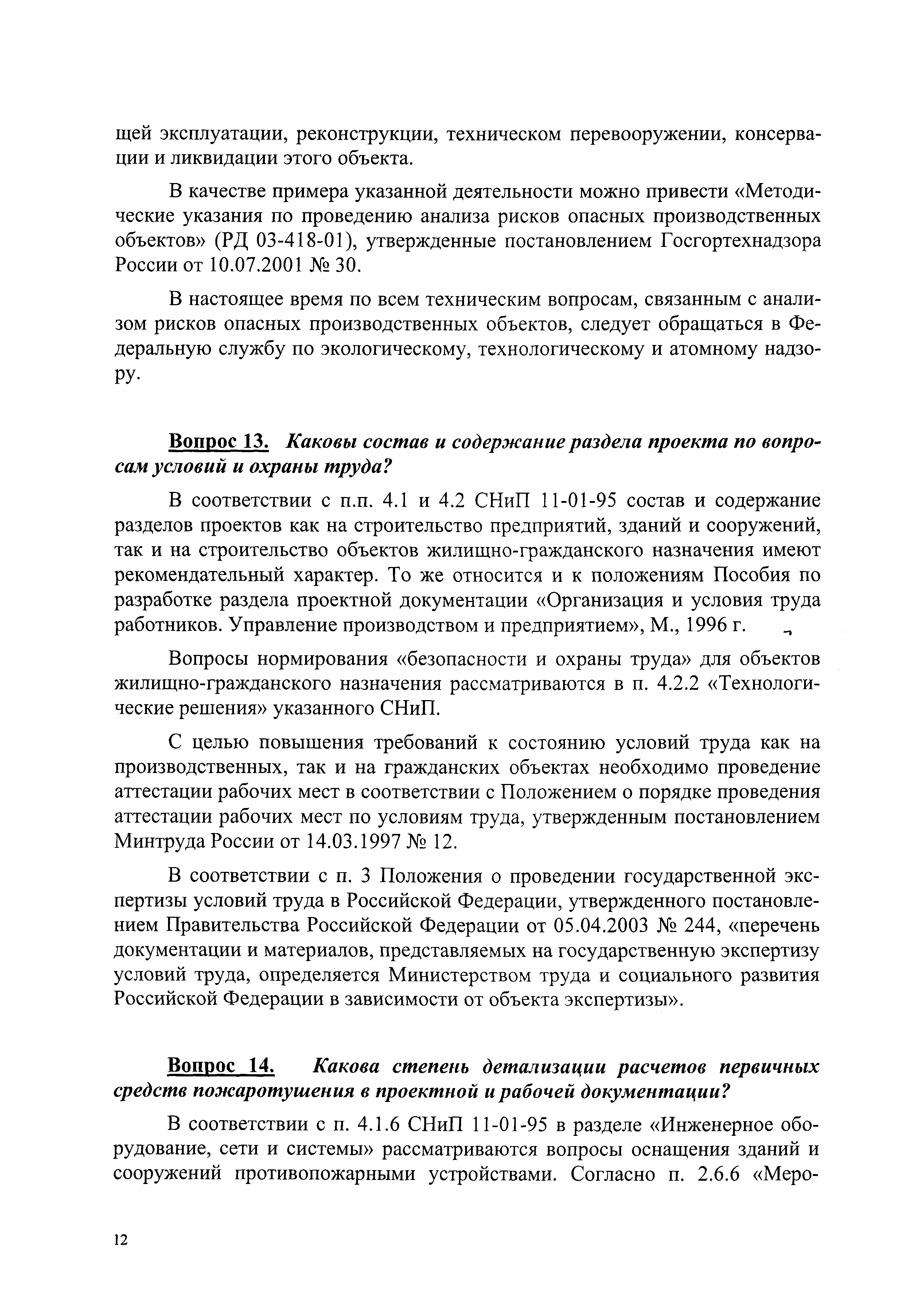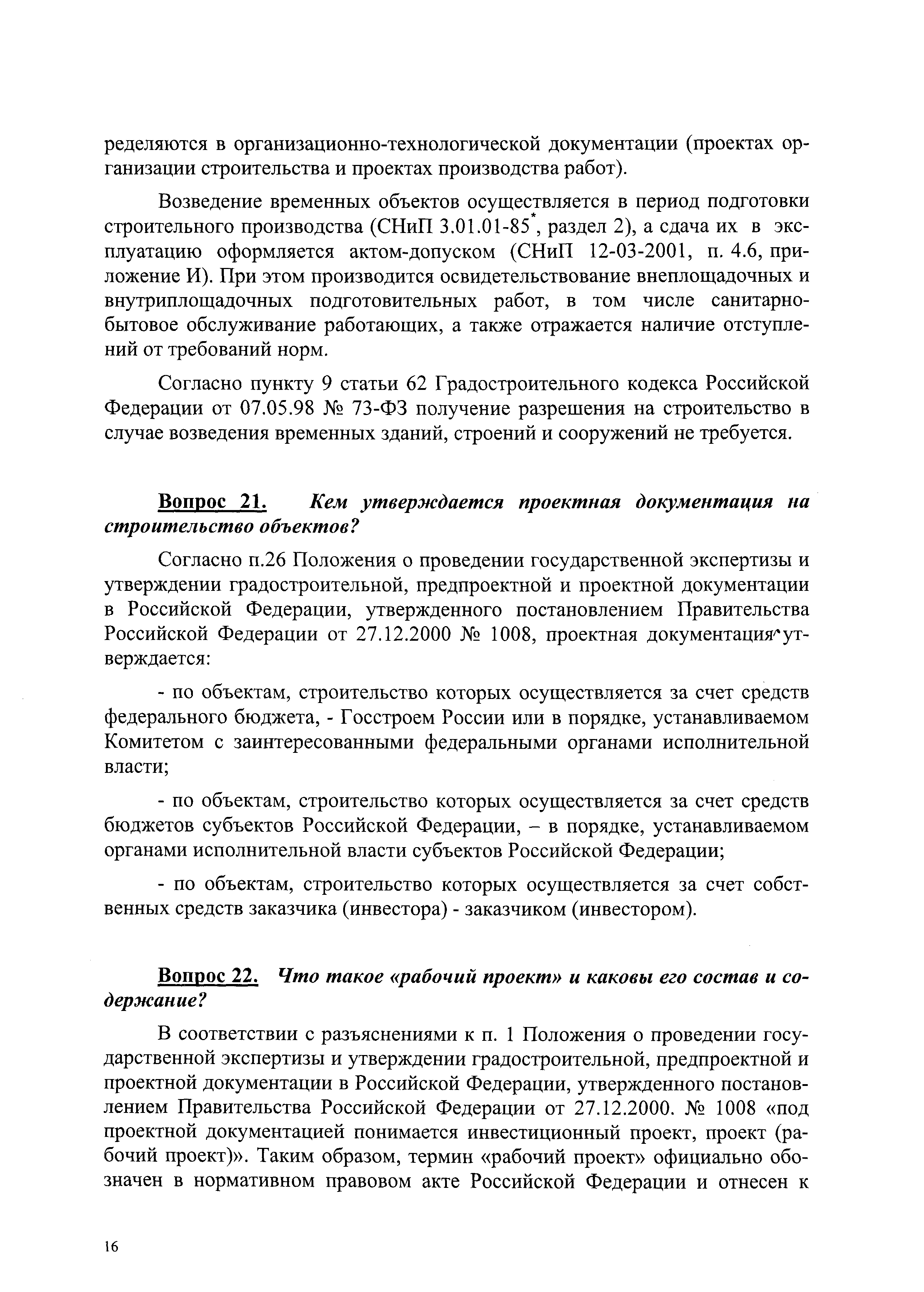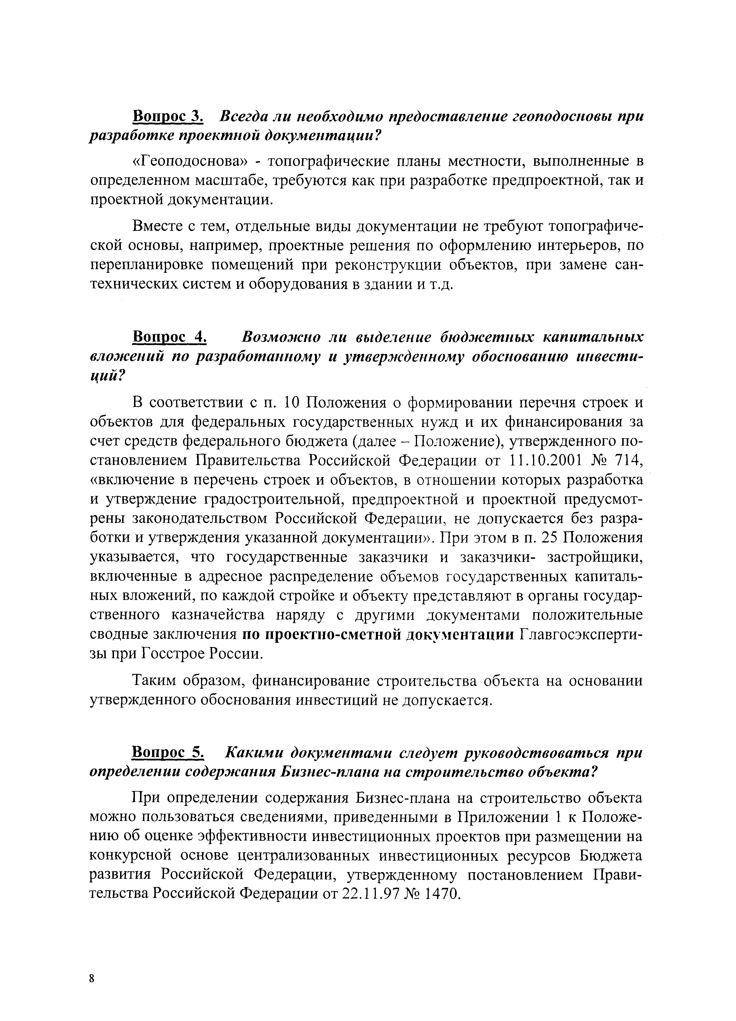 | Оглавление: | Введение Вопросы и ответы Состав и порядок оформления предпроектной документации Состав и порядок оформления проектной документации Состав и порядок оформления рабочей документации Природоохранные решения в предпроектной и проектной документации Сбор исходных данных, согласование предпроектной и проектной документации, внесение в документацию изменений, авторский надзор Выделение земельного участка для строительства объекта Иные вопросы Приложения Приложение 1 Перечень основных нормативных правовых актов федерального уровня, регулирующих процесс предпроектной и проектной подготовки строительства в Российской Федерации (по состоянию на 01.01.2004) Приложение 2 Перечень методических материалов, разработанных ФГУП "ЦЕНТРИНВЕСТпроект" по вопросам предпроектной и проектной подготовки строительства Приложение 3 Перечень действующих ценовых документов на проектные работы для строительства, утвержденнных (рекомендованных к применению) Госстроем России (Госстроем СССР) (по состоянию на 08.06.2004) |