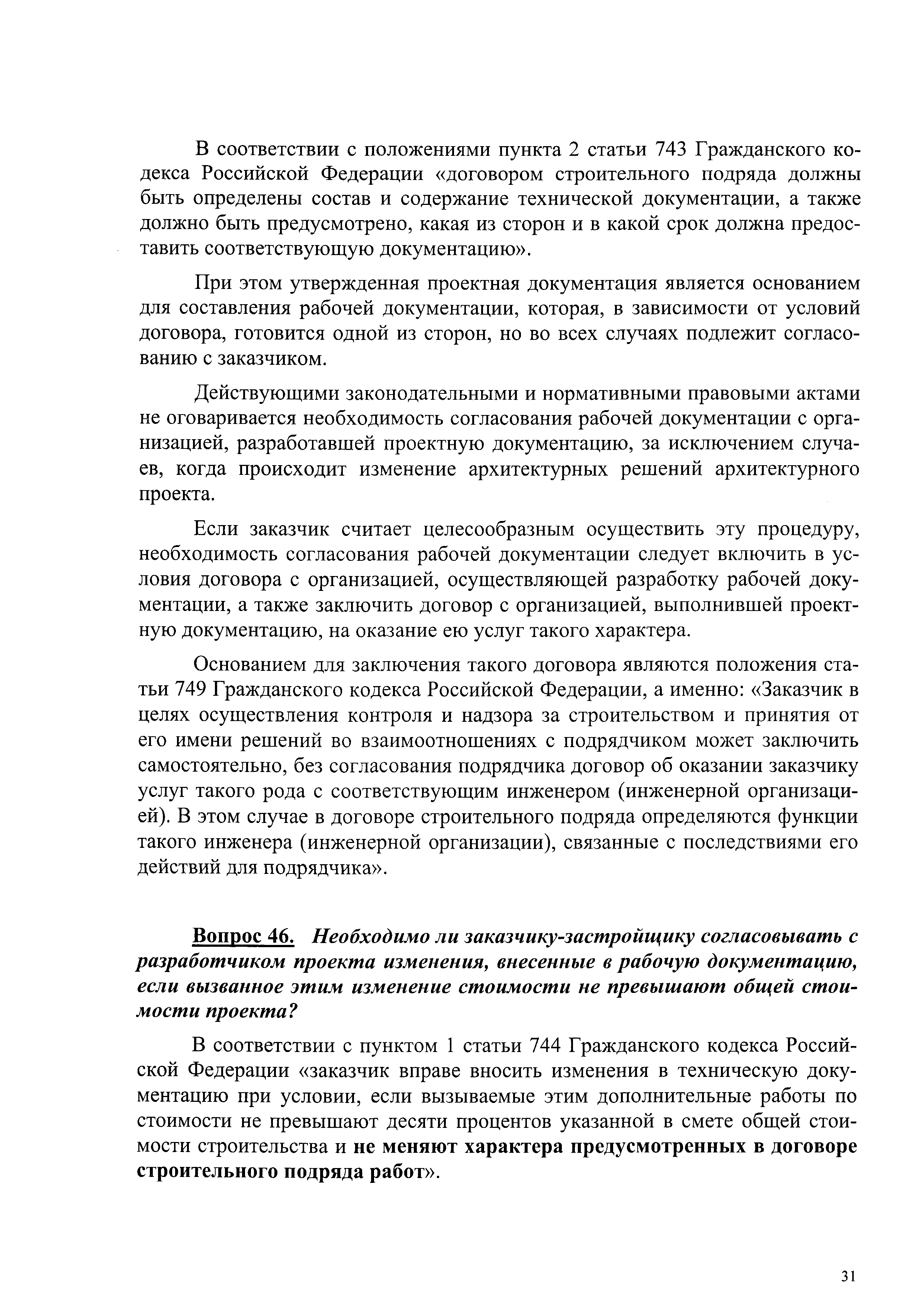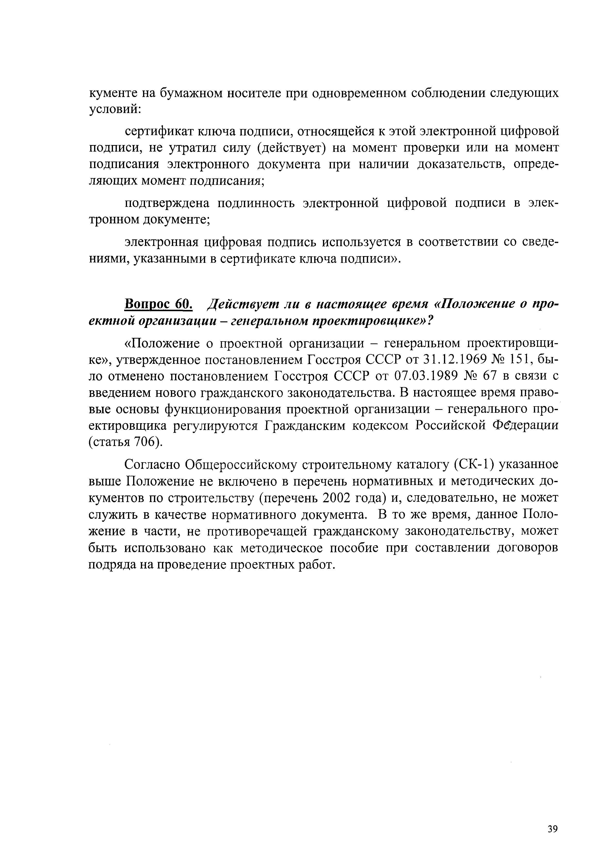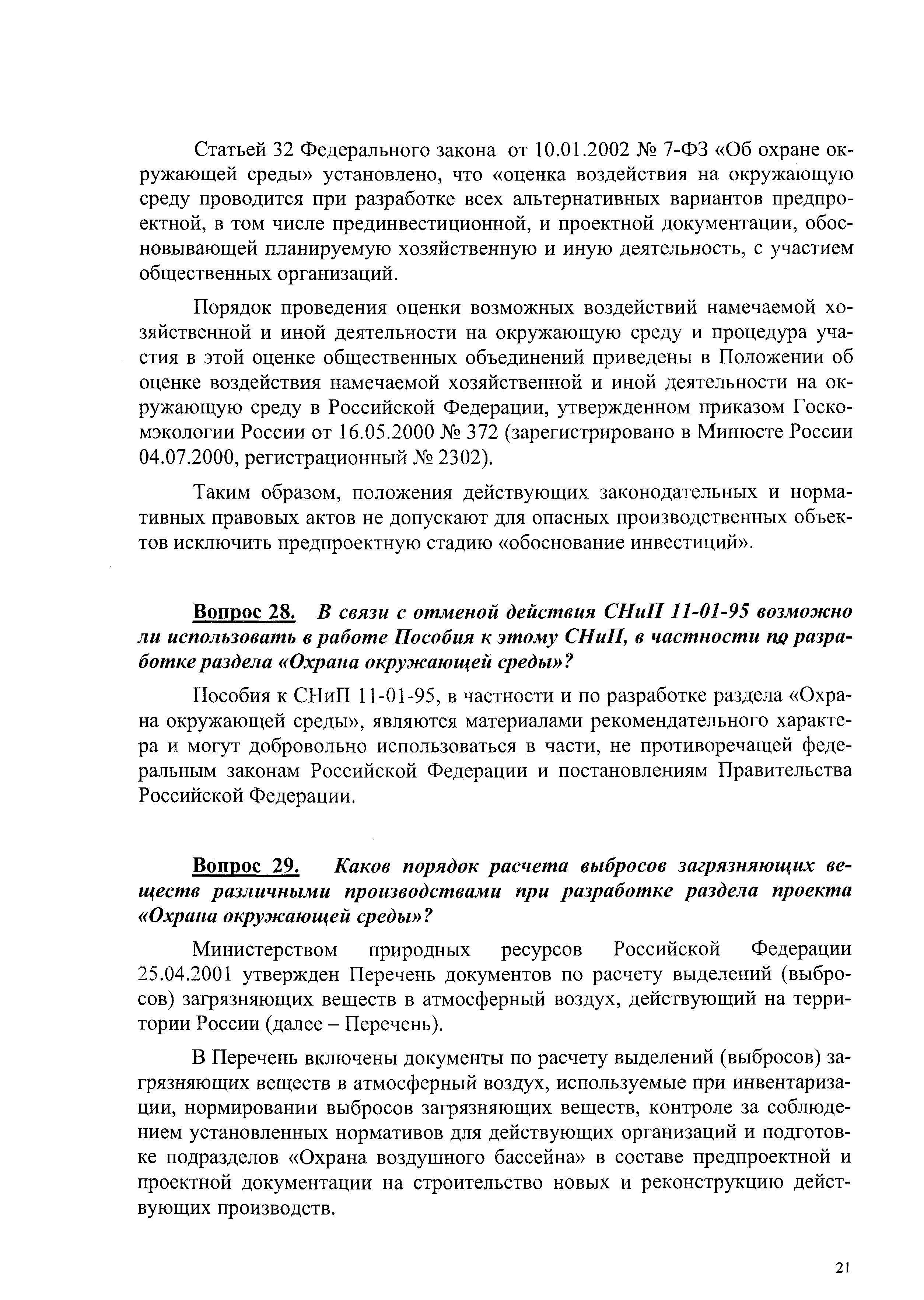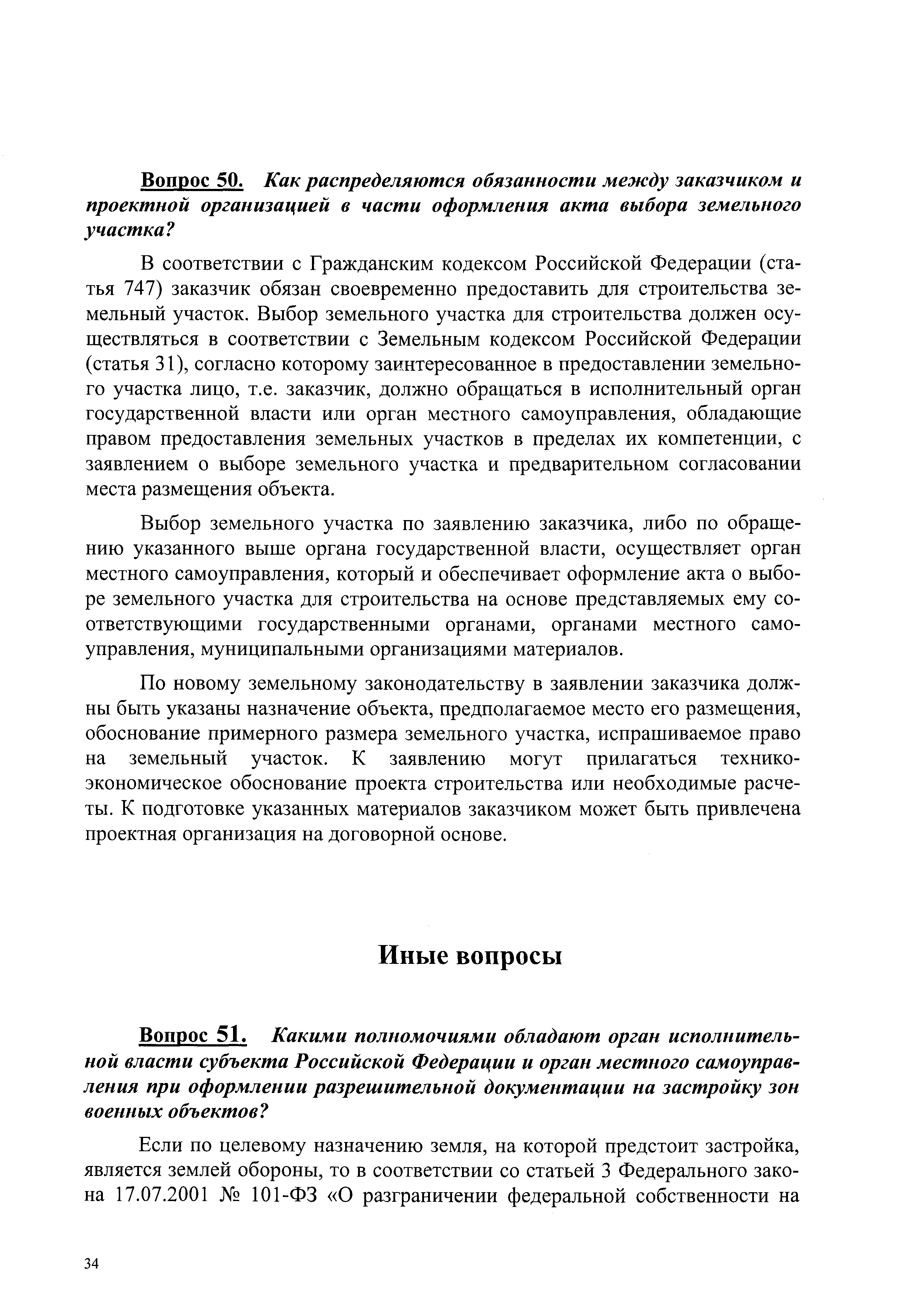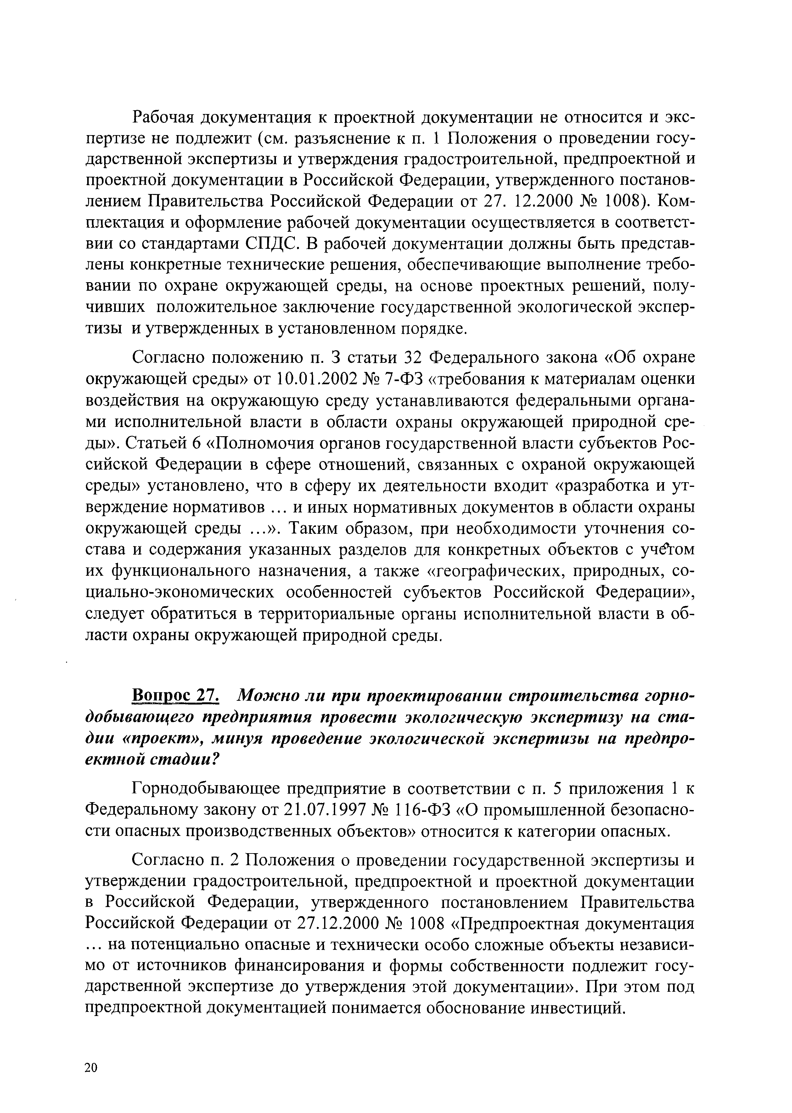 | Оглавление: | Введение Вопросы и ответы Состав и порядок оформления предпроектной документации Состав и порядок оформления проектной документации Состав и порядок оформления рабочей документации Природоохранные решения в предпроектной и проектной документации Сбор исходных данных, согласование предпроектной и проектной документации, внесение в документацию изменений, авторский надзор Выделение земельного участка для строительства объекта Иные вопросы Приложения Приложение 1 Перечень основных нормативных правовых актов федерального уровня, регулирующих процесс предпроектной и проектной подготовки строительства в Российской Федерации (по состоянию на 01.01.2004) Приложение 2 Перечень методических материалов, разработанных ФГУП "ЦЕНТРИНВЕСТпроект" по вопросам предпроектной и проектной подготовки строительства Приложение 3 Перечень действующих ценовых документов на проектные работы для строительства, утвержденнных (рекомендованных к применению) Госстроем России (Госстроем СССР) (по состоянию на 08.06.2004) |