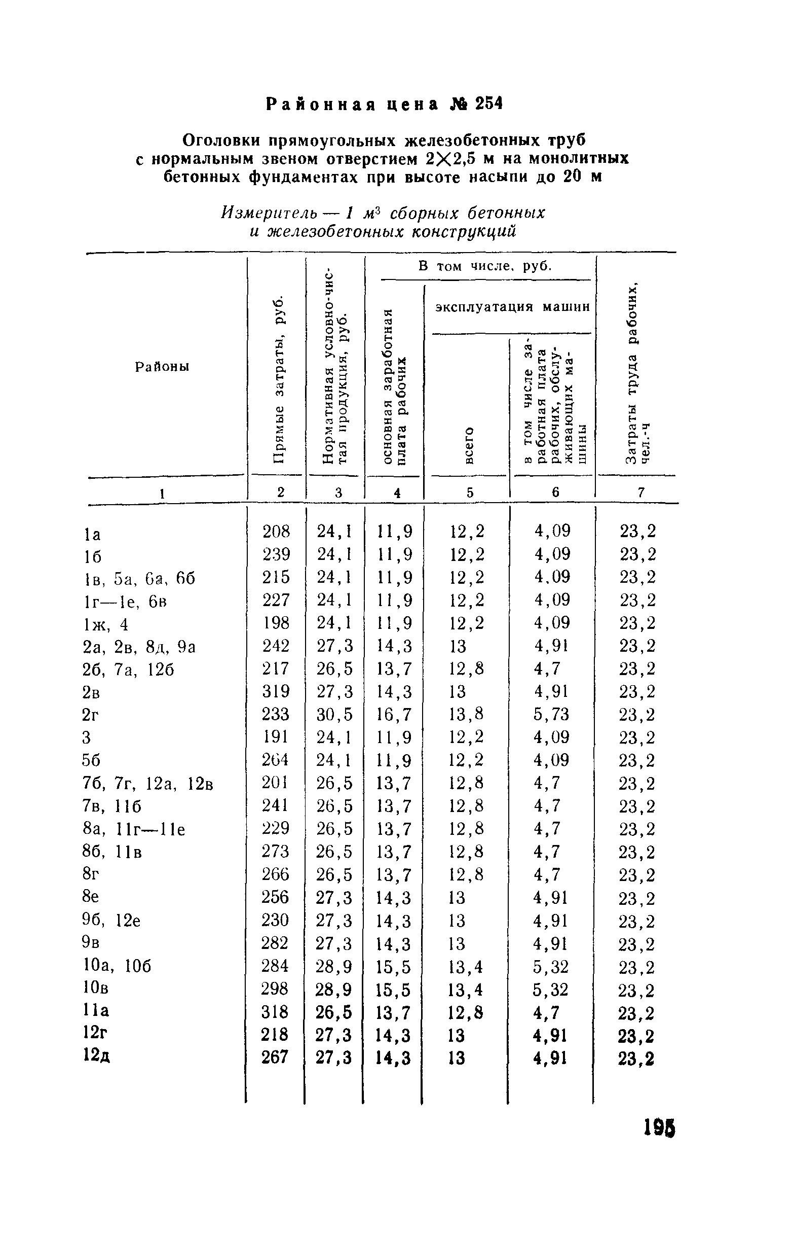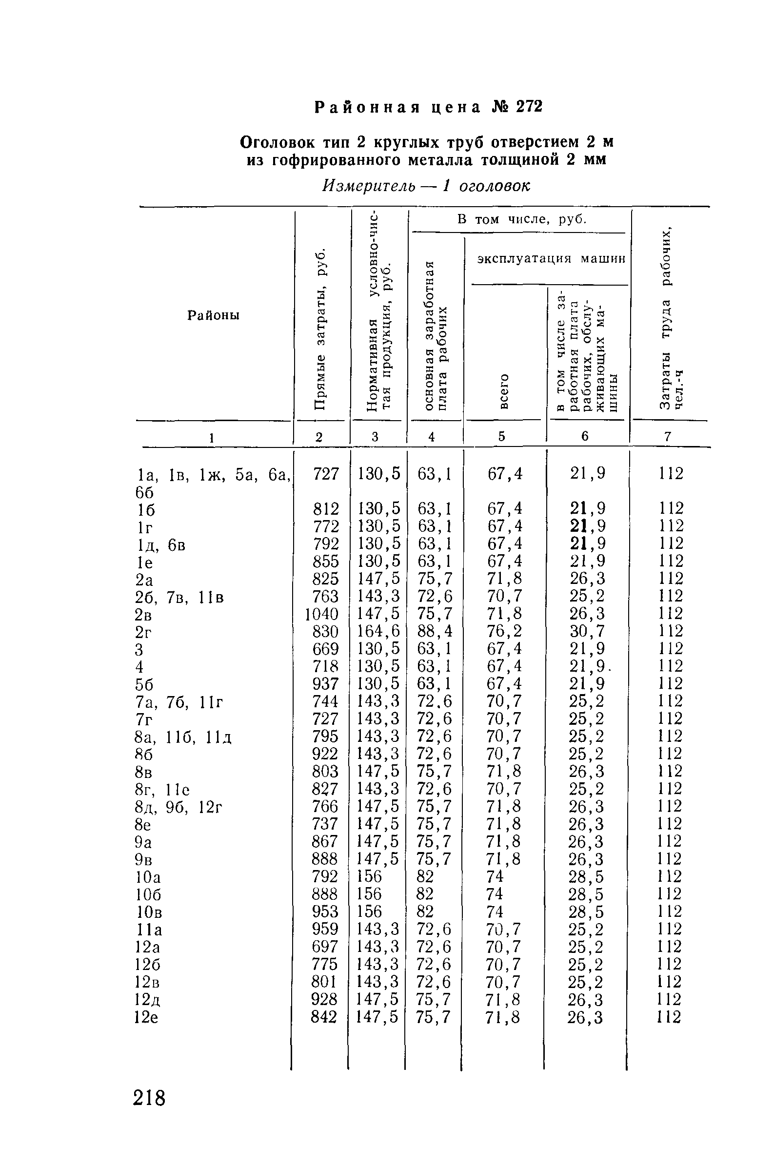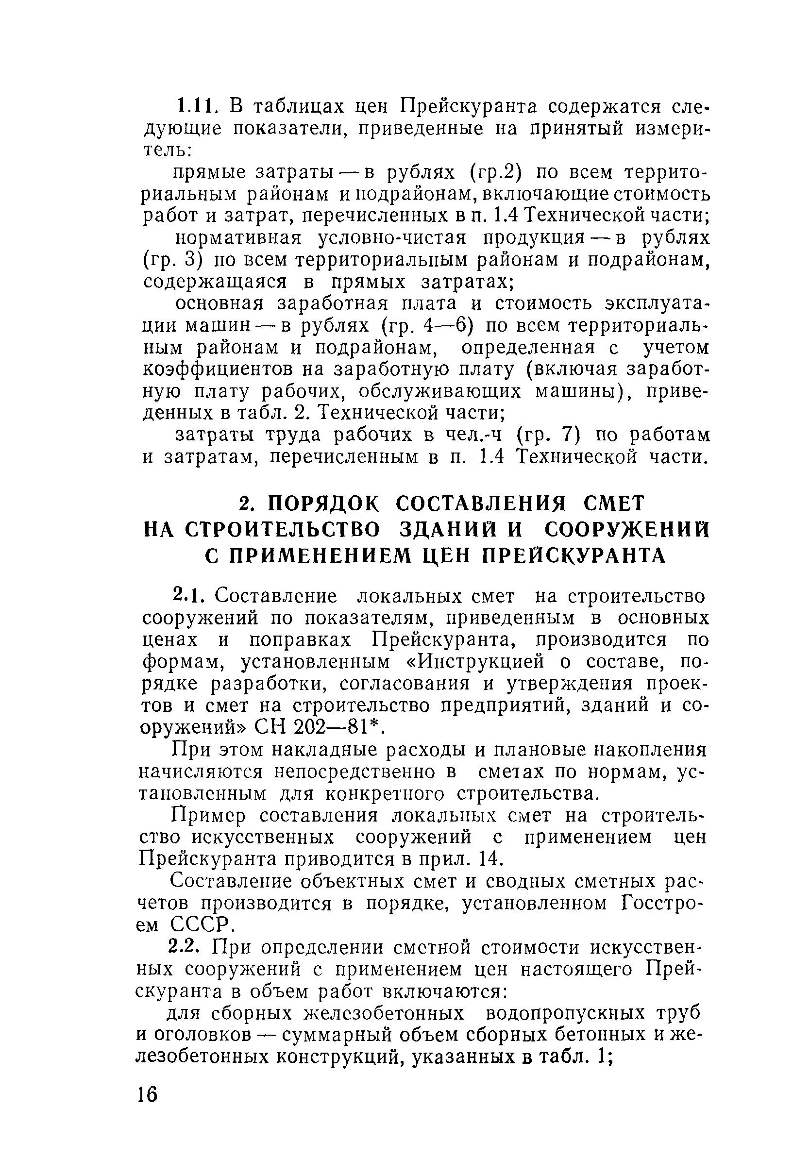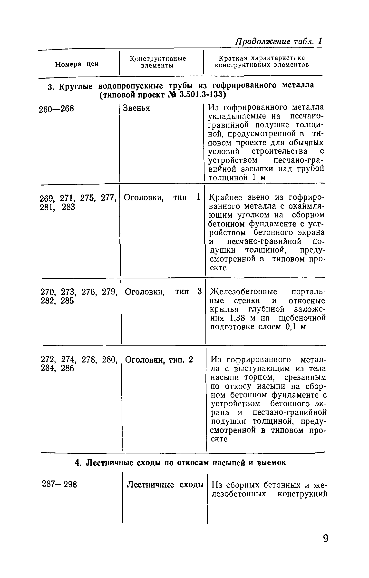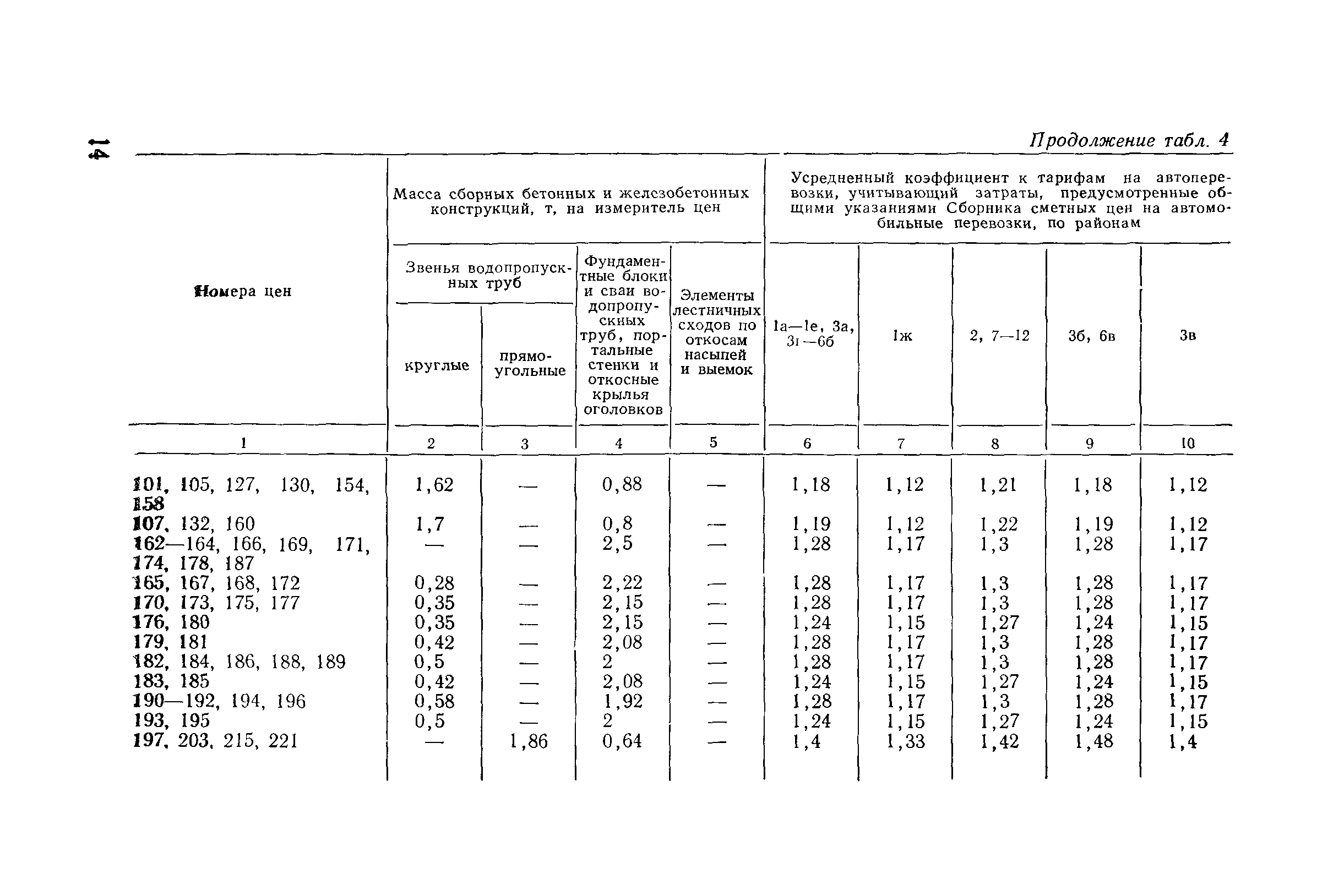 Прейскурант на строительство зданий и сооружений автодорожного транспорта. Выпуск 2. Прейскурант на строительство зданий и сооружений автодорожного транспорта. Выпуск 1, 2, 3, 4. Прейскуранты на строительство зданий и сооружений межотраслевого назначения| Статус: | действует | | Название рус.: | Прейскурант на строительство зданий и сооружений автодорожного транспорта. Выпуск 2. Прейскурант на строительство зданий и сооружений автодорожного транспорта. Выпуск 1, 2, 3, 4. Прейскуранты на строительство зданий и сооружений межотраслевого назначения | | Дата добавления в базу: | 01.09.2013 | | Дата актуализации: | 01.01.2021 | | Дата введения: | 01.07.1985 | | Область применения: | Прейскурант предназначен для определения сметной стоимости при проектировании зданий на стадиях проекта, рабочего проекта и рабочей документации и является обязательным для применения всеми организациями независимо от их ведомственной принадлежности при проектировании строительства в территориальных районах и подрайонах, указанных в прил. 1 (кроме районов Крайнего Севера и местностей, приравненных к ним, за исключением Мурманской обл.). | | Оглавление: | Техническая часть I Цены Прейскуранта на трубы водопропускные круглые, железобетонные II Цены Прейскуранта на трубы водопропускные прямоугольные железобетонные III Цены Прейскуранта на трубы водопропускные круглые из гофрированного металла IV Цены Прейскуранта на железобетонные лестничные сходы по откосам насыпей и выемок V Цены Прейскуранта на дополнительные объемы работ по сооружению водопропускных труб | | Разработан: | Гипропромтрансстрой Главтранспроекта