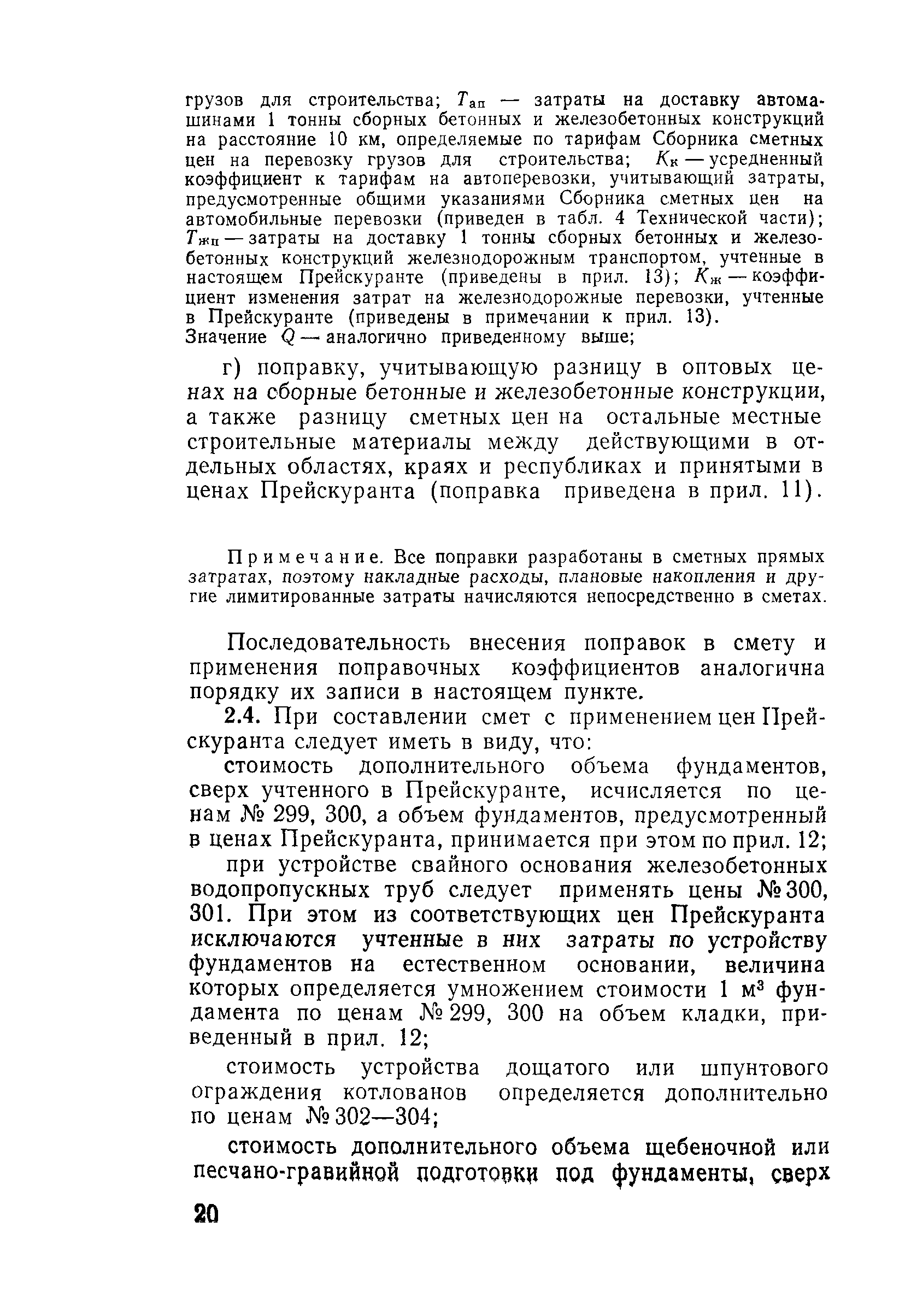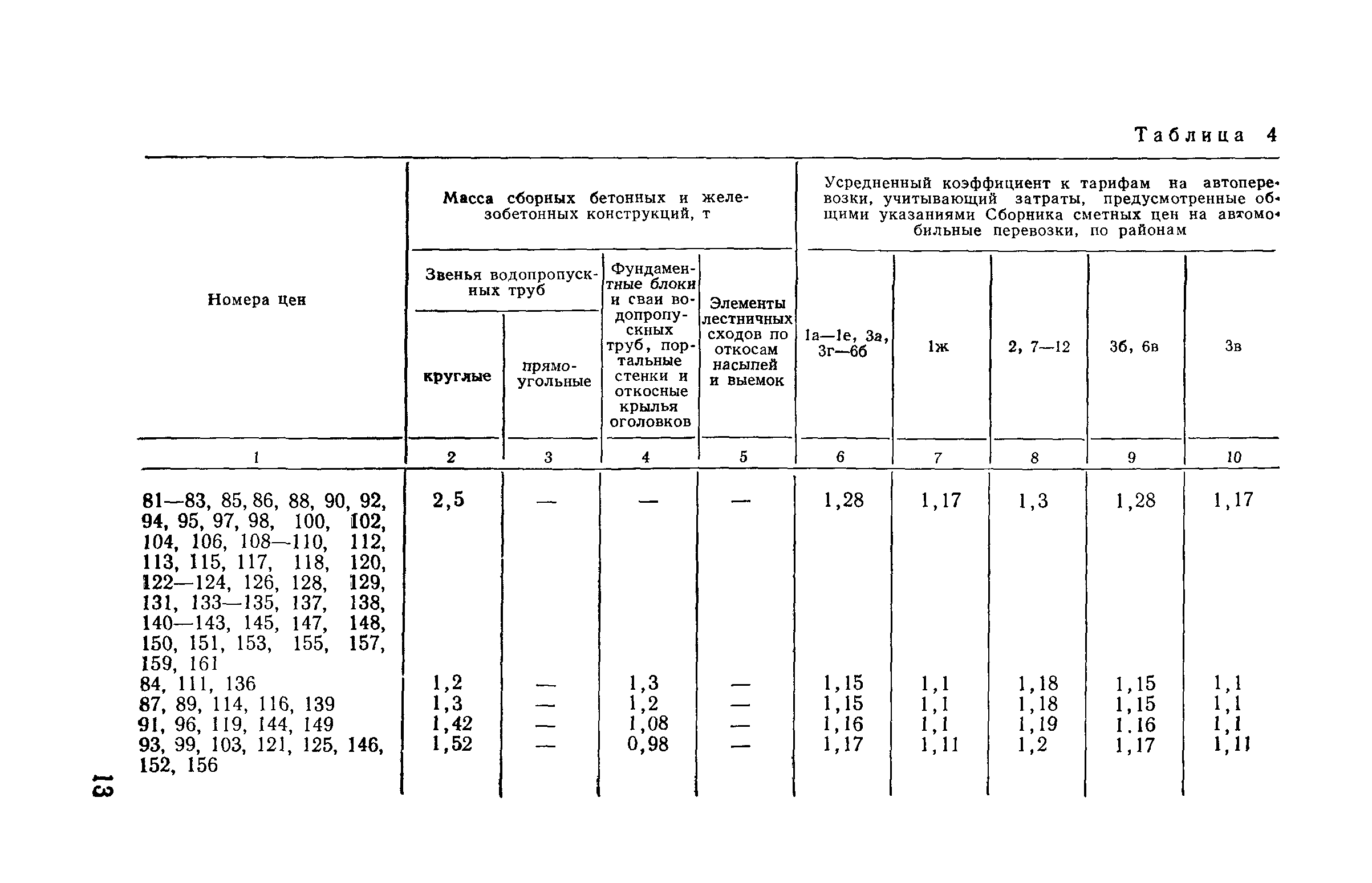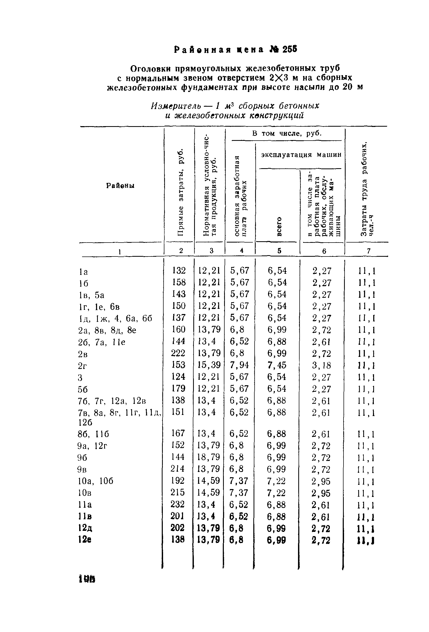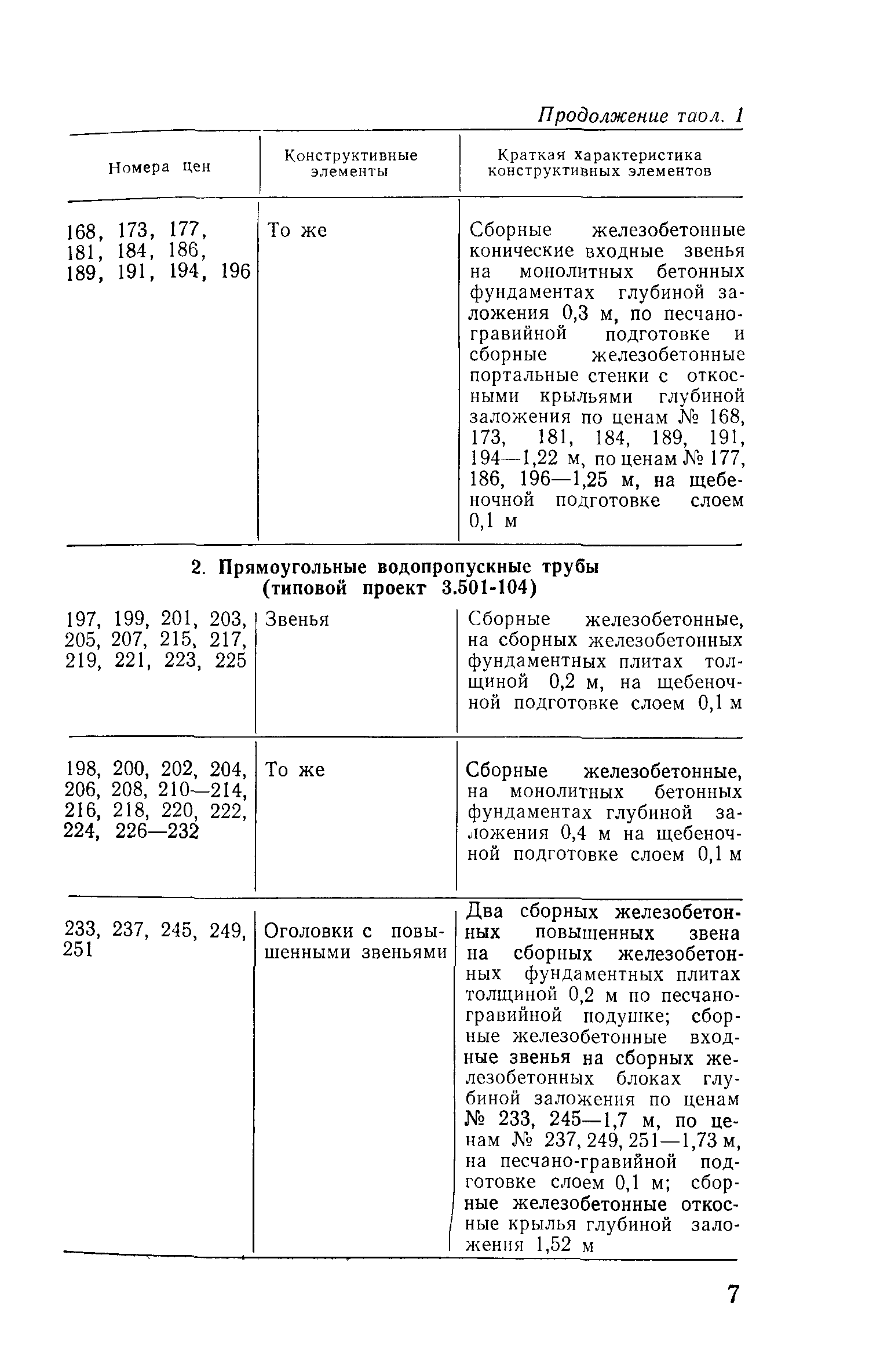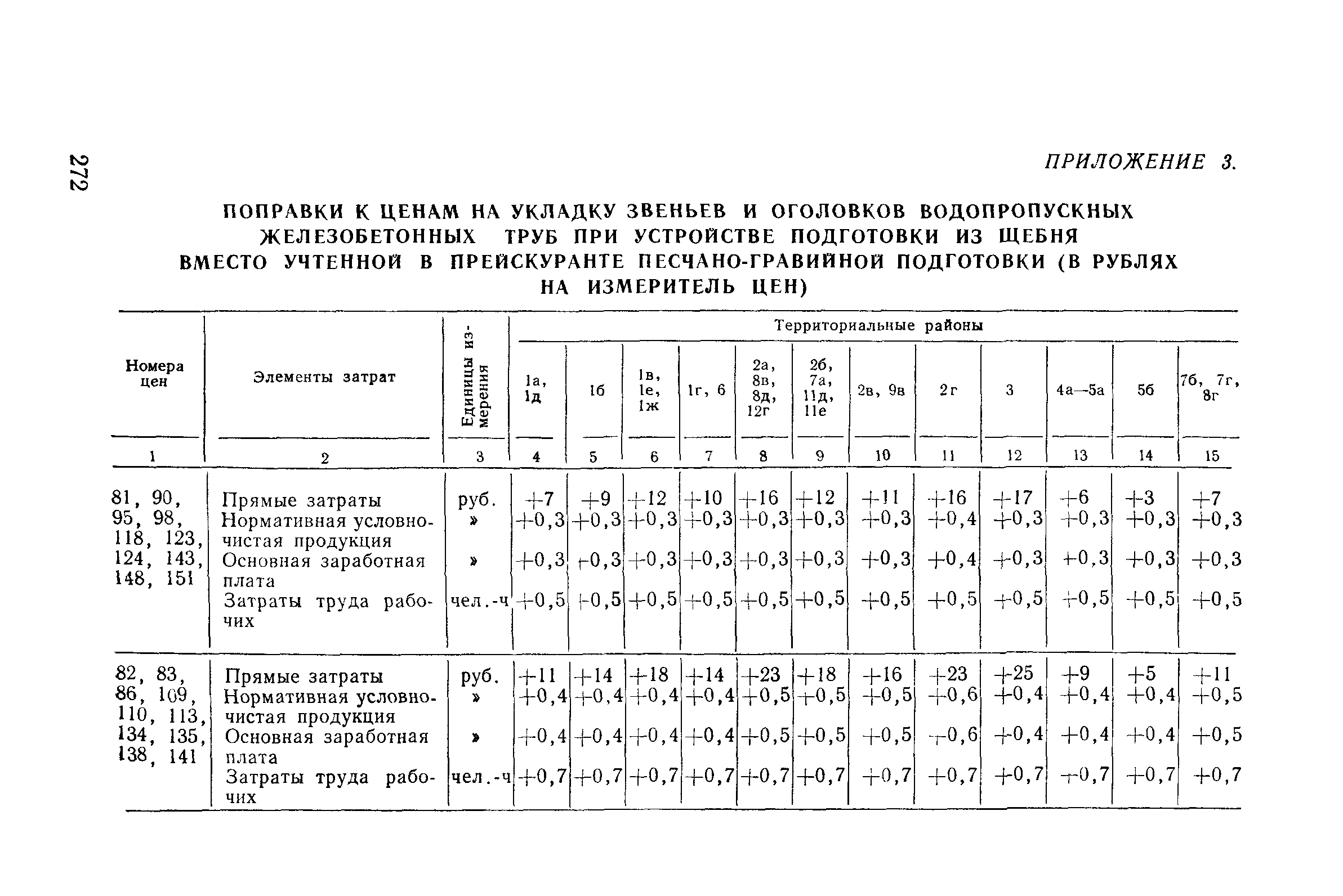 Прейскурант на строительство зданий и сооружений автодорожного транспорта. Выпуск 2. Прейскурант на строительство зданий и сооружений автодорожного транспорта. Выпуск 1, 2, 3, 4. Прейскуранты на строительство зданий и сооружений межотраслевого назначения| Статус: | действует | | Название рус.: | Прейскурант на строительство зданий и сооружений автодорожного транспорта. Выпуск 2. Прейскурант на строительство зданий и сооружений автодорожного транспорта. Выпуск 1, 2, 3, 4. Прейскуранты на строительство зданий и сооружений межотраслевого назначения | | Дата добавления в базу: | 01.09.2013 | | Дата актуализации: | 01.01.2021 | | Дата введения: | 01.07.1985 | | Область применения: | Прейскурант предназначен для определения сметной стоимости при проектировании зданий на стадиях проекта, рабочего проекта и рабочей документации и является обязательным для применения всеми организациями независимо от их ведомственной принадлежности при проектировании строительства в территориальных районах и подрайонах, указанных в прил. 1 (кроме районов Крайнего Севера и местностей, приравненных к ним, за исключением Мурманской обл.). | | Оглавление: | Техническая часть I Цены Прейскуранта на трубы водопропускные круглые, железобетонные II Цены Прейскуранта на трубы водопропускные прямоугольные железобетонные III Цены Прейскуранта на трубы водопропускные круглые из гофрированного металла IV Цены Прейскуранта на железобетонные лестничные сходы по откосам насыпей и выемок V Цены Прейскуранта на дополнительные объемы работ по сооружению водопропускных труб | | Разработан: | Гипропромтрансстрой Главтранспроекта