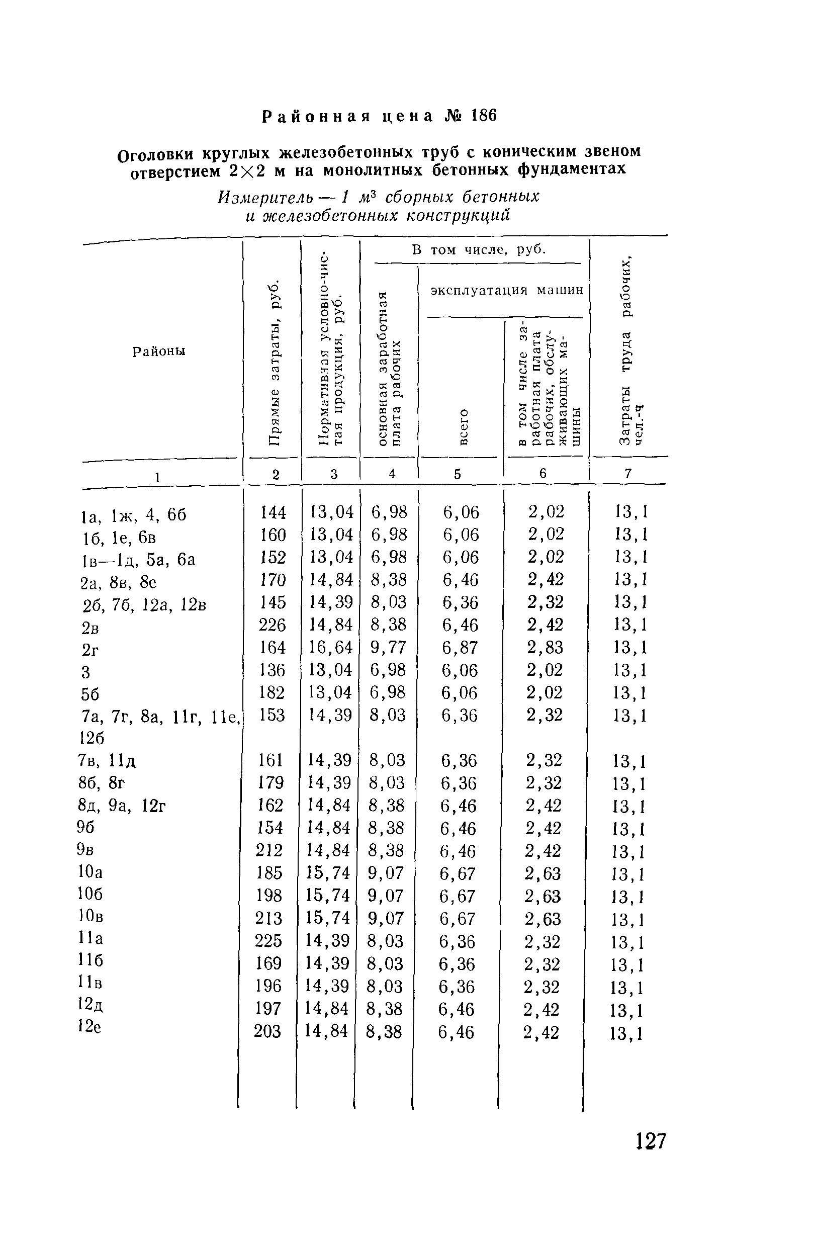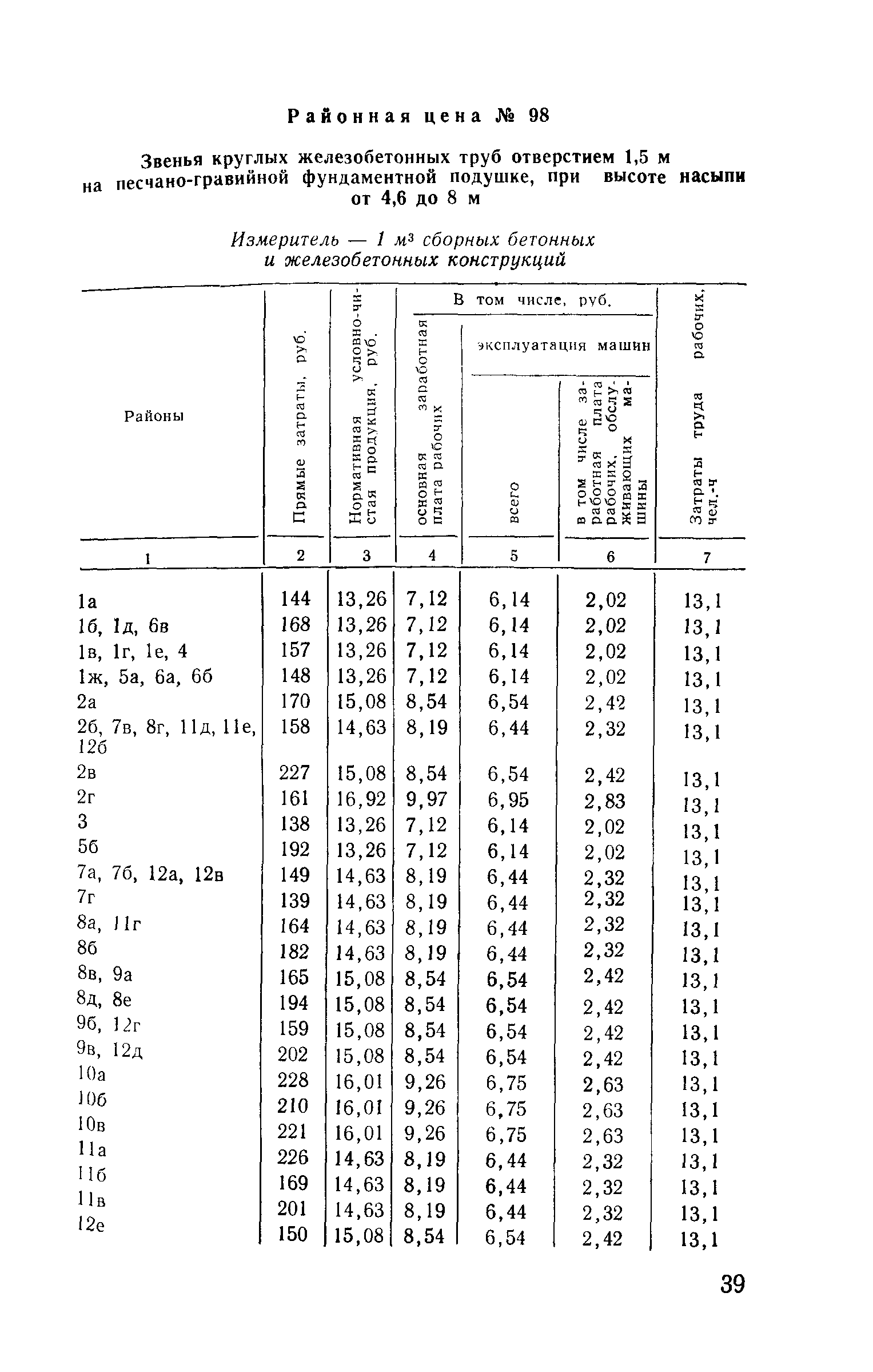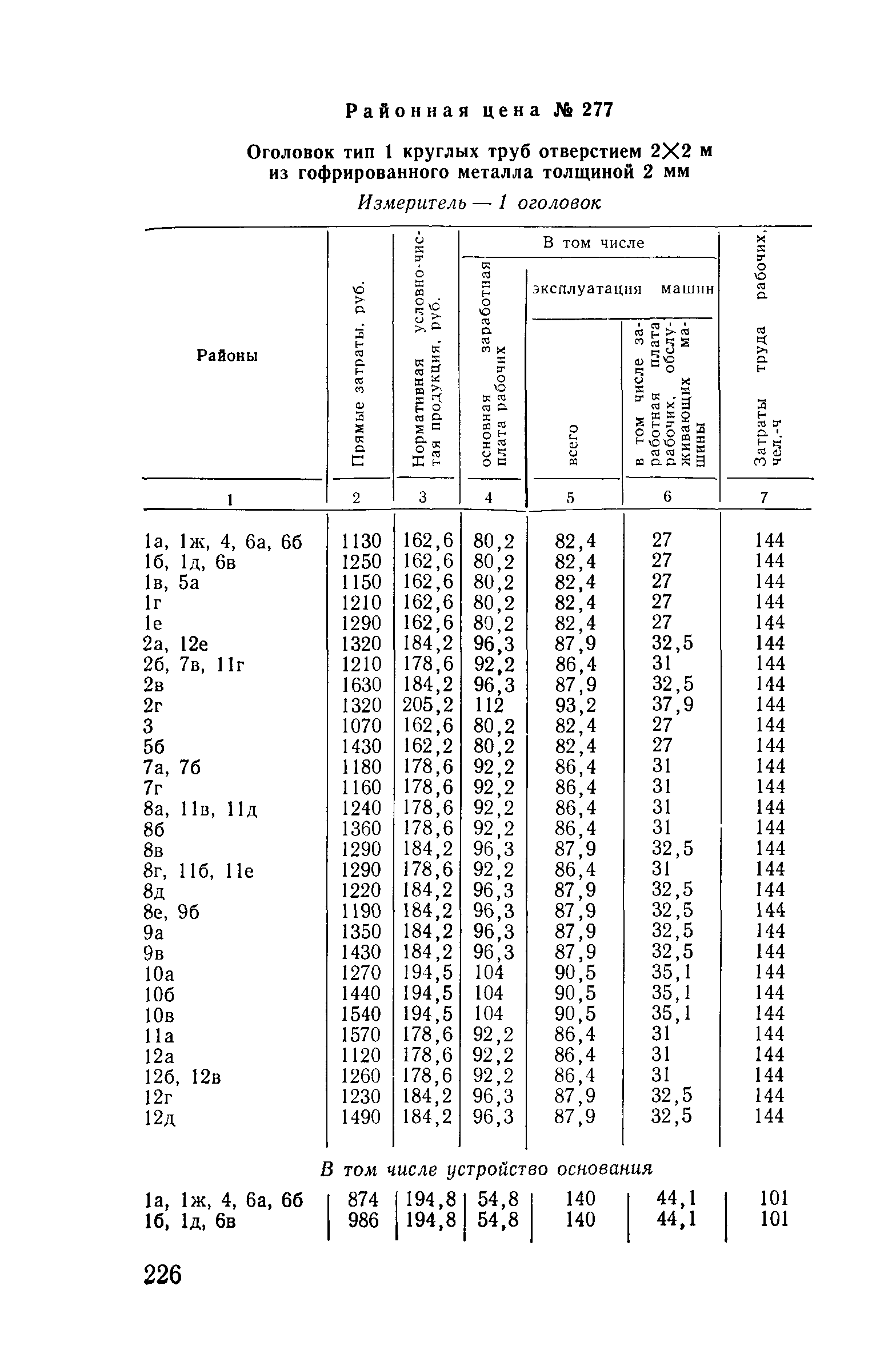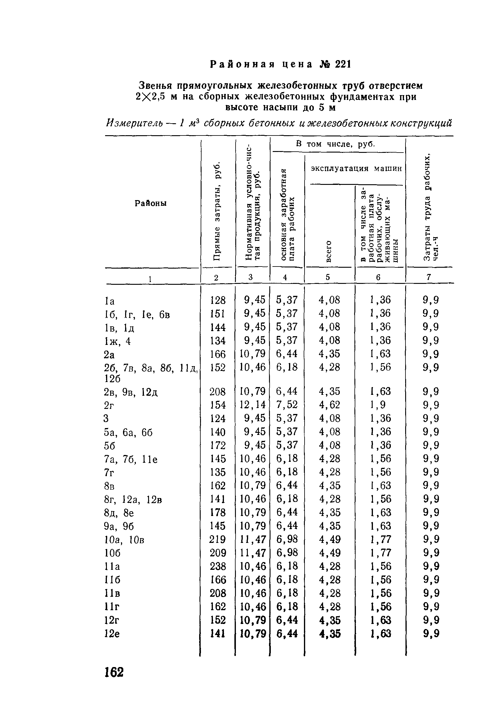 Прейскурант на строительство зданий и сооружений автодорожного транспорта. Выпуск 2. Прейскурант на строительство зданий и сооружений автодорожного транспорта. Выпуск 1, 2, 3, 4. Прейскуранты на строительство зданий и сооружений межотраслевого назначения| Статус: | действует | | Название рус.: | Прейскурант на строительство зданий и сооружений автодорожного транспорта. Выпуск 2. Прейскурант на строительство зданий и сооружений автодорожного транспорта. Выпуск 1, 2, 3, 4. Прейскуранты на строительство зданий и сооружений межотраслевого назначения | | Дата добавления в базу: | 01.09.2013 | | Дата актуализации: | 01.01.2021 | | Дата введения: | 01.07.1985 | | Область применения: | Прейскурант предназначен для определения сметной стоимости при проектировании зданий на стадиях проекта, рабочего проекта и рабочей документации и является обязательным для применения всеми организациями независимо от их ведомственной принадлежности при проектировании строительства в территориальных районах и подрайонах, указанных в прил. 1 (кроме районов Крайнего Севера и местностей, приравненных к ним, за исключением Мурманской обл.). | | Оглавление: | Техническая часть I Цены Прейскуранта на трубы водопропускные круглые, железобетонные II Цены Прейскуранта на трубы водопропускные прямоугольные железобетонные III Цены Прейскуранта на трубы водопропускные круглые из гофрированного металла IV Цены Прейскуранта на железобетонные лестничные сходы по откосам насыпей и выемок V Цены Прейскуранта на дополнительные объемы работ по сооружению водопропускных труб | | Разработан: | Гипропромтрансстрой Главтранспроекта