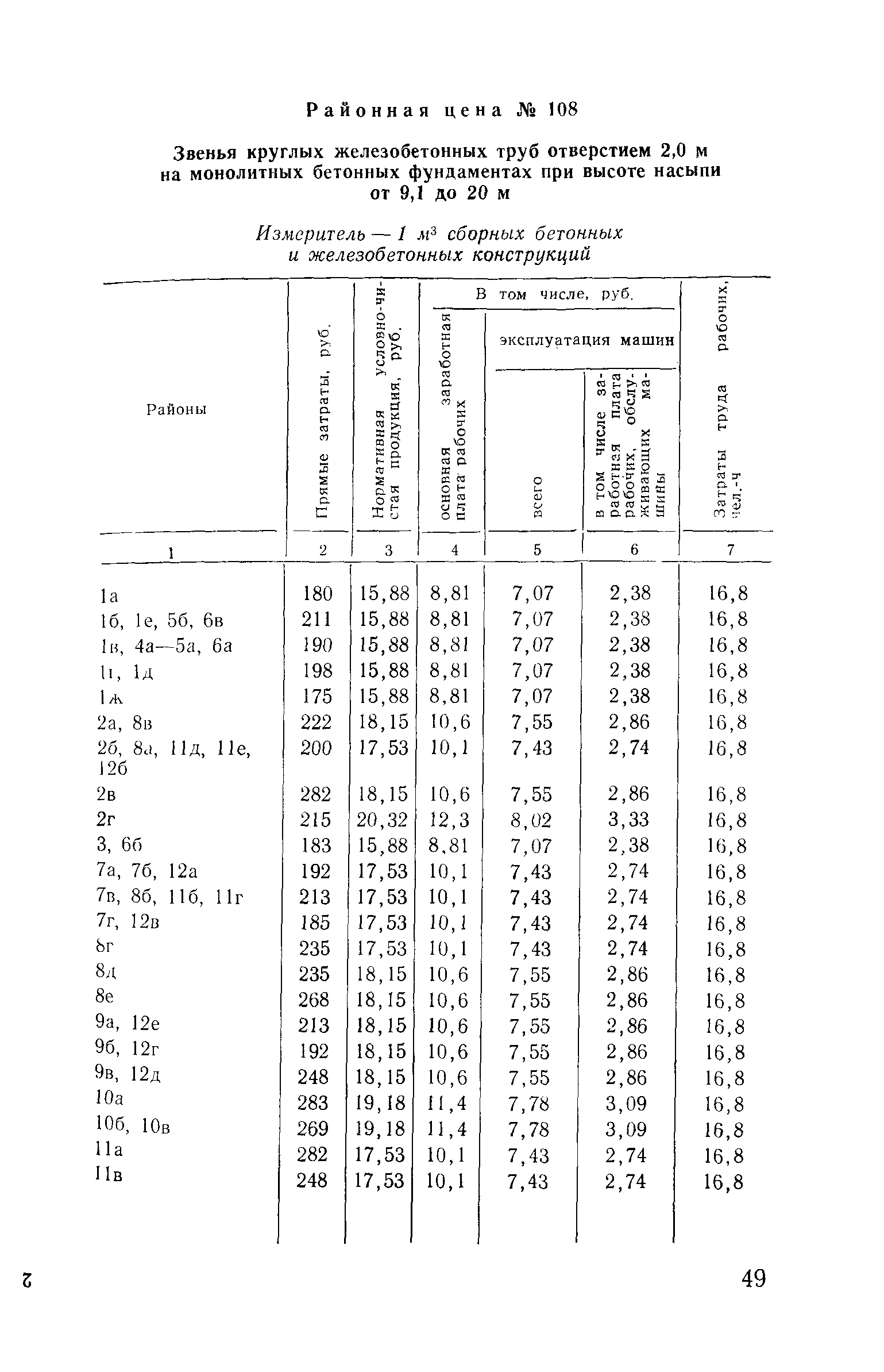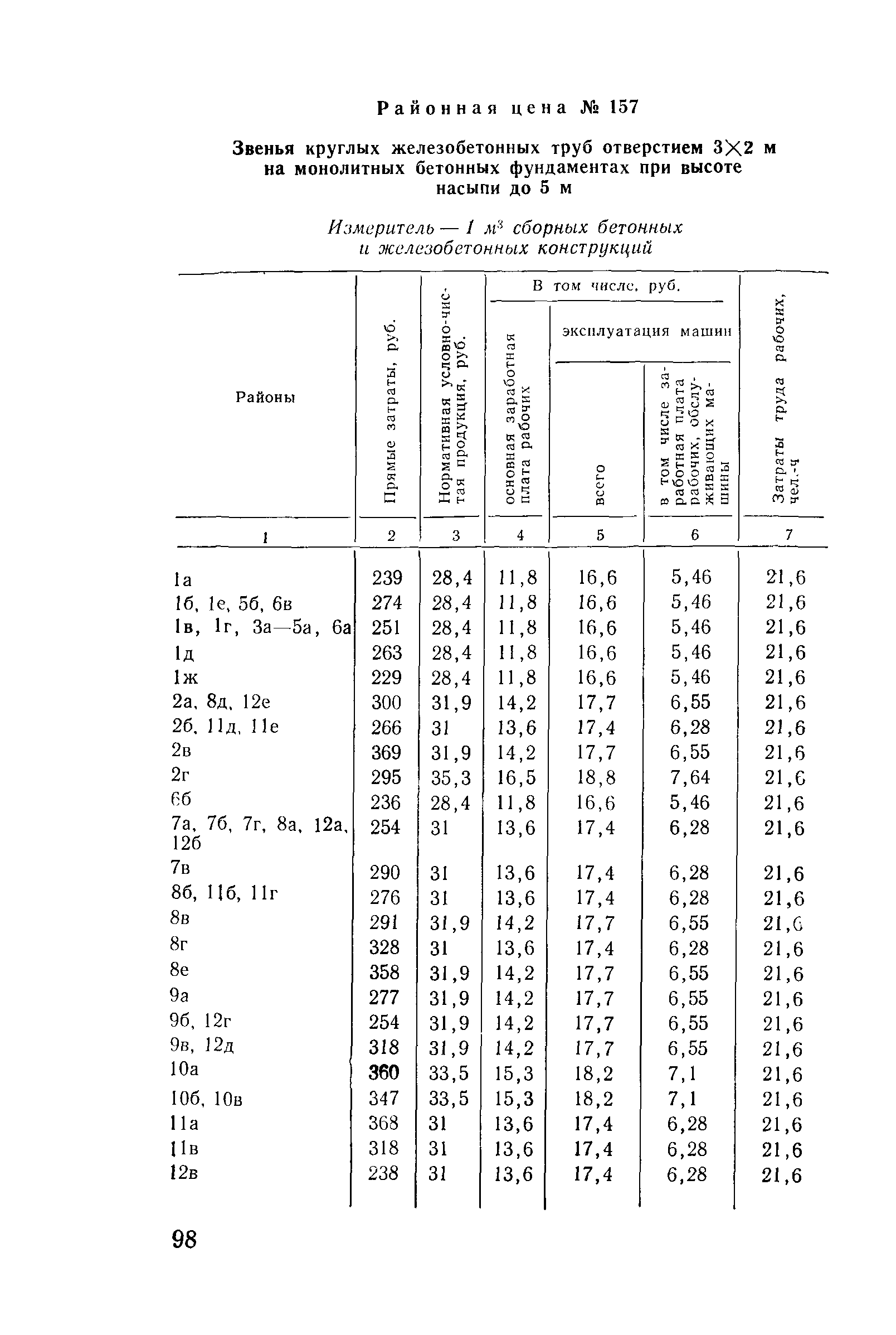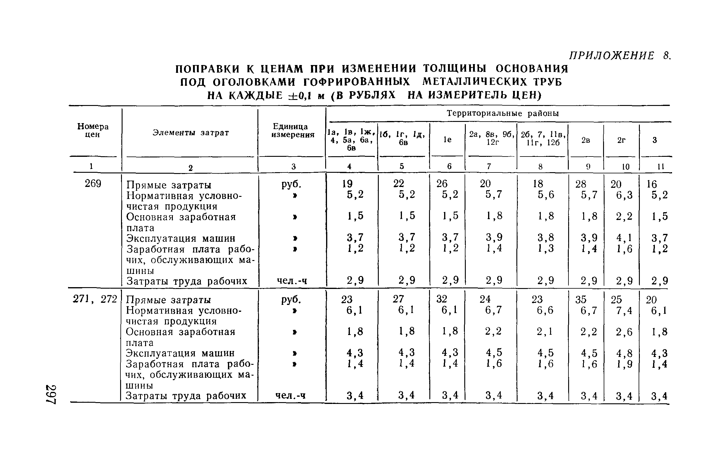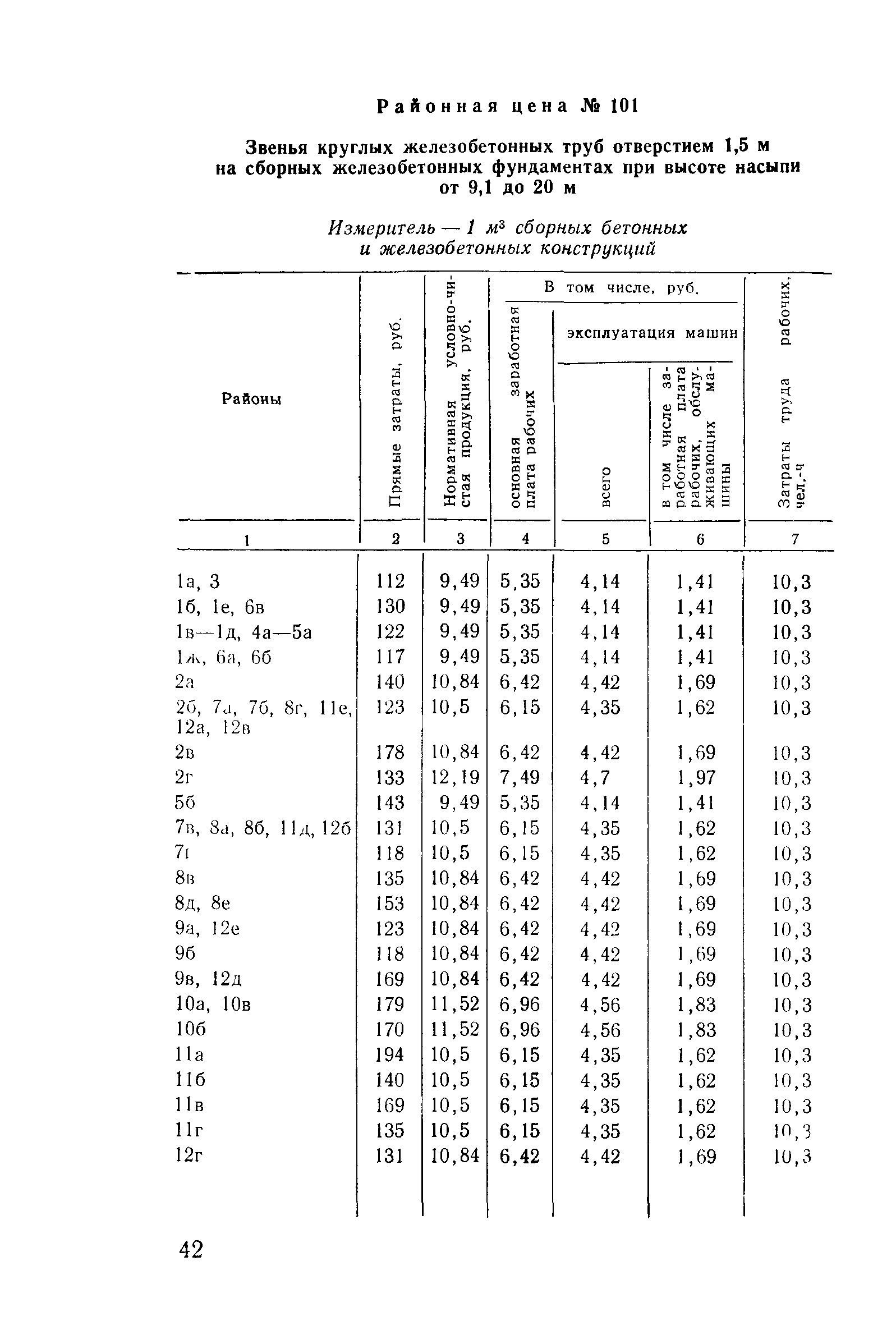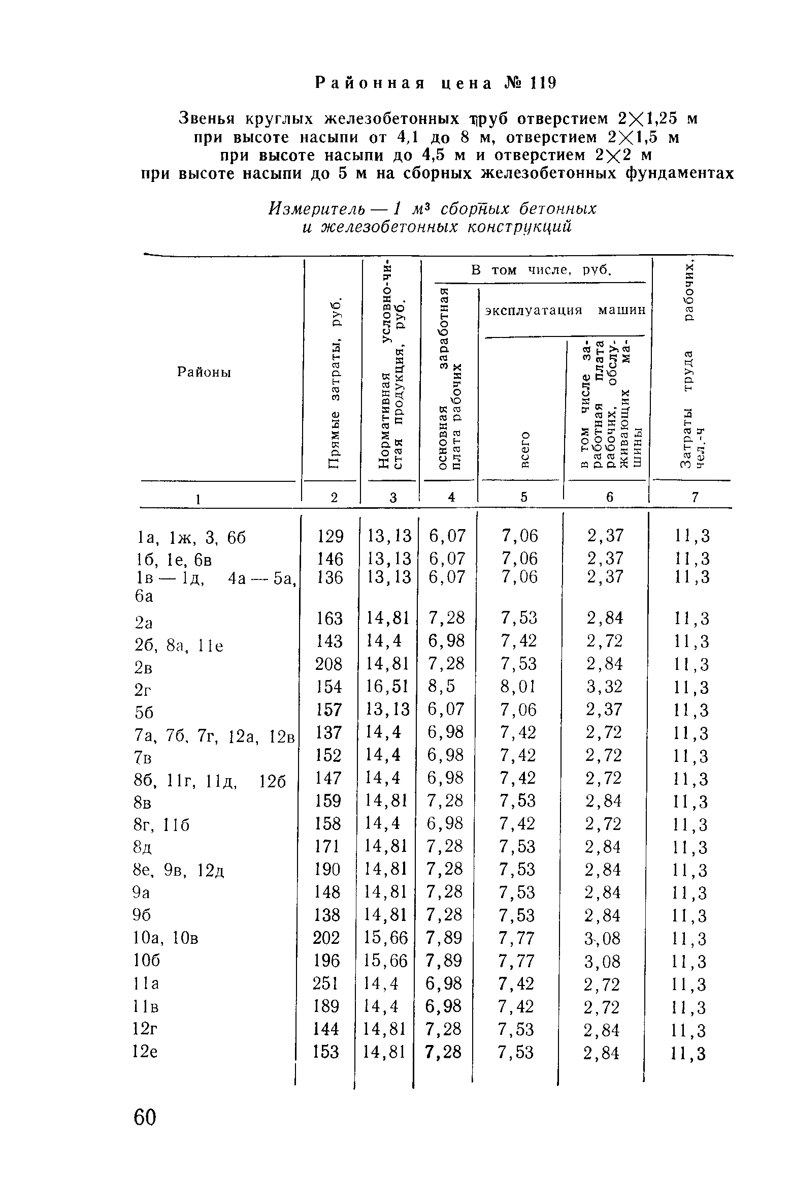 Прейскурант на строительство зданий и сооружений автодорожного транспорта. Выпуск 2. Прейскурант на строительство зданий и сооружений автодорожного транспорта. Выпуск 1, 2, 3, 4. Прейскуранты на строительство зданий и сооружений межотраслевого назначения| Статус: | действует | | Название рус.: | Прейскурант на строительство зданий и сооружений автодорожного транспорта. Выпуск 2. Прейскурант на строительство зданий и сооружений автодорожного транспорта. Выпуск 1, 2, 3, 4. Прейскуранты на строительство зданий и сооружений межотраслевого назначения | | Дата добавления в базу: | 01.09.2013 | | Дата актуализации: | 01.01.2021 | | Дата введения: | 01.07.1985 | | Область применения: | Прейскурант предназначен для определения сметной стоимости при проектировании зданий на стадиях проекта, рабочего проекта и рабочей документации и является обязательным для применения всеми организациями независимо от их ведомственной принадлежности при проектировании строительства в территориальных районах и подрайонах, указанных в прил. 1 (кроме районов Крайнего Севера и местностей, приравненных к ним, за исключением Мурманской обл.). | | Оглавление: | Техническая часть I Цены Прейскуранта на трубы водопропускные круглые, железобетонные II Цены Прейскуранта на трубы водопропускные прямоугольные железобетонные III Цены Прейскуранта на трубы водопропускные круглые из гофрированного металла IV Цены Прейскуранта на железобетонные лестничные сходы по откосам насыпей и выемок V Цены Прейскуранта на дополнительные объемы работ по сооружению водопропускных труб | | Разработан: | Гипропромтрансстрой Главтранспроекта