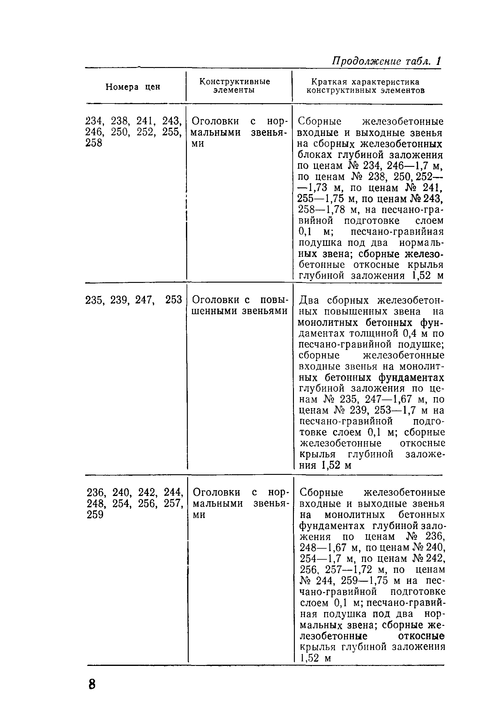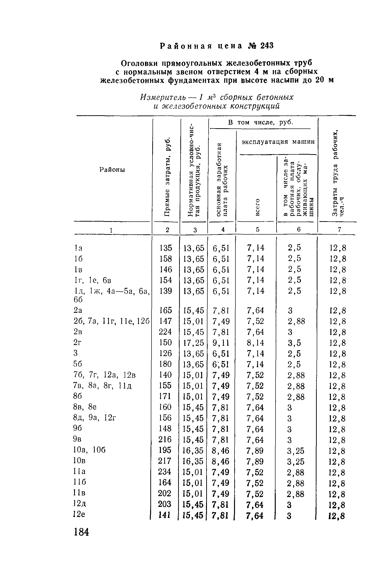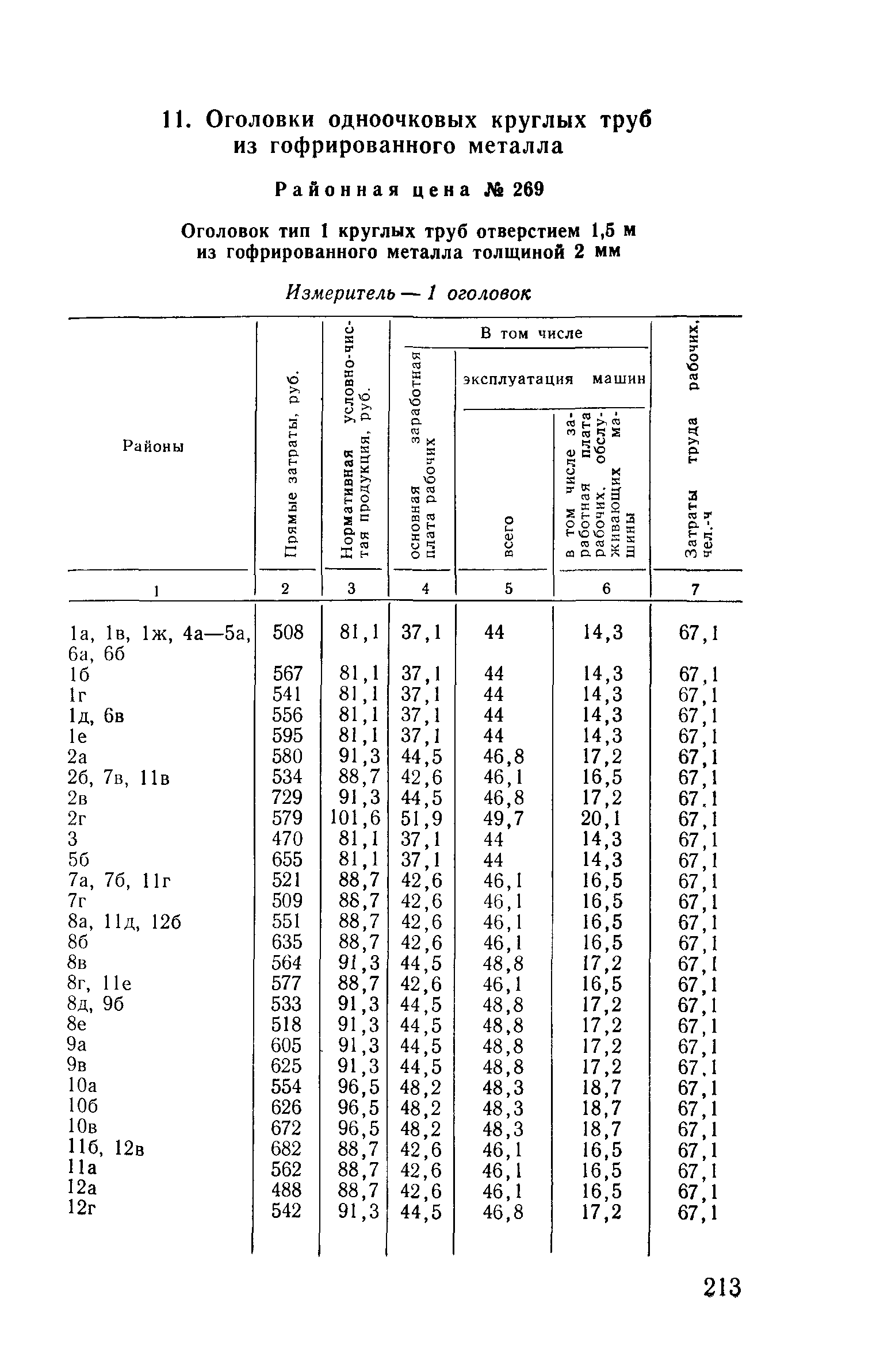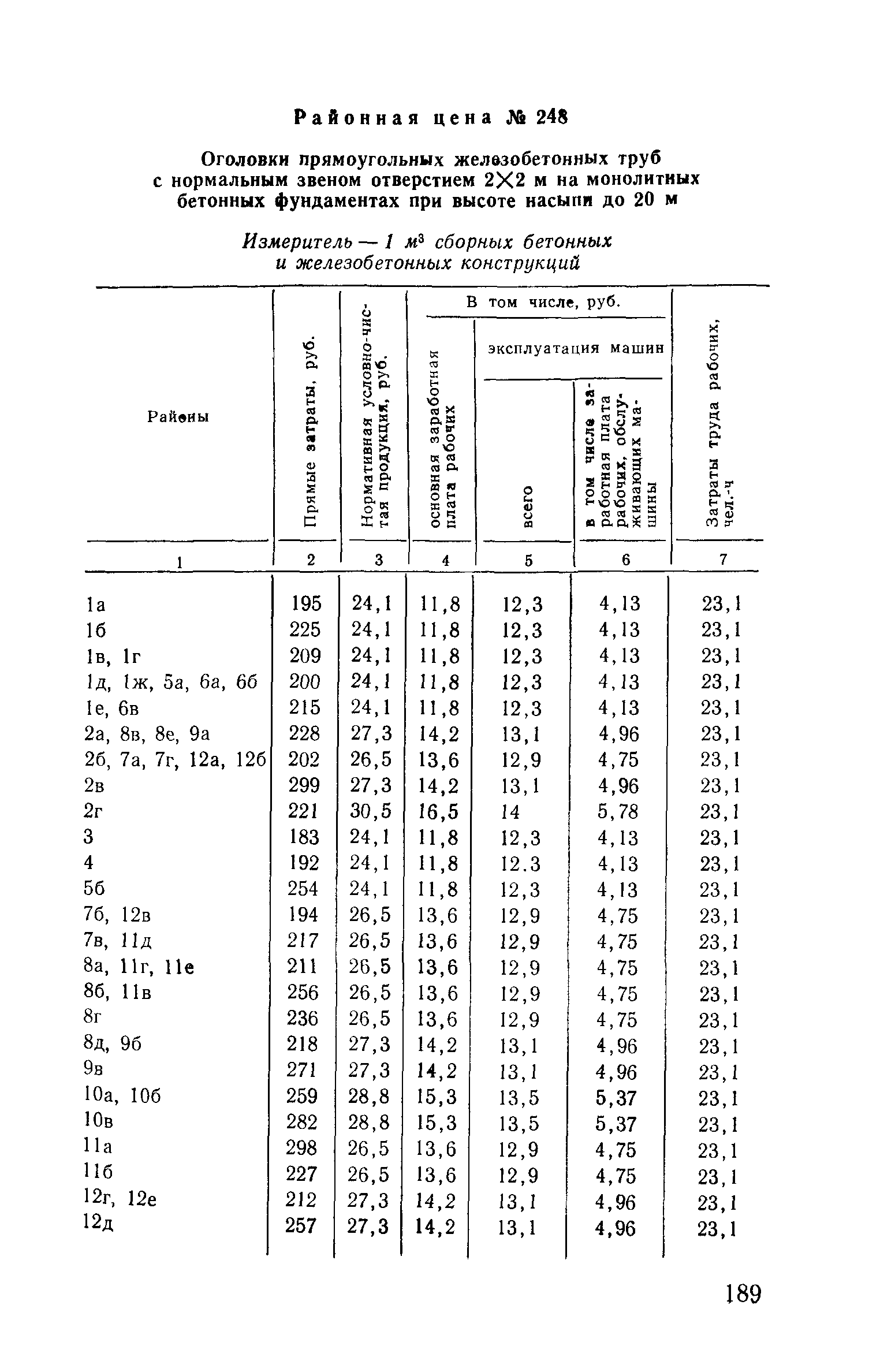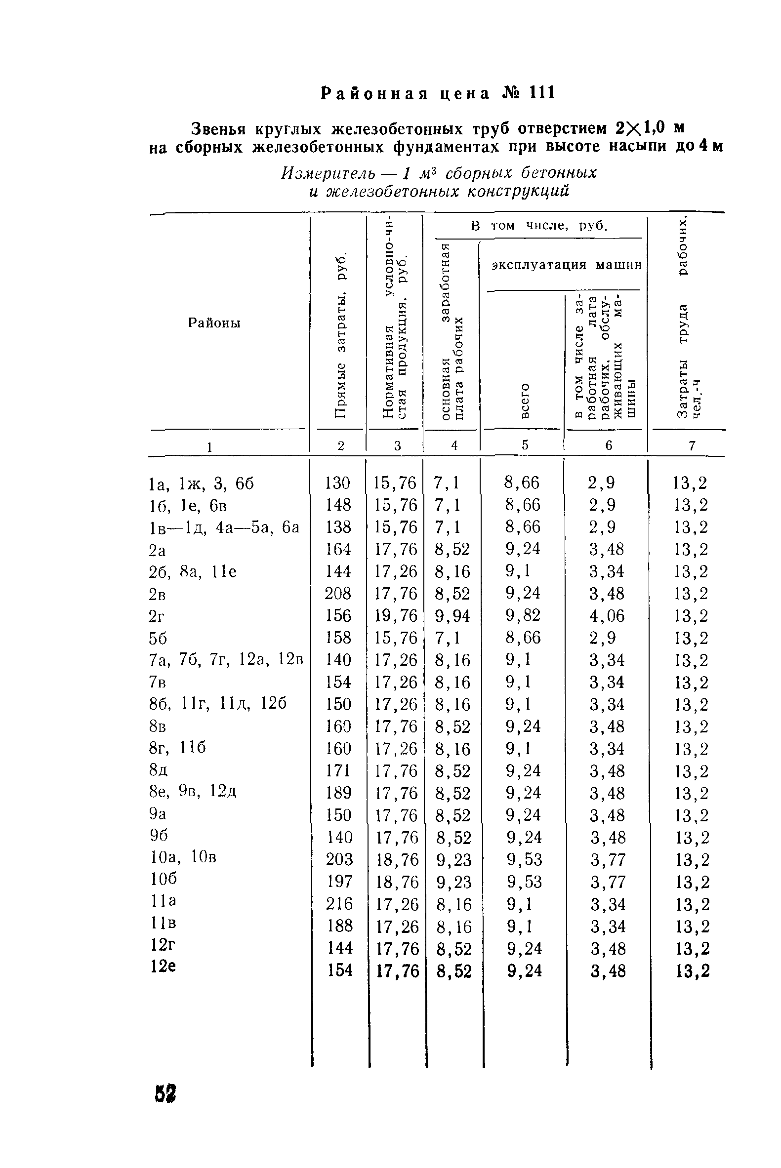 Прейскурант на строительство зданий и сооружений автодорожного транспорта. Выпуск 2. Прейскурант на строительство зданий и сооружений автодорожного транспорта. Выпуск 1, 2, 3, 4. Прейскуранты на строительство зданий и сооружений межотраслевого назначения| Статус: | действует | | Название рус.: | Прейскурант на строительство зданий и сооружений автодорожного транспорта. Выпуск 2. Прейскурант на строительство зданий и сооружений автодорожного транспорта. Выпуск 1, 2, 3, 4. Прейскуранты на строительство зданий и сооружений межотраслевого назначения | | Дата добавления в базу: | 01.09.2013 | | Дата актуализации: | 01.01.2021 | | Дата введения: | 01.07.1985 | | Область применения: | Прейскурант предназначен для определения сметной стоимости при проектировании зданий на стадиях проекта, рабочего проекта и рабочей документации и является обязательным для применения всеми организациями независимо от их ведомственной принадлежности при проектировании строительства в территориальных районах и подрайонах, указанных в прил. 1 (кроме районов Крайнего Севера и местностей, приравненных к ним, за исключением Мурманской обл.). | | Оглавление: | Техническая часть I Цены Прейскуранта на трубы водопропускные круглые, железобетонные II Цены Прейскуранта на трубы водопропускные прямоугольные железобетонные III Цены Прейскуранта на трубы водопропускные круглые из гофрированного металла IV Цены Прейскуранта на железобетонные лестничные сходы по откосам насыпей и выемок V Цены Прейскуранта на дополнительные объемы работ по сооружению водопропускных труб | | Разработан: | Гипропромтрансстрой Главтранспроекта