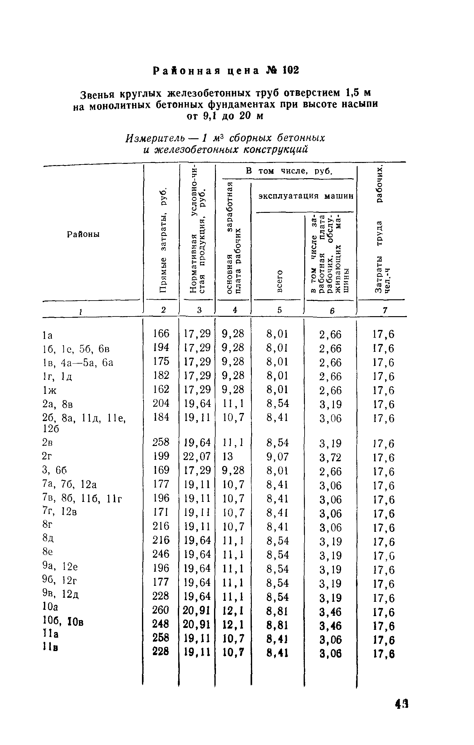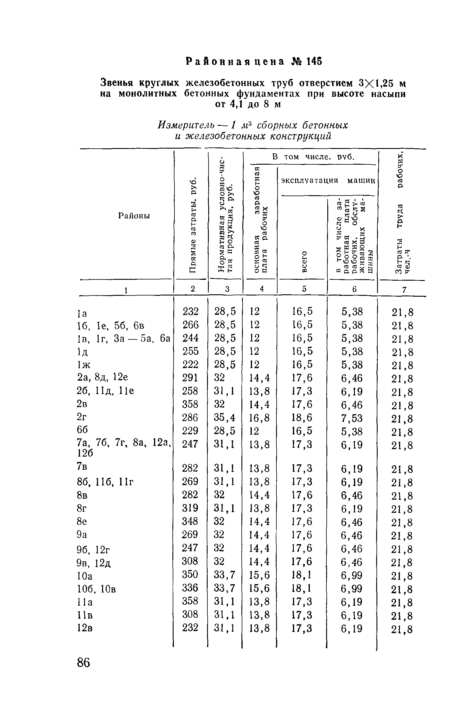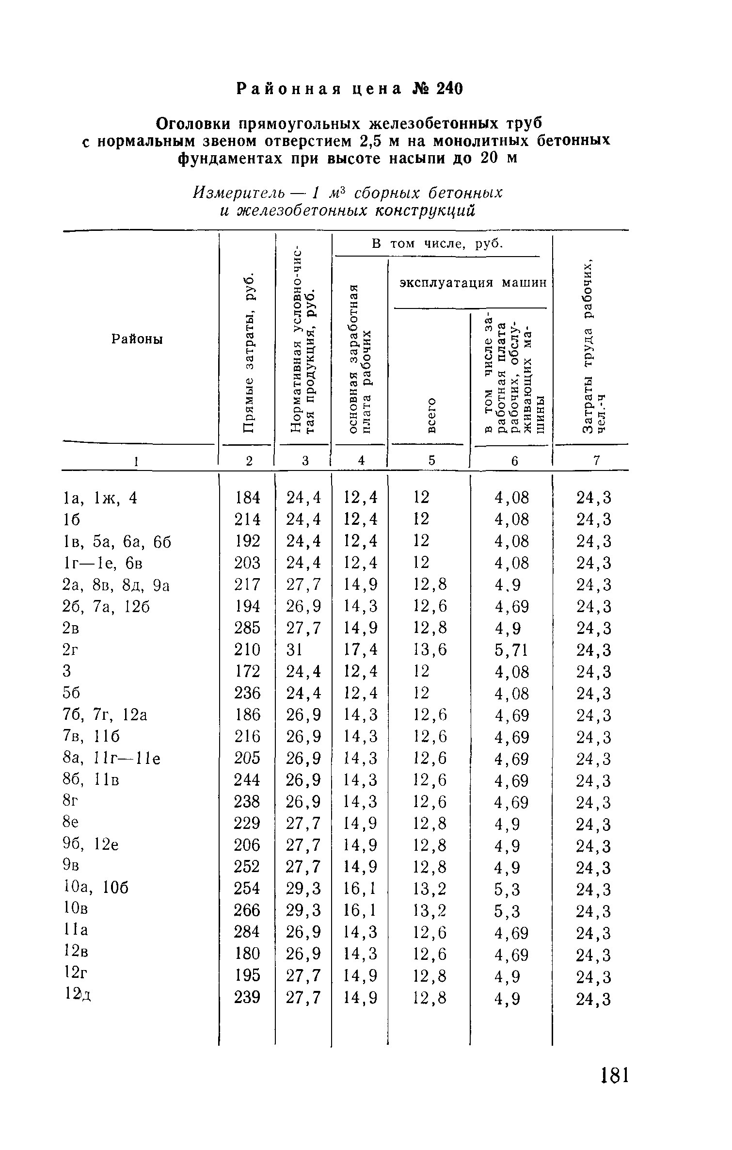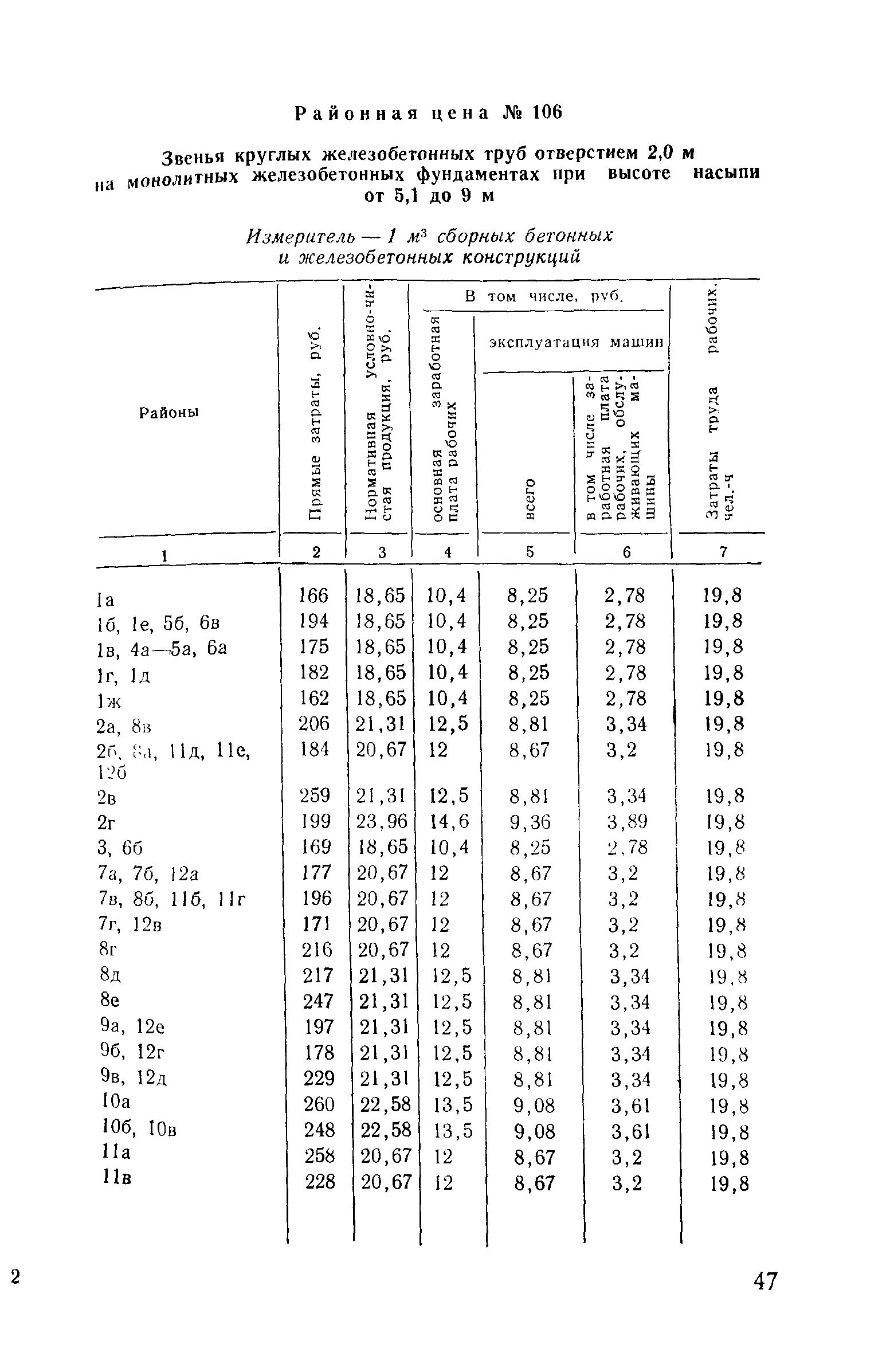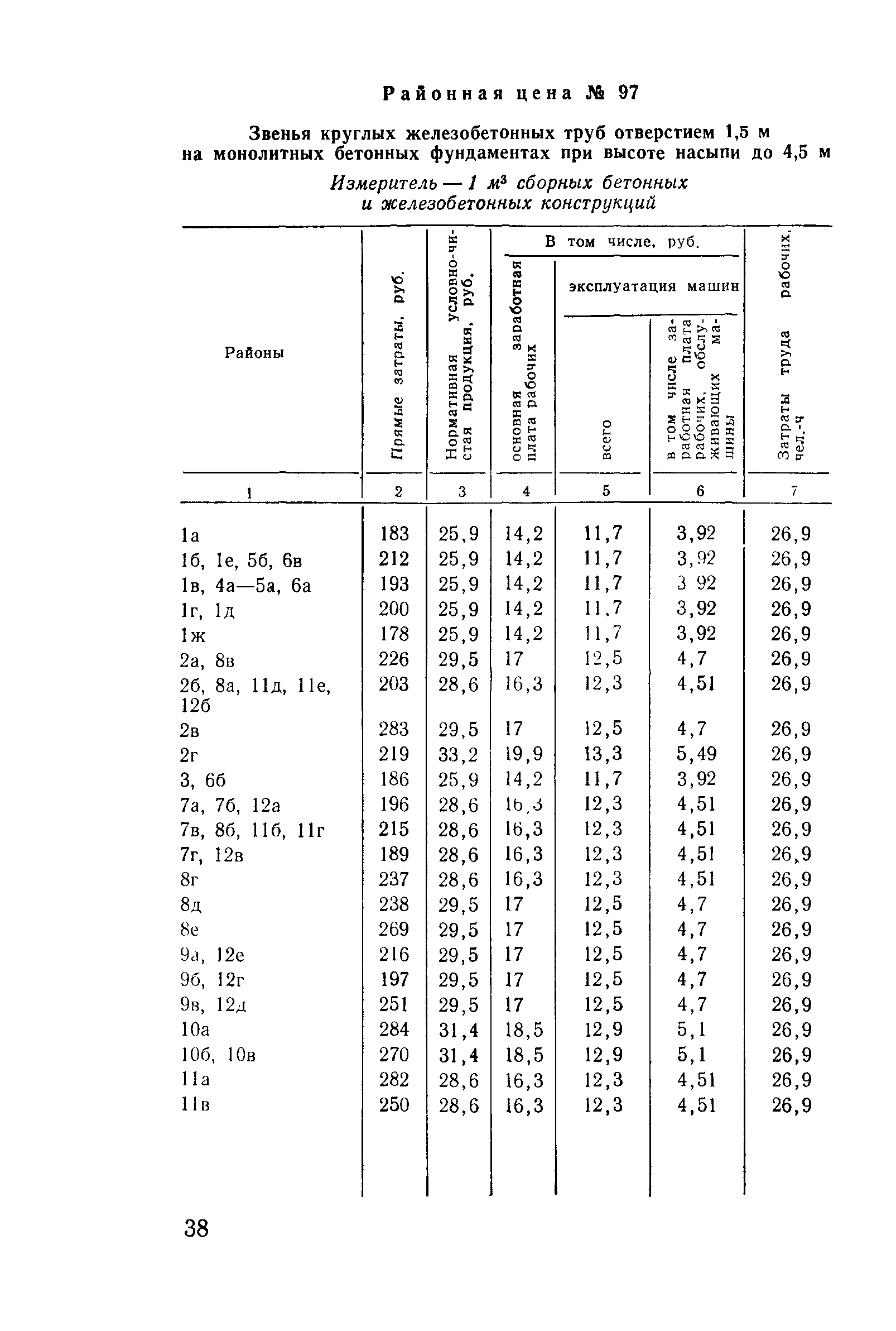 Прейскурант на строительство зданий и сооружений автодорожного транспорта. Выпуск 2. Прейскурант на строительство зданий и сооружений автодорожного транспорта. Выпуск 1, 2, 3, 4. Прейскуранты на строительство зданий и сооружений межотраслевого назначения| Статус: | действует | | Название рус.: | Прейскурант на строительство зданий и сооружений автодорожного транспорта. Выпуск 2. Прейскурант на строительство зданий и сооружений автодорожного транспорта. Выпуск 1, 2, 3, 4. Прейскуранты на строительство зданий и сооружений межотраслевого назначения | | Дата добавления в базу: | 01.09.2013 | | Дата актуализации: | 01.01.2021 | | Дата введения: | 01.07.1985 | | Область применения: | Прейскурант предназначен для определения сметной стоимости при проектировании зданий на стадиях проекта, рабочего проекта и рабочей документации и является обязательным для применения всеми организациями независимо от их ведомственной принадлежности при проектировании строительства в территориальных районах и подрайонах, указанных в прил. 1 (кроме районов Крайнего Севера и местностей, приравненных к ним, за исключением Мурманской обл.). | | Оглавление: | Техническая часть I Цены Прейскуранта на трубы водопропускные круглые, железобетонные II Цены Прейскуранта на трубы водопропускные прямоугольные железобетонные III Цены Прейскуранта на трубы водопропускные круглые из гофрированного металла IV Цены Прейскуранта на железобетонные лестничные сходы по откосам насыпей и выемок V Цены Прейскуранта на дополнительные объемы работ по сооружению водопропускных труб | | Разработан: | Гипропромтрансстрой Главтранспроекта