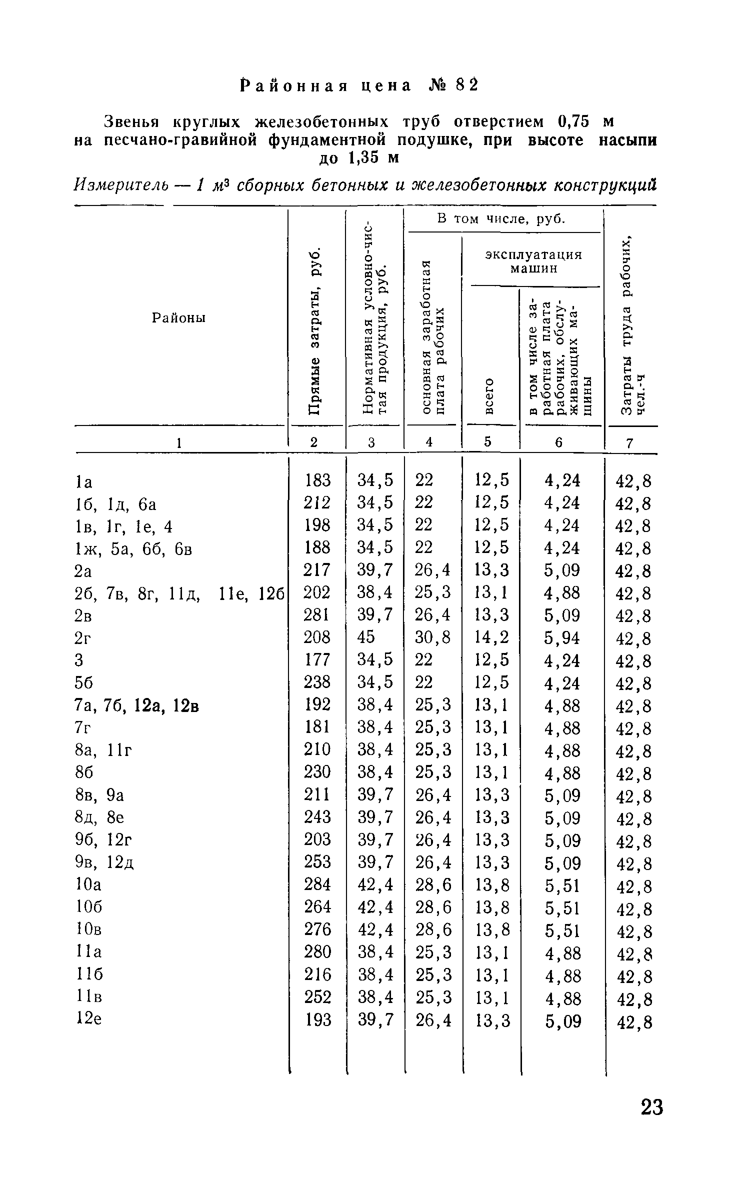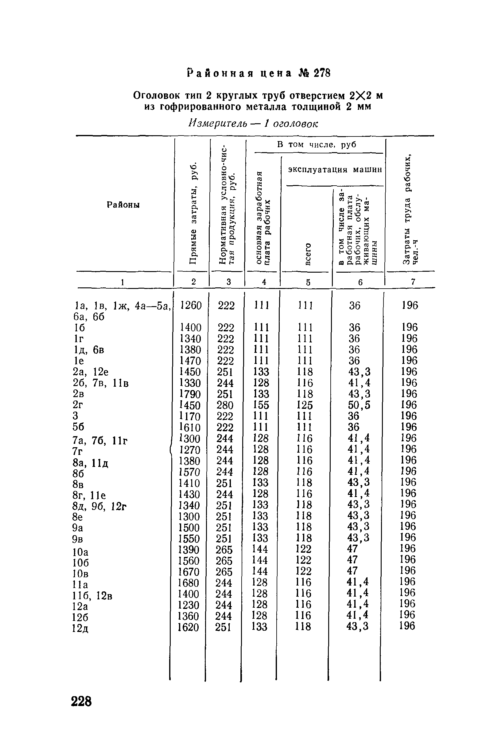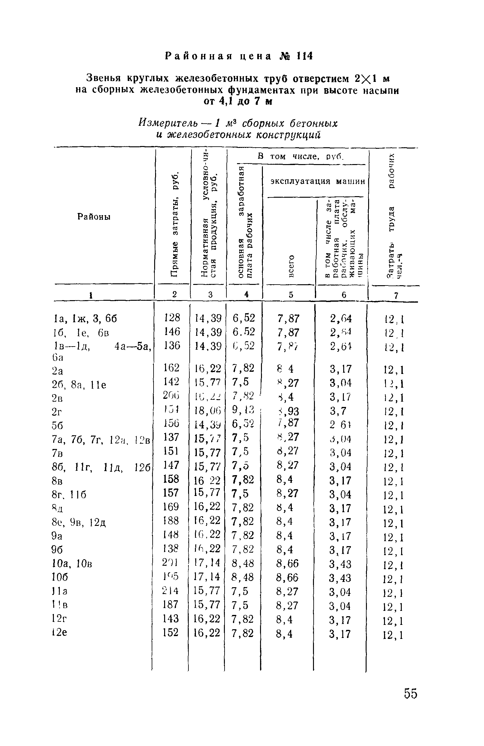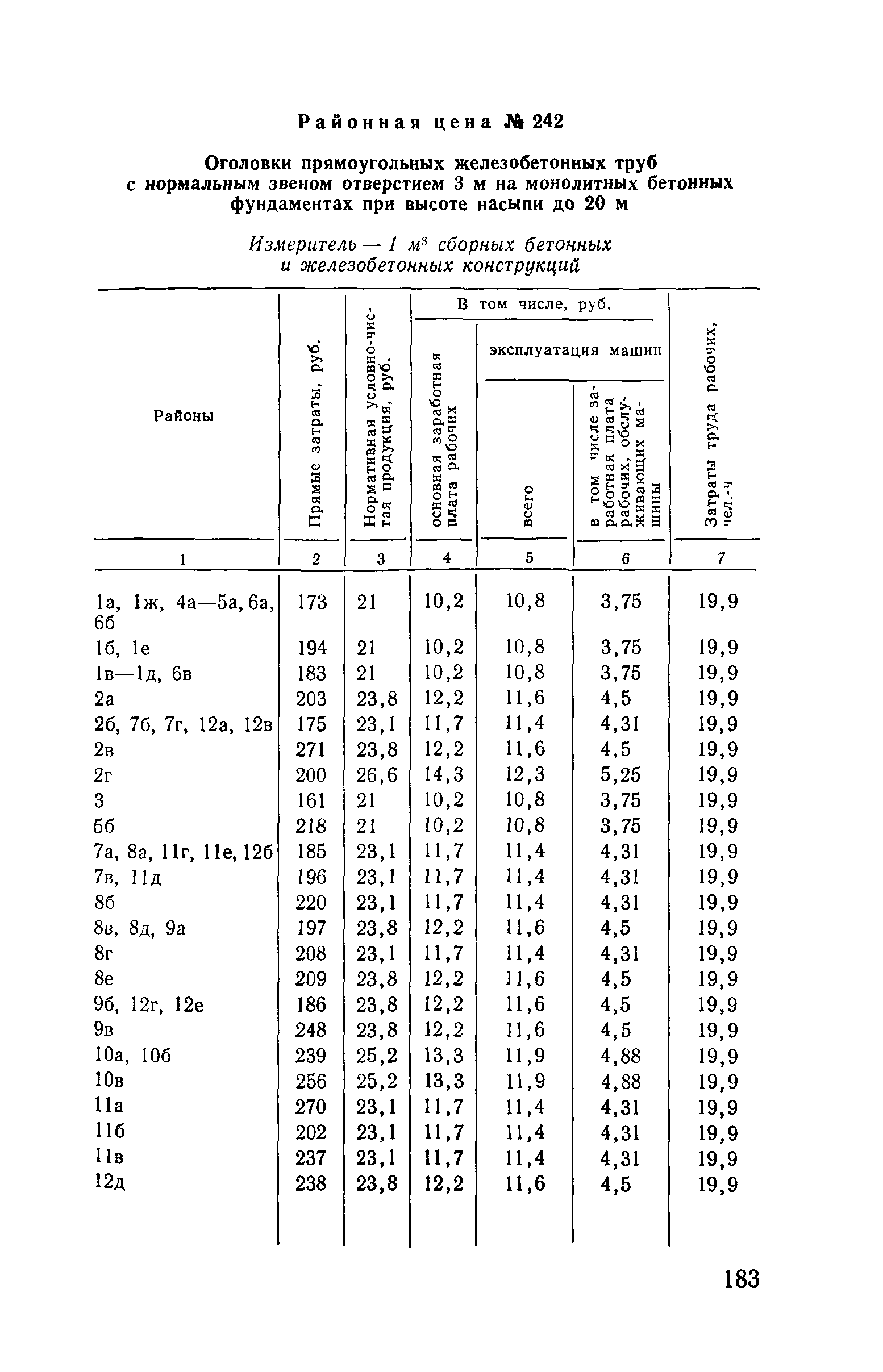 Прейскурант на строительство зданий и сооружений автодорожного транспорта. Выпуск 2. Прейскурант на строительство зданий и сооружений автодорожного транспорта. Выпуск 1, 2, 3, 4. Прейскуранты на строительство зданий и сооружений межотраслевого назначения| Статус: | действует | | Название рус.: | Прейскурант на строительство зданий и сооружений автодорожного транспорта. Выпуск 2. Прейскурант на строительство зданий и сооружений автодорожного транспорта. Выпуск 1, 2, 3, 4. Прейскуранты на строительство зданий и сооружений межотраслевого назначения | | Дата добавления в базу: | 01.09.2013 | | Дата актуализации: | 01.01.2021 | | Дата введения: | 01.07.1985 | | Область применения: | Прейскурант предназначен для определения сметной стоимости при проектировании зданий на стадиях проекта, рабочего проекта и рабочей документации и является обязательным для применения всеми организациями независимо от их ведомственной принадлежности при проектировании строительства в территориальных районах и подрайонах, указанных в прил. 1 (кроме районов Крайнего Севера и местностей, приравненных к ним, за исключением Мурманской обл.). | | Оглавление: | Техническая часть I Цены Прейскуранта на трубы водопропускные круглые, железобетонные II Цены Прейскуранта на трубы водопропускные прямоугольные железобетонные III Цены Прейскуранта на трубы водопропускные круглые из гофрированного металла IV Цены Прейскуранта на железобетонные лестничные сходы по откосам насыпей и выемок V Цены Прейскуранта на дополнительные объемы работ по сооружению водопропускных труб | | Разработан: | Гипропромтрансстрой Главтранспроекта