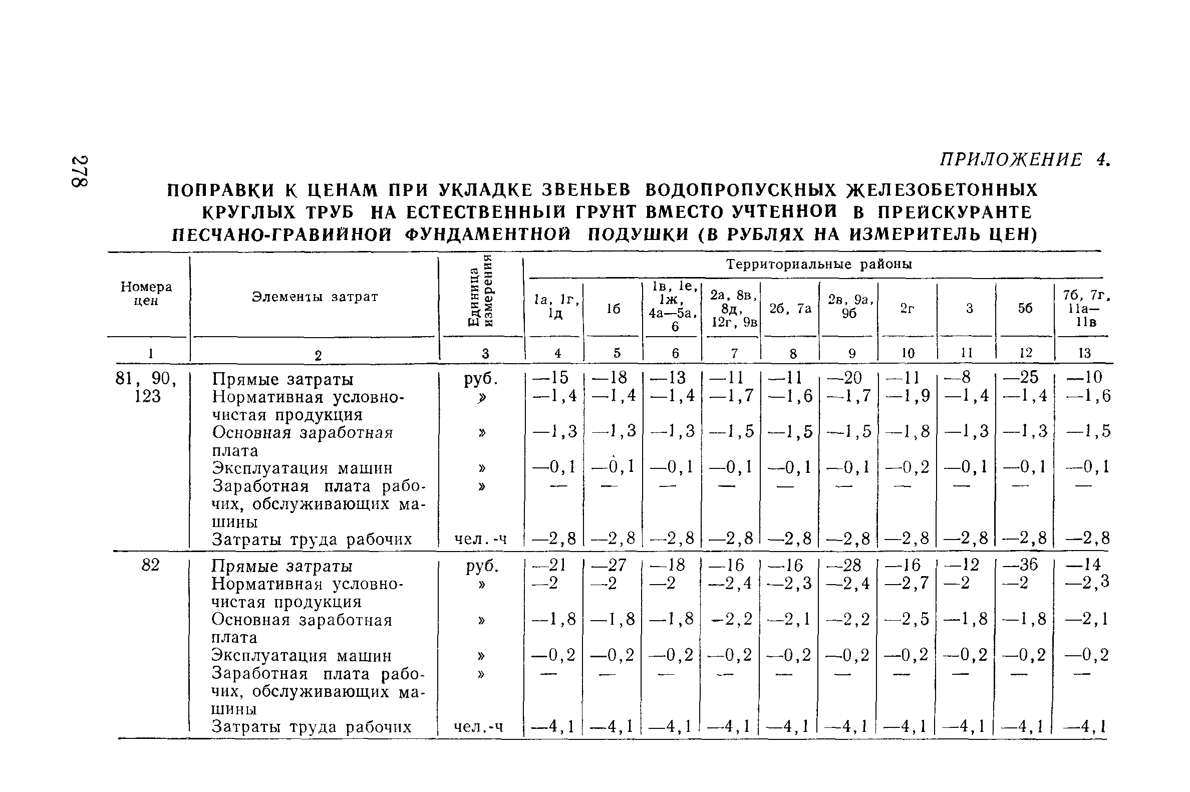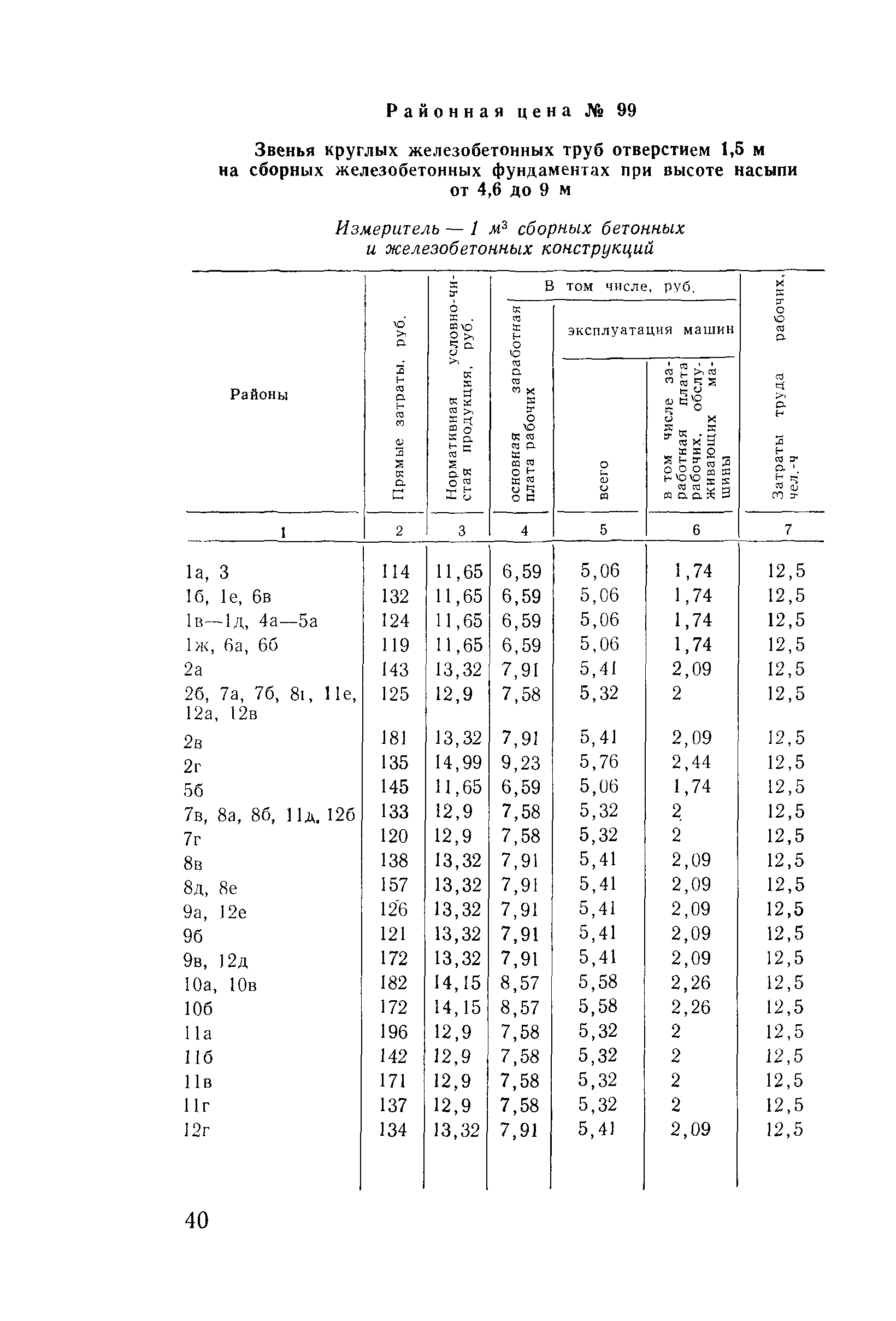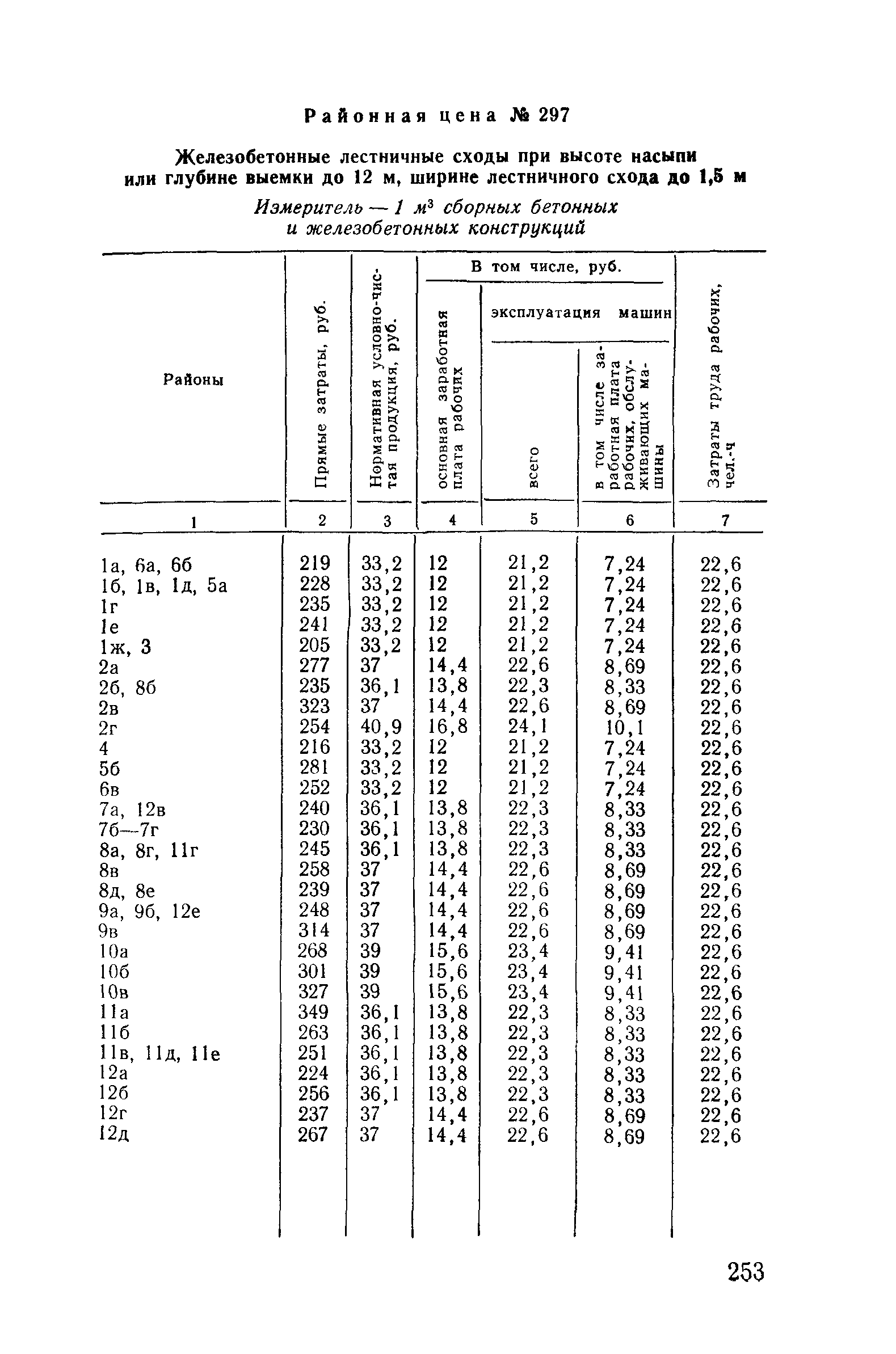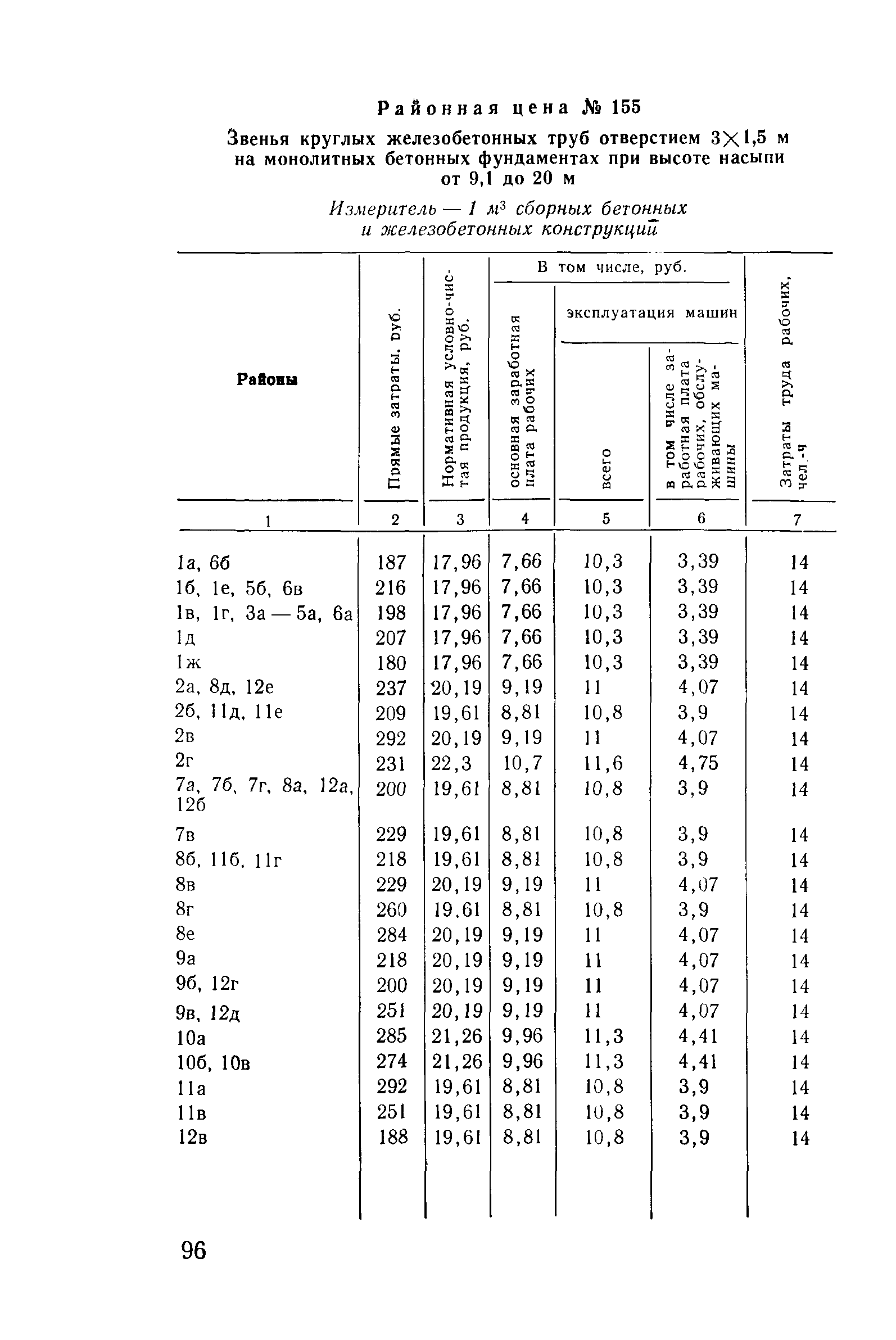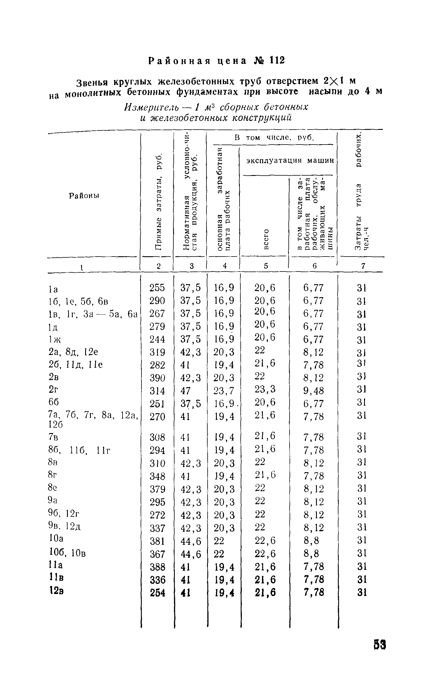 Прейскурант на строительство зданий и сооружений автодорожного транспорта. Выпуск 2. Прейскурант на строительство зданий и сооружений автодорожного транспорта. Выпуск 1, 2, 3, 4. Прейскуранты на строительство зданий и сооружений межотраслевого назначения| Статус: | действует | | Название рус.: | Прейскурант на строительство зданий и сооружений автодорожного транспорта. Выпуск 2. Прейскурант на строительство зданий и сооружений автодорожного транспорта. Выпуск 1, 2, 3, 4. Прейскуранты на строительство зданий и сооружений межотраслевого назначения | | Дата добавления в базу: | 01.09.2013 | | Дата актуализации: | 01.01.2021 | | Дата введения: | 01.07.1985 | | Область применения: | Прейскурант предназначен для определения сметной стоимости при проектировании зданий на стадиях проекта, рабочего проекта и рабочей документации и является обязательным для применения всеми организациями независимо от их ведомственной принадлежности при проектировании строительства в территориальных районах и подрайонах, указанных в прил. 1 (кроме районов Крайнего Севера и местностей, приравненных к ним, за исключением Мурманской обл.). | | Оглавление: | Техническая часть I Цены Прейскуранта на трубы водопропускные круглые, железобетонные II Цены Прейскуранта на трубы водопропускные прямоугольные железобетонные III Цены Прейскуранта на трубы водопропускные круглые из гофрированного металла IV Цены Прейскуранта на железобетонные лестничные сходы по откосам насыпей и выемок V Цены Прейскуранта на дополнительные объемы работ по сооружению водопропускных труб | | Разработан: | Гипропромтрансстрой Главтранспроекта