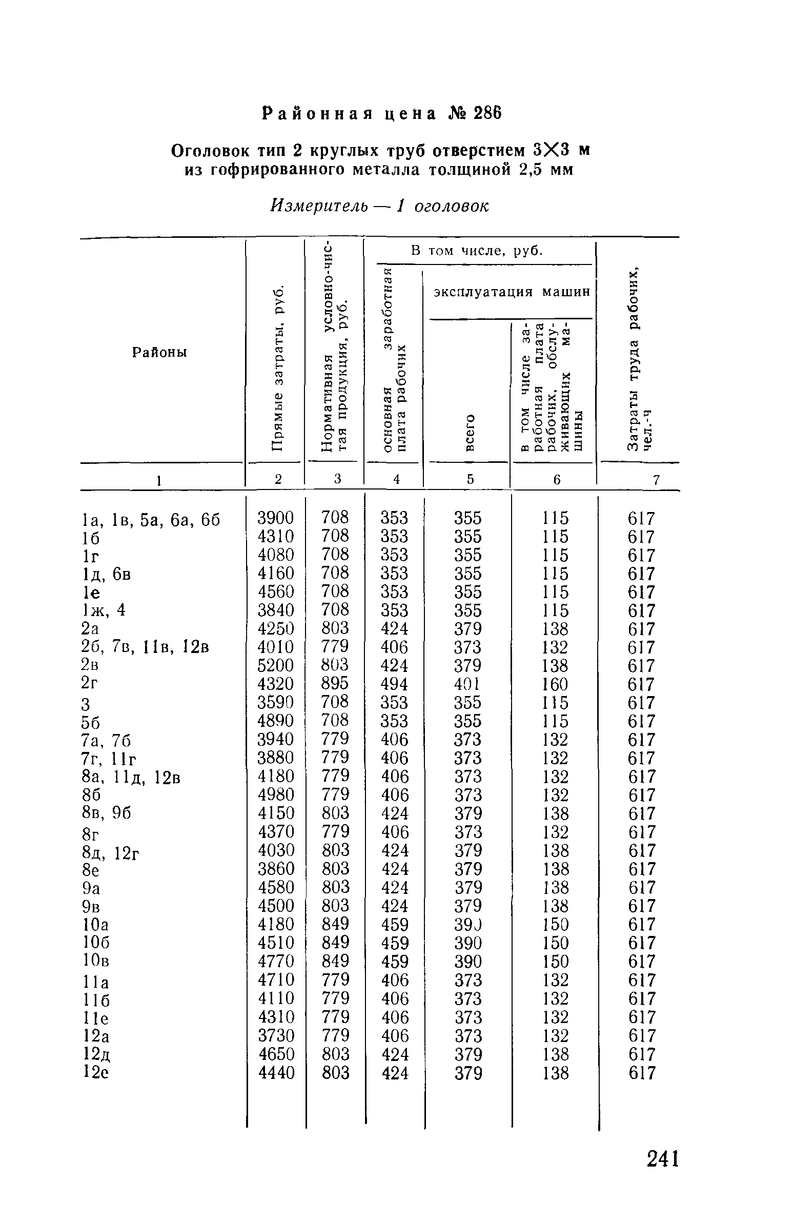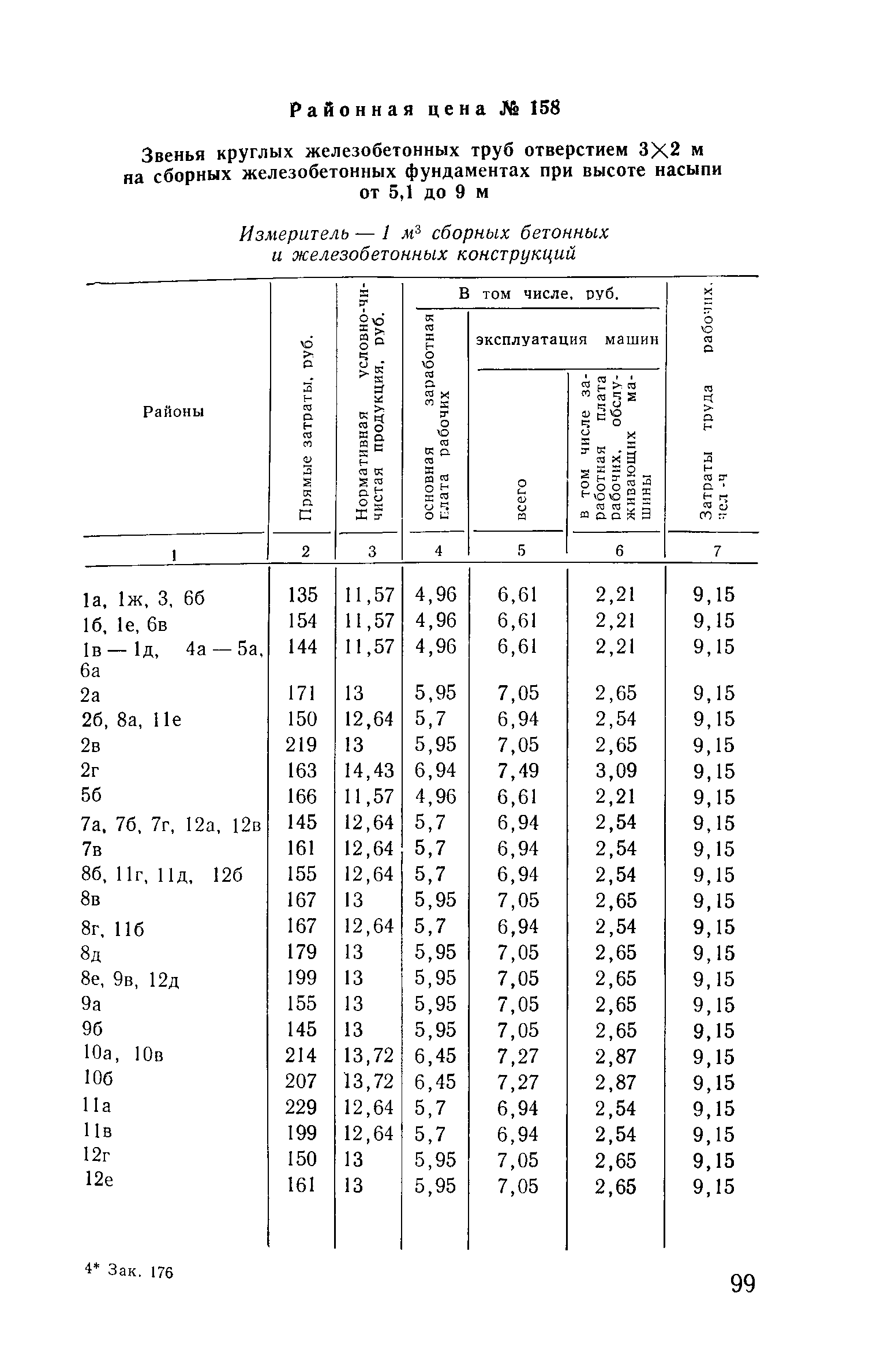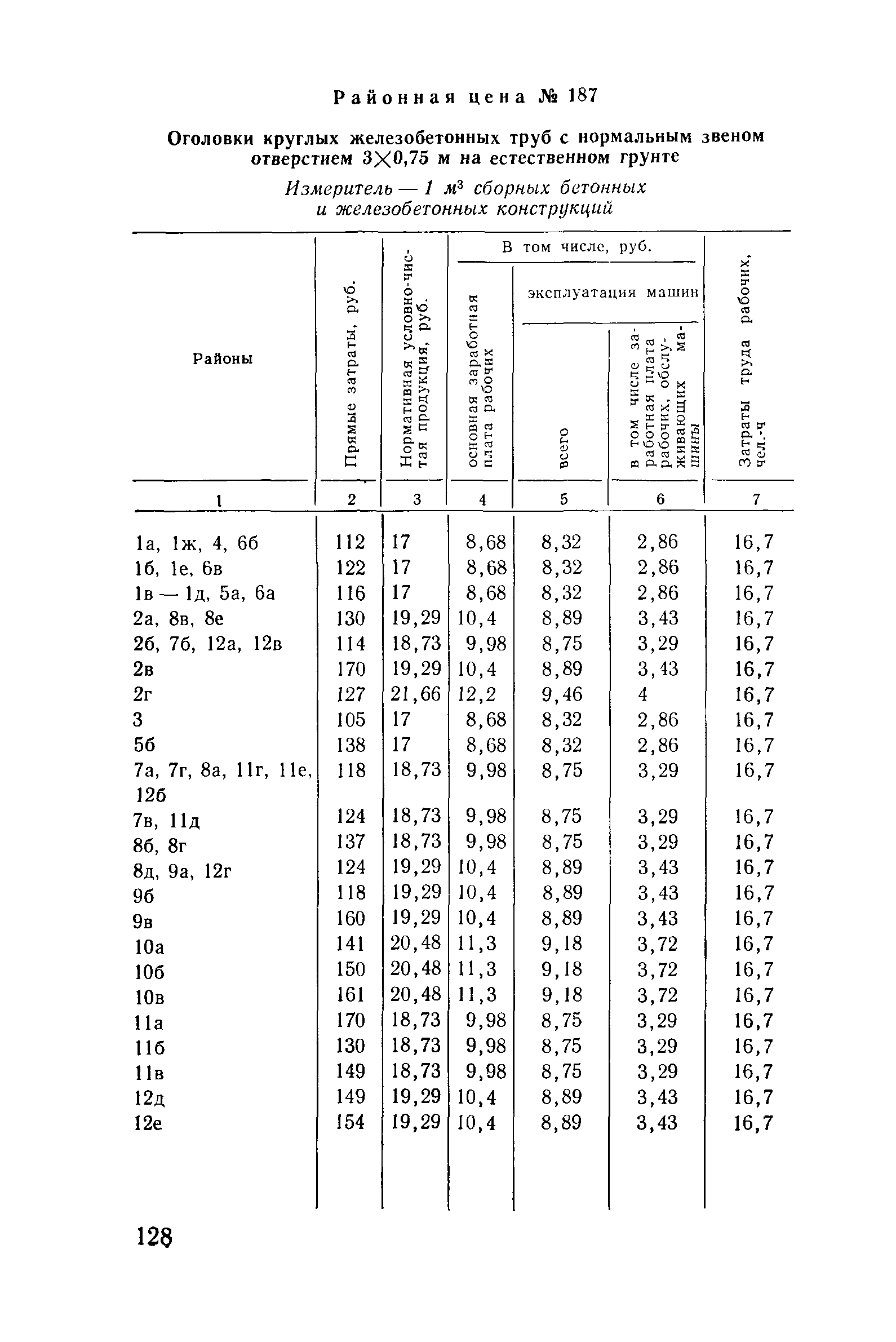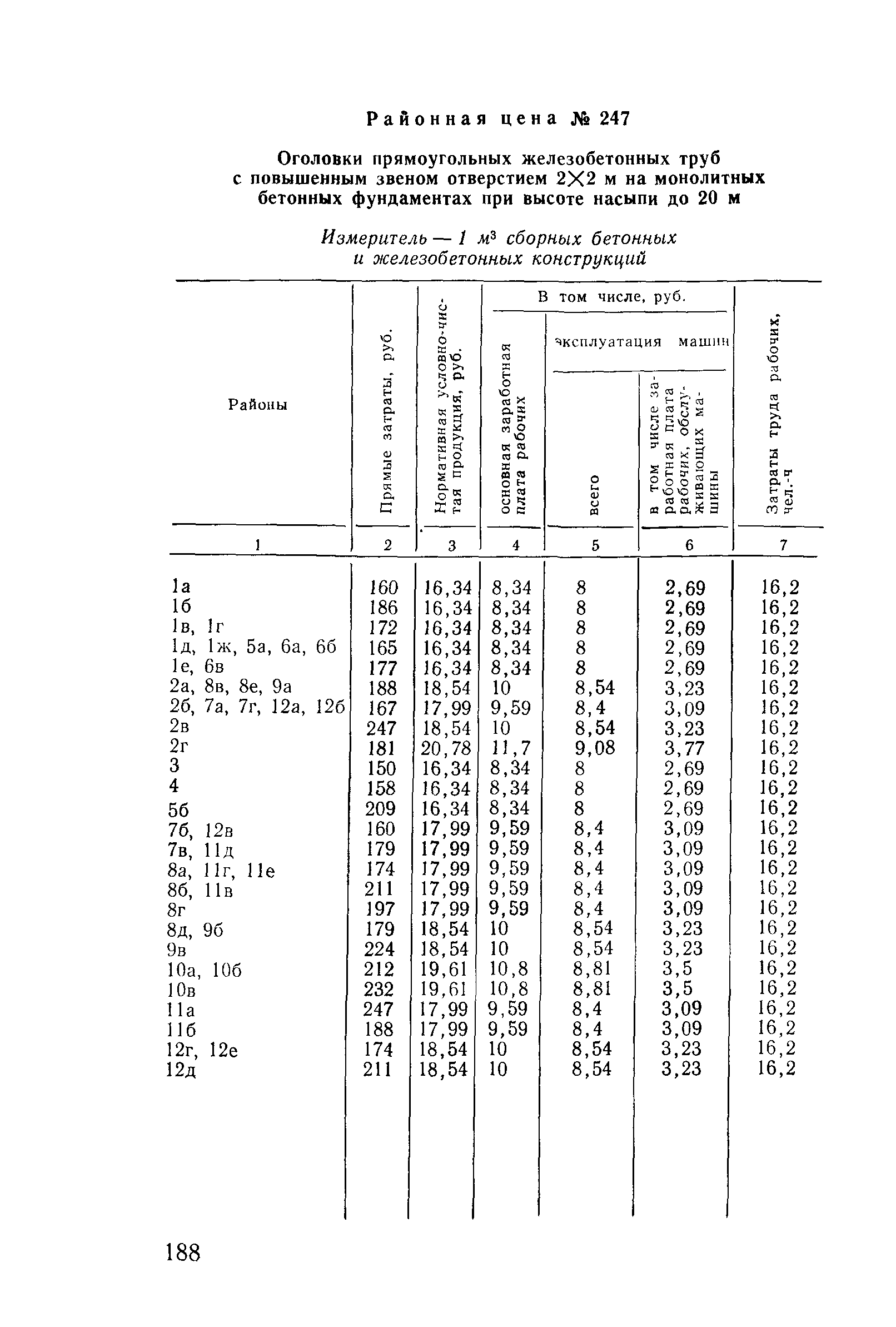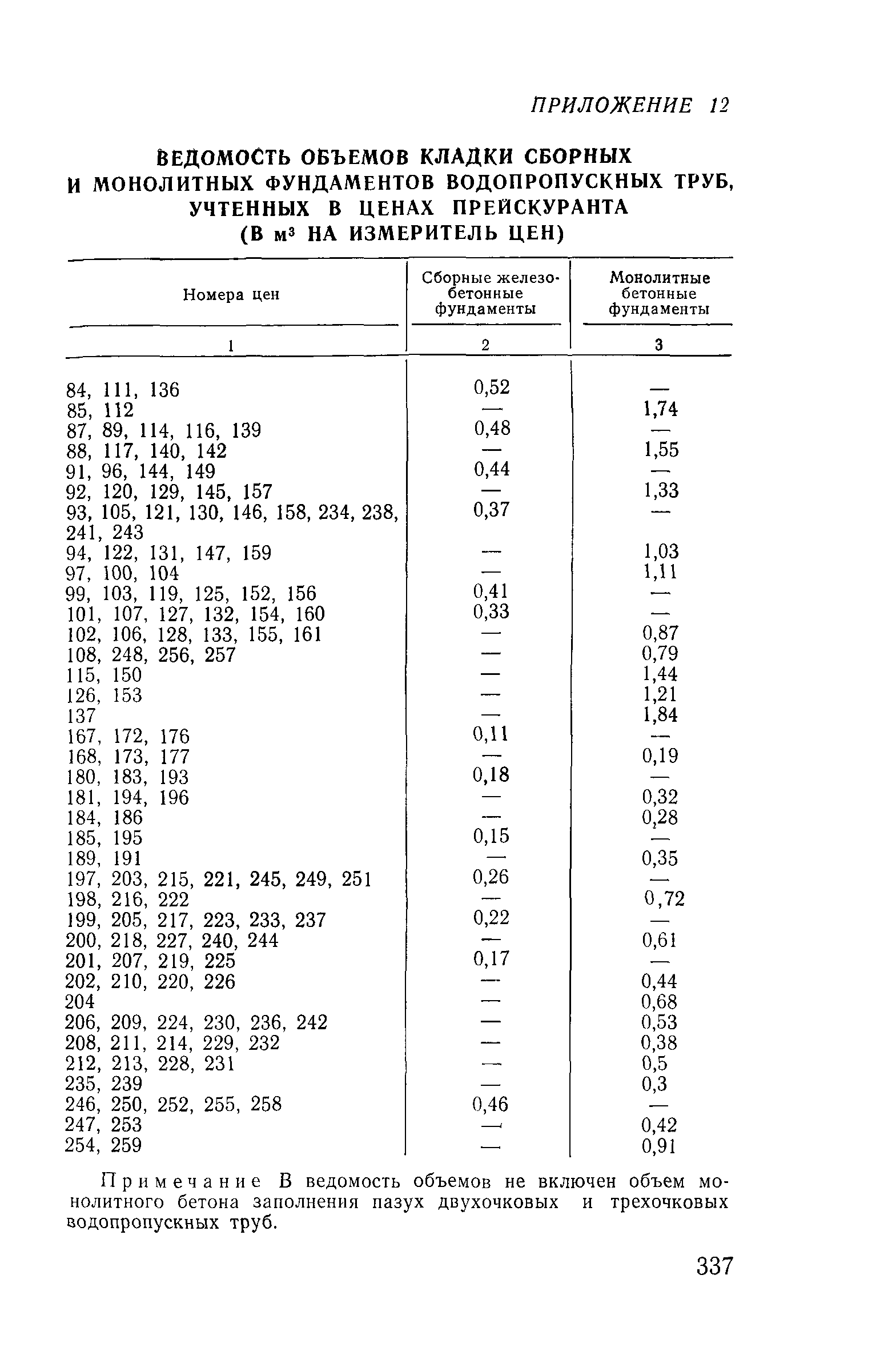 Прейскурант на строительство зданий и сооружений автодорожного транспорта. Выпуск 2. Прейскурант на строительство зданий и сооружений автодорожного транспорта. Выпуск 1, 2, 3, 4. Прейскуранты на строительство зданий и сооружений межотраслевого назначения| Статус: | действует | | Название рус.: | Прейскурант на строительство зданий и сооружений автодорожного транспорта. Выпуск 2. Прейскурант на строительство зданий и сооружений автодорожного транспорта. Выпуск 1, 2, 3, 4. Прейскуранты на строительство зданий и сооружений межотраслевого назначения | | Дата добавления в базу: | 01.09.2013 | | Дата актуализации: | 01.01.2021 | | Дата введения: | 01.07.1985 | | Область применения: | Прейскурант предназначен для определения сметной стоимости при проектировании зданий на стадиях проекта, рабочего проекта и рабочей документации и является обязательным для применения всеми организациями независимо от их ведомственной принадлежности при проектировании строительства в территориальных районах и подрайонах, указанных в прил. 1 (кроме районов Крайнего Севера и местностей, приравненных к ним, за исключением Мурманской обл.). | | Оглавление: | Техническая часть I Цены Прейскуранта на трубы водопропускные круглые, железобетонные II Цены Прейскуранта на трубы водопропускные прямоугольные железобетонные III Цены Прейскуранта на трубы водопропускные круглые из гофрированного металла IV Цены Прейскуранта на железобетонные лестничные сходы по откосам насыпей и выемок V Цены Прейскуранта на дополнительные объемы работ по сооружению водопропускных труб | | Разработан: | Гипропромтрансстрой Главтранспроекта