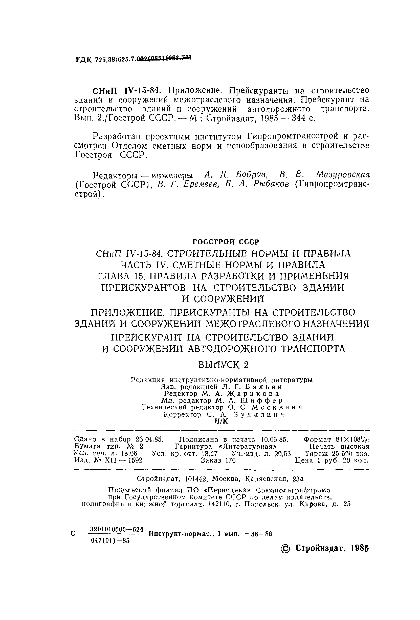 | | Утверждён: | 17.12.1984 Госстрой СССР (Государственный комитет Совета Министров СССР по делам строительства) (USSR Gosstroy 209)