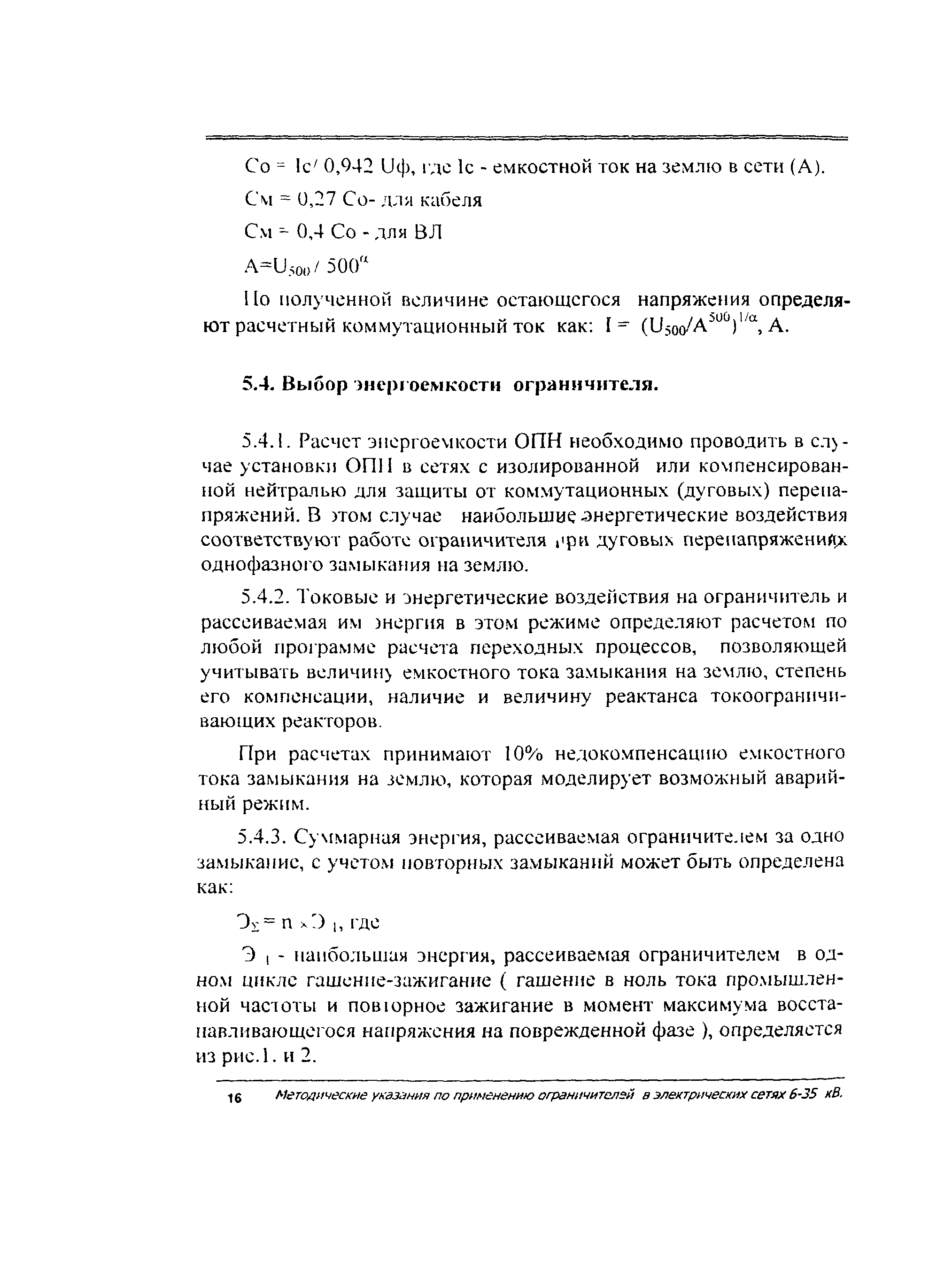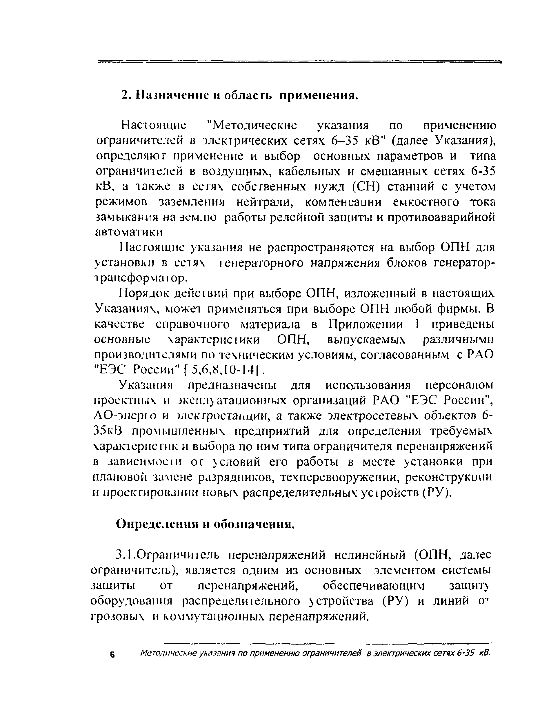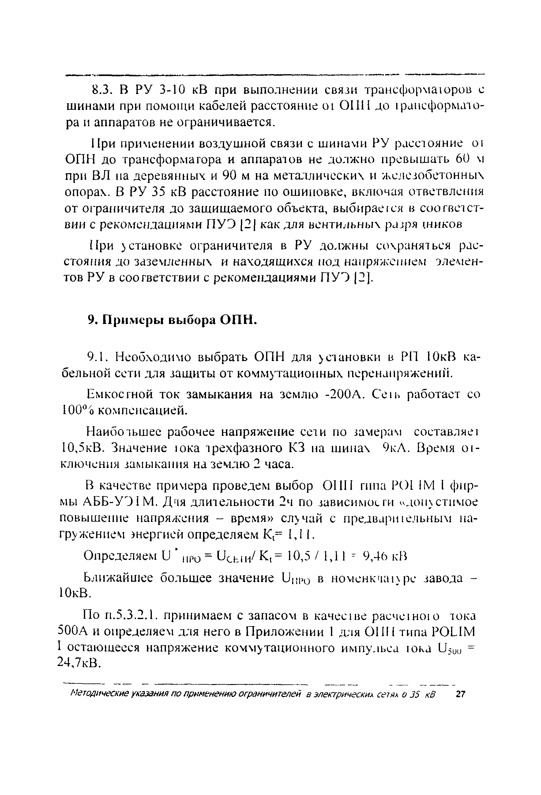 | Название рус.: | Методические указания по применению ограничителей перенапряжений нелинейных в электрических сетях 6-35 кВ |