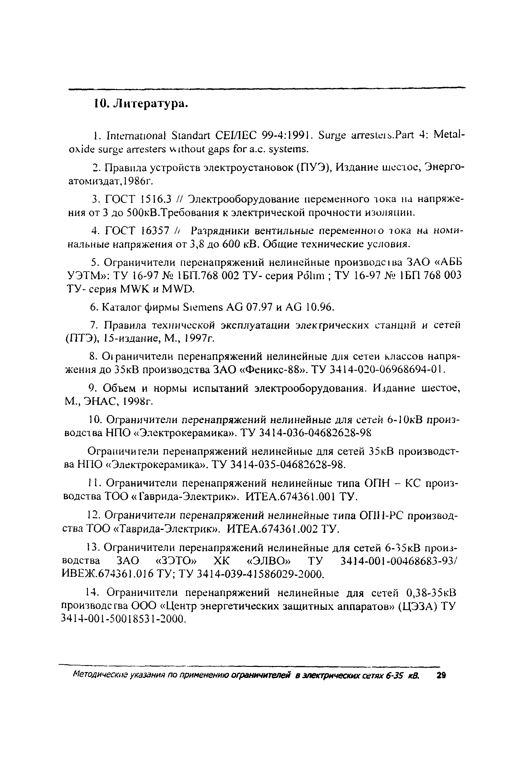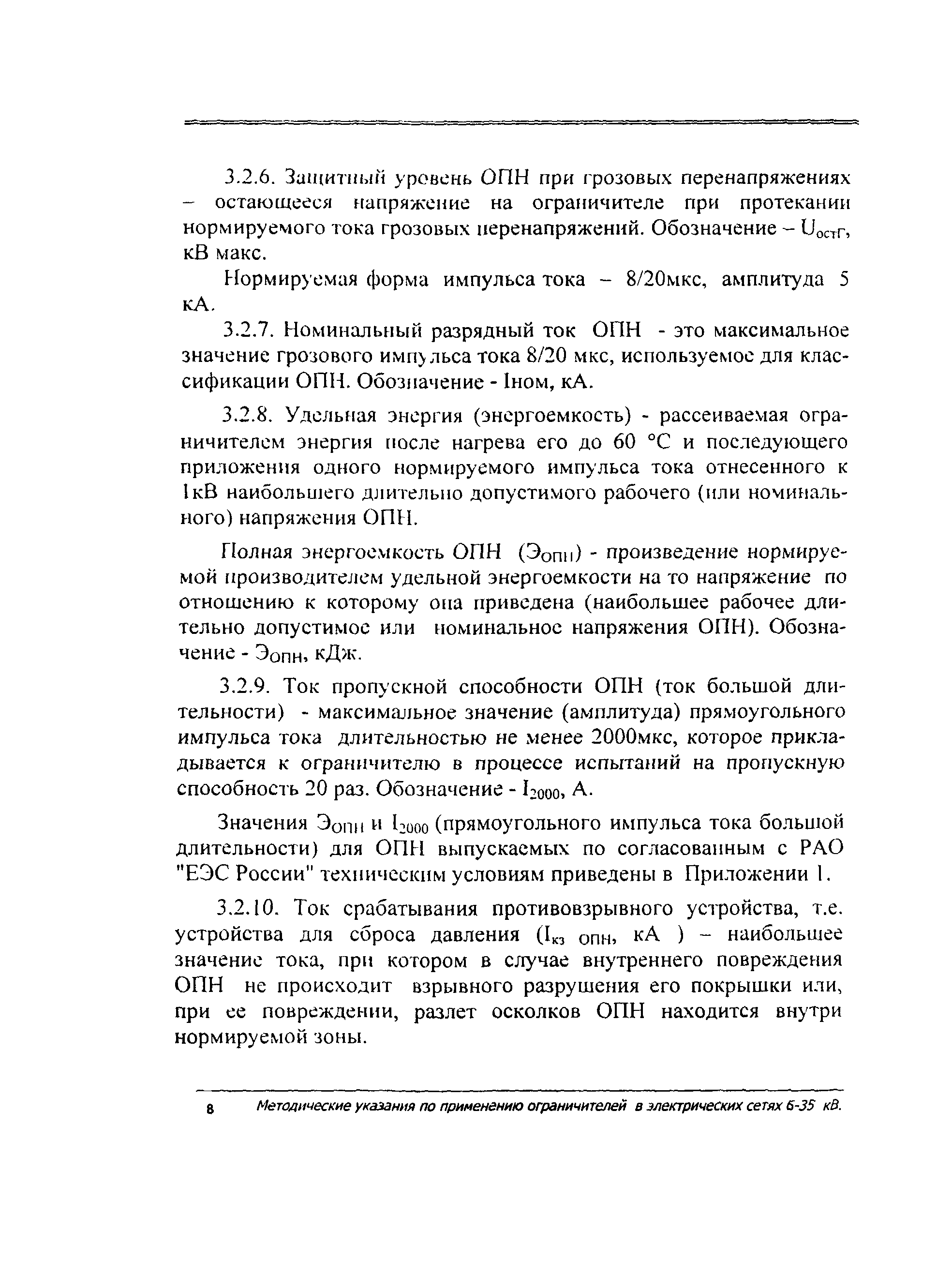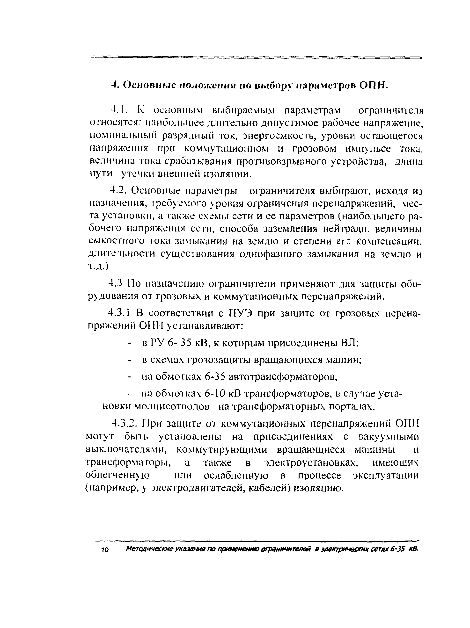 | Название рус.: | Методические указания по применению ограничителей перенапряжений нелинейных в электрических сетях 6-35 кВ |