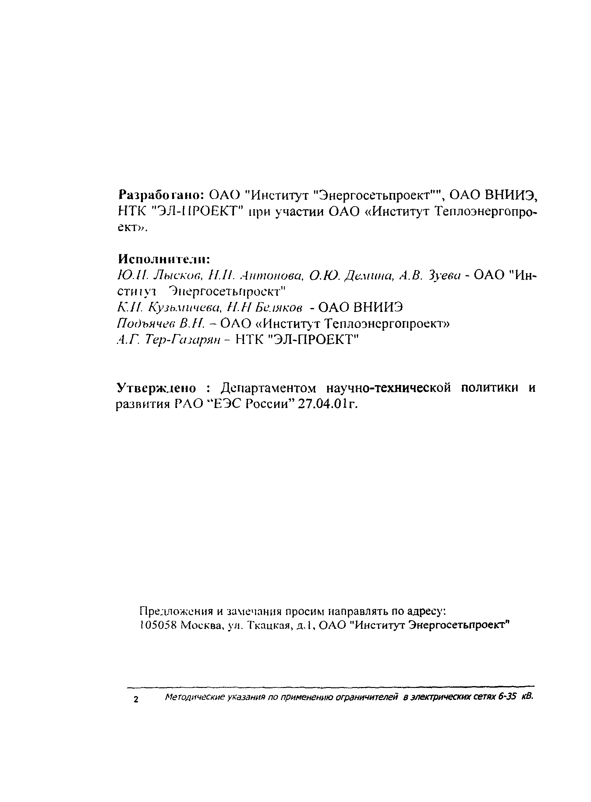 | Утверждён: | 27.04.2001 РАО ЕЭС России (UES of Russia RAO ) |