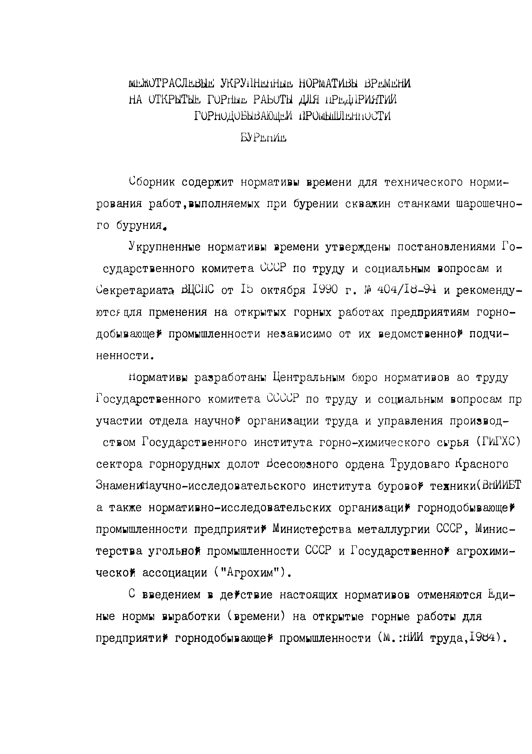 | Название рус.: | Межотраслевые укрупненные нормативы времени на открытые горные работы для предприятий горнодобывающей промышленности. Бурение |