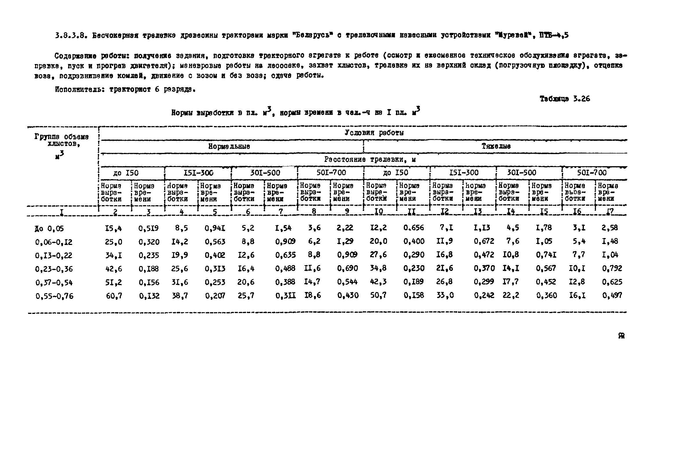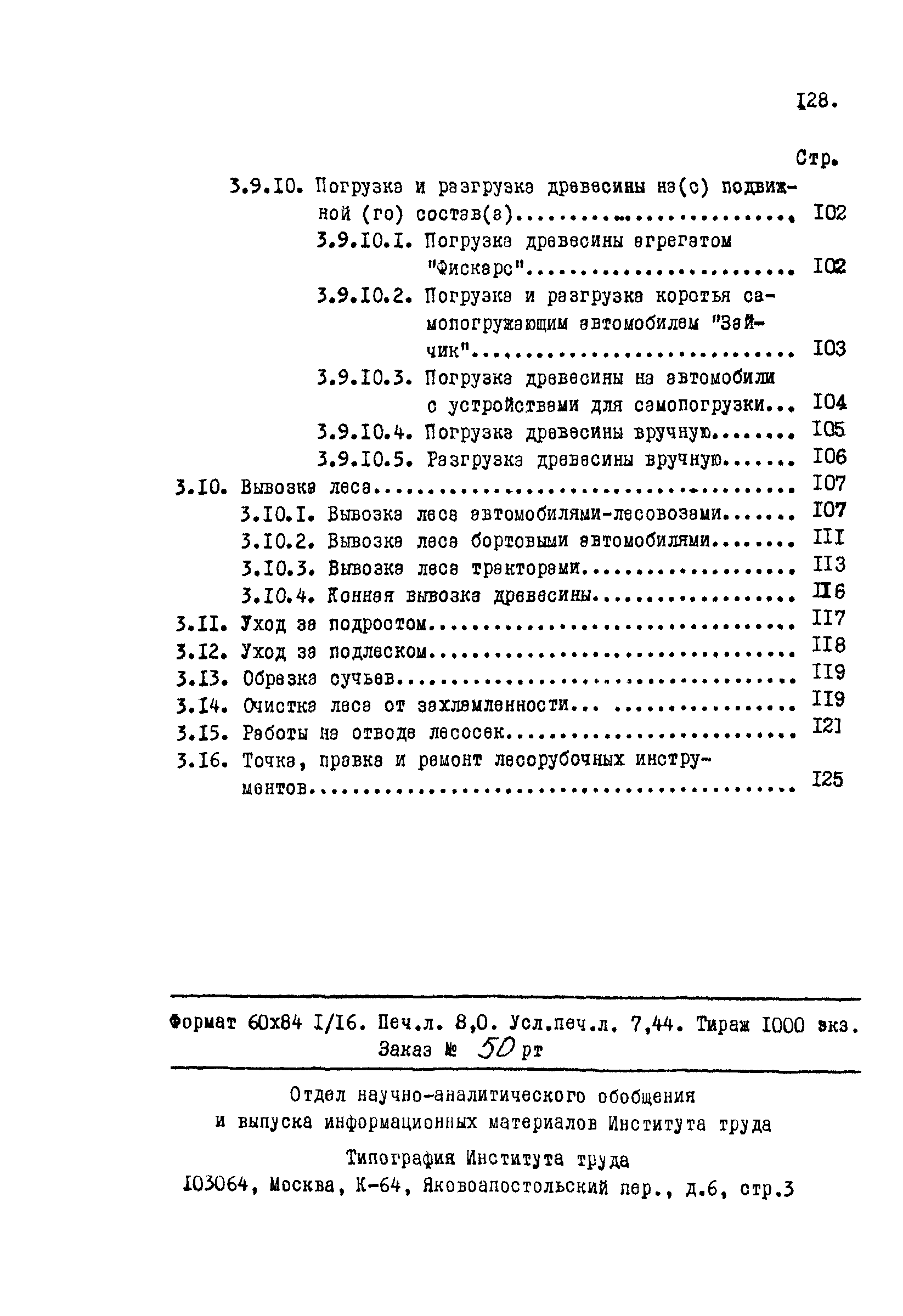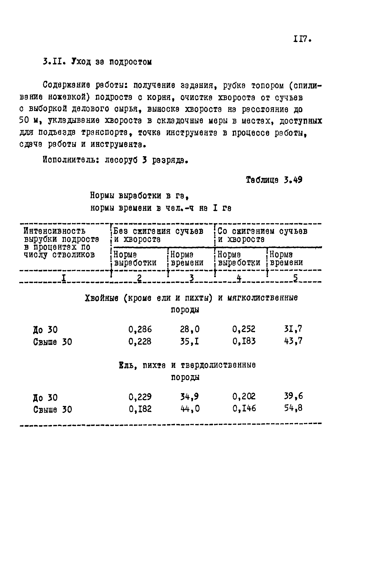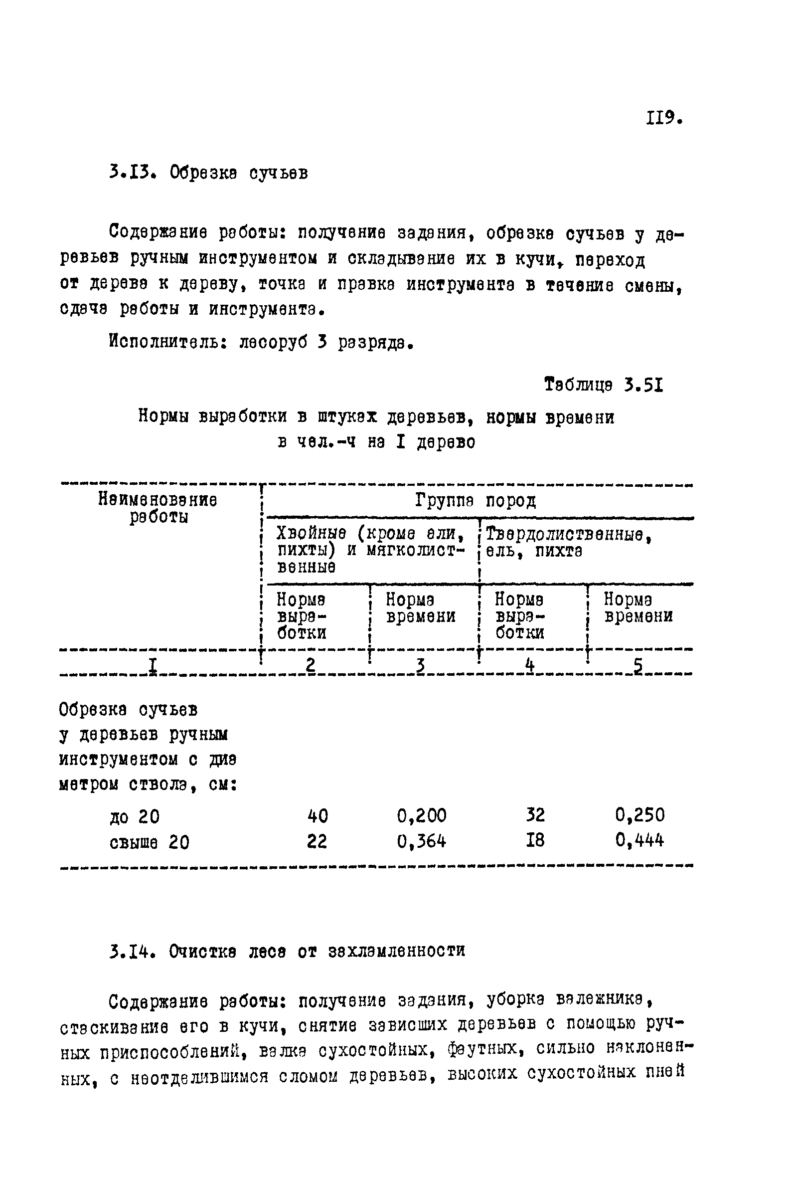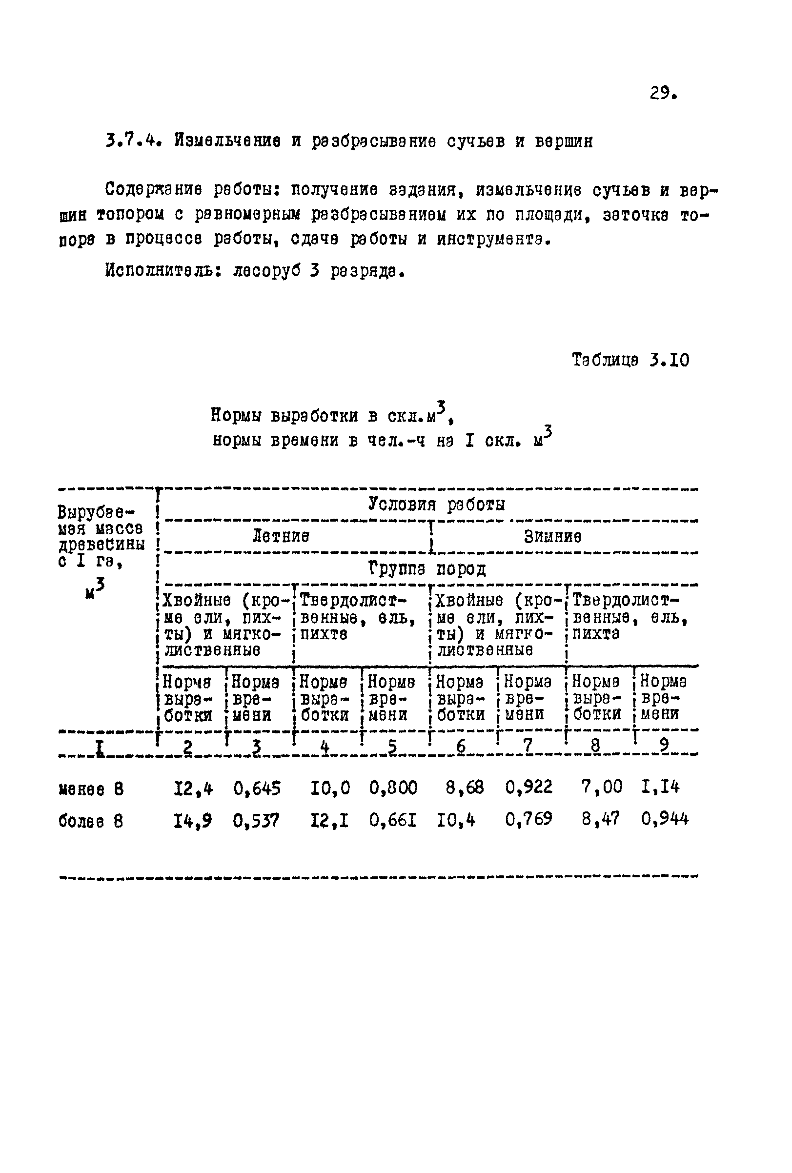 | Оглавление: | 1 Общая часть 2 Организация лесосечных работ 3 Нормативная часть 3.1 Устройство погрузочных площадок (верхних складов) 3.2 Спиливание пней заподлицо с землей 3.3 Валка леса заподлицо с землей 3.4 Уборка опасных деревьев 3.5 Уборка буреломных деревьев 3.6 Расчистка снега перед валкой при глубине снежного покрова свыше 30 см 3.7 Проведение санитарных рубок 3.8 Проведение рубок ухода за лесом 3.9 Работы, выполняемые на верхнем складе 3.10 Вывозка леса 3.11 Уход за подростом 3.12 Уход за подлеском 3.13 Обрезка сучьев 3.14 Очистка леса от захламленности 3.15 Работы на отводе лесосек 3.16 Точка, правка и ремонт лесорубочных инструментов |