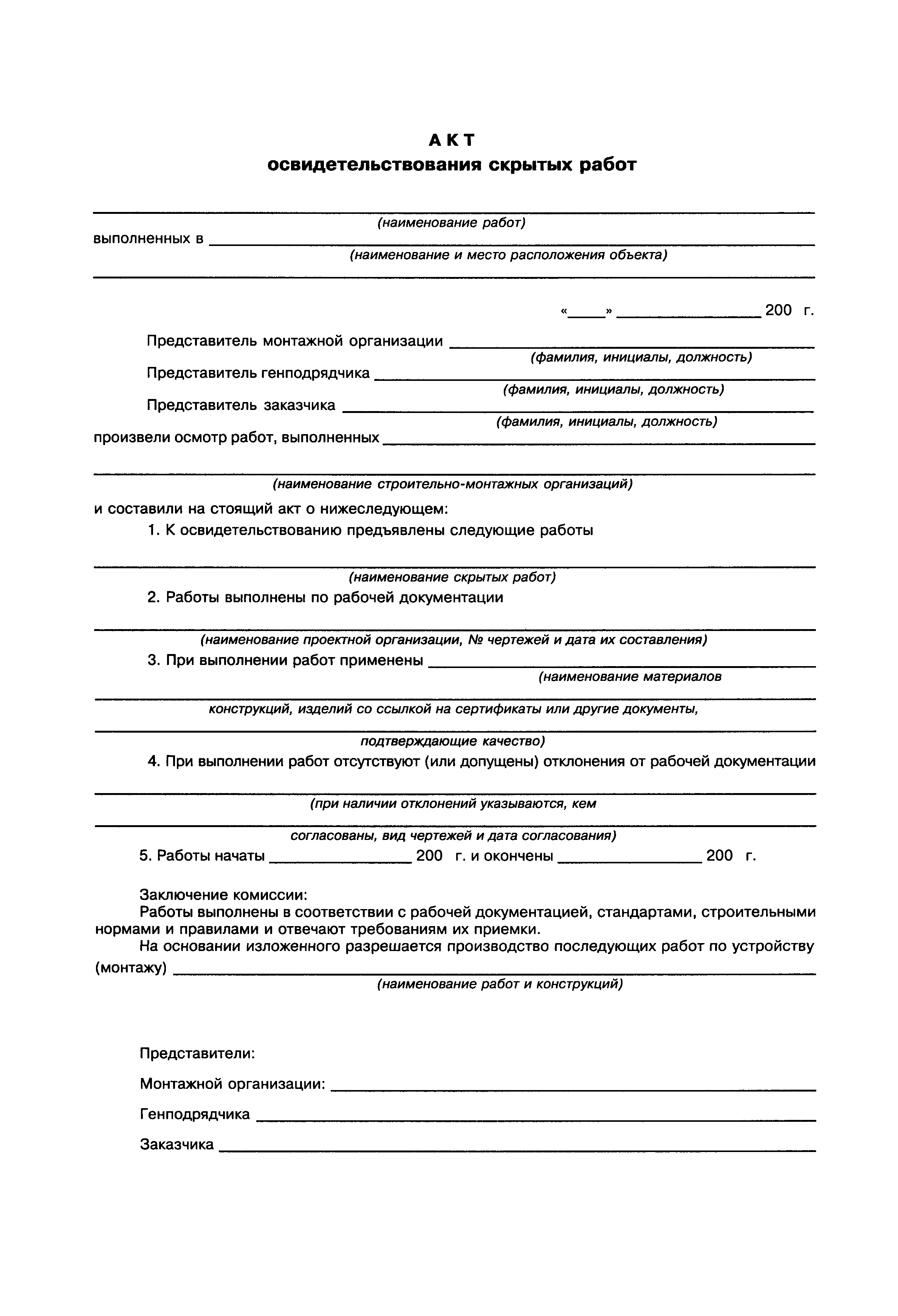 Скачать Акт освидетельствования скрытых работДата актуализации: 01.01.2021