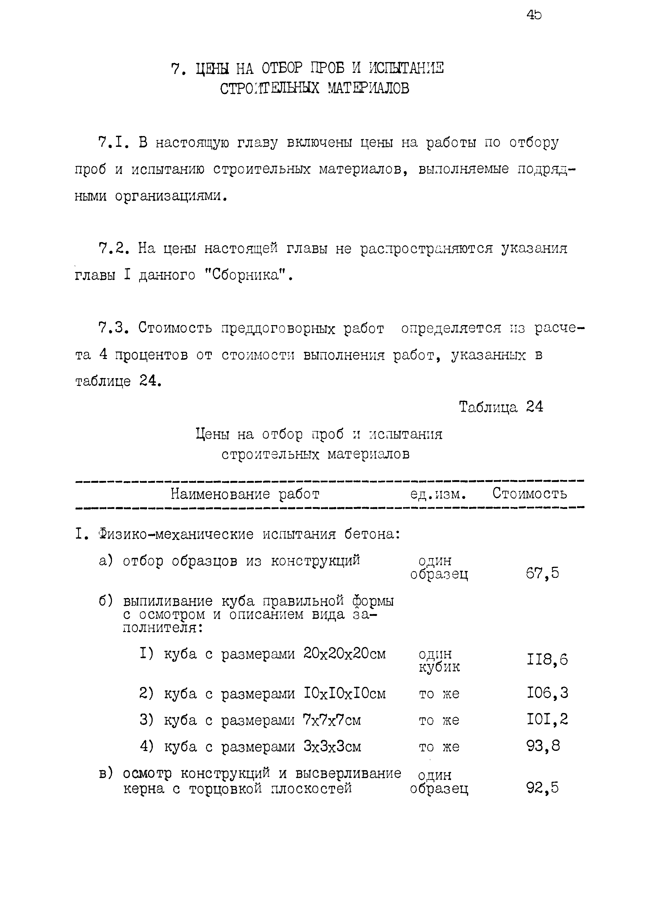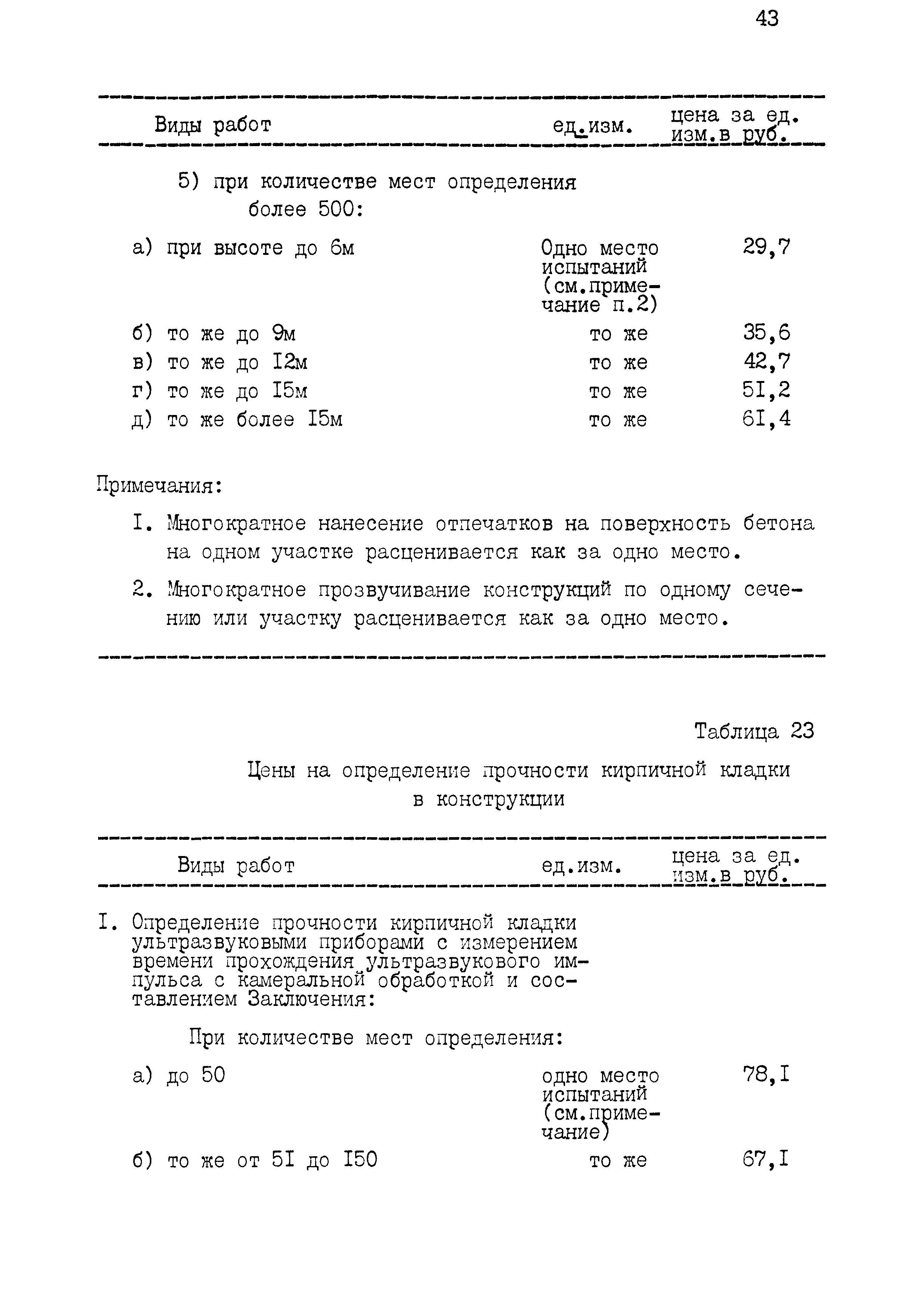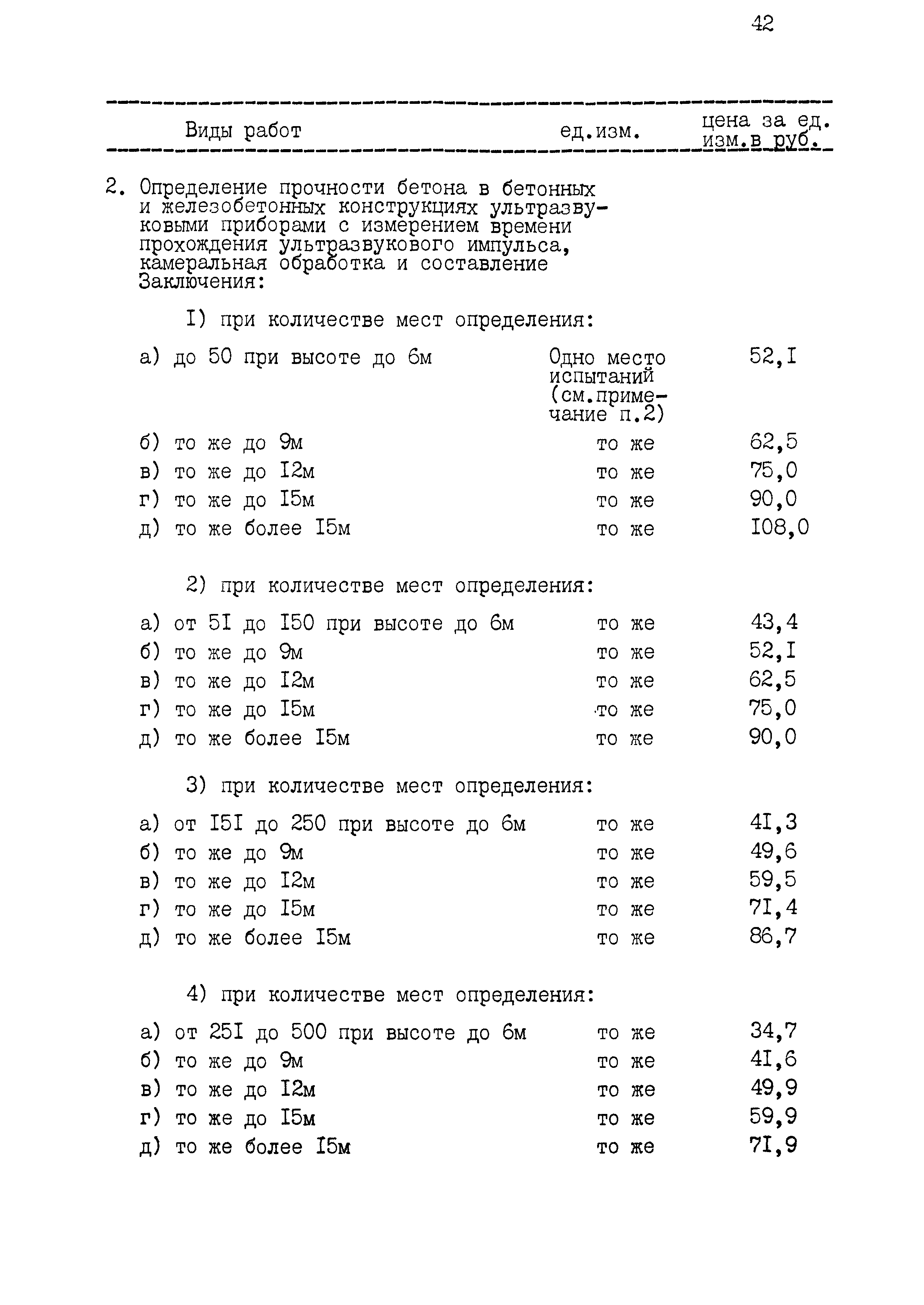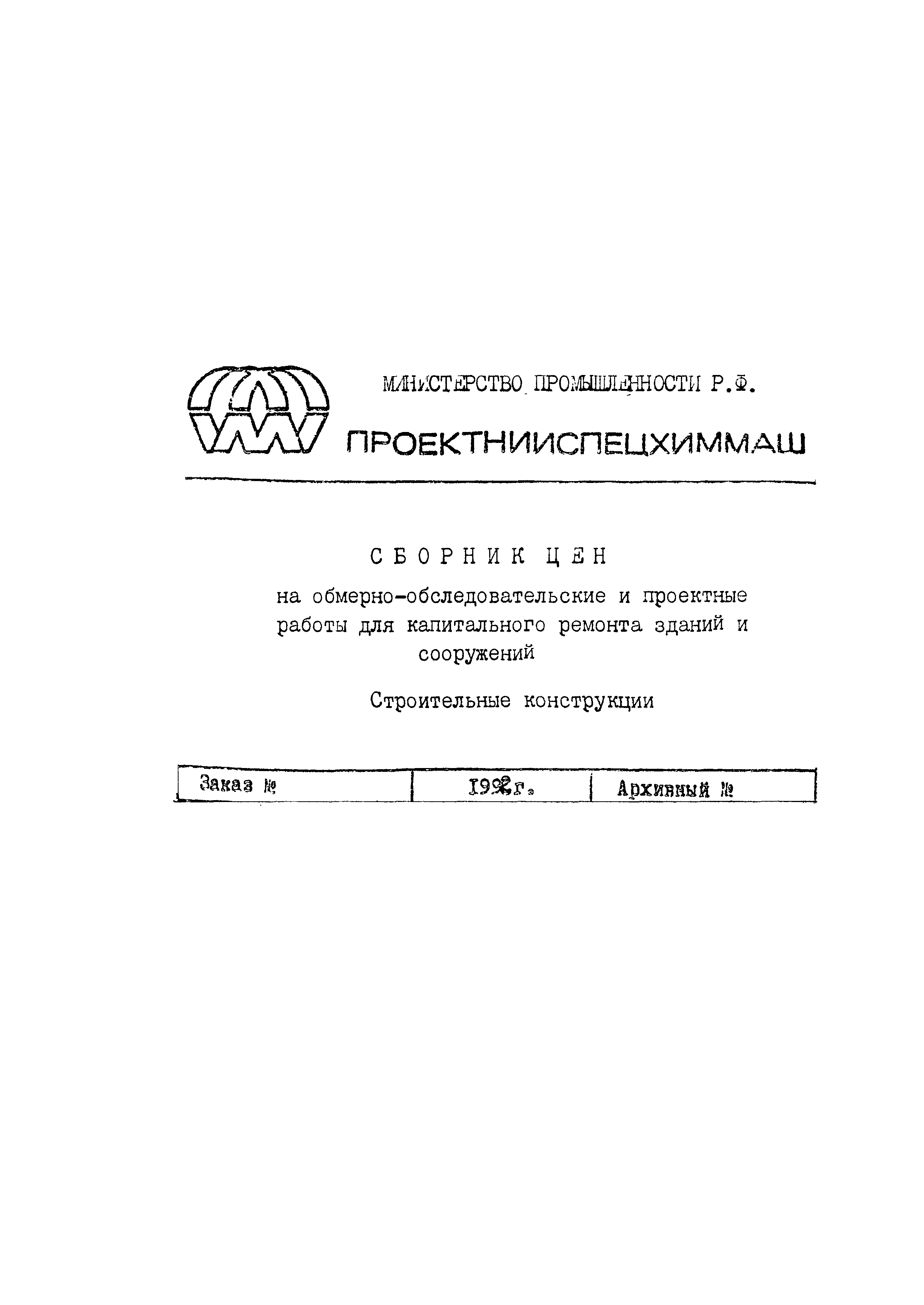 | Оглавление: | 1 Основные положения принятые при разработке Сборника цен 2 Указания о порядке определения стоимости обмерных работ 3 Указания о порядке определения стоимости обследовательских работ 4 Указания о порядке определения стоимости разработки рабочих чертежей на усиление или частичную замену строительных конструкций 5 Указания о порядке определения стоимости разработки рабочих чертежей на замену строительных конструкций 6 Указания о порядке определения стоимости вибродинамических испытаний, определения прочности кирпича и бетона в конструкциях неразрушающими методами 7 Цены на отбор проб бетона и испытание строительных материалов |