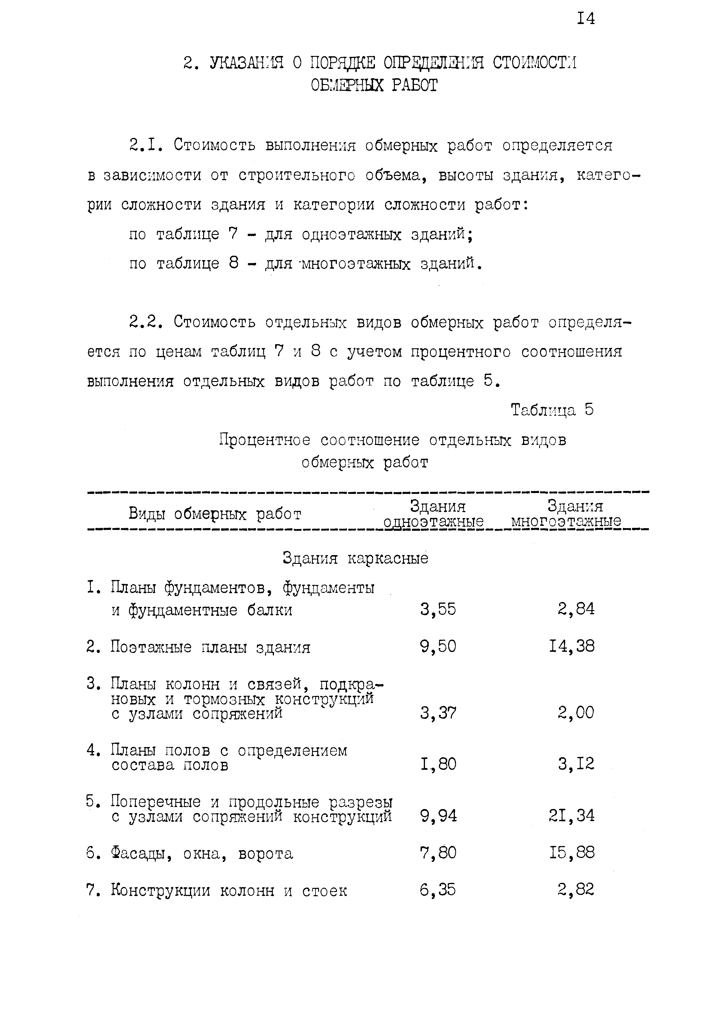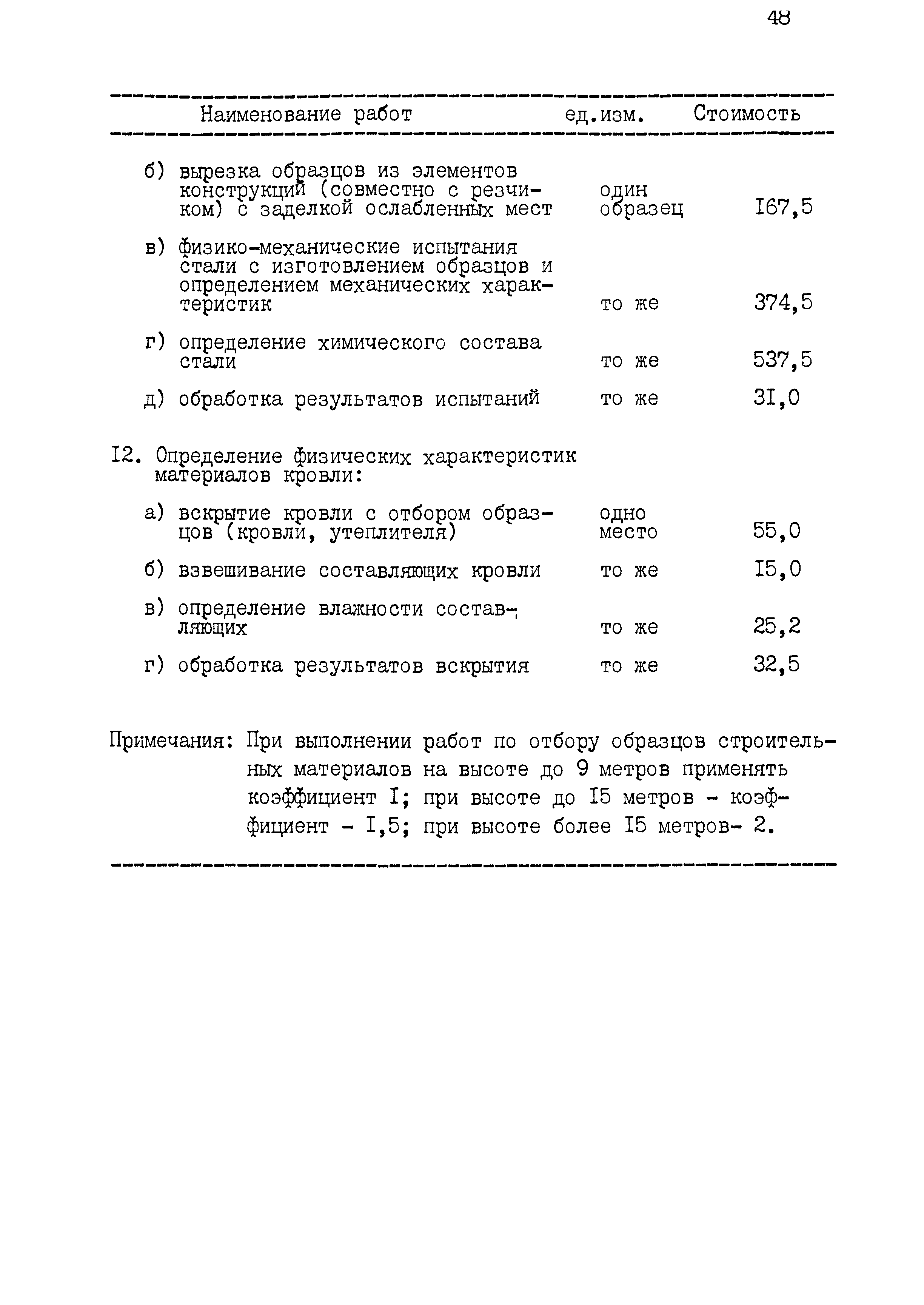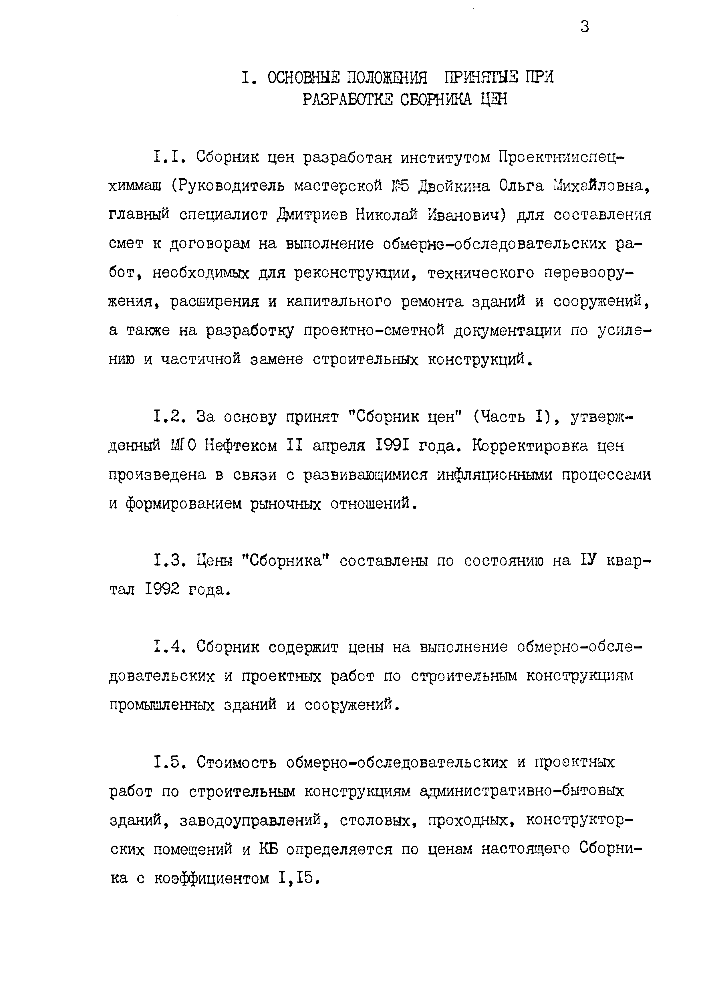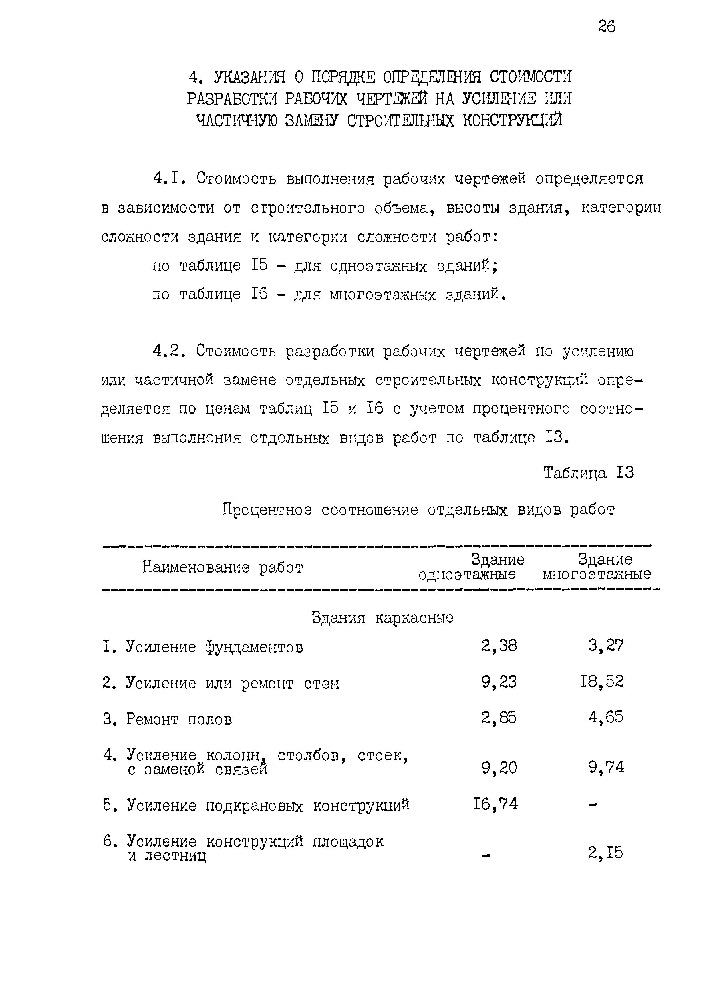 | Оглавление: | 1 Основные положения принятые при разработке Сборника цен 2 Указания о порядке определения стоимости обмерных работ 3 Указания о порядке определения стоимости обследовательских работ 4 Указания о порядке определения стоимости разработки рабочих чертежей на усиление или частичную замену строительных конструкций 5 Указания о порядке определения стоимости разработки рабочих чертежей на замену строительных конструкций 6 Указания о порядке определения стоимости вибродинамических испытаний, определения прочности кирпича и бетона в конструкциях неразрушающими методами 7 Цены на отбор проб бетона и испытание строительных материалов |