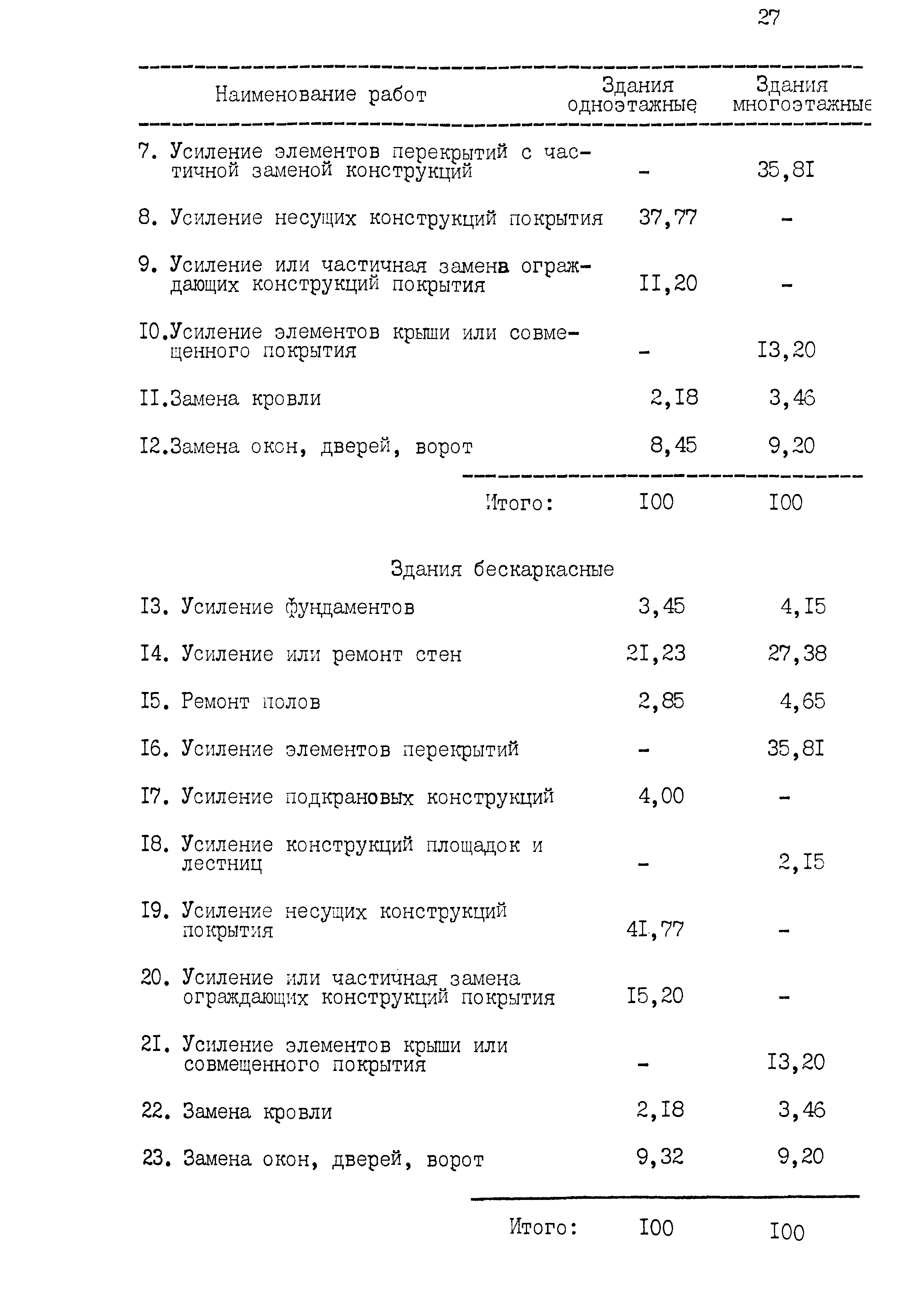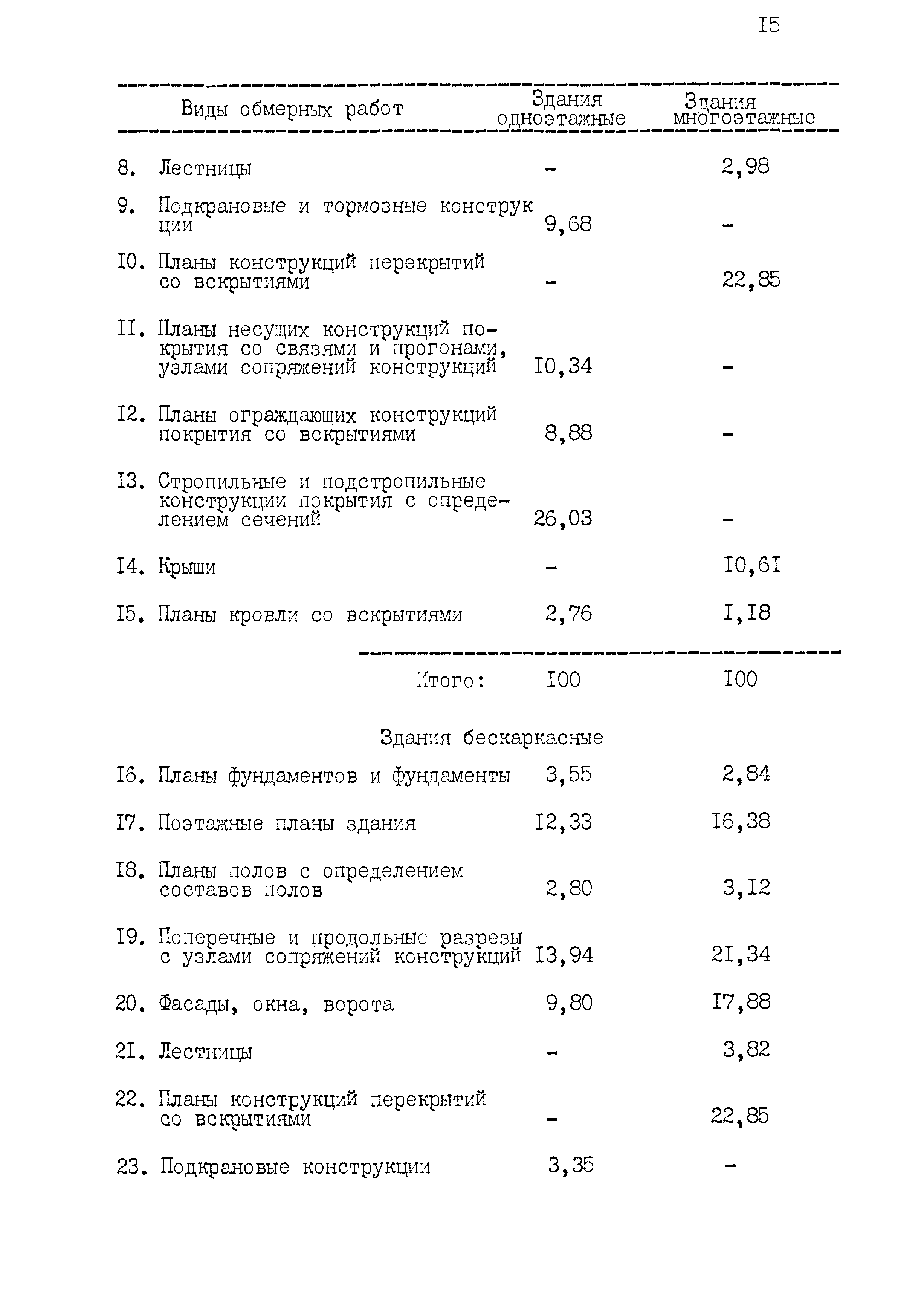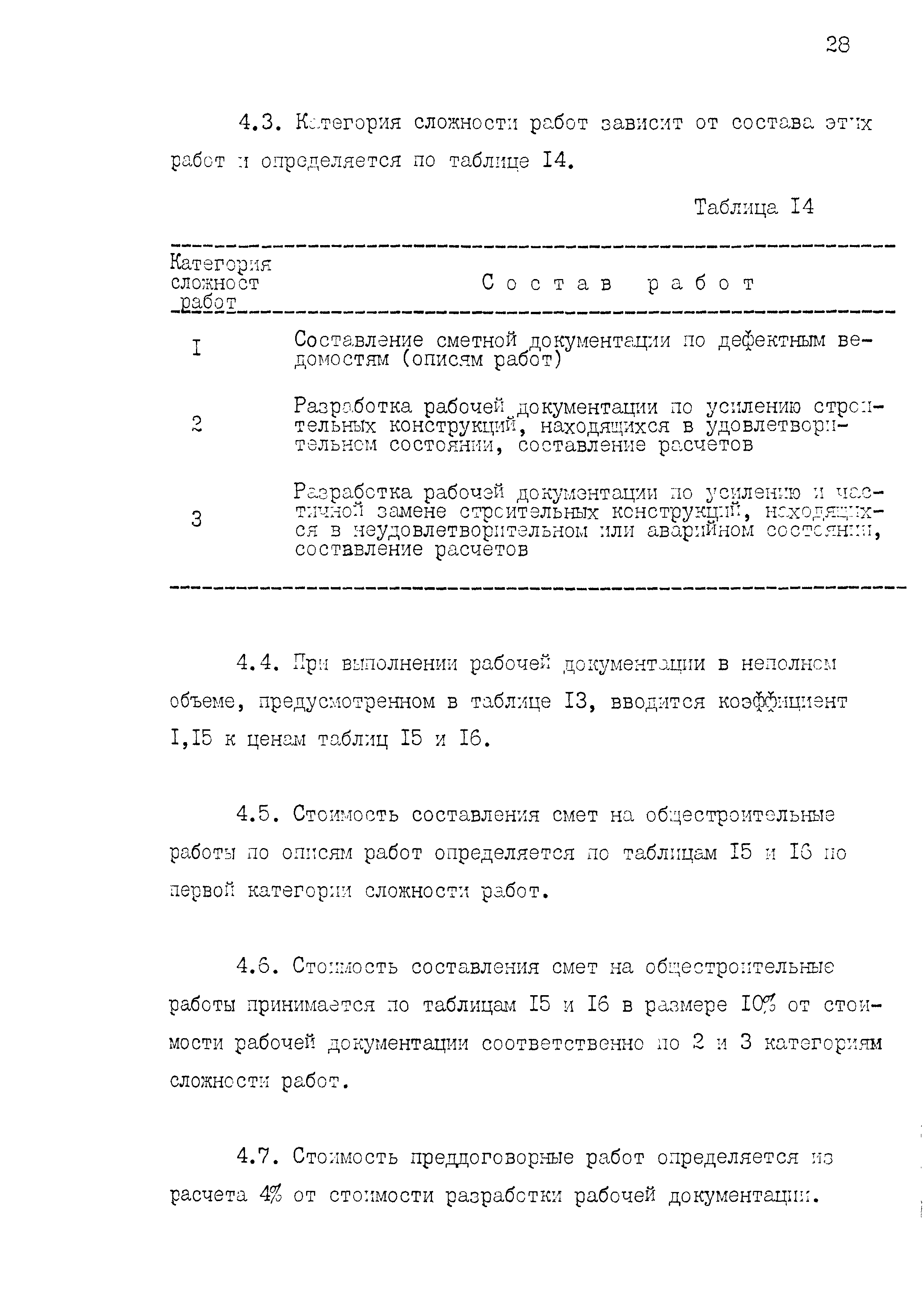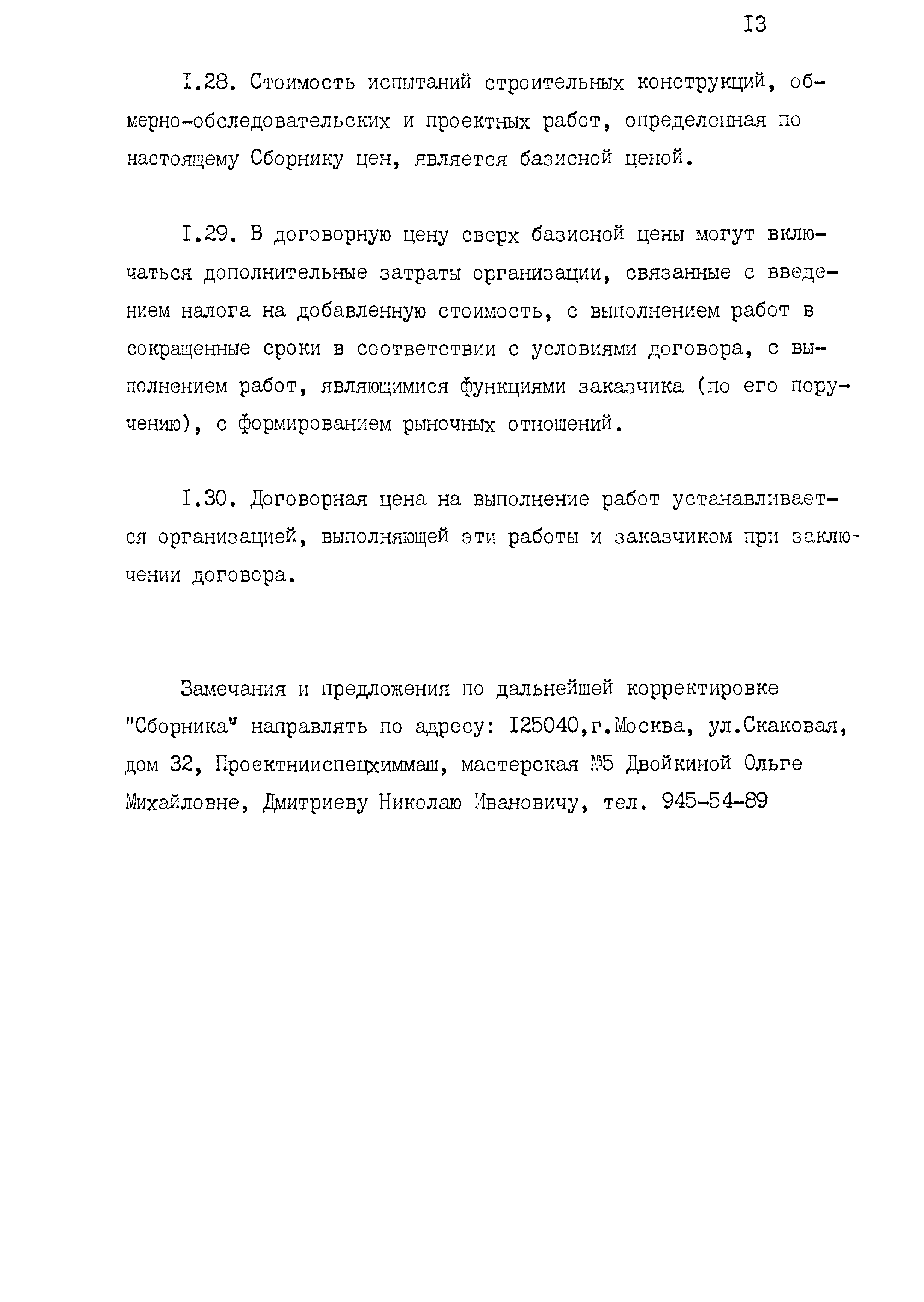 | Оглавление: | 1 Основные положения принятые при разработке Сборника цен 2 Указания о порядке определения стоимости обмерных работ 3 Указания о порядке определения стоимости обследовательских работ 4 Указания о порядке определения стоимости разработки рабочих чертежей на усиление или частичную замену строительных конструкций 5 Указания о порядке определения стоимости разработки рабочих чертежей на замену строительных конструкций 6 Указания о порядке определения стоимости вибродинамических испытаний, определения прочности кирпича и бетона в конструкциях неразрушающими методами 7 Цены на отбор проб бетона и испытание строительных материалов |
