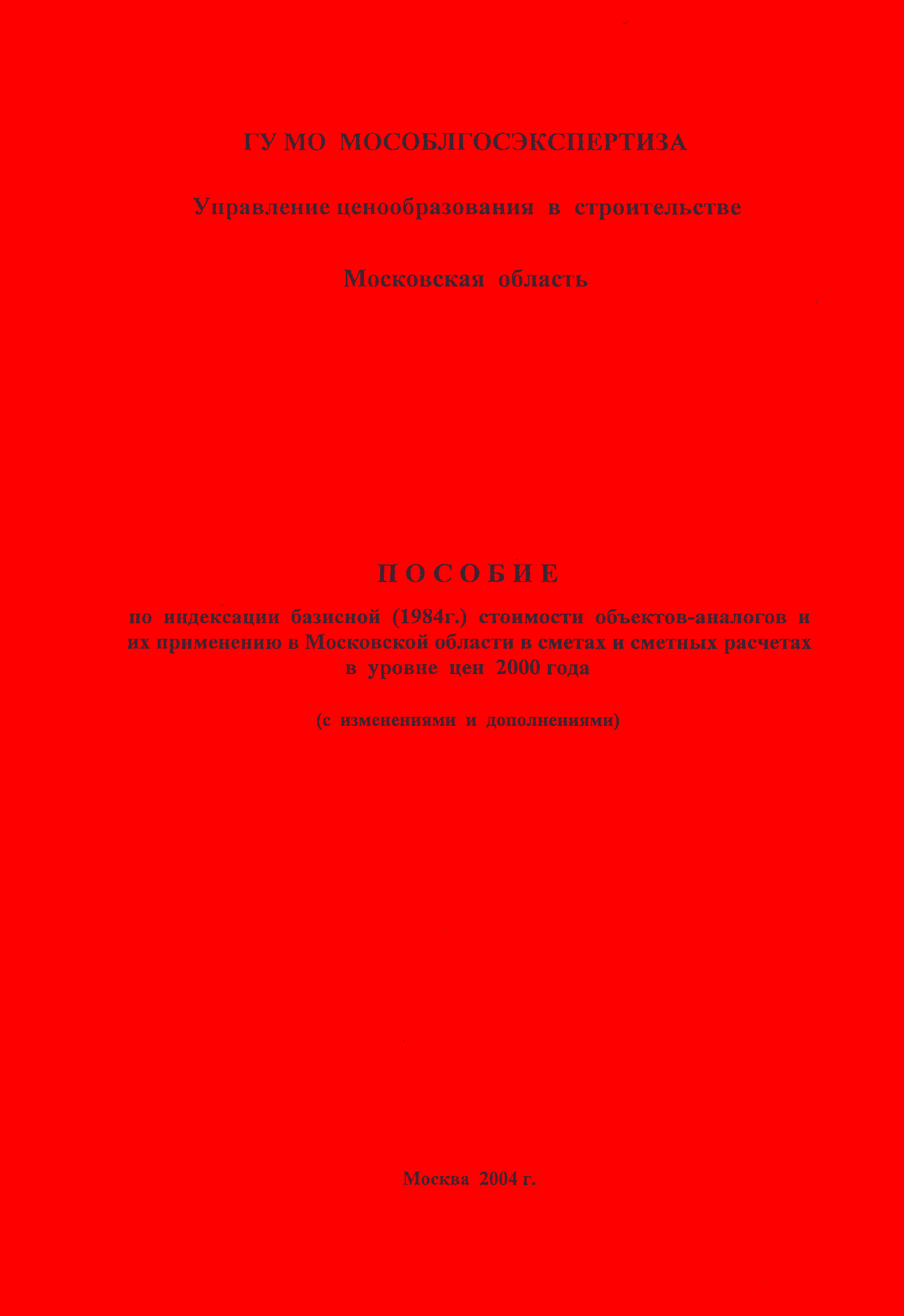 | Название рус.: | Пособие по индексации базисной (1984 г.) стоимости объектов-аналогов и их применению в Московской области в сметах и сметных расчетах в уровне цен 2000 года |