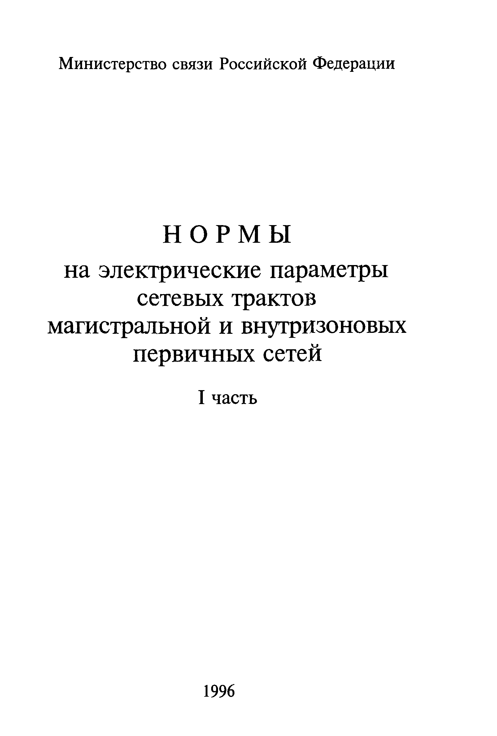 | Название рус.: | Нормы на электрические параметры сетевых трактов магистральной и внутризоновых первичных сетей. Часть I |