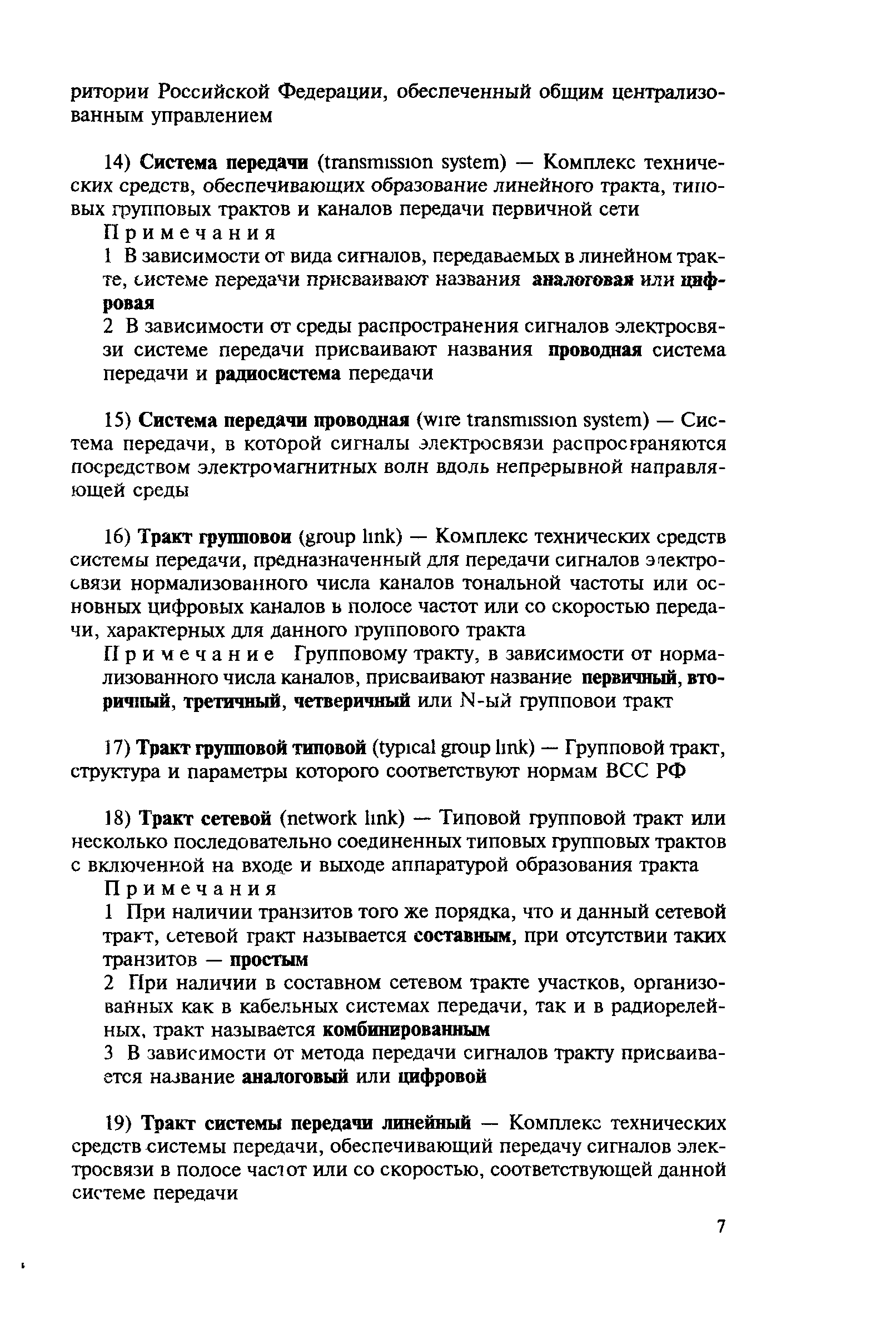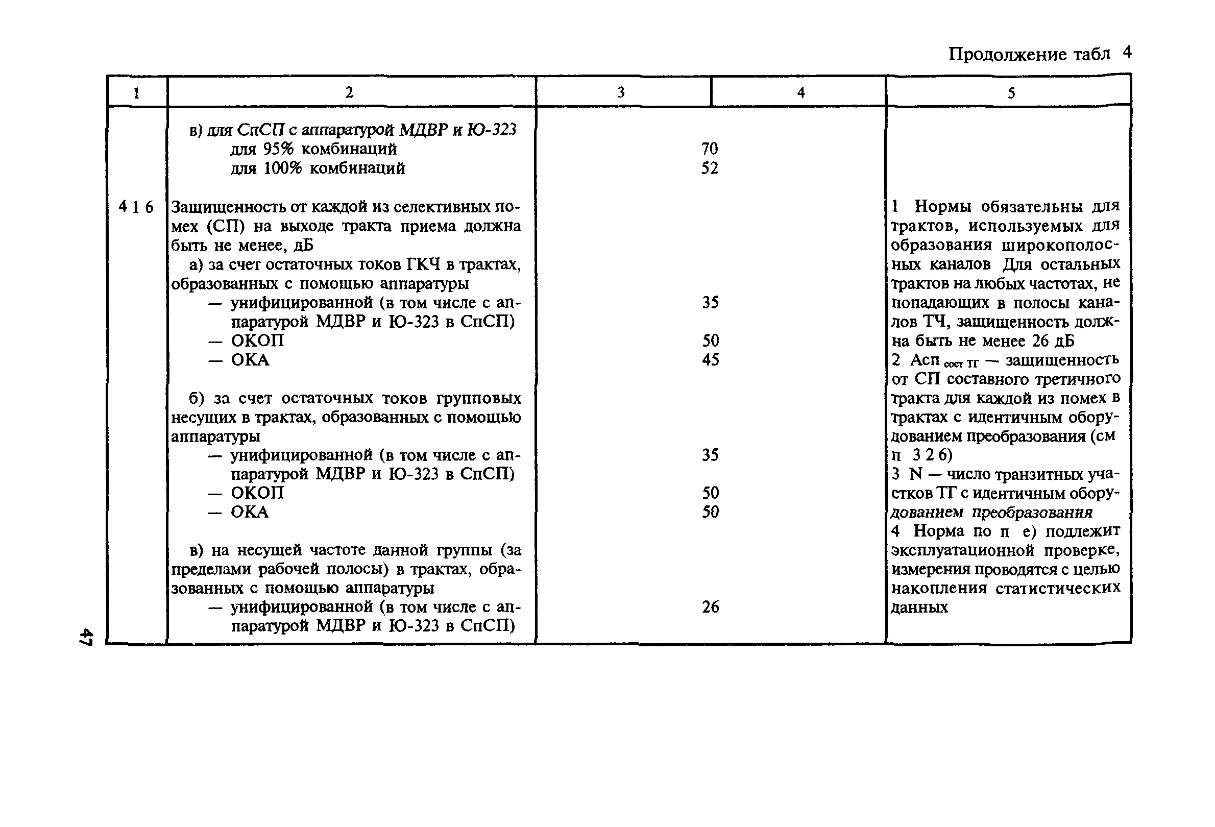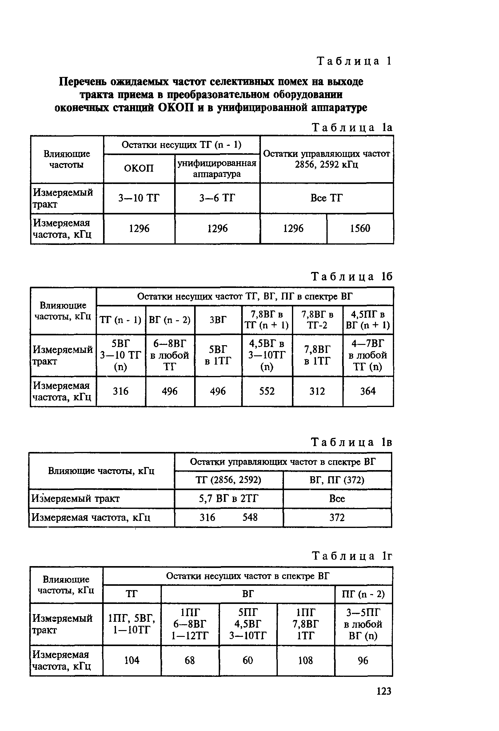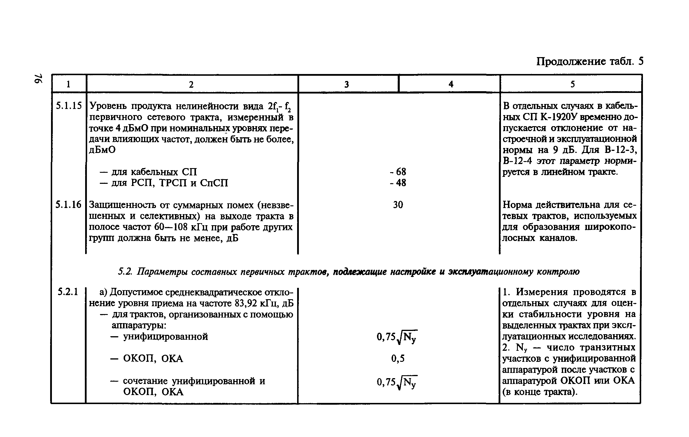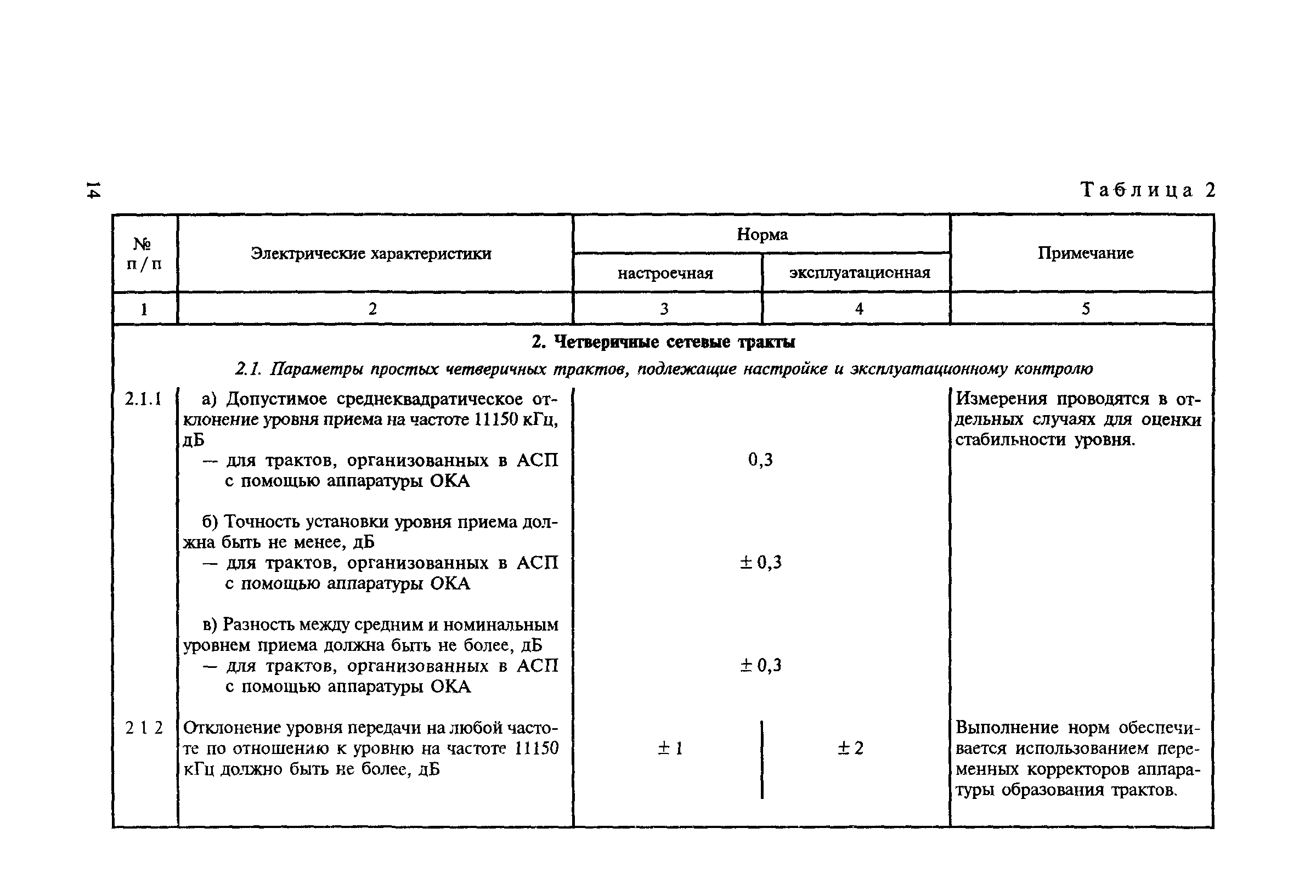| Оглавление: | 1 Термины и определения 2 Общие указания 3 Нормы на электрические параметры аналоговых сетевых трактов кабельных, радиорелейных, тропосферных и спутниковых систем передачи 4 Методики измерения параме6тров сетевых трактов ЧГ, ТГ, ВГ и ПГ Приложение 1 Среднеминутное значение псофометрической мощности шума линейных трактов различных кабельных и воздушных систем передачи в полосе канала ТЧ Приложение 2 Порядок определения соответствия нормам измеренных шумов в трактах (каналах) Приложение 3 Расчет защищенности между трактами (при сложении уровней) Приложение 4 Перечень ожидаемых частот селективных помех на выходе тракта приема в преобразовательном оборудовании оконечных станций ОКОП и в унифицированной аппаратуре Приложение 5 Перечень рекомендуемой измерительной аппаратуры для четверичных (ЧГ), третичных (ТГ), вторичных (ВГ) и первичных (ПГ) сетевых трактов Приложение 6 Соотношения между уровнем, напряжением и мощностью |
