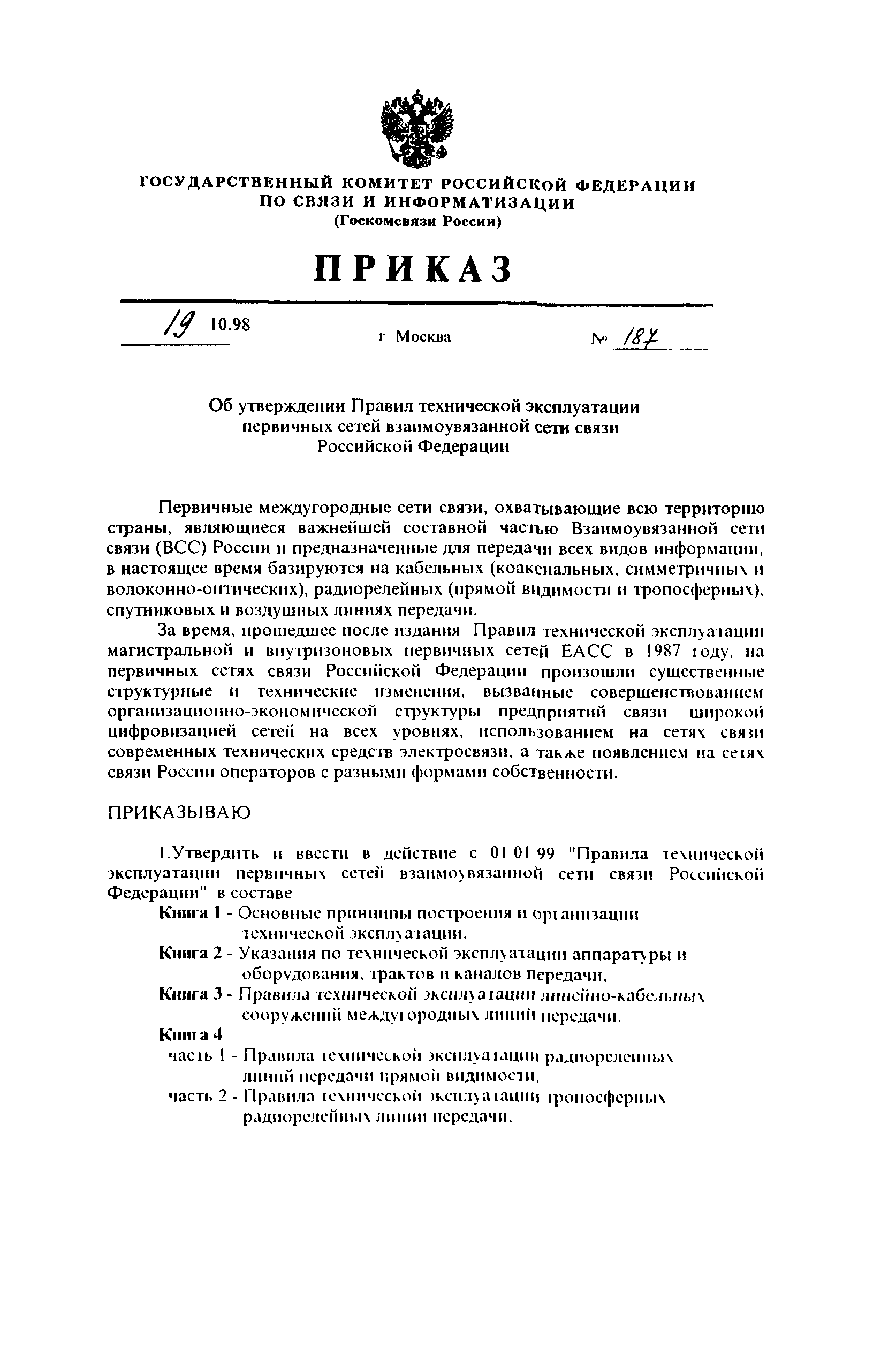 | Утверждён: | 19.10.1998 Госкомсвязи России (187) |